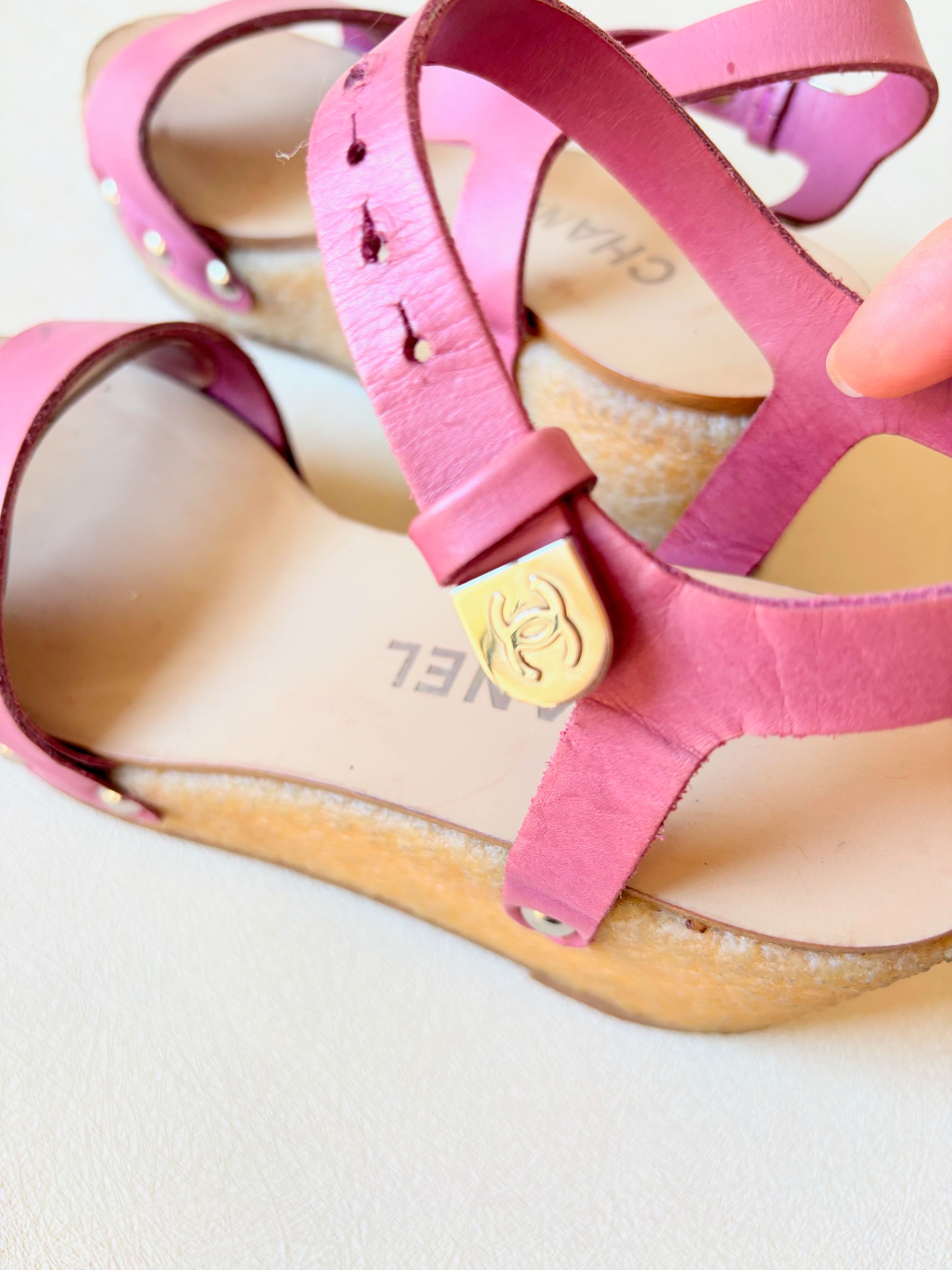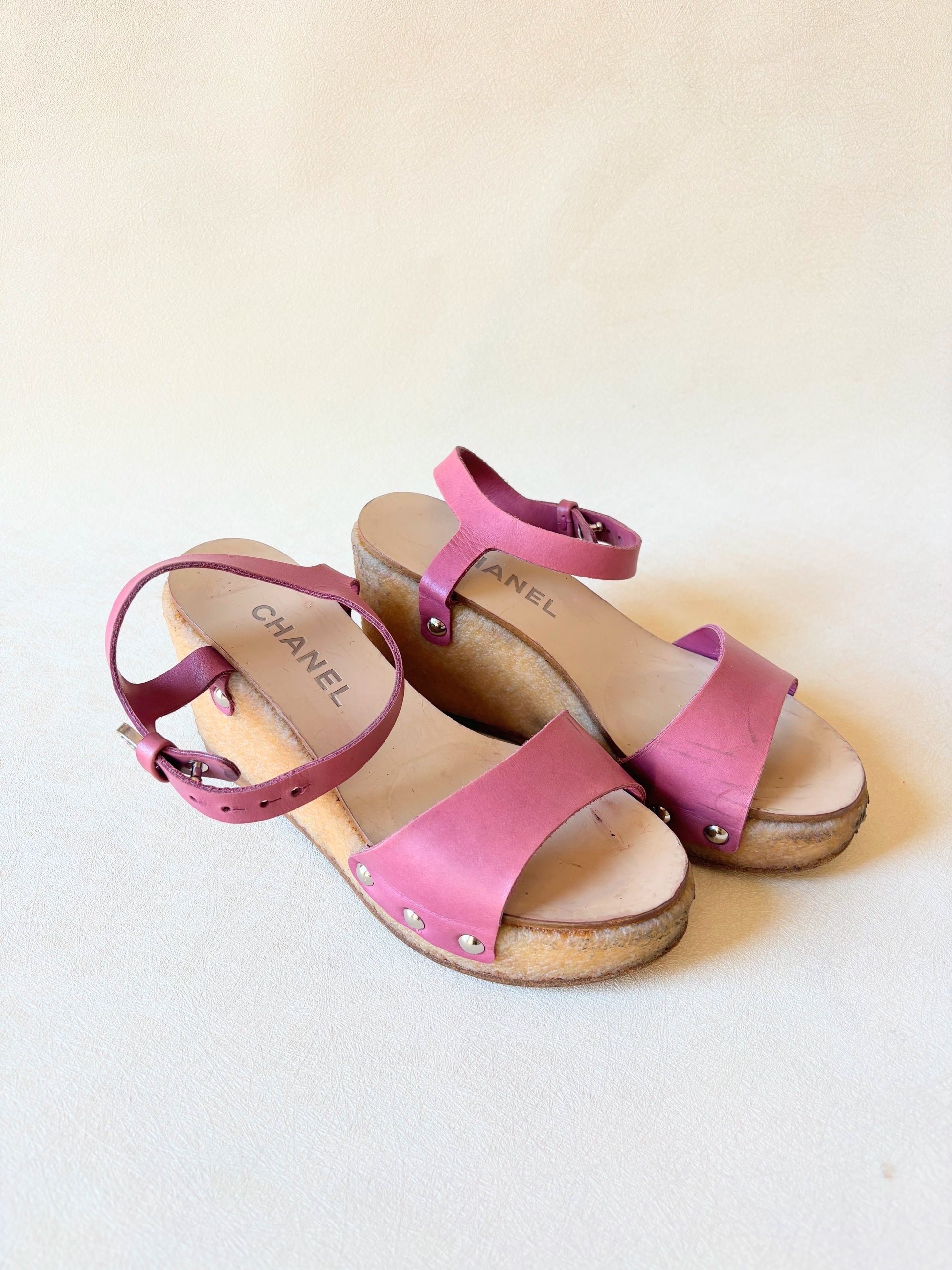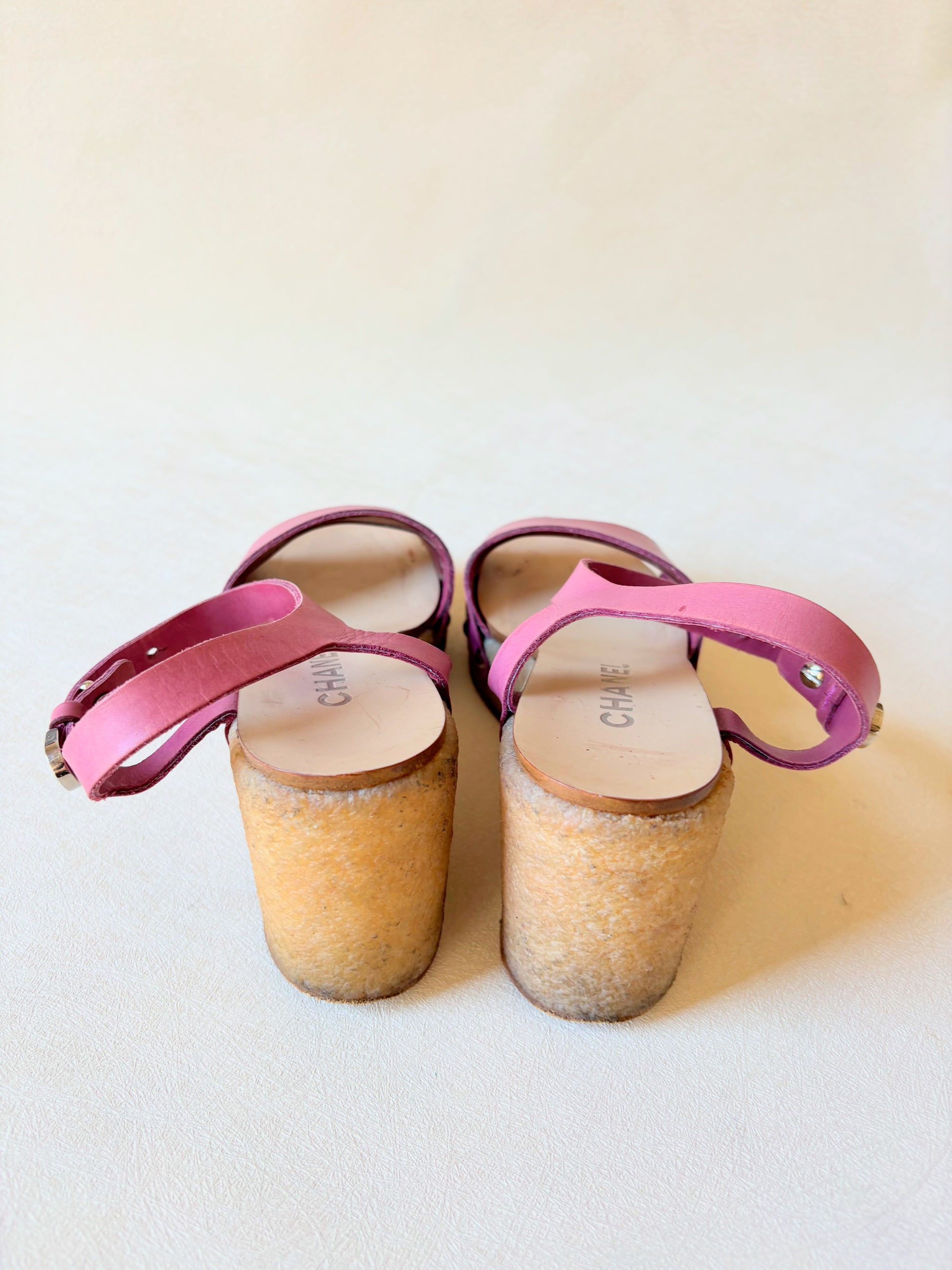 * Sabots CHANEL en cuir rose