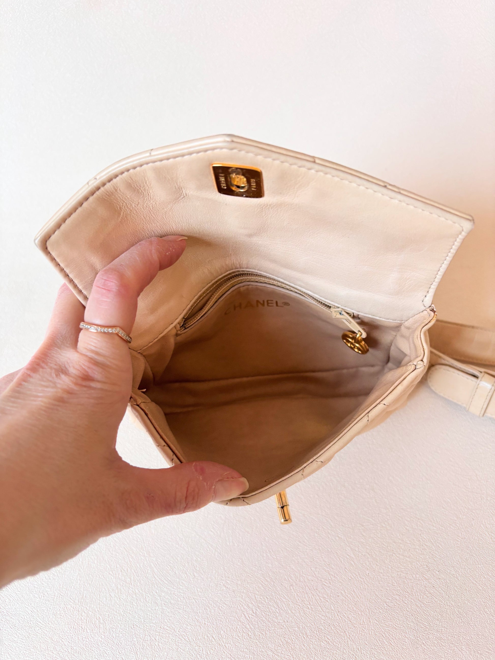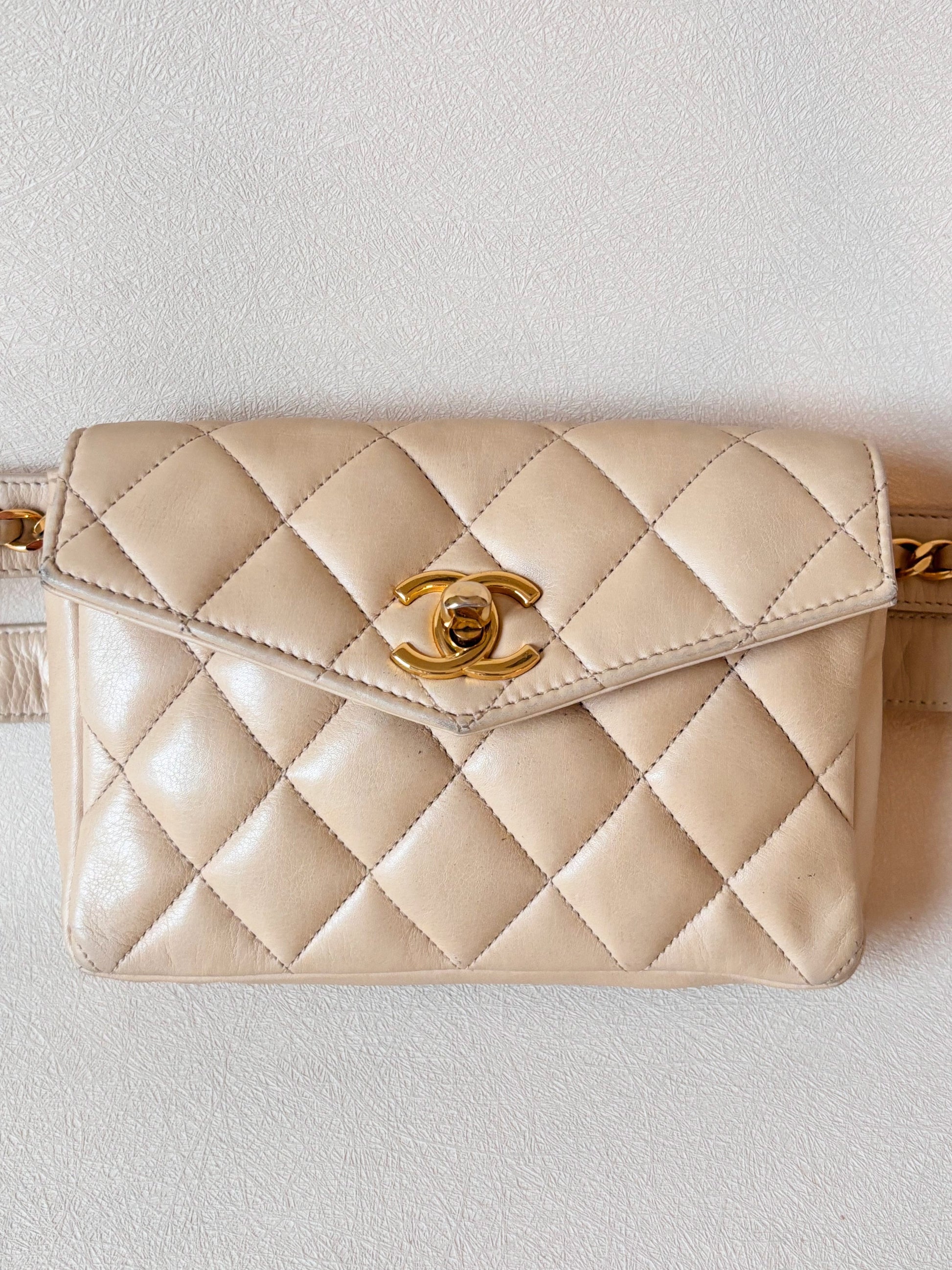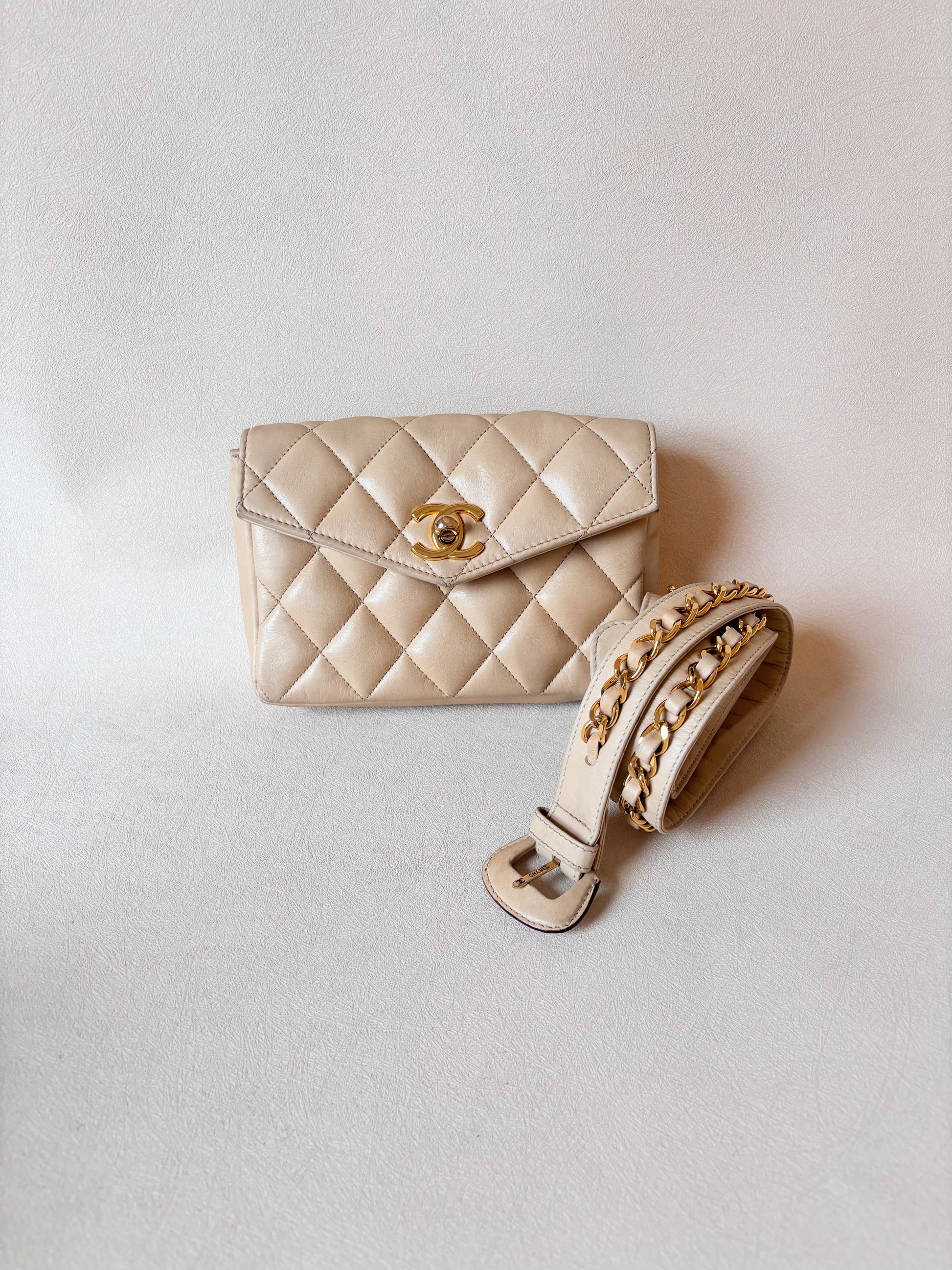 * Sac banane CHANEL en cuir matelassé crème