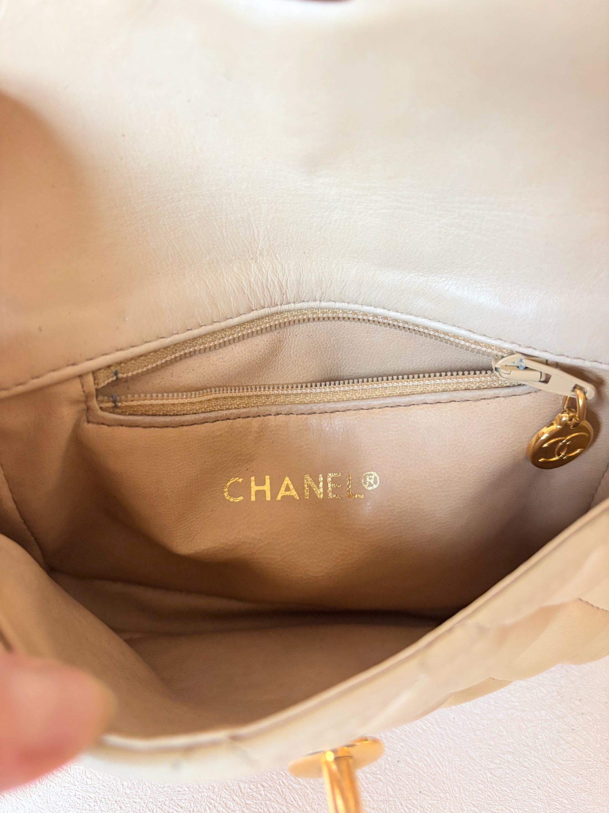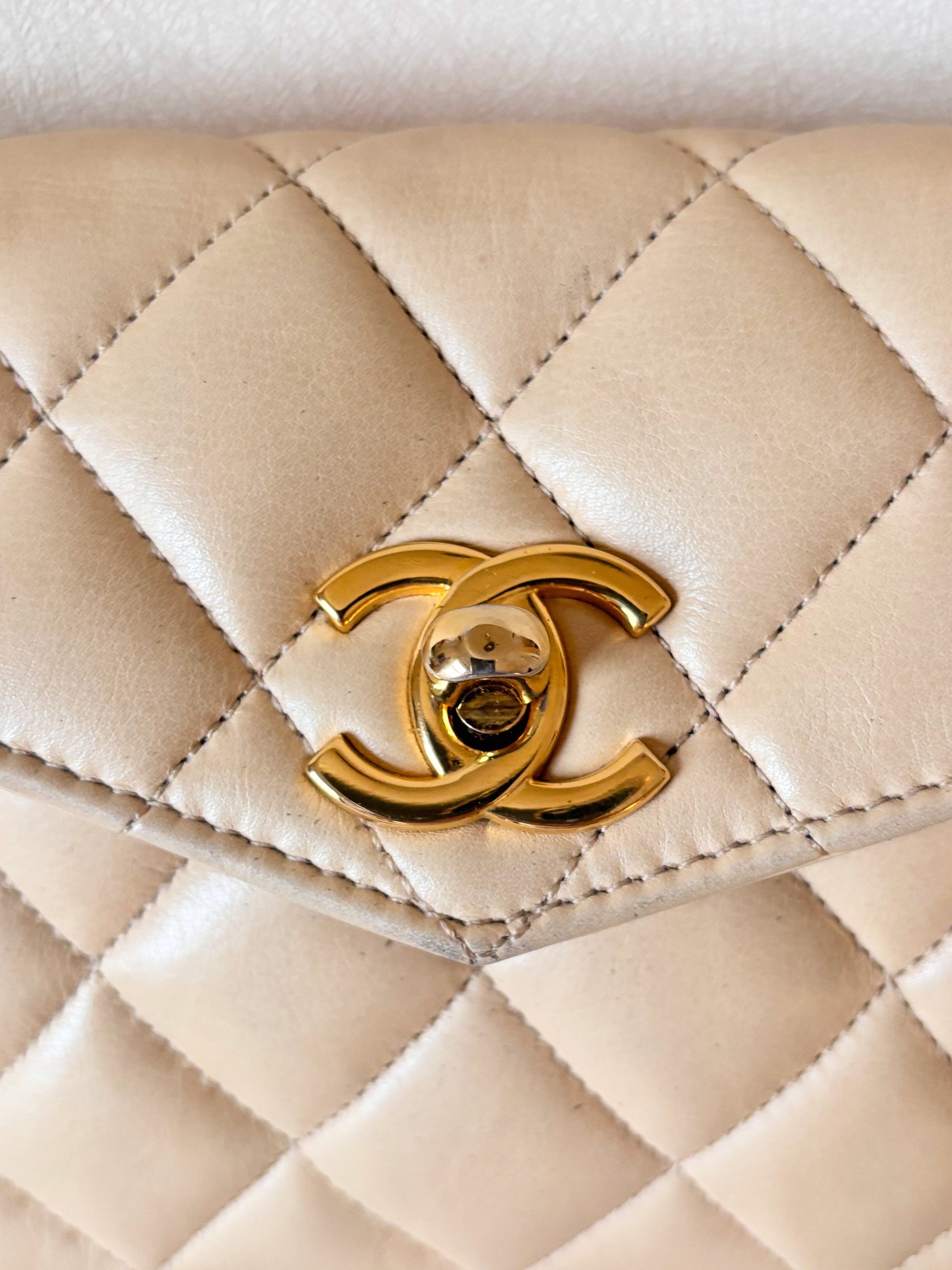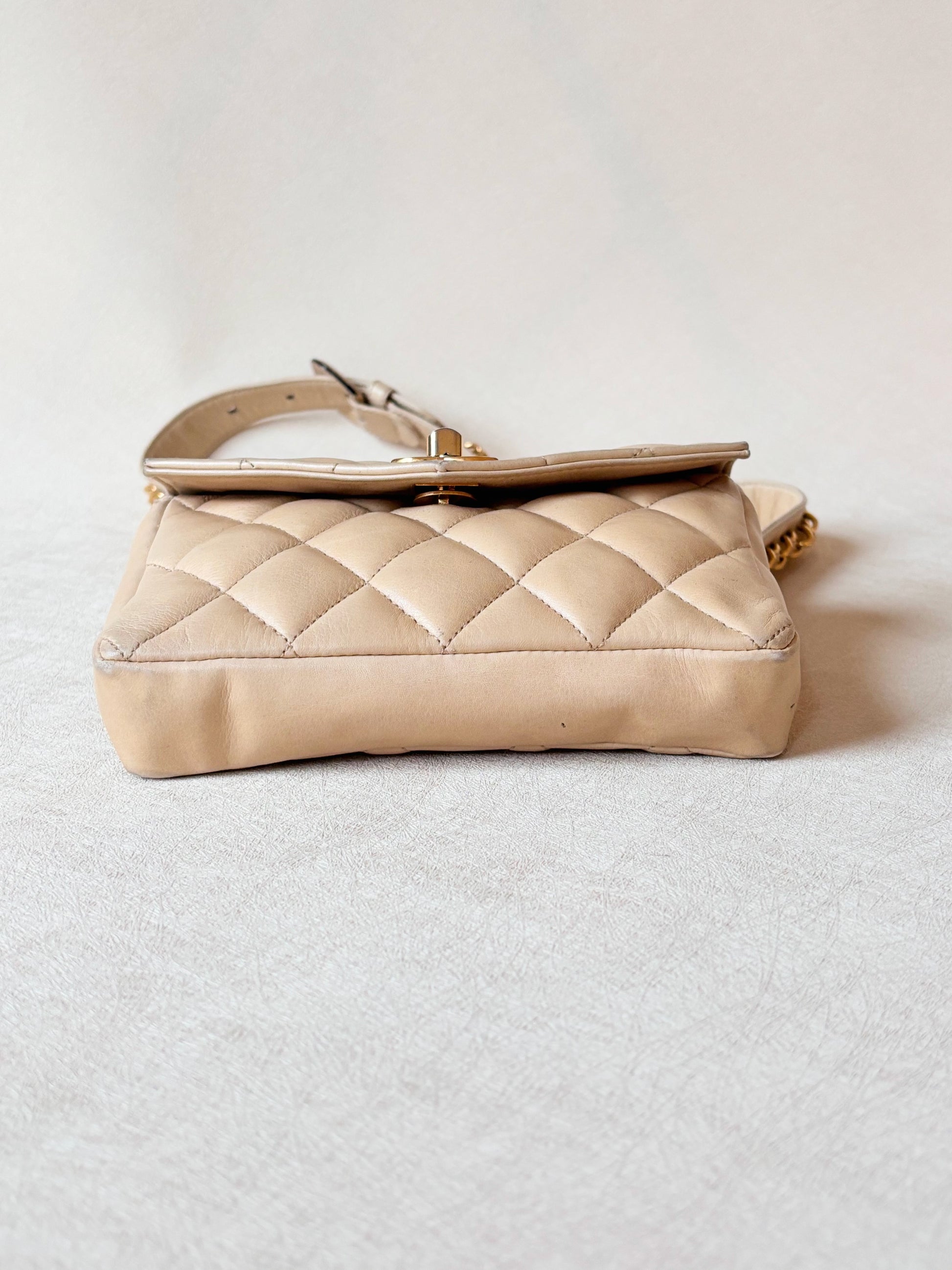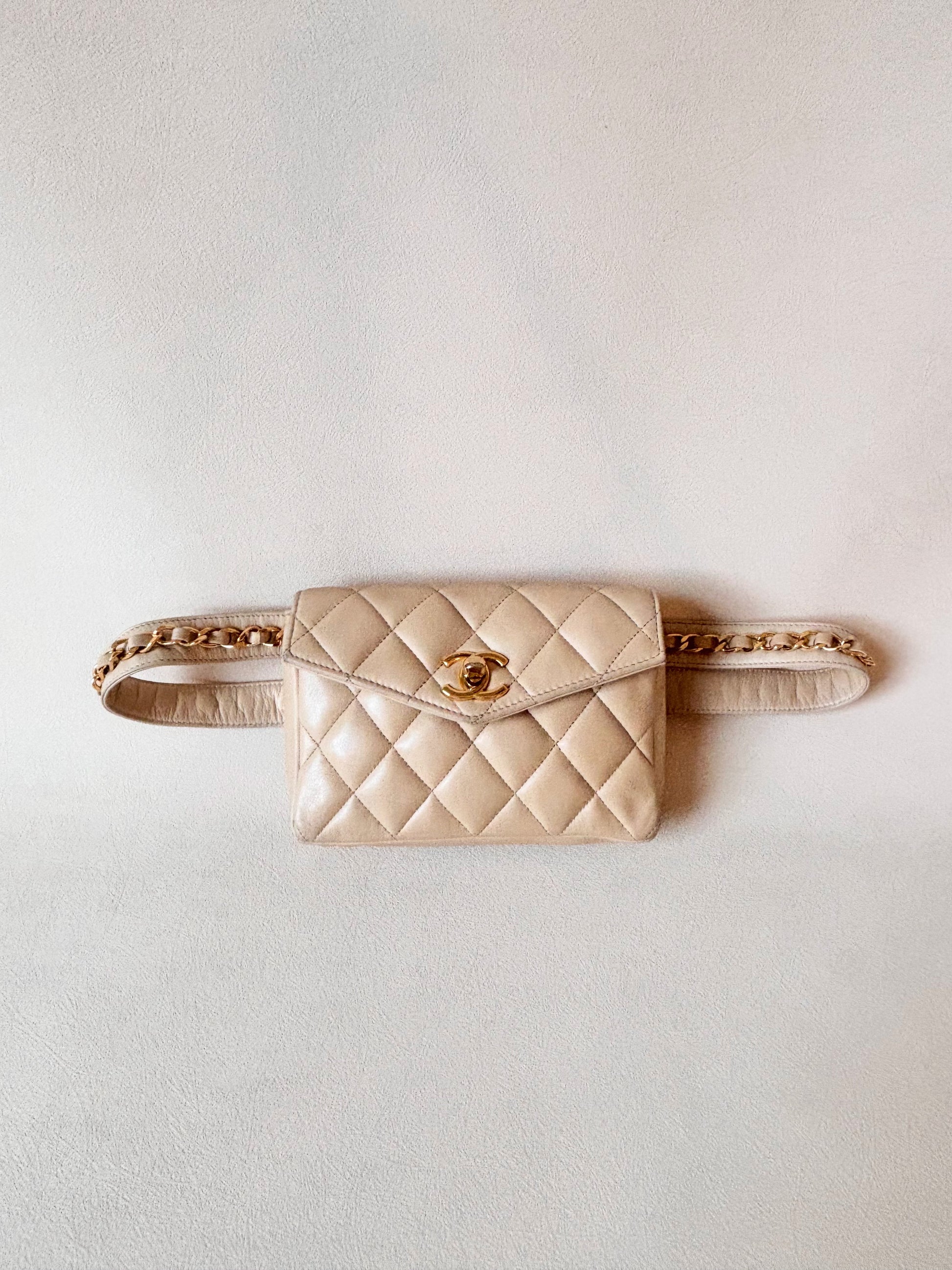 * Sac banane CHANEL en cuir matelassé crème
