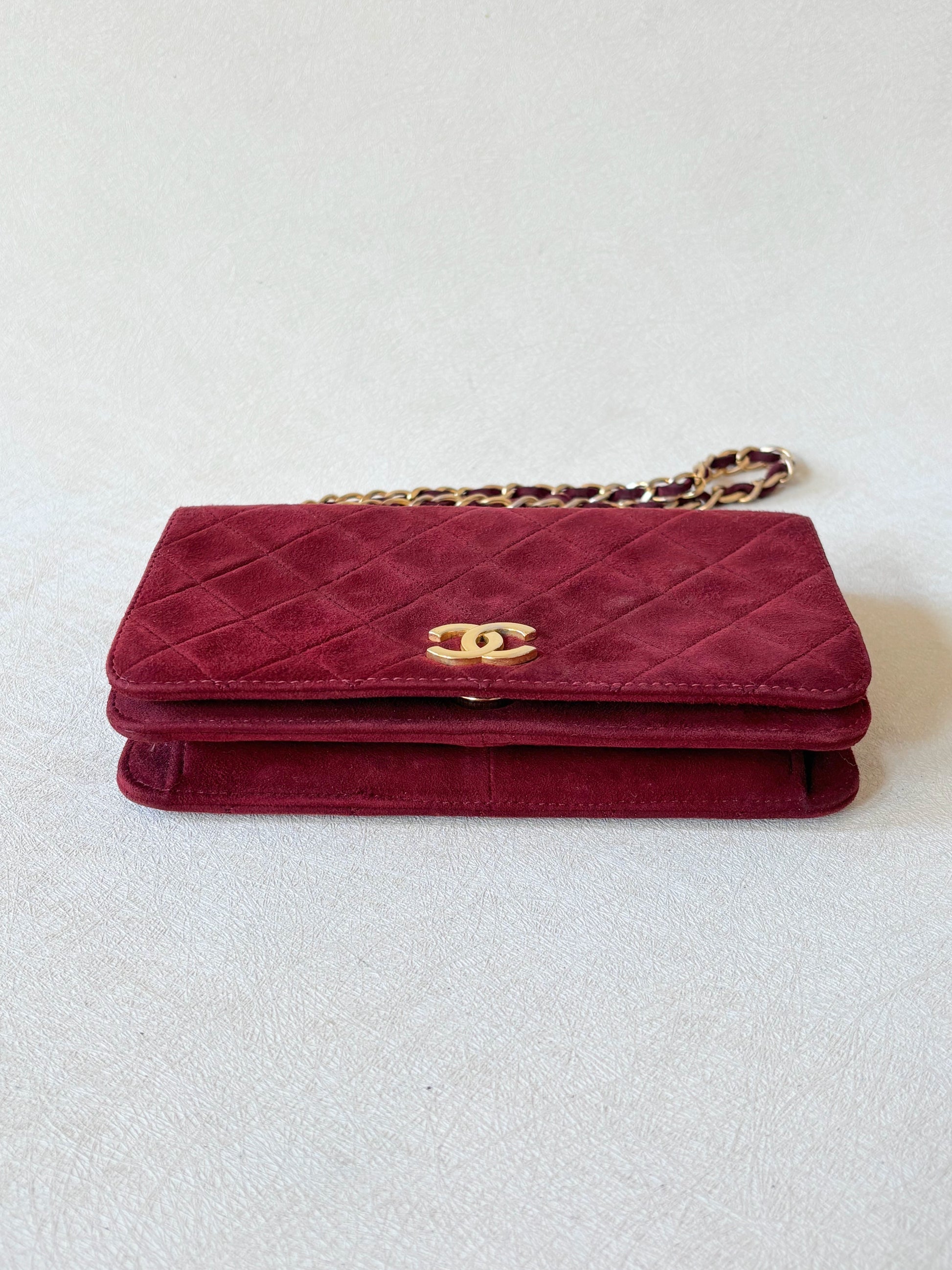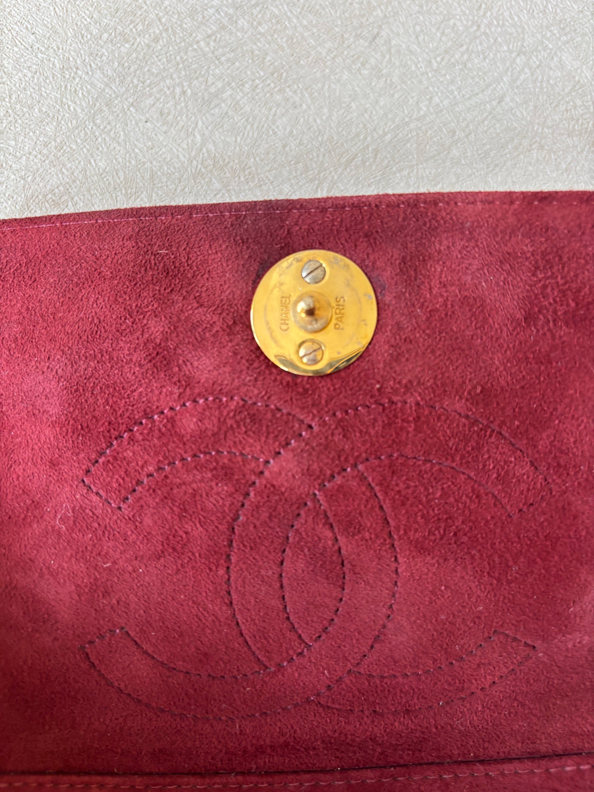 * Extérieur : Très bon état. Belle couleur rouge foncé. Sans taches ni usure précise à signaler. Chaîne bien brillante. Le sac s'ouvre et se ferme correctement mais le fermoir est un peu dur.
