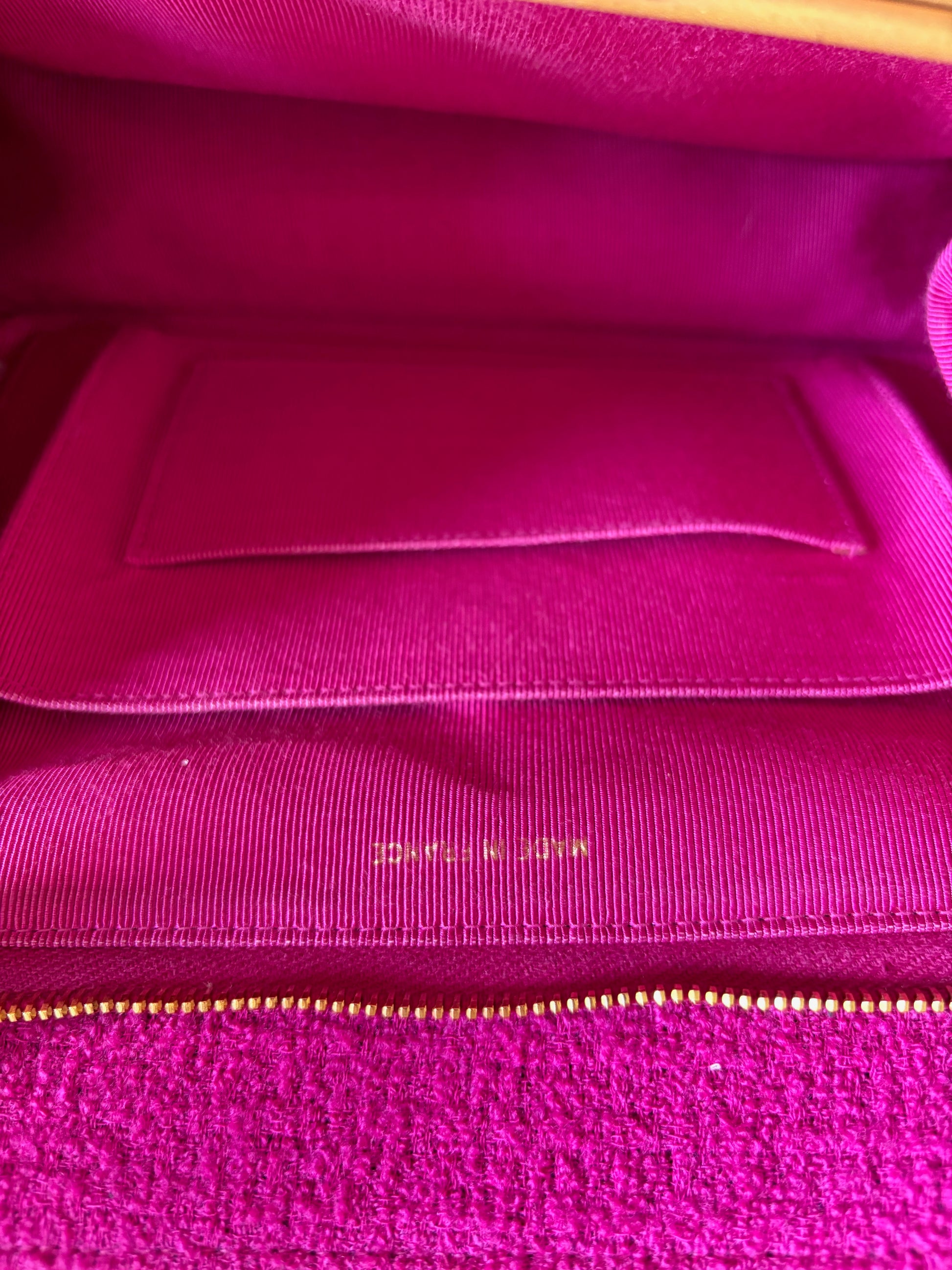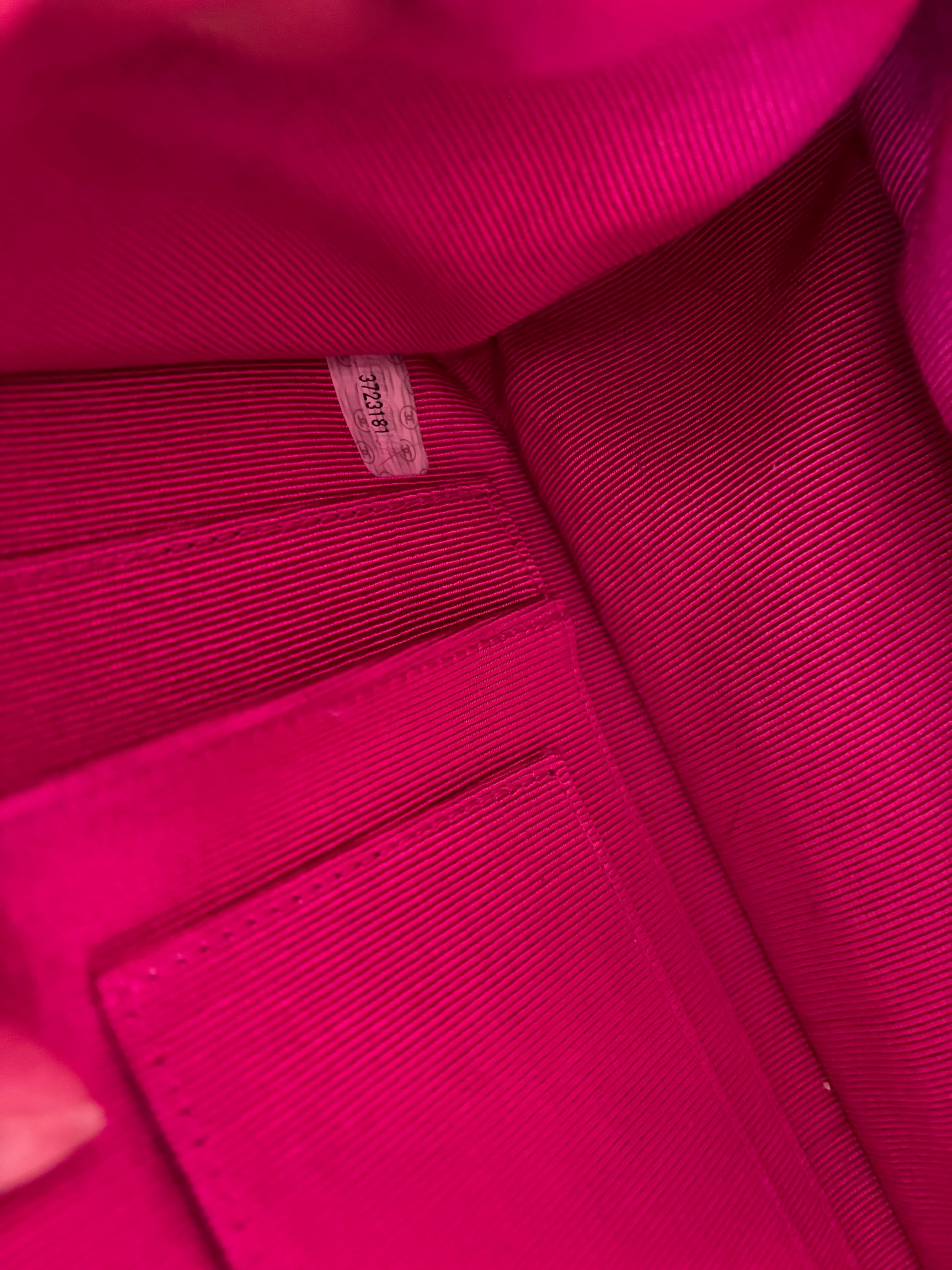 * Intérieur doublé en tissu rose, deux poches plaquées, une poche porte-monnaie amovible