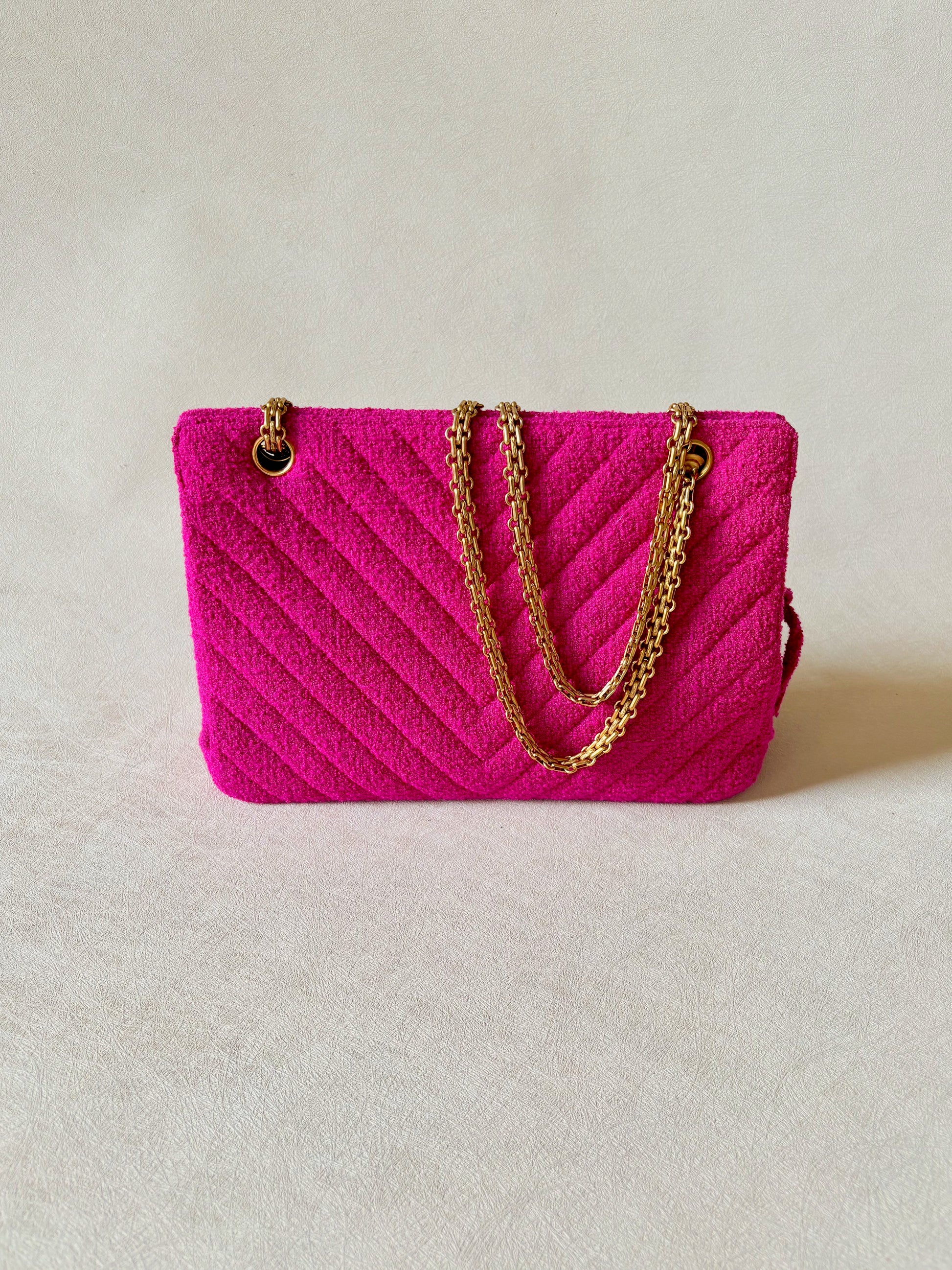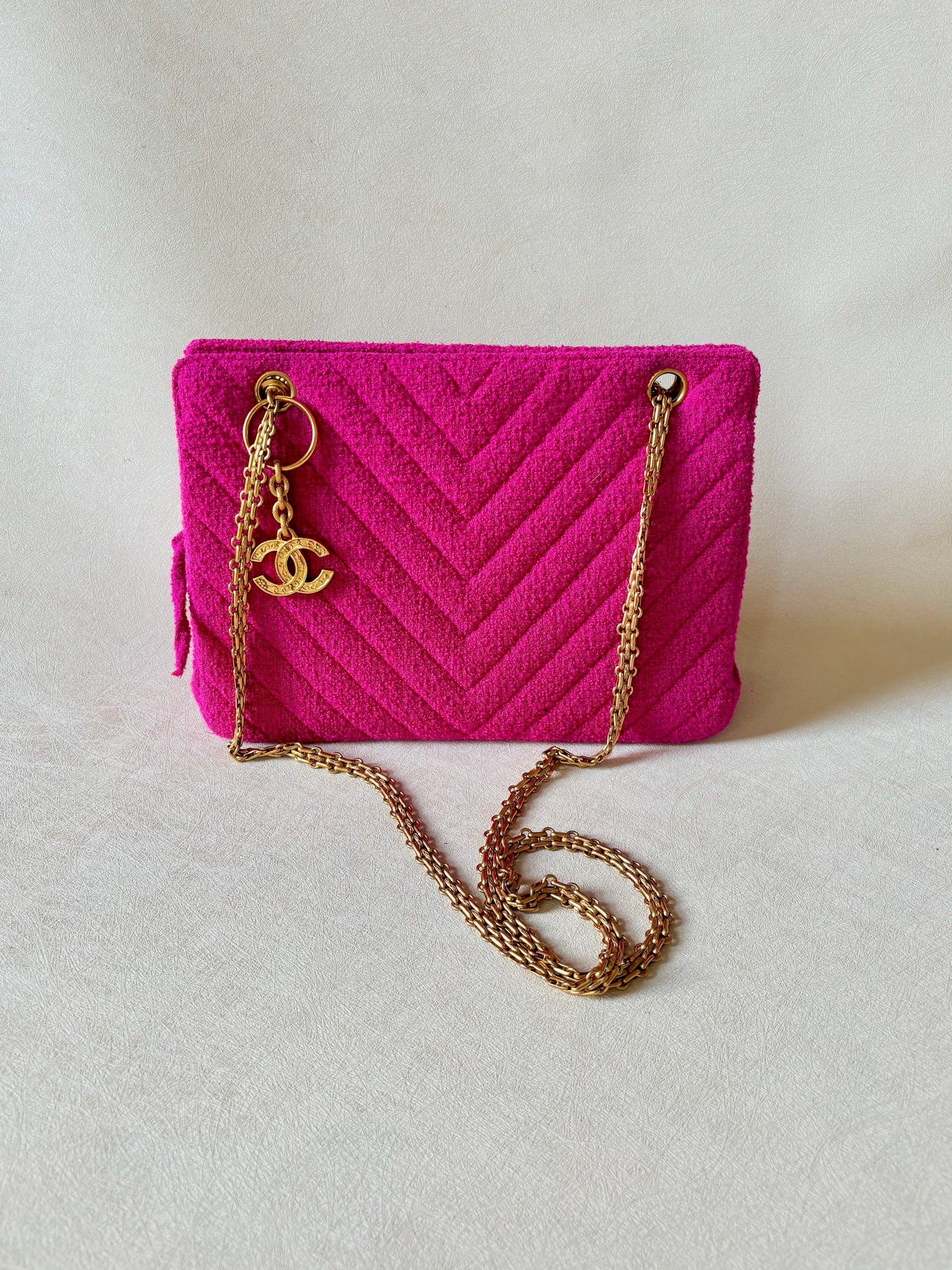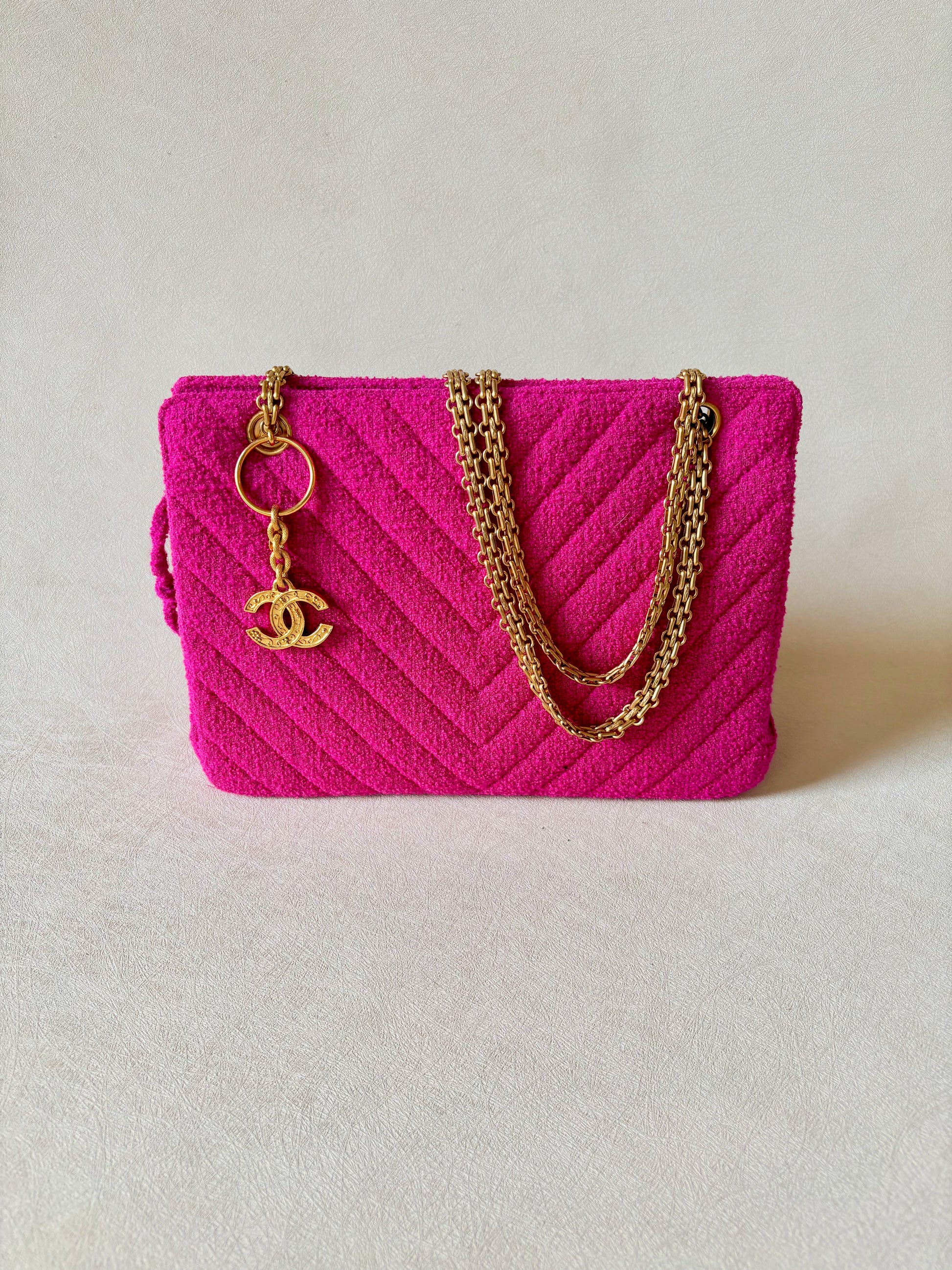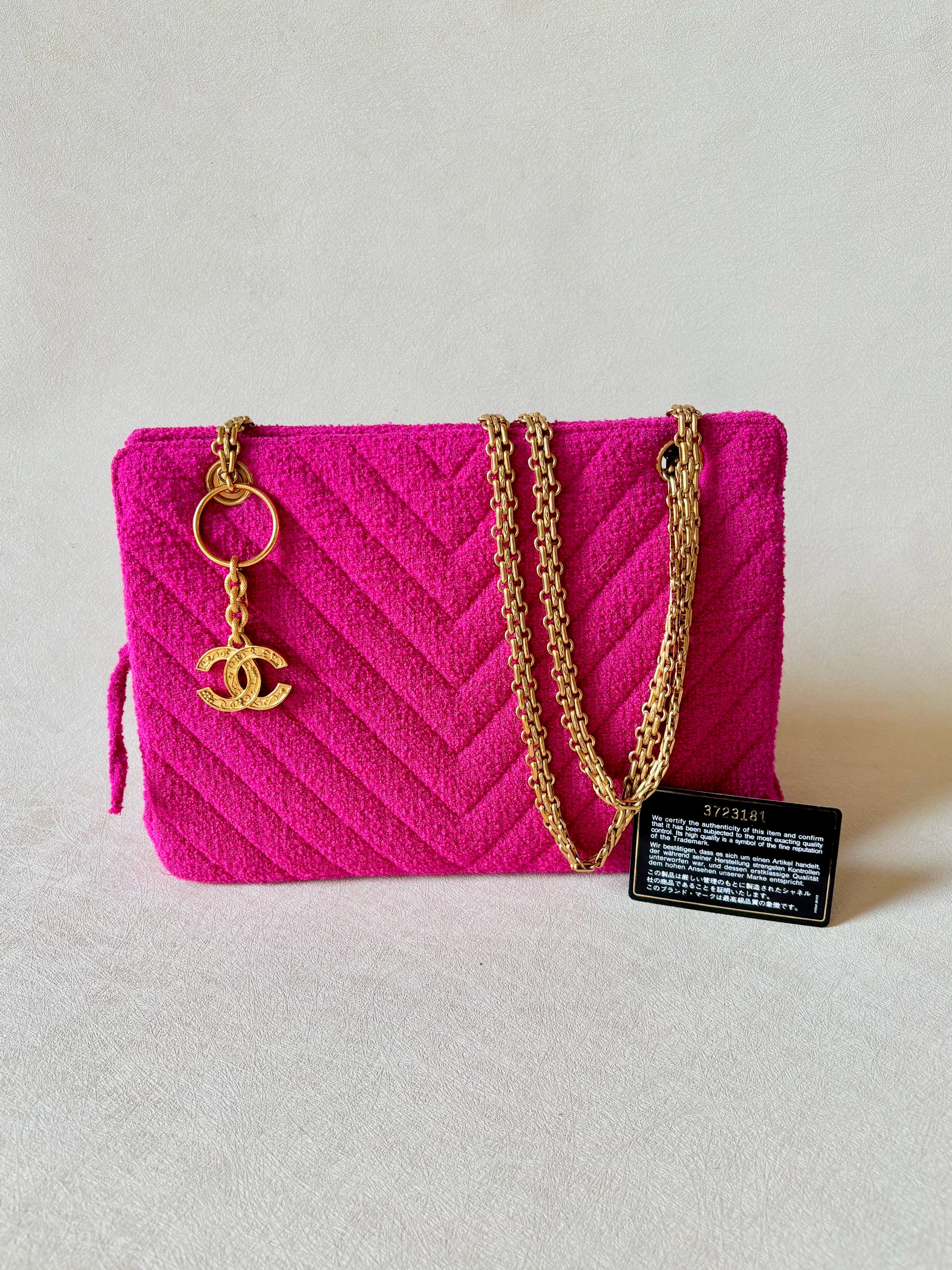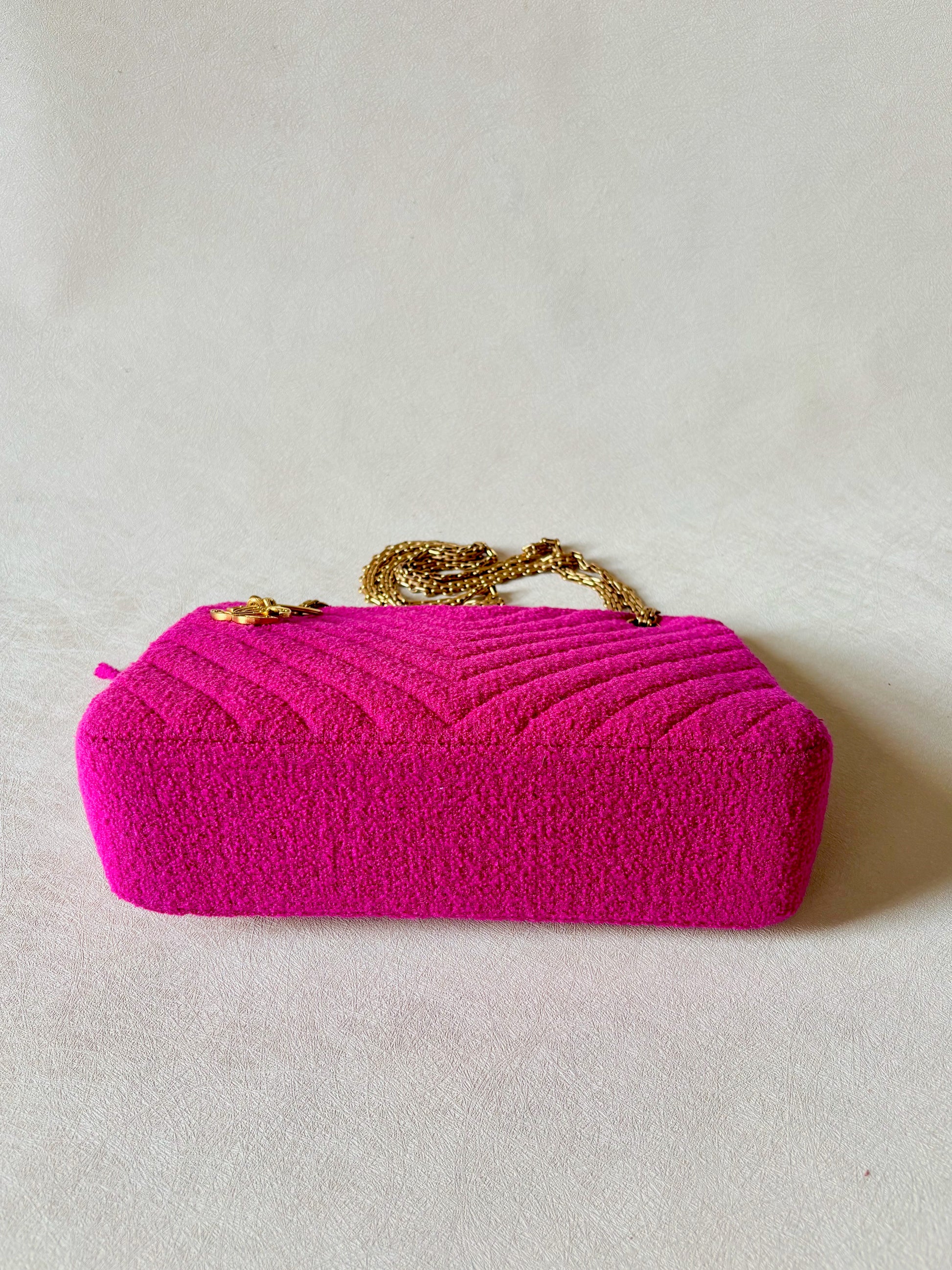 * Sac CHANEL en tweed à chevrons rose fuschia