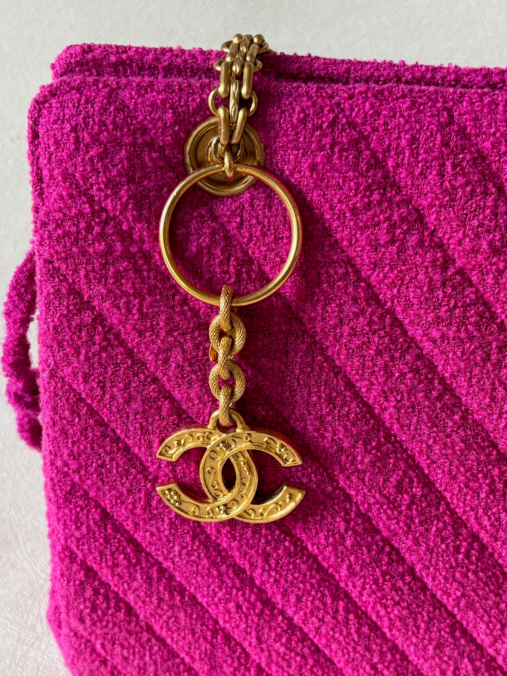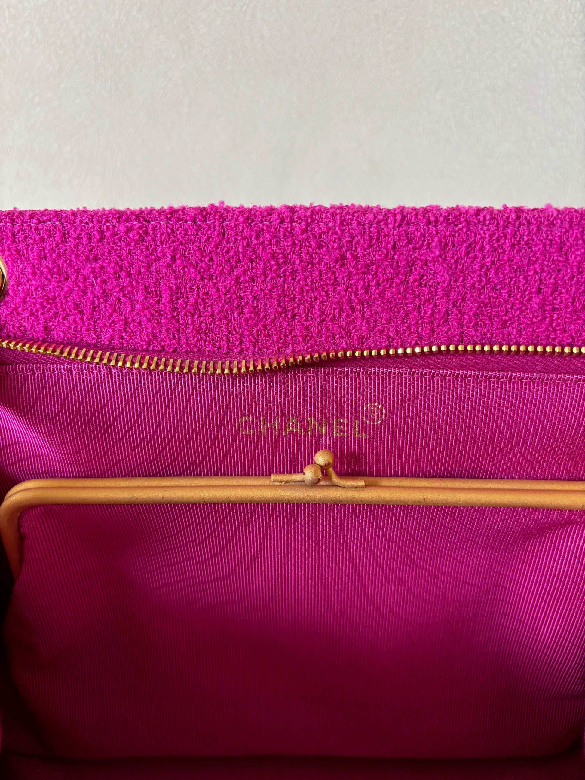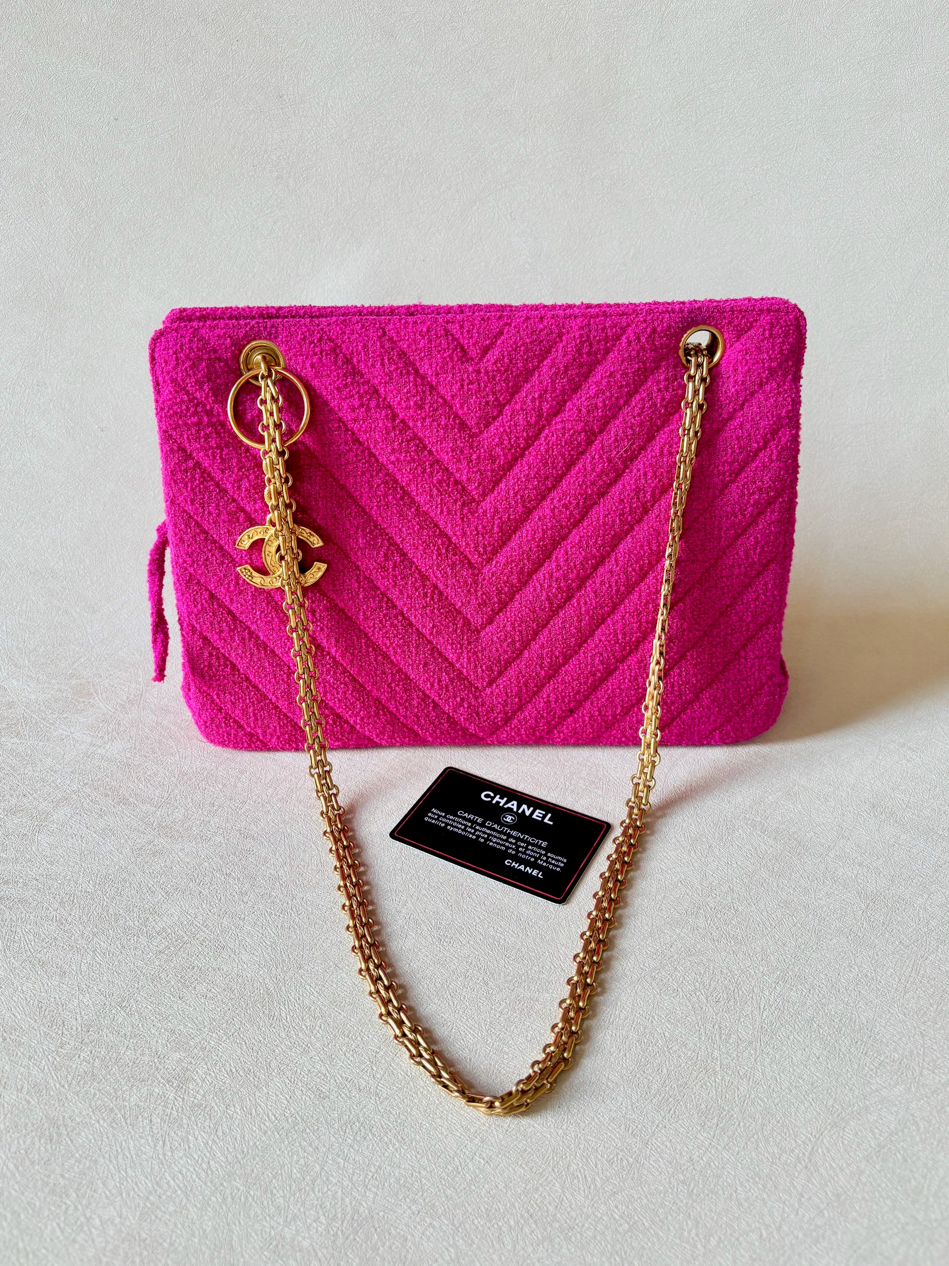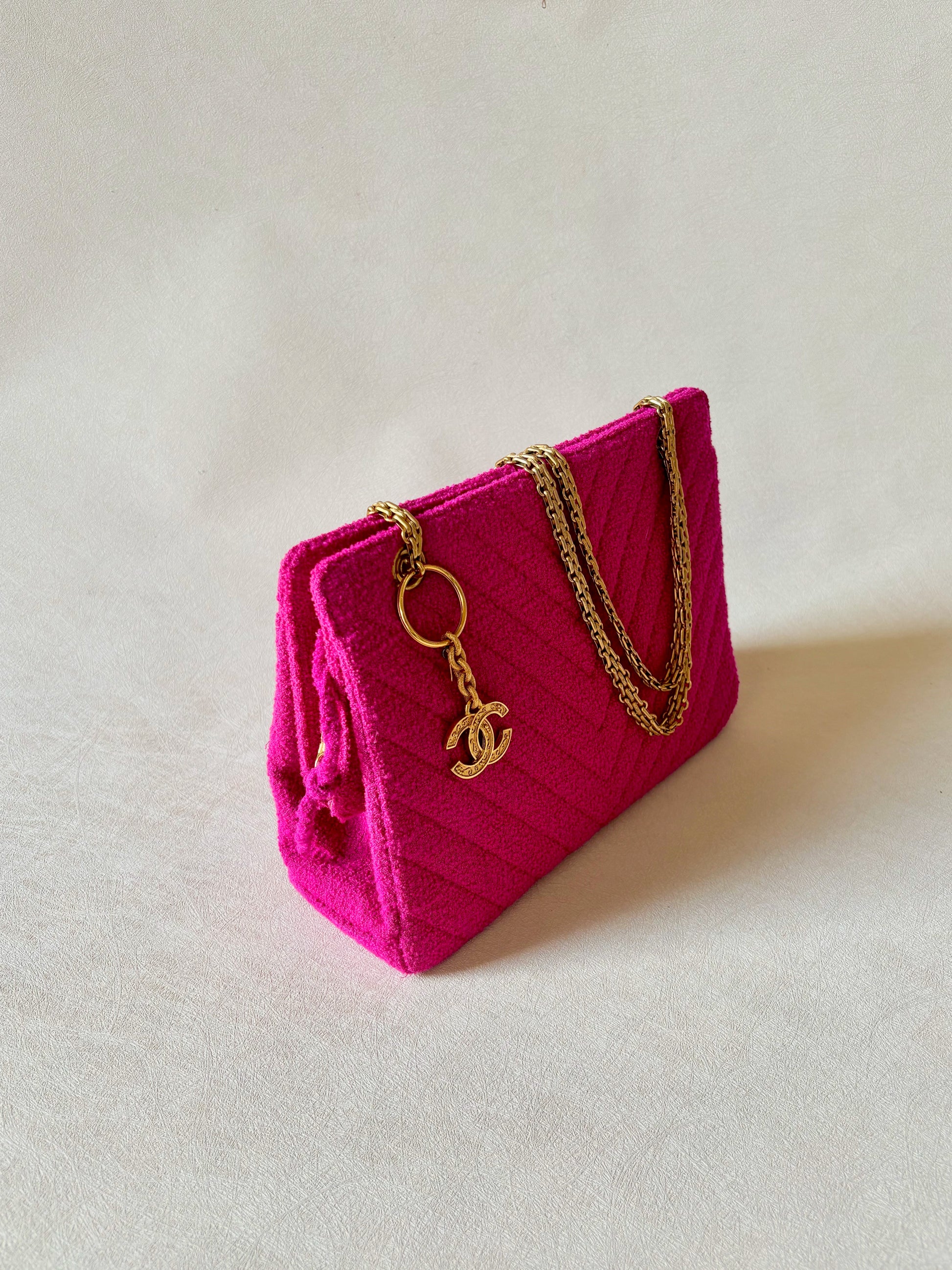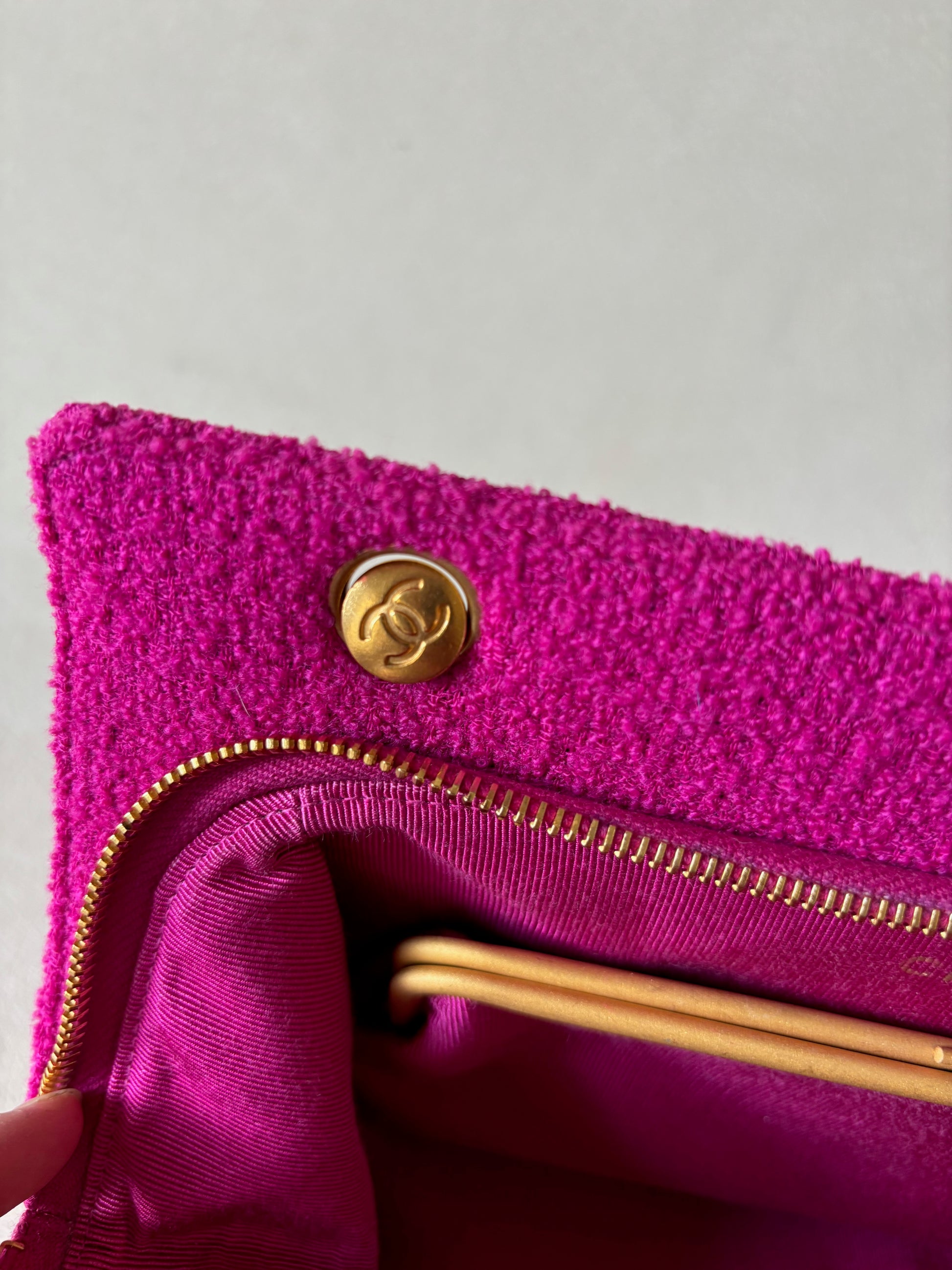 * Sac CHANEL en tweed à chevrons rose fuschia