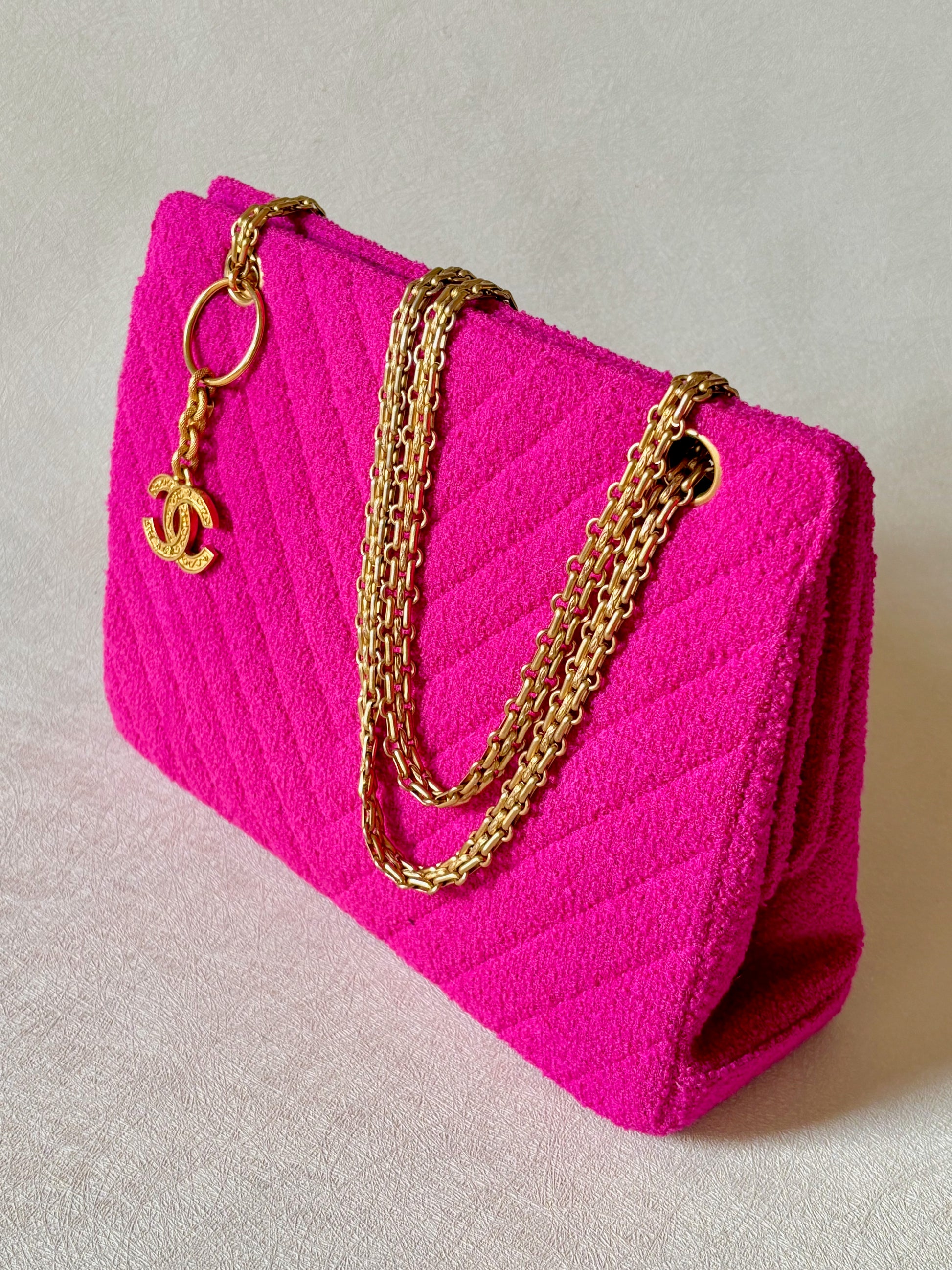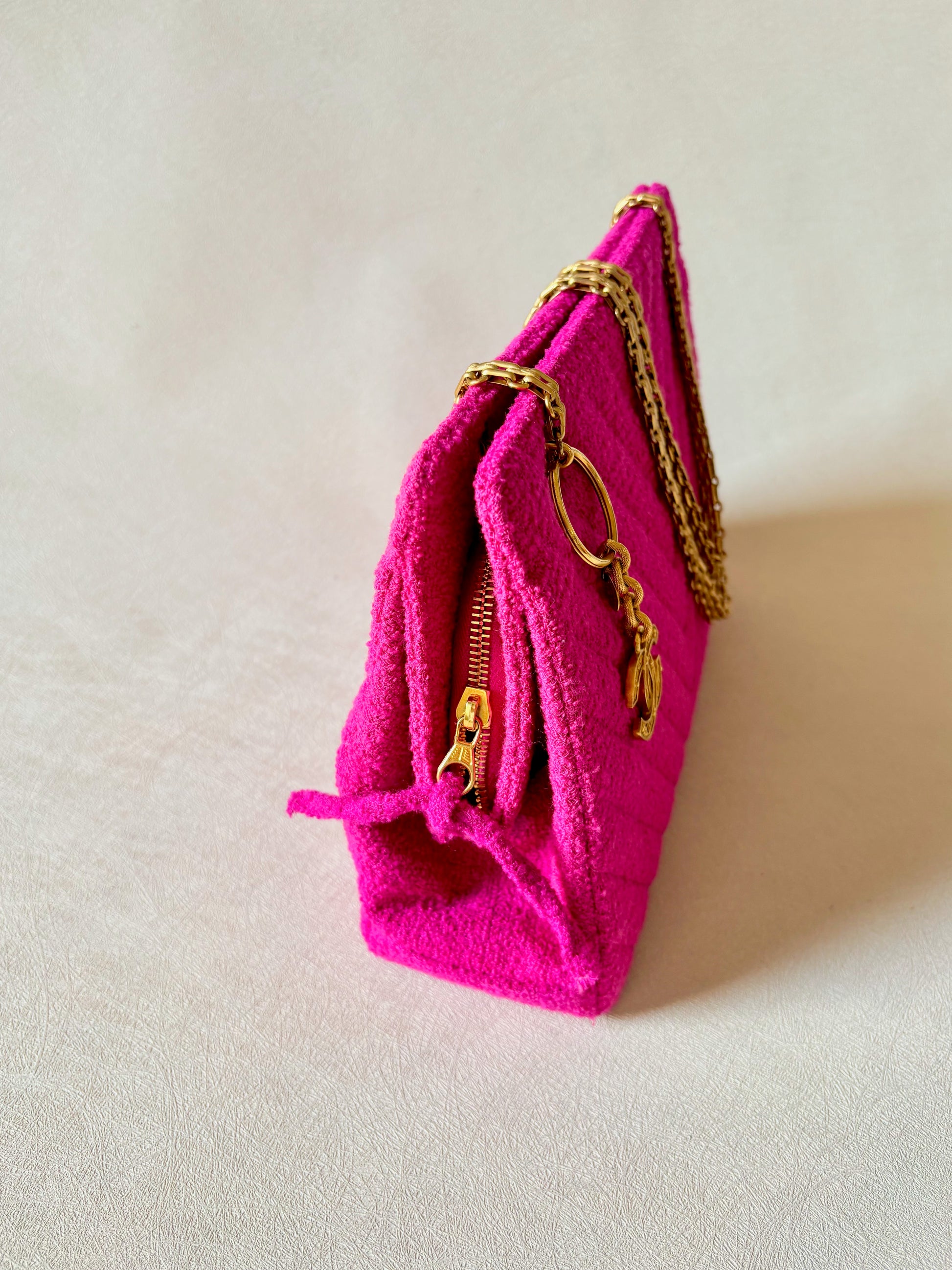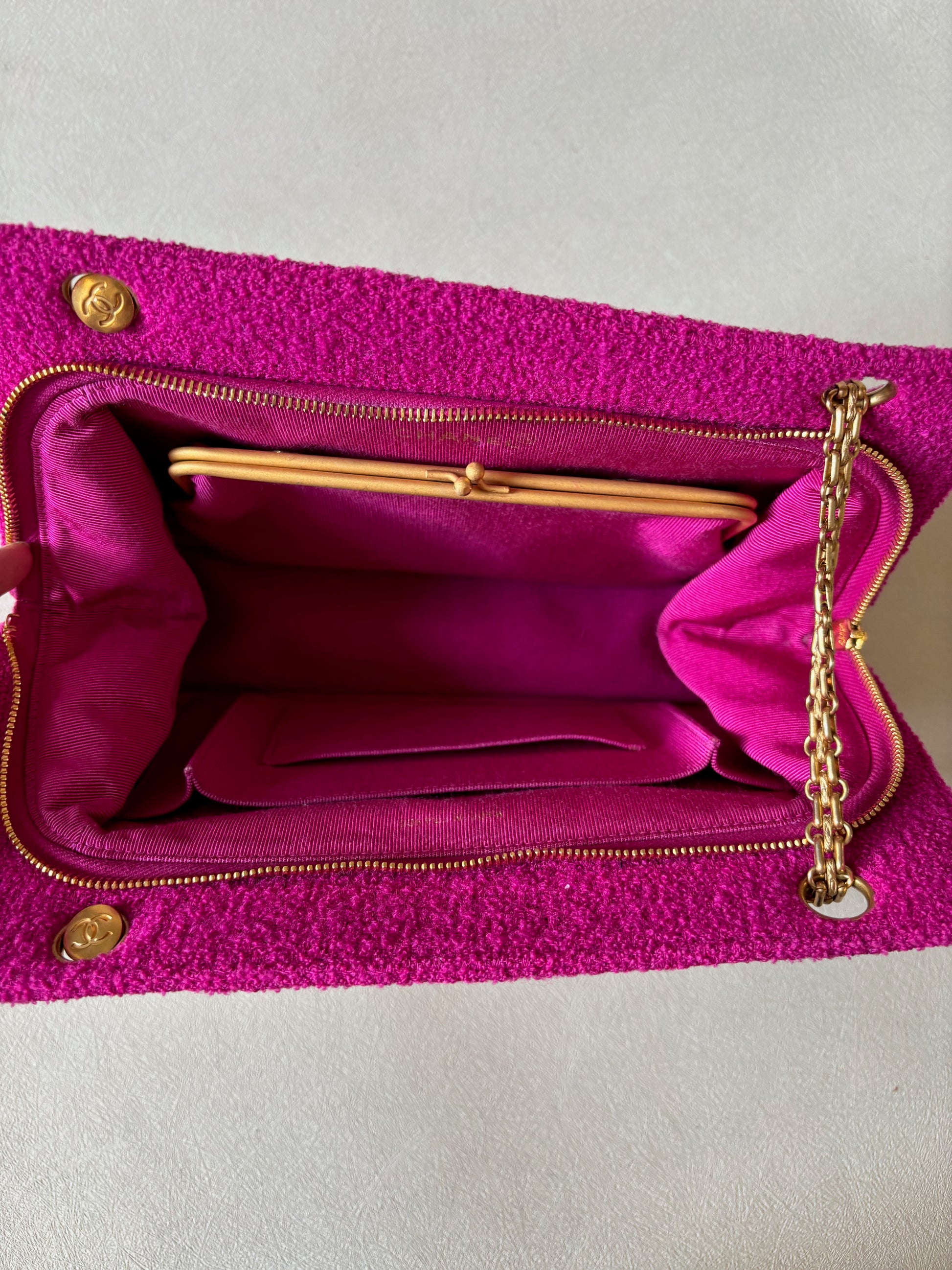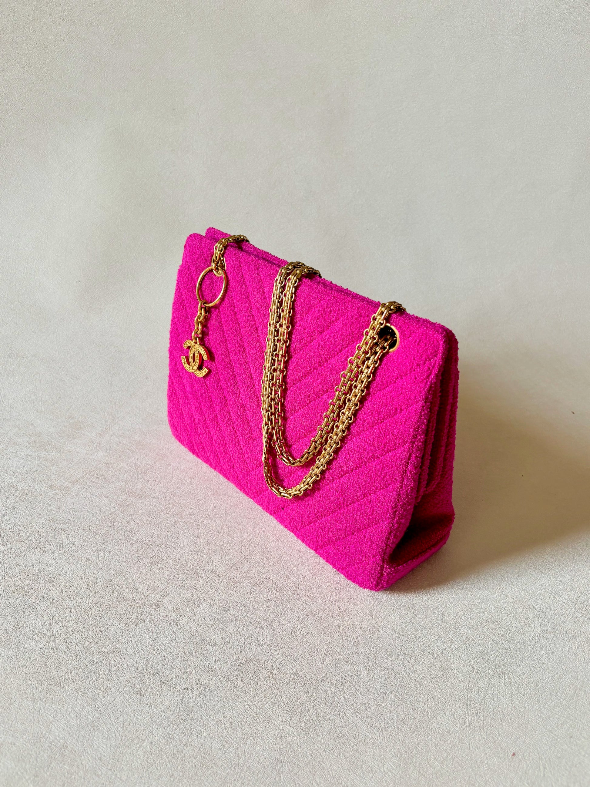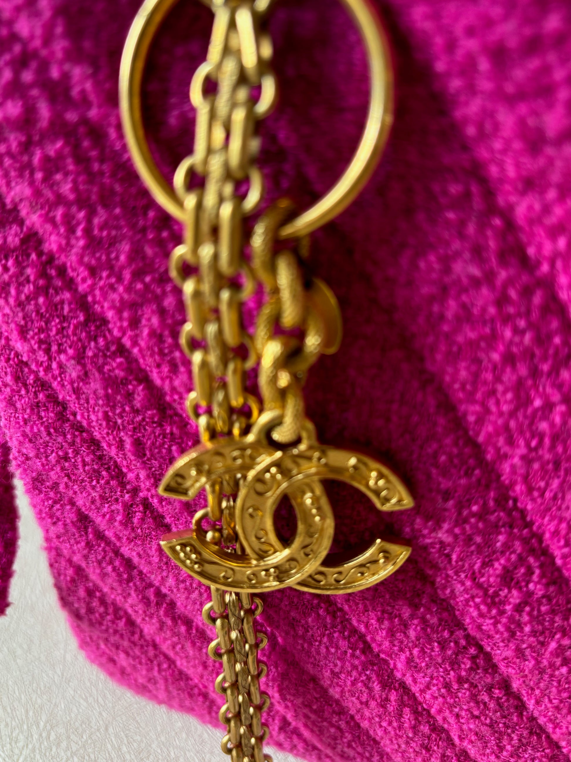 * Sac CHANEL en tweed à chevrons rose fuschia