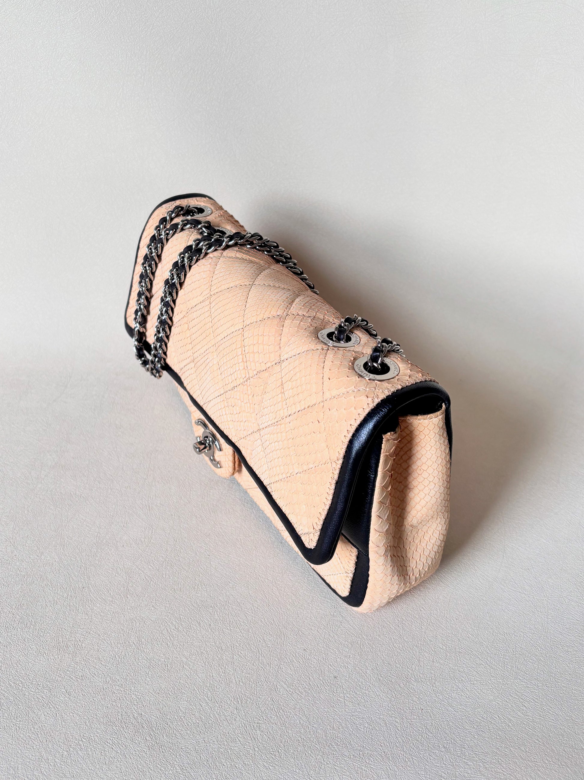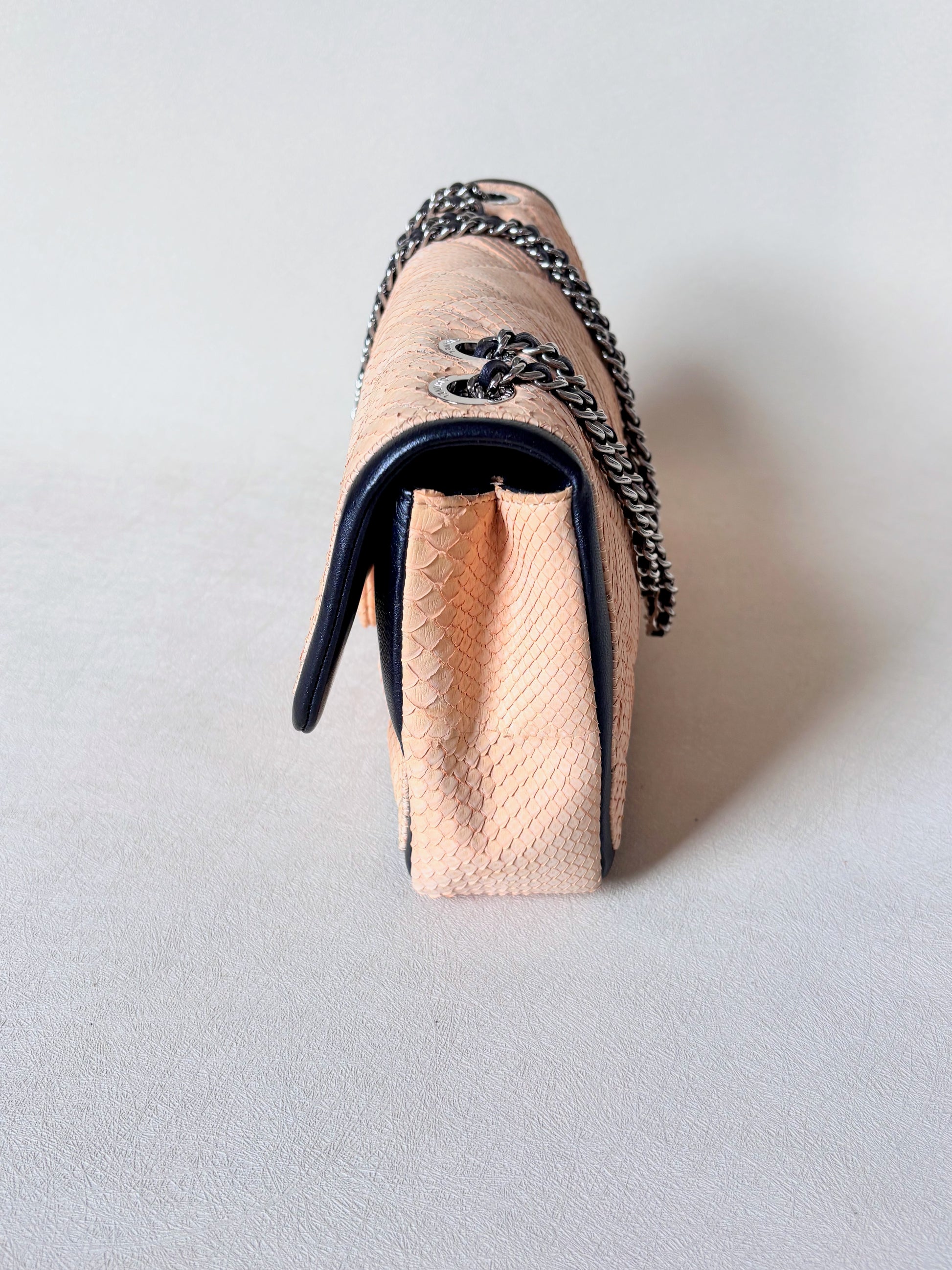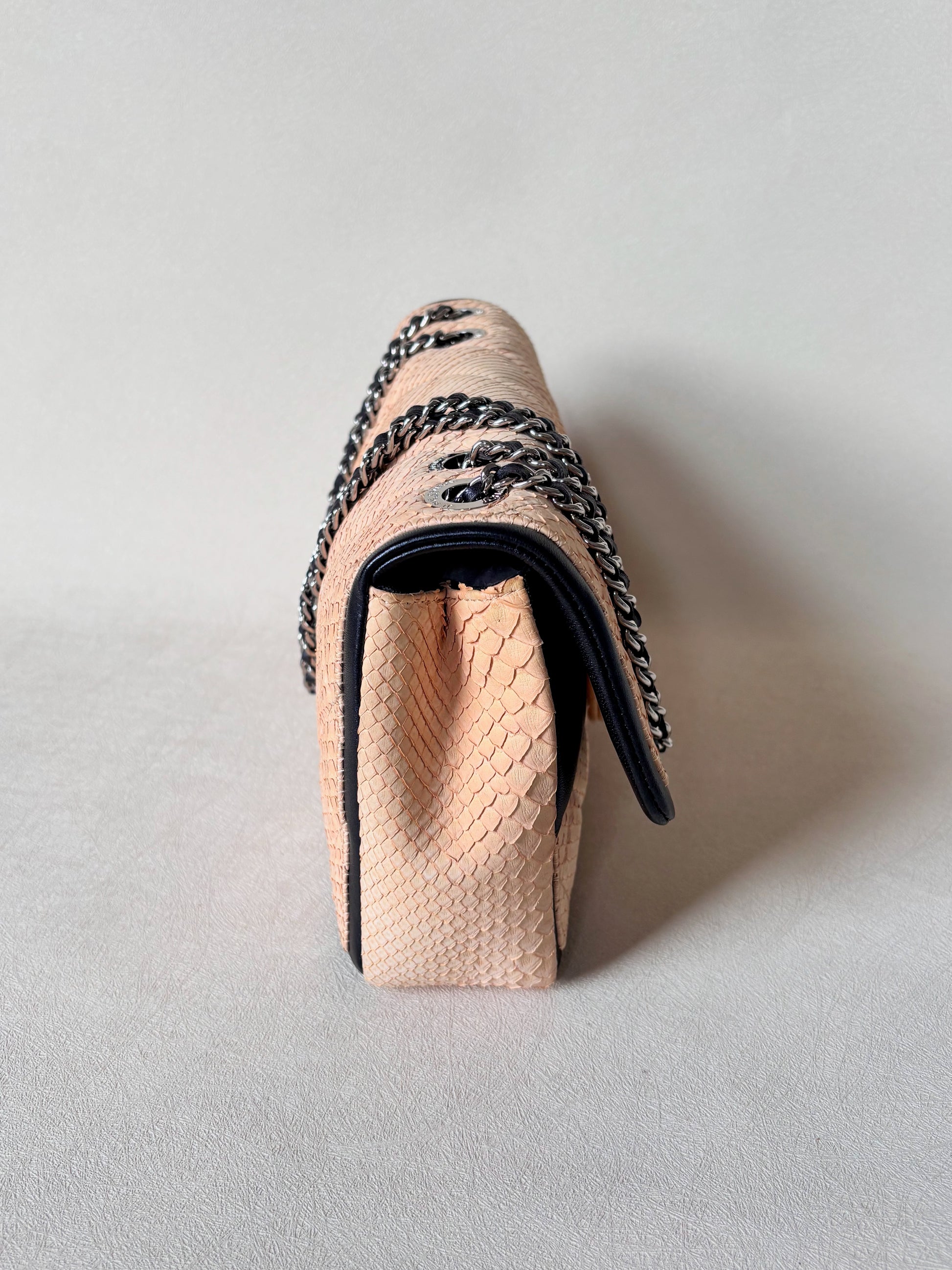 * Bandoulière en cuir noir et métal argenté entrelacés