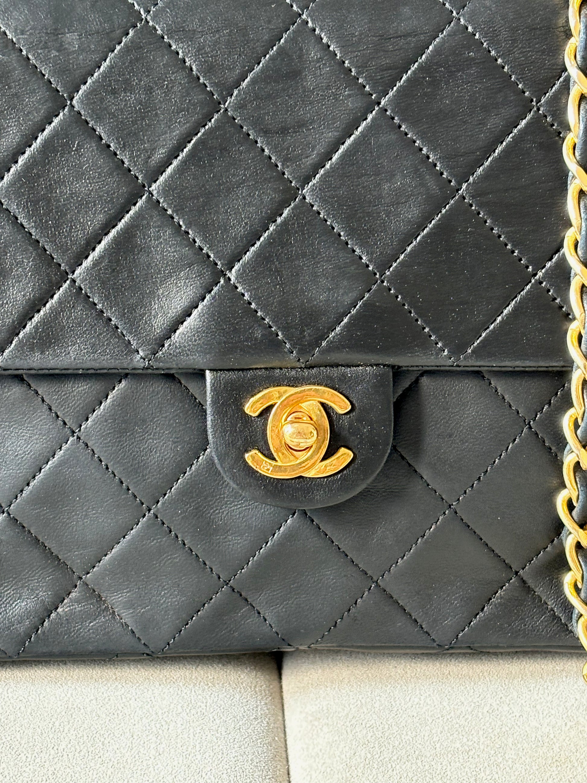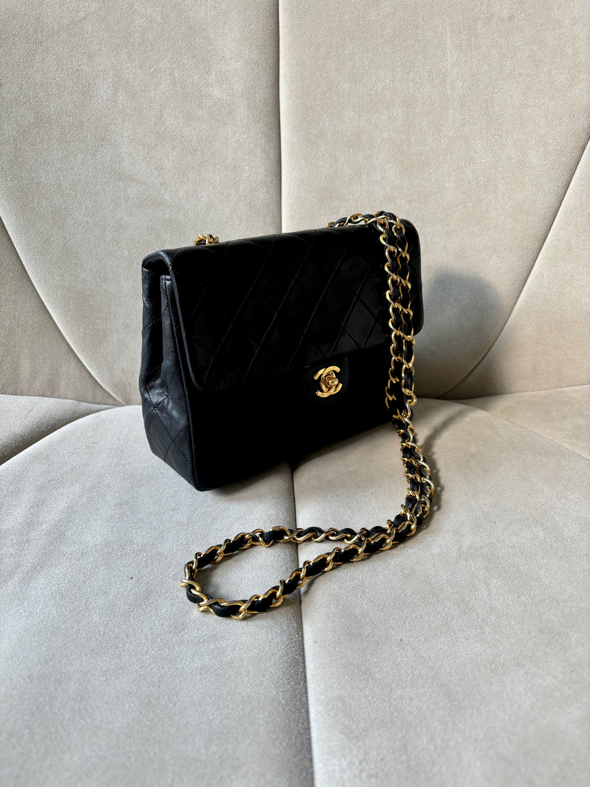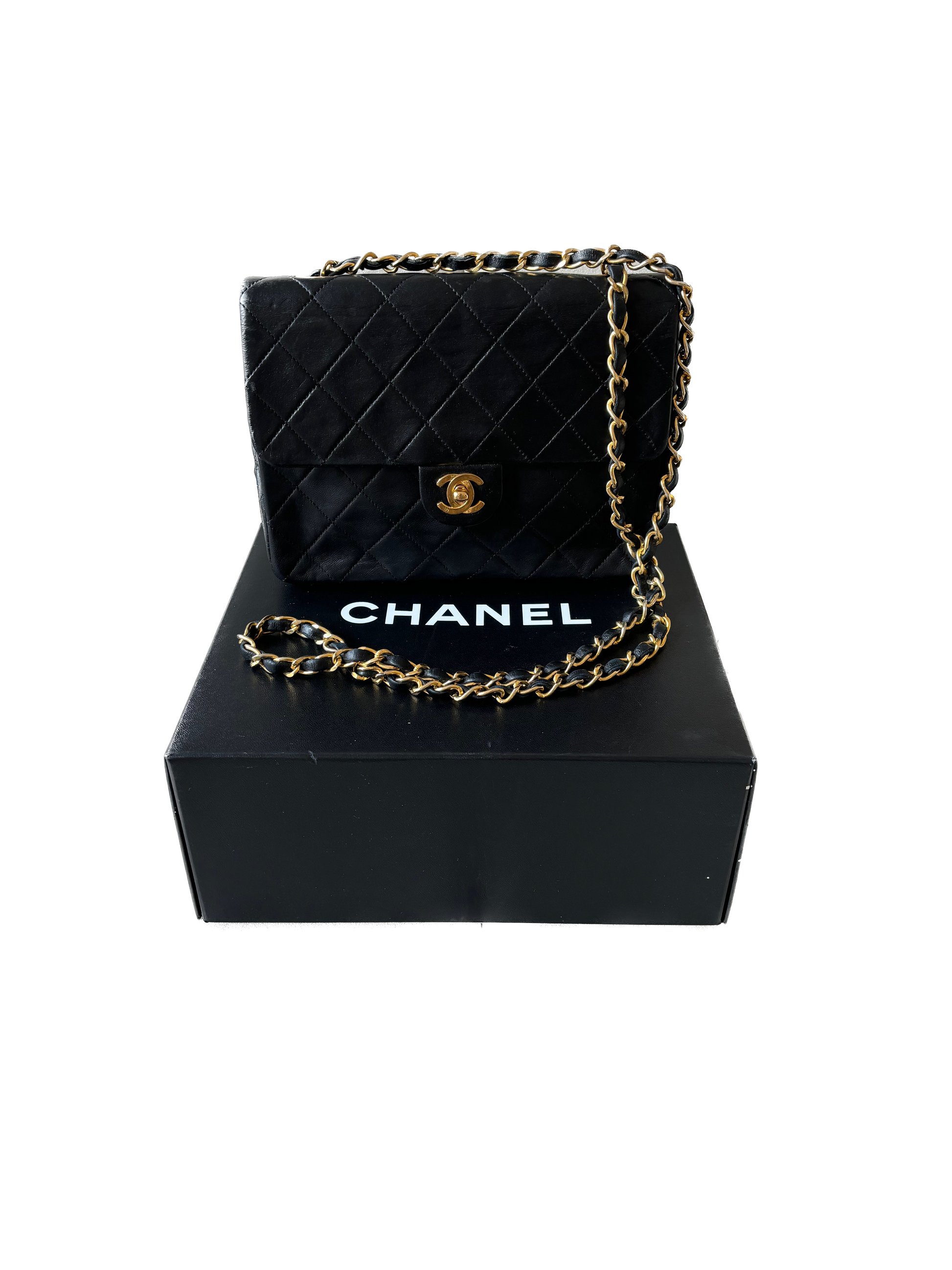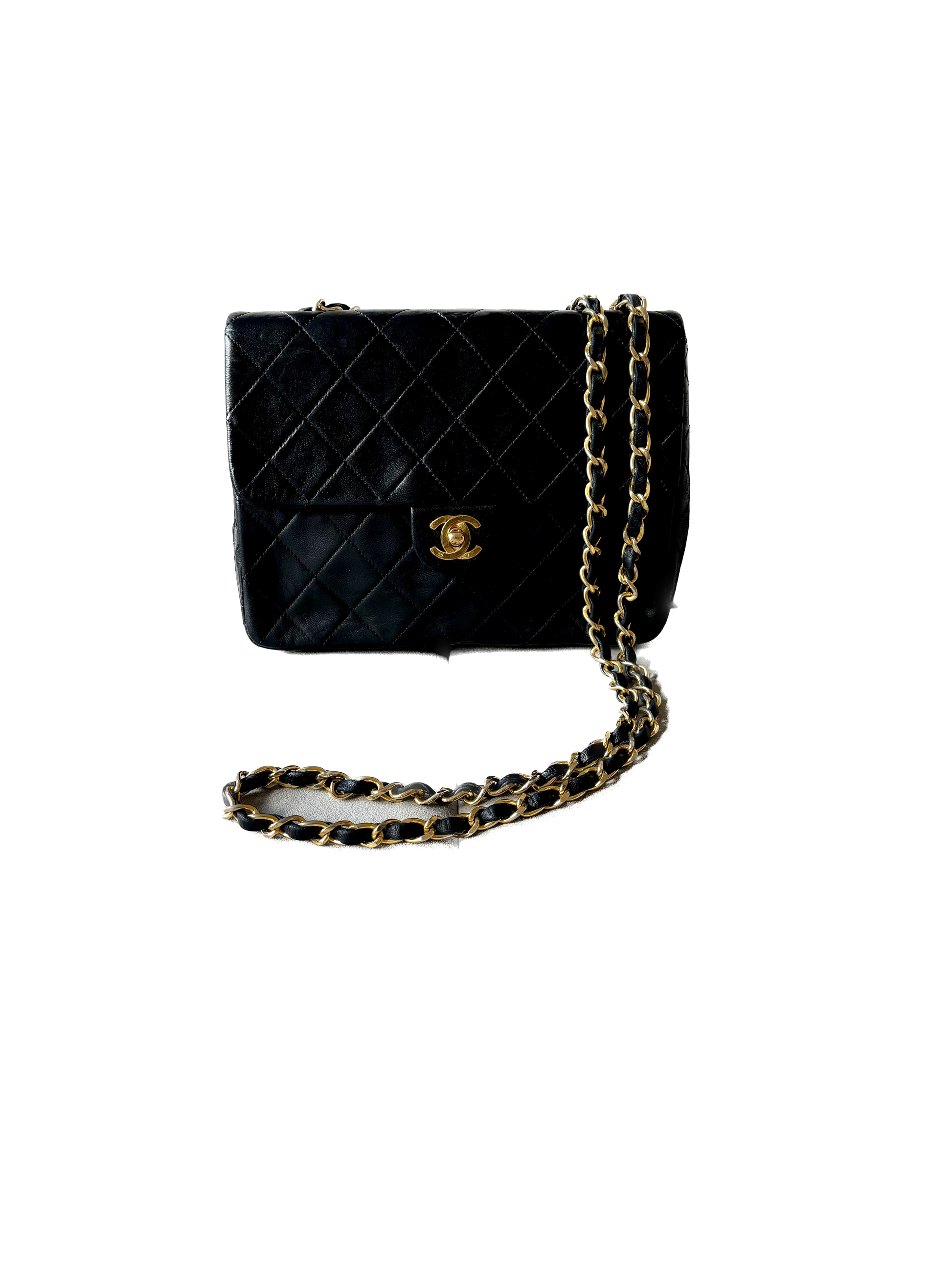 * En cuir d’agneau noir matelassé et bijouterie en métal doré
