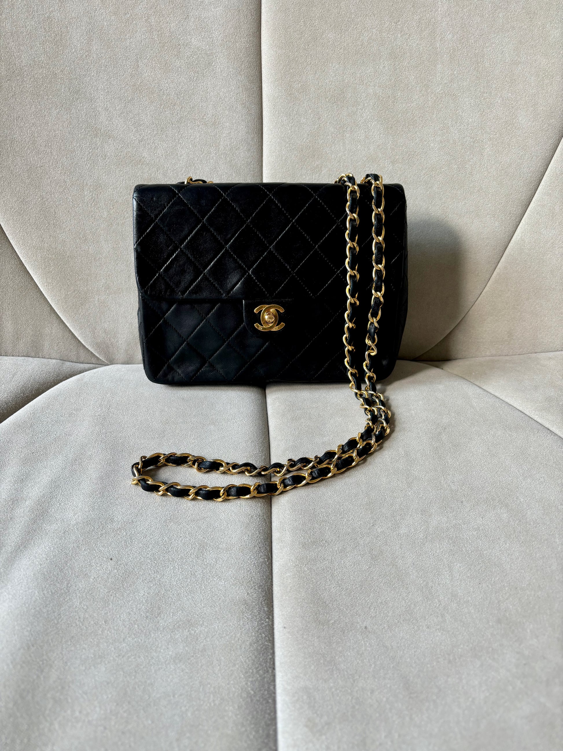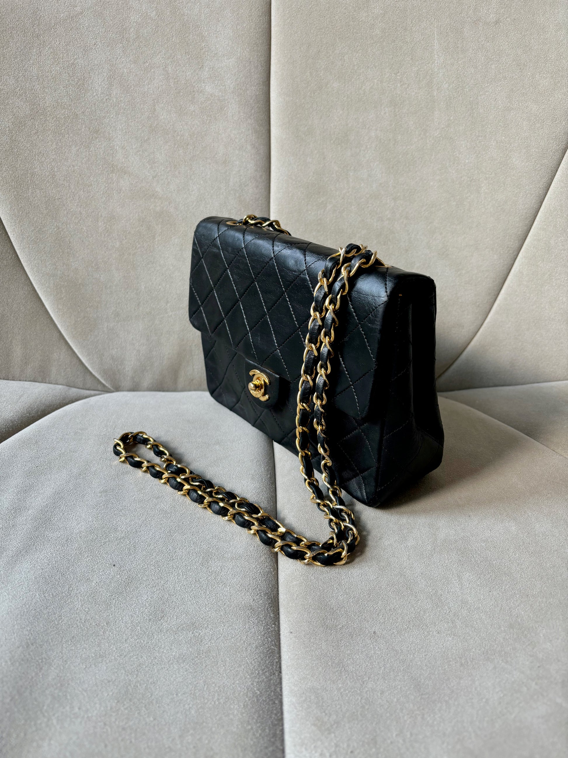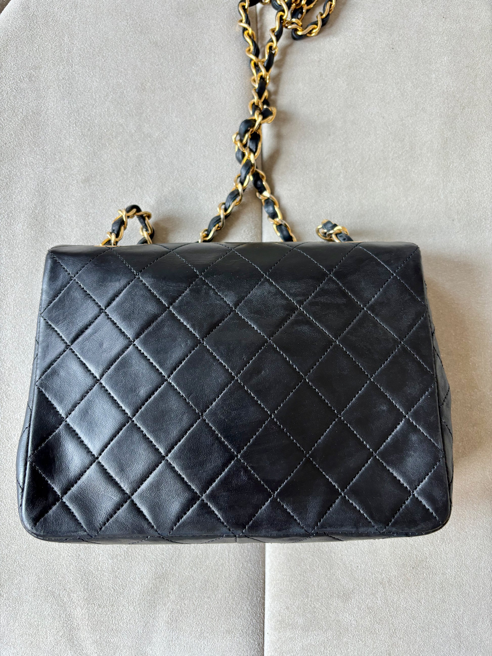 * En cuir d’agneau noir matelassé et bijouterie en métal doré