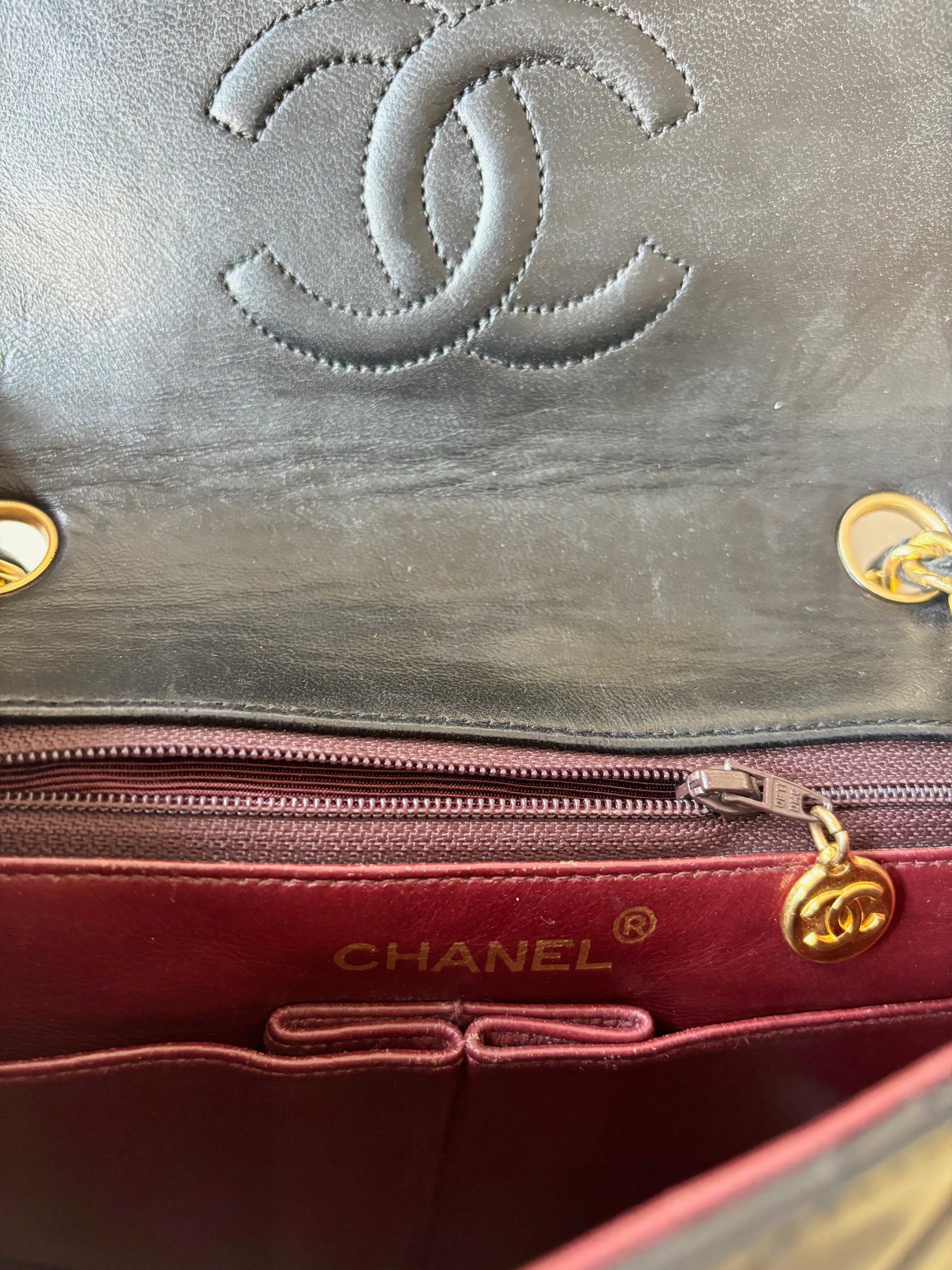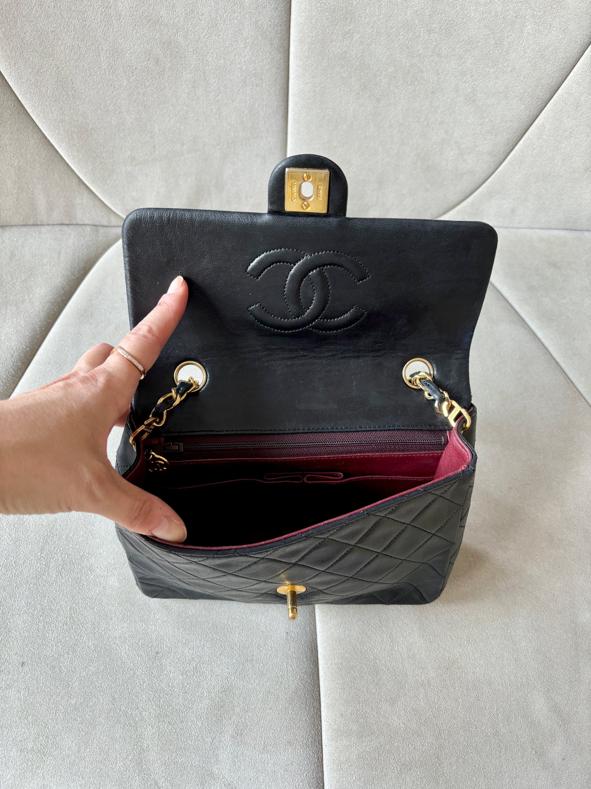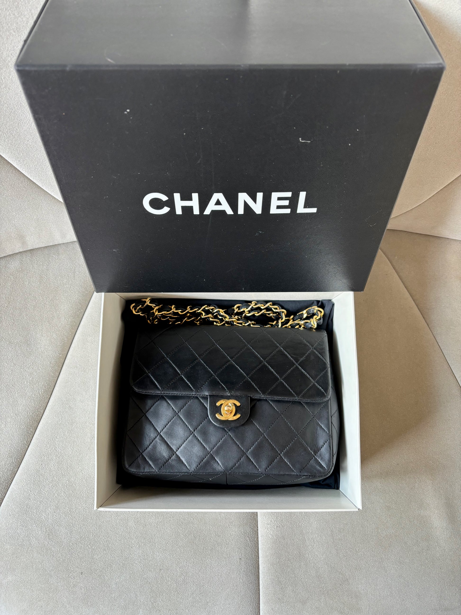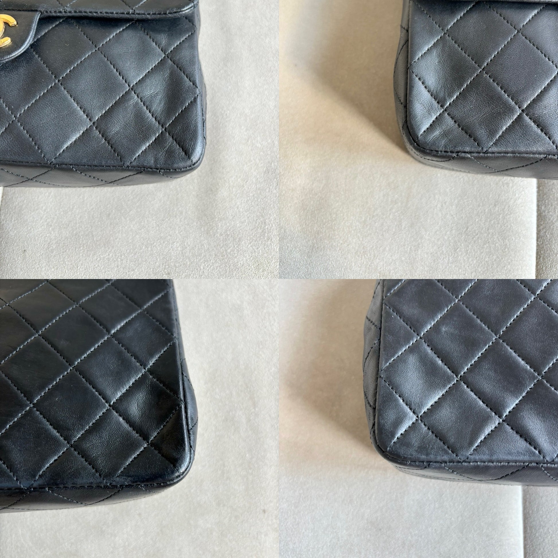 * En cuir d’agneau noir matelassé et bijouterie en métal doré