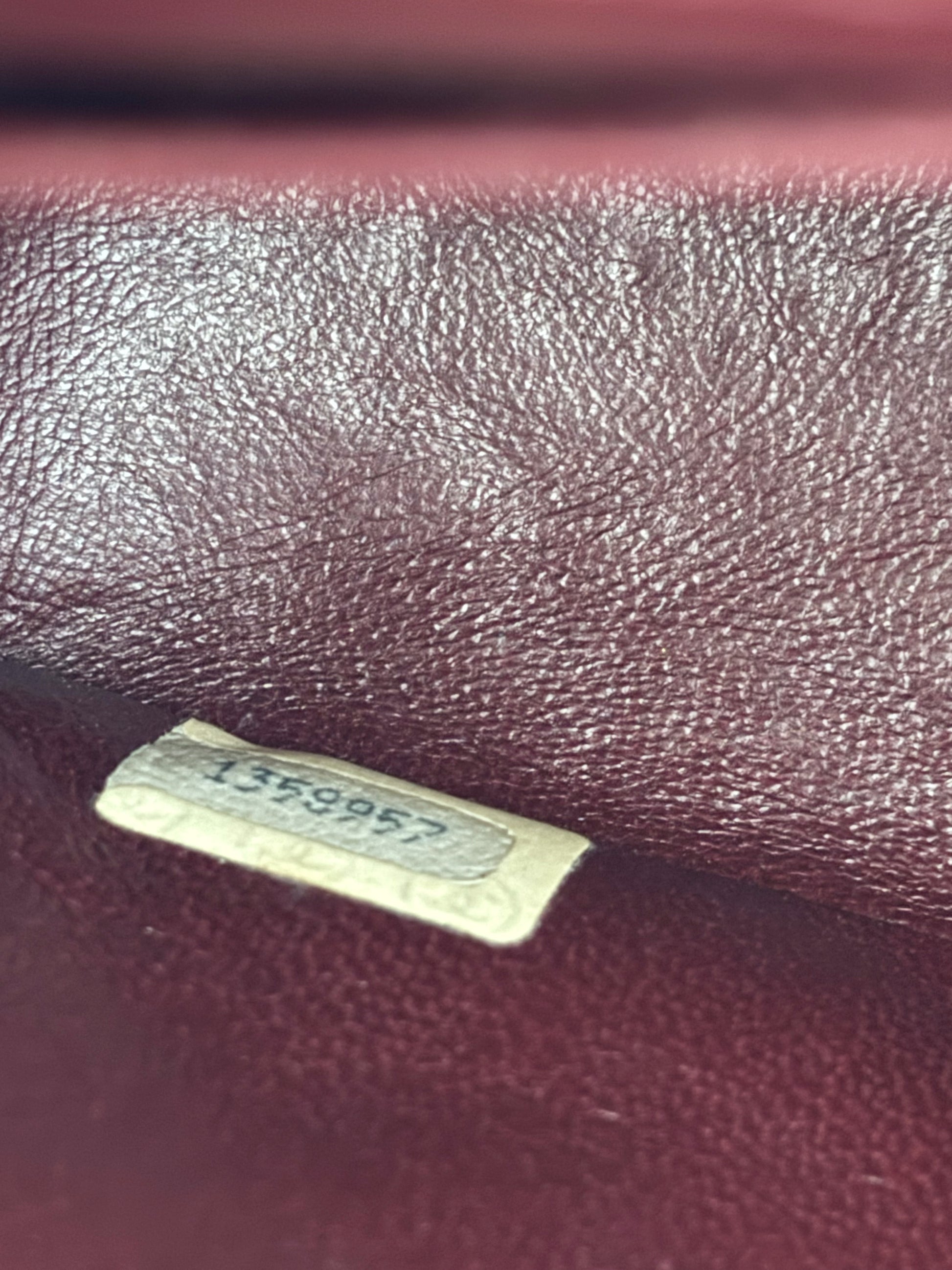 * Poche principale doublée de cuir rouge bordeaux, double poche plaquée intérieure