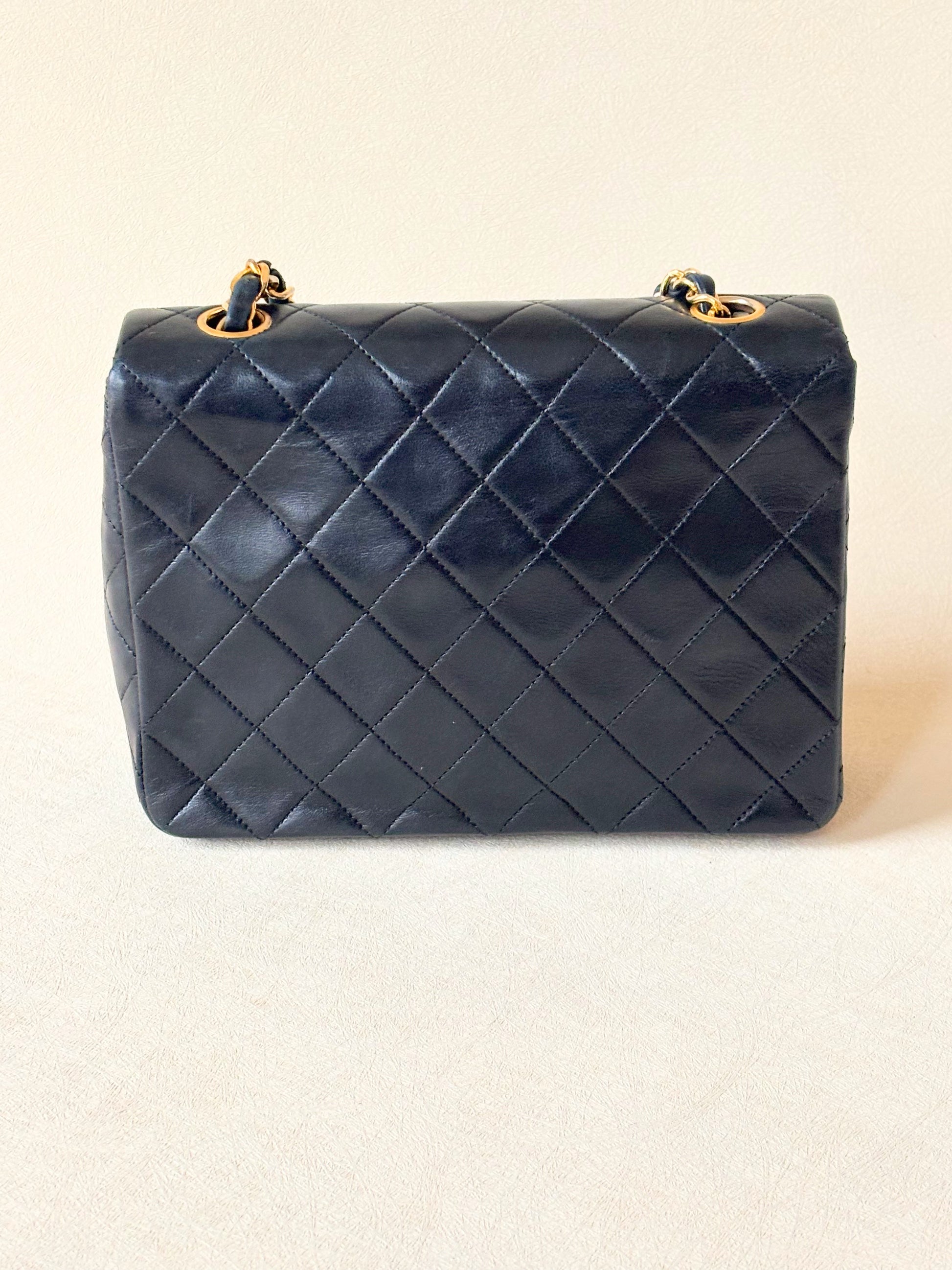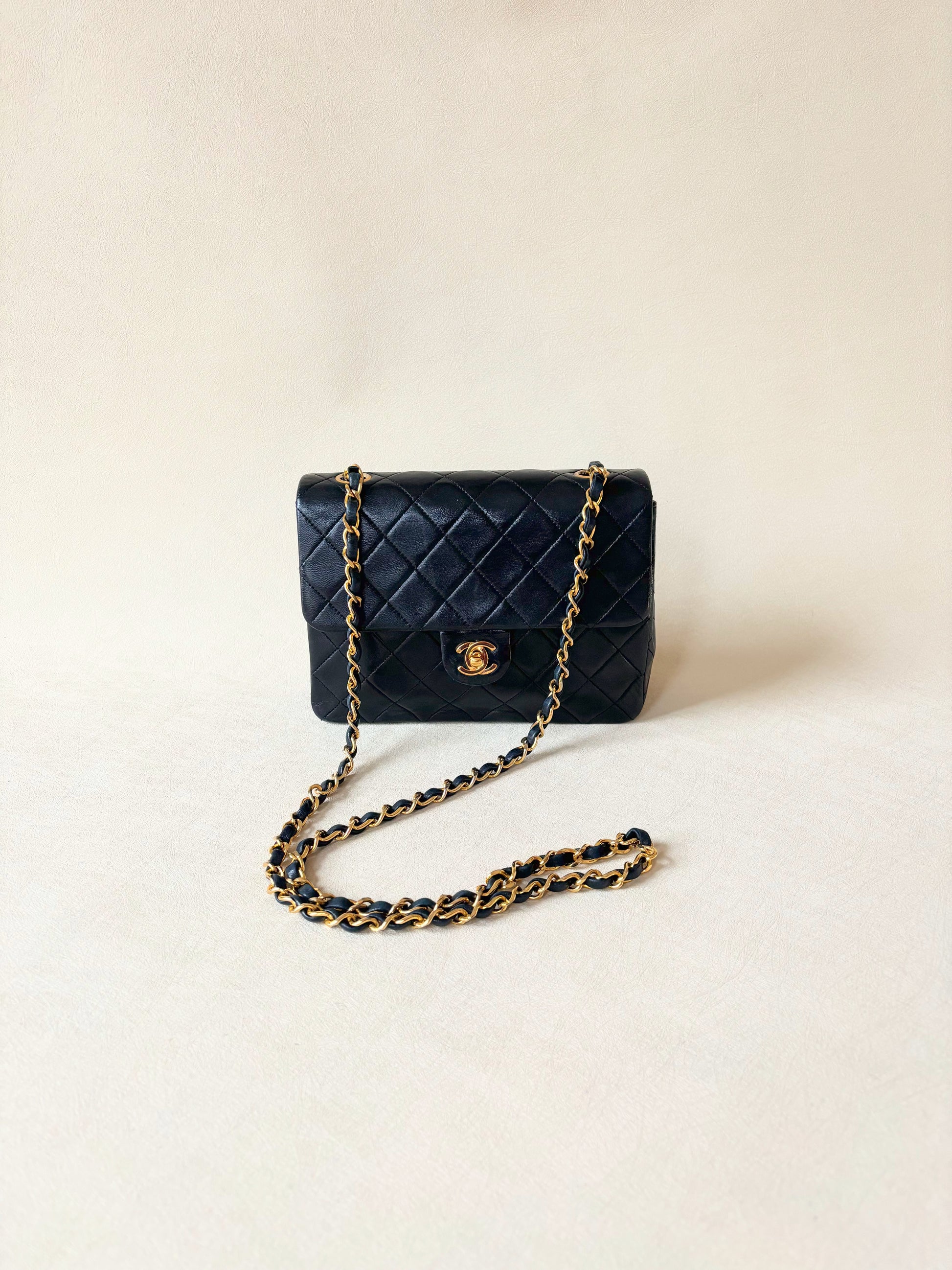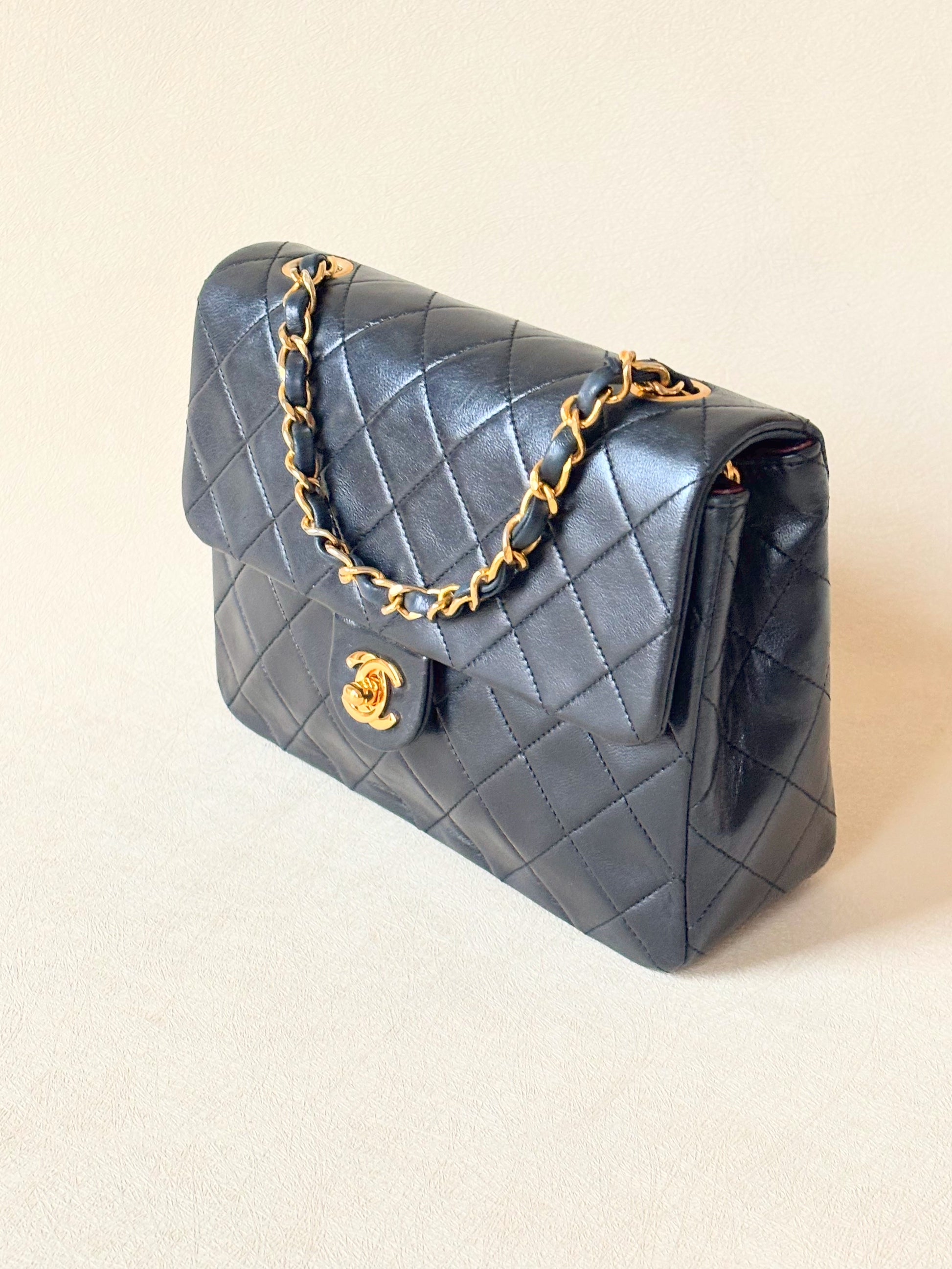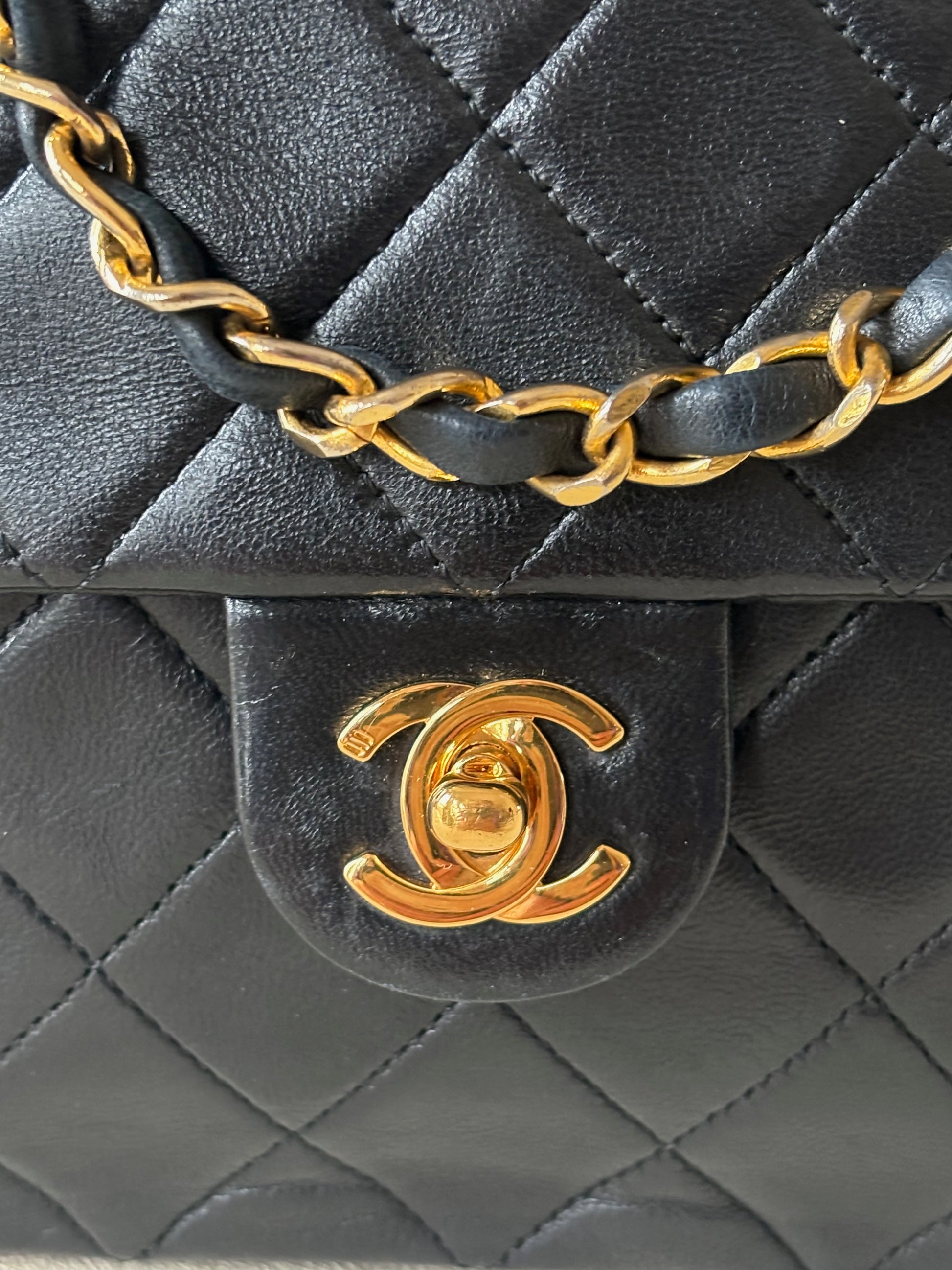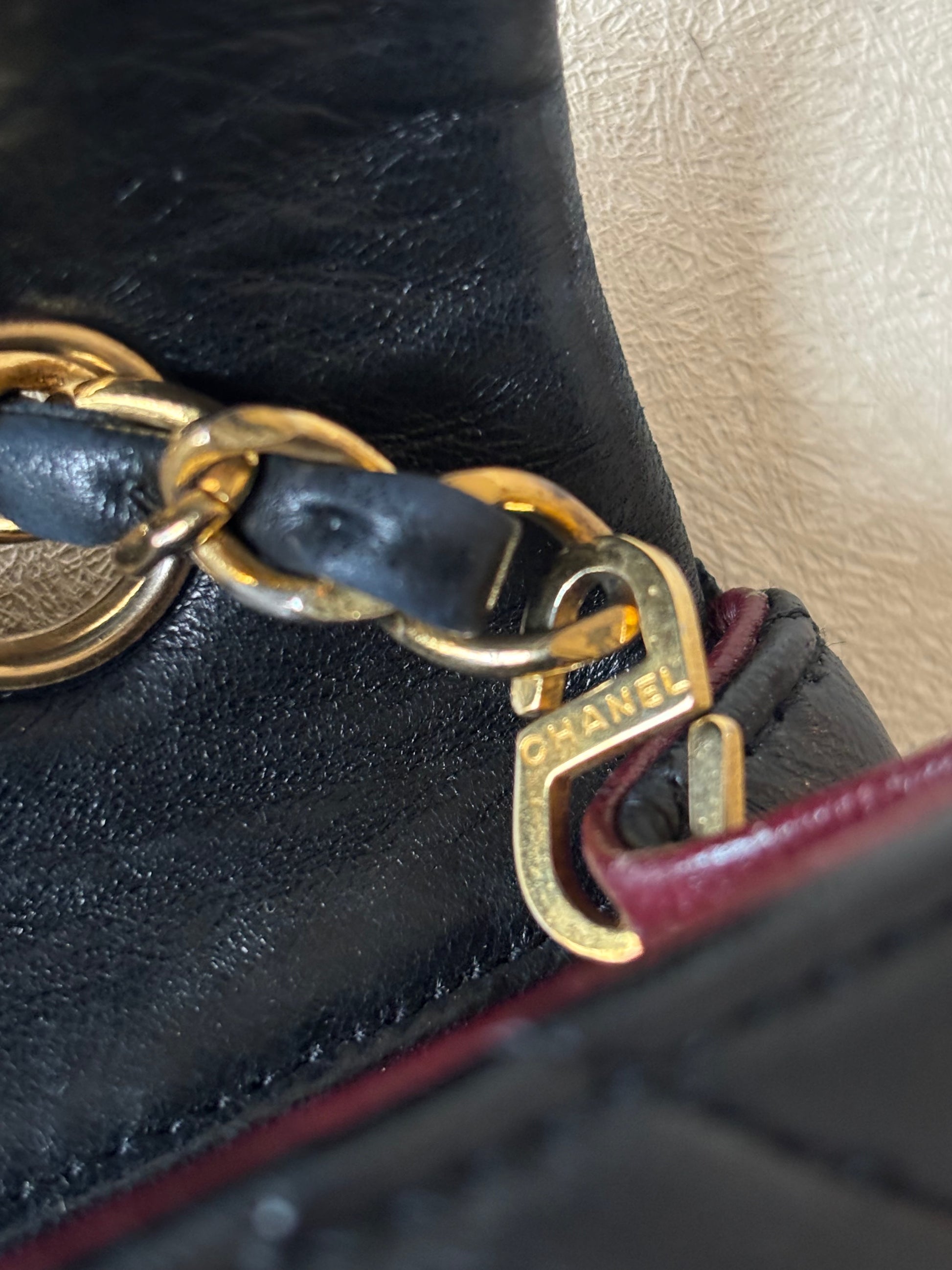 * En cuir d’agneau noir matelassé et bijouterie en métal doré