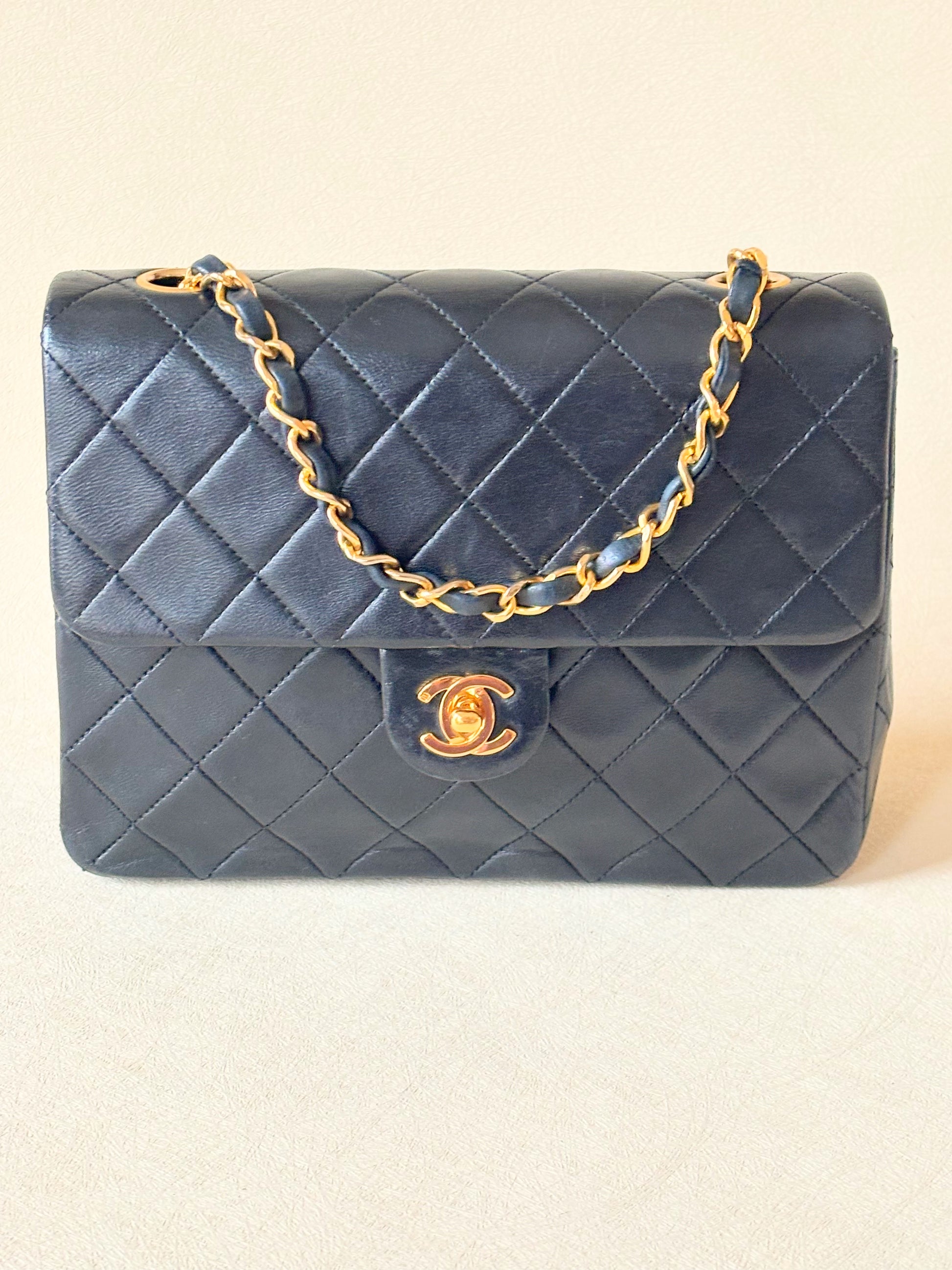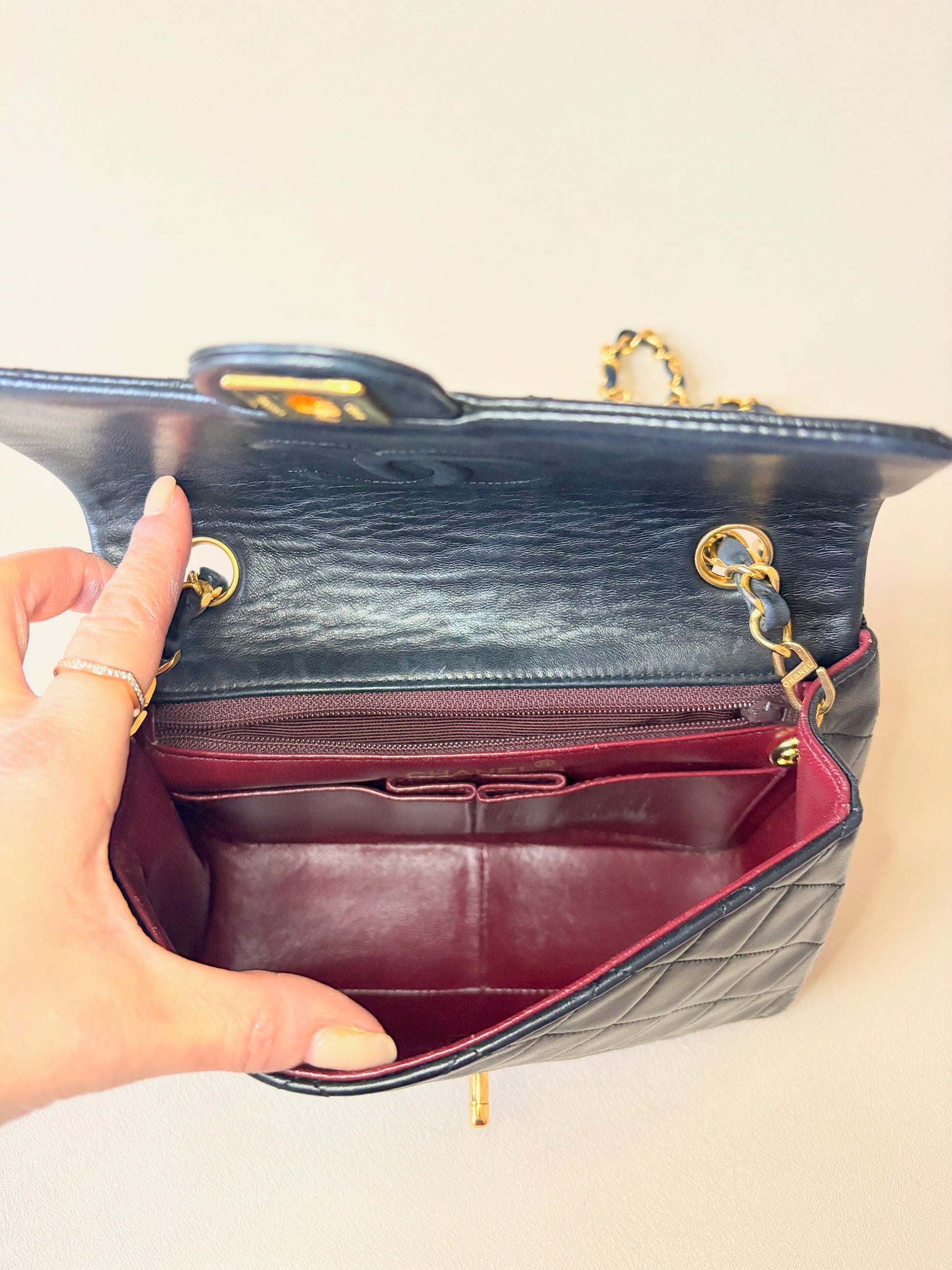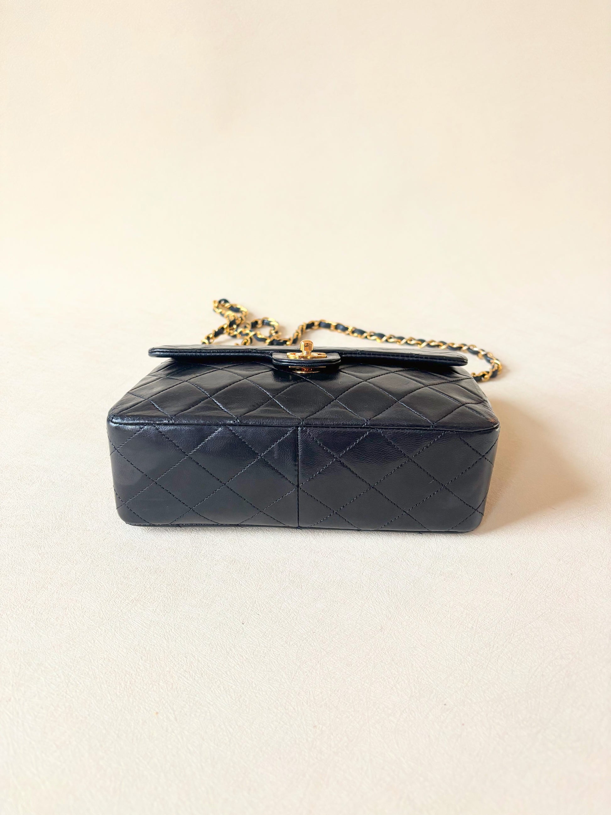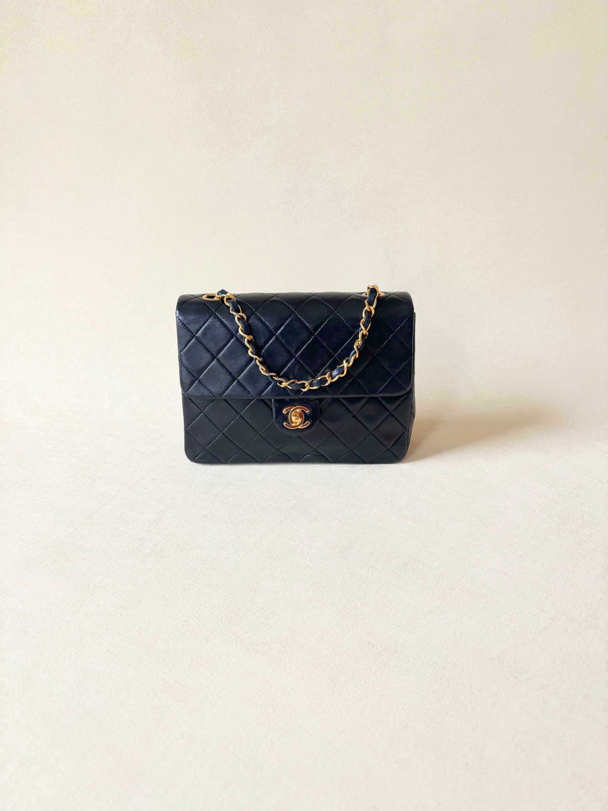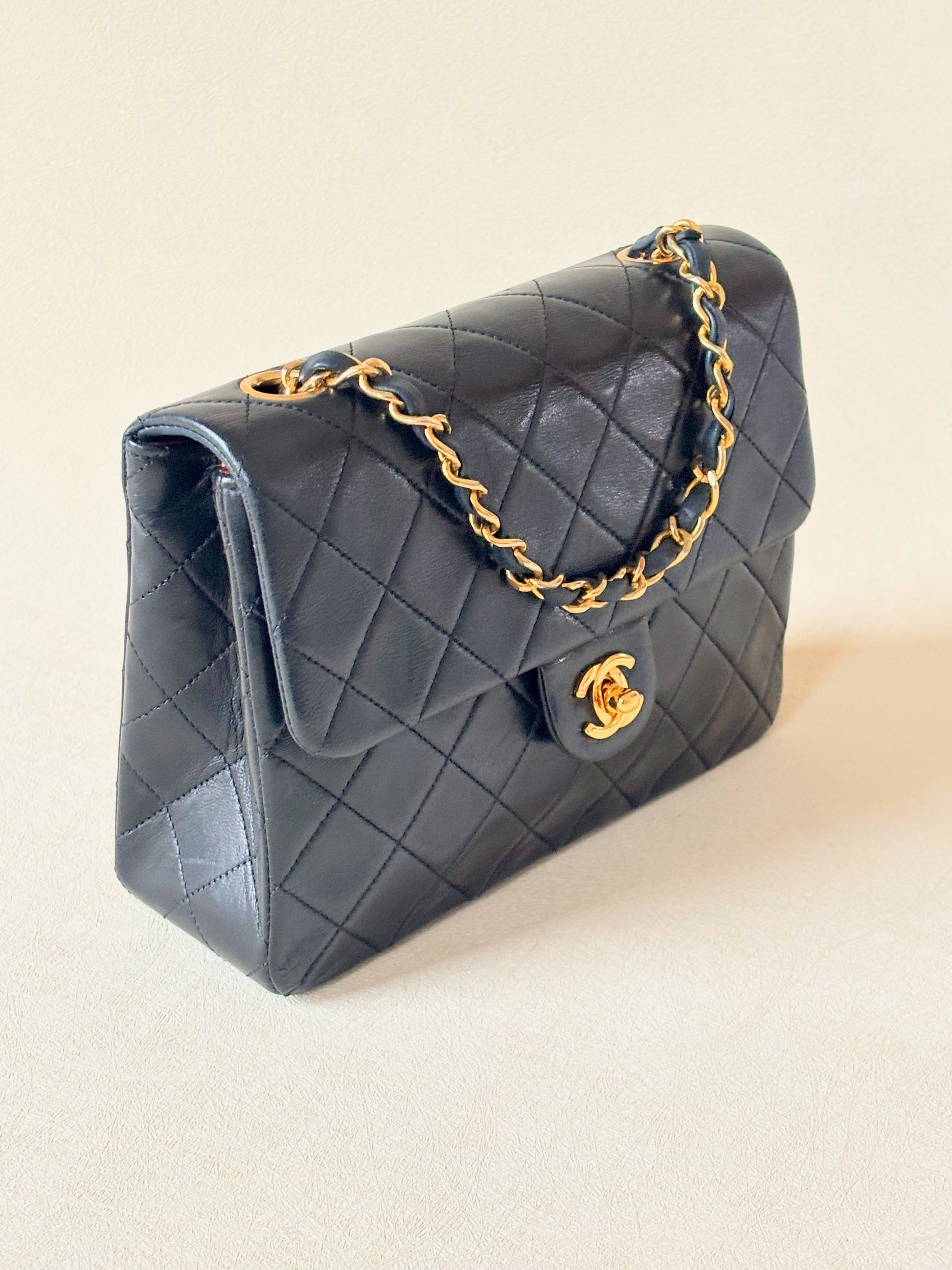 * En cuir d’agneau noir matelassé et bijouterie en métal doré