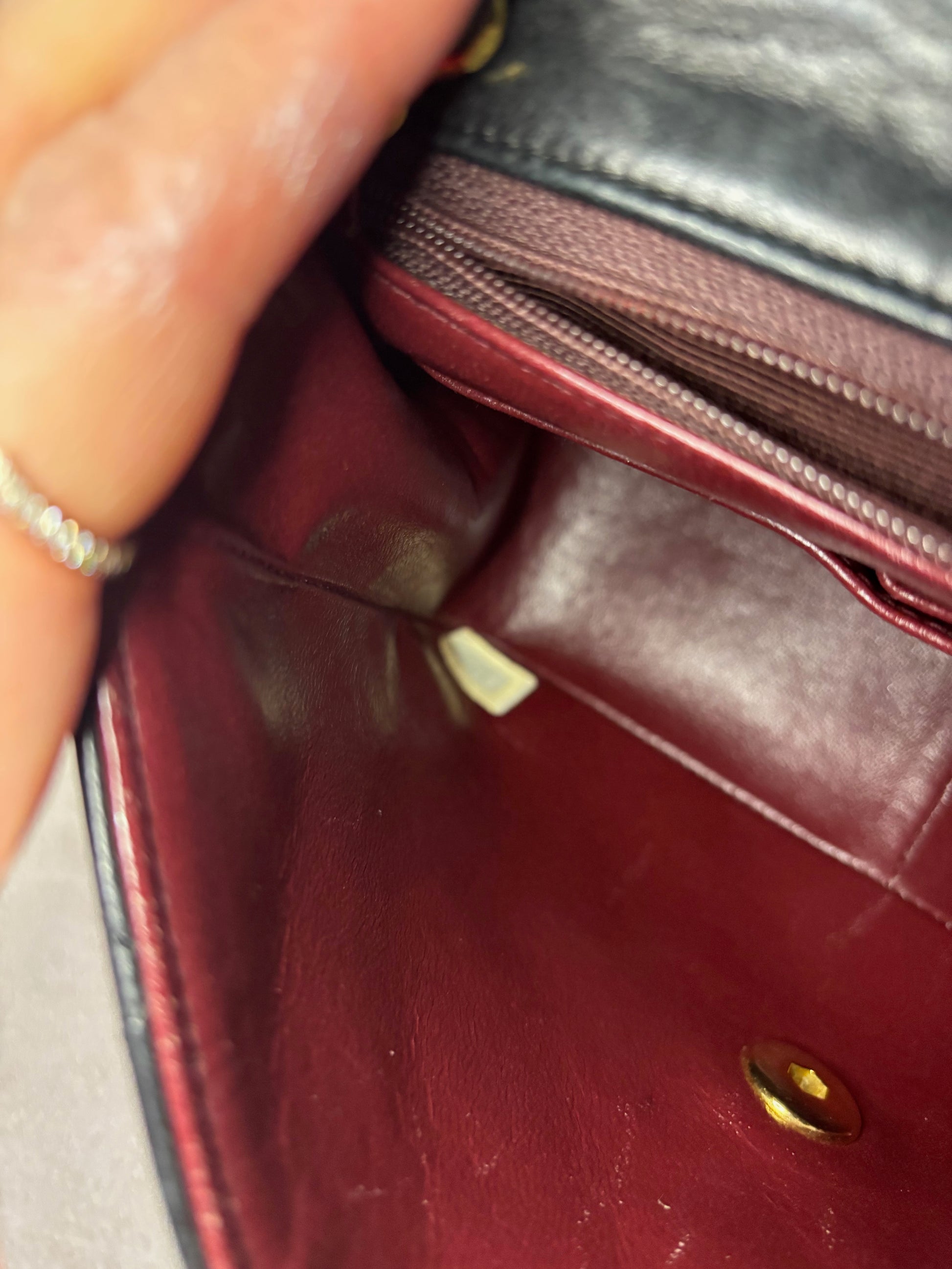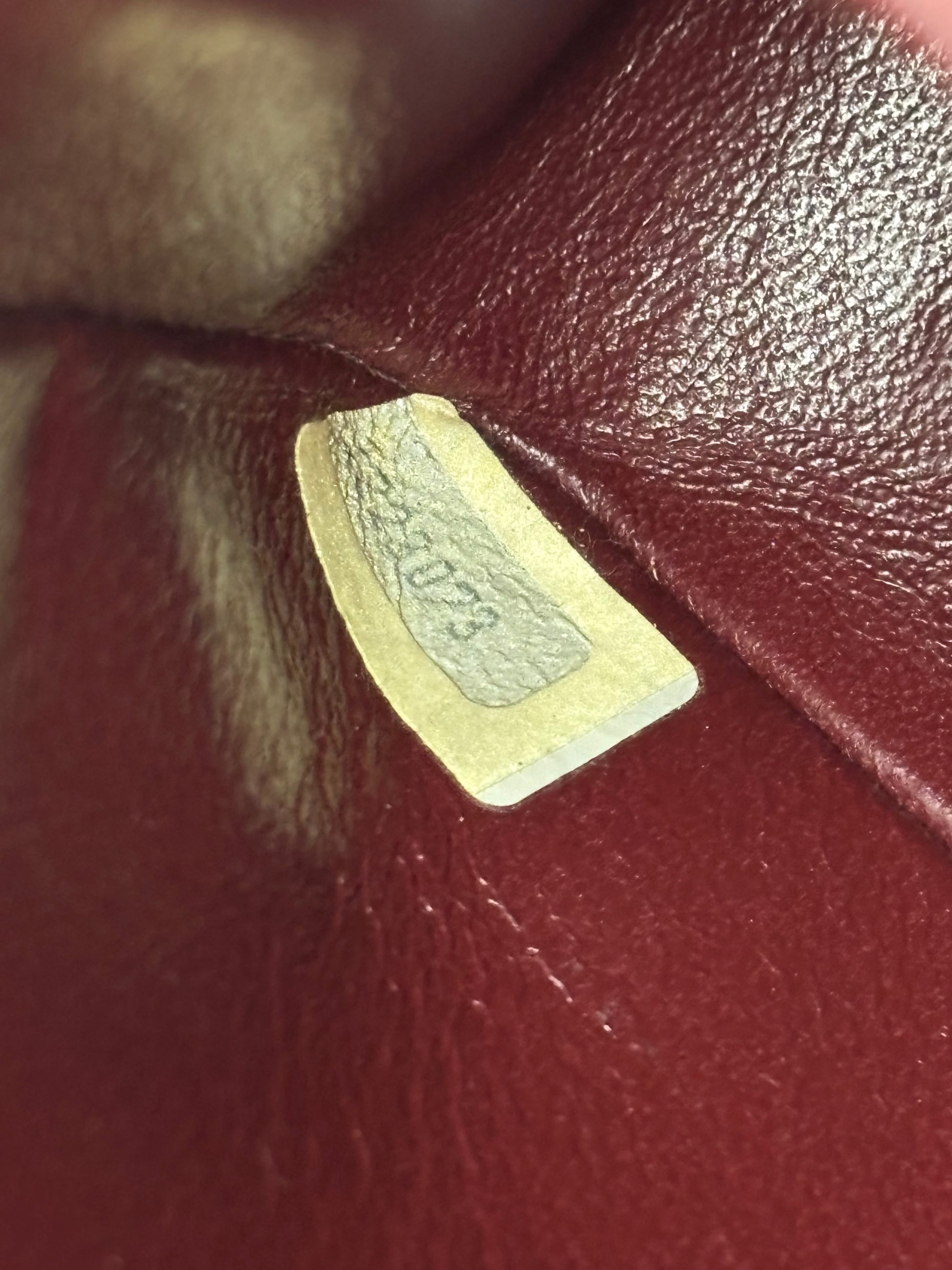 * Poche principale doublée de cuir rouge bordeaux, double poche plaquée intérieure