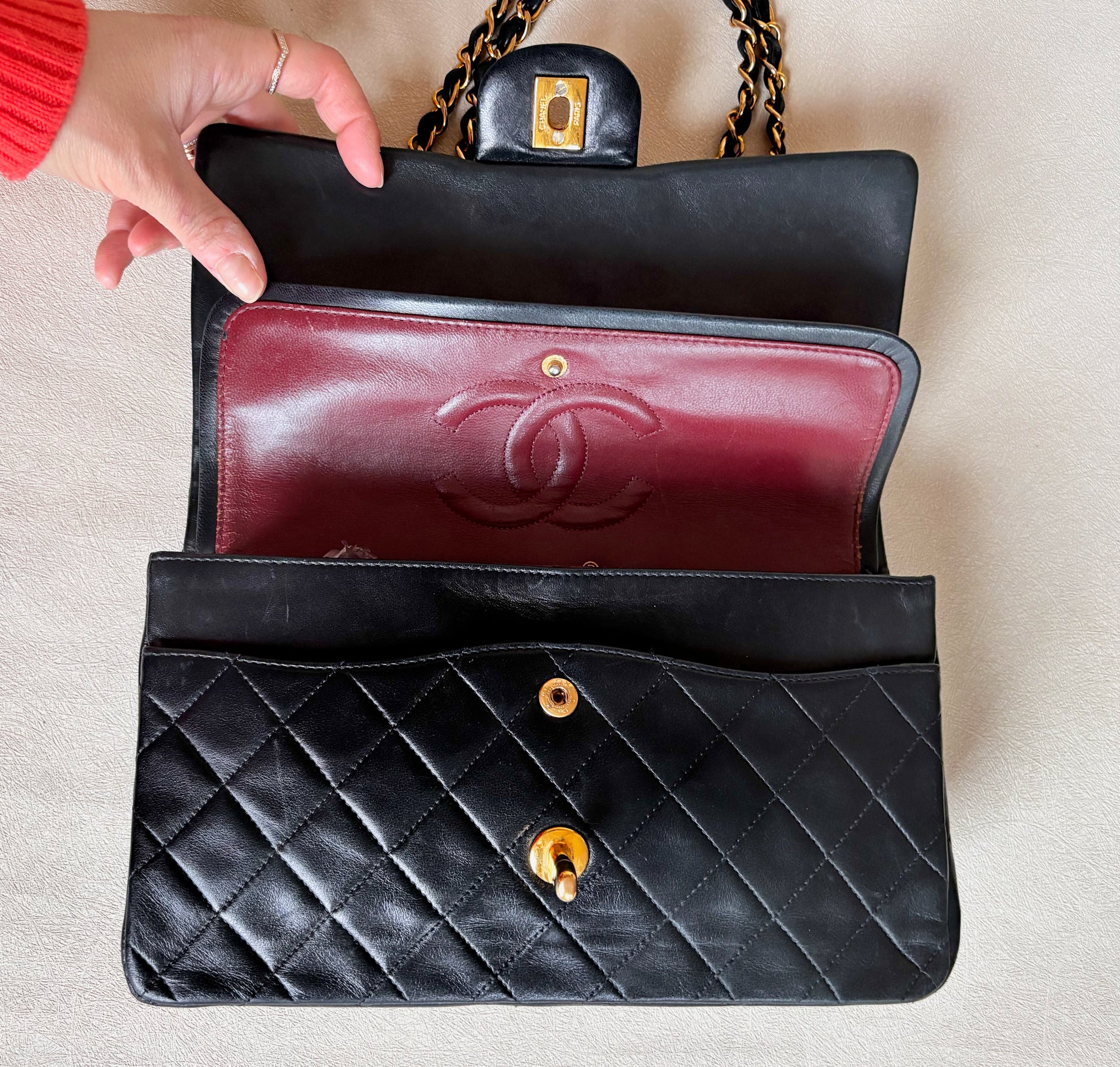 * Doublure intérieure siglée, en cuir rouge, double poche plaquée