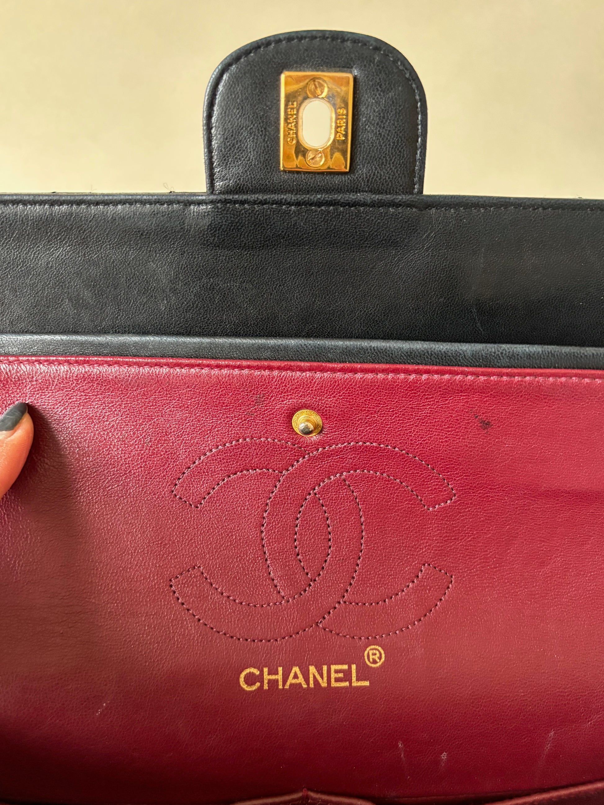 * Doublure intérieure siglée, en cuir rouge, logo CC brodé