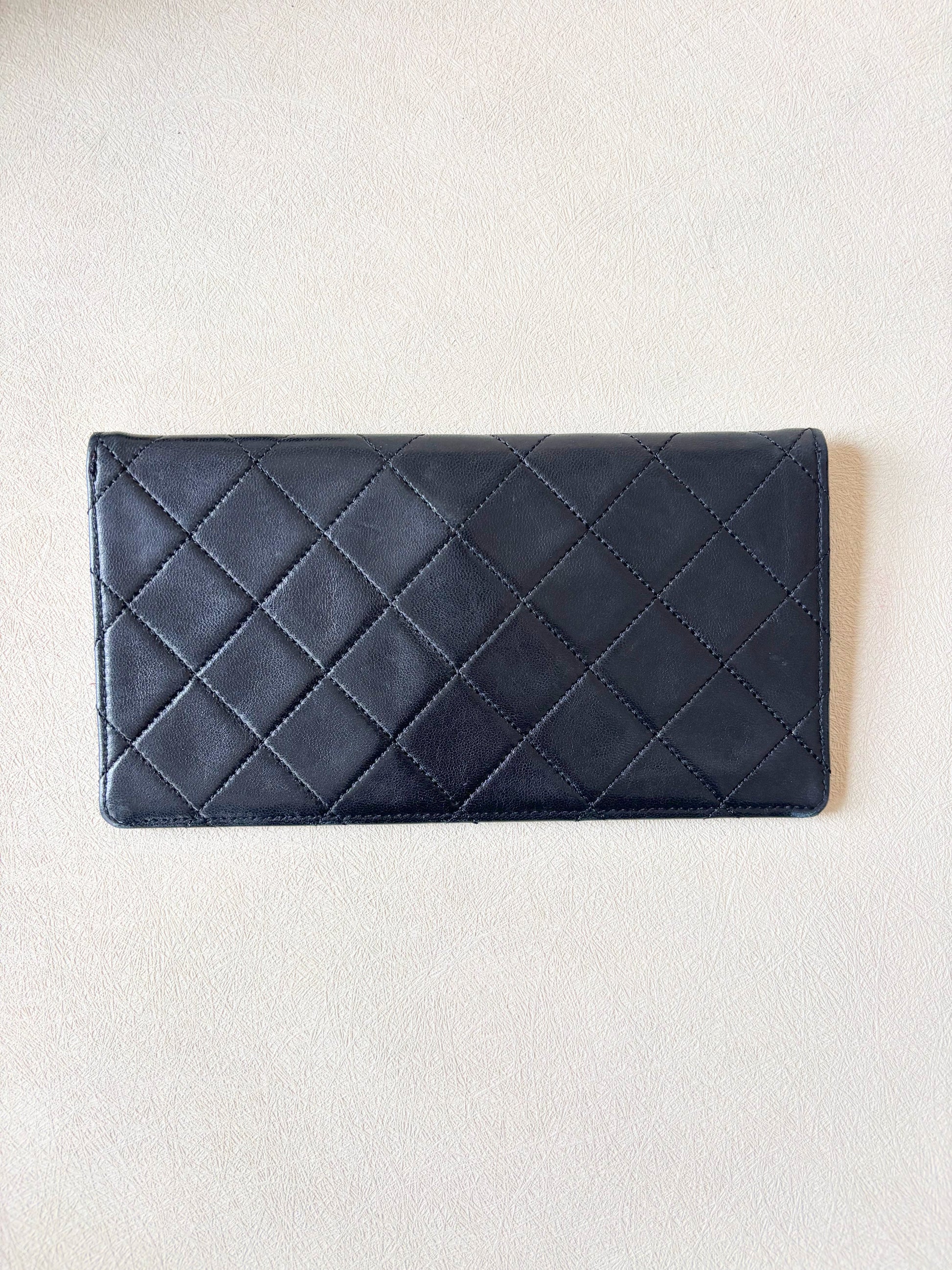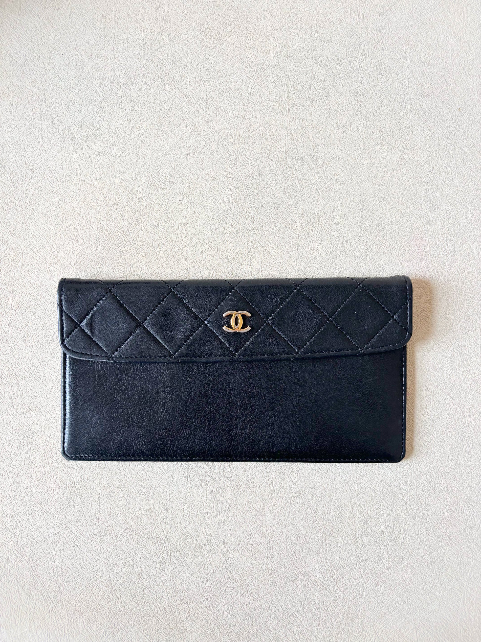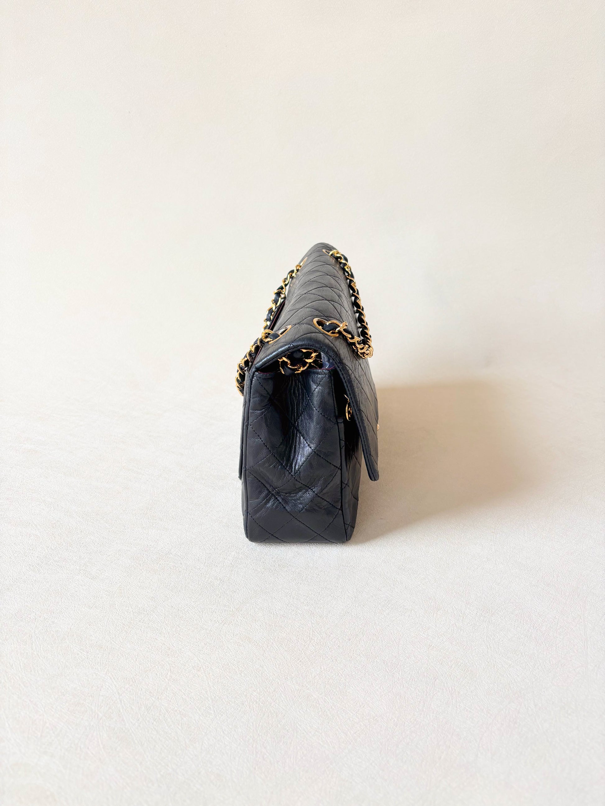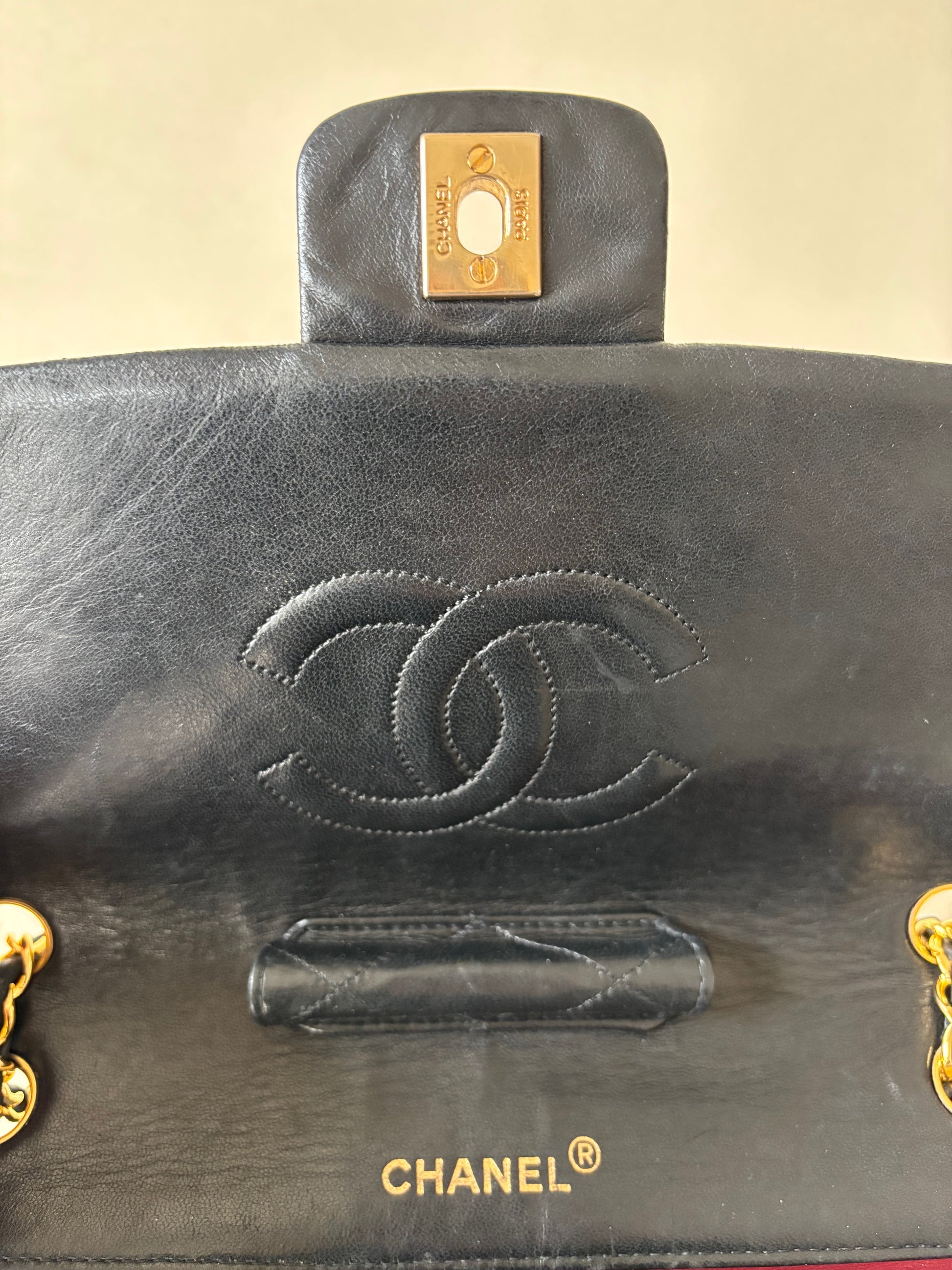 * Chaine en métal doré et cuir noir entrelacés, fermoir CC en plaqué or