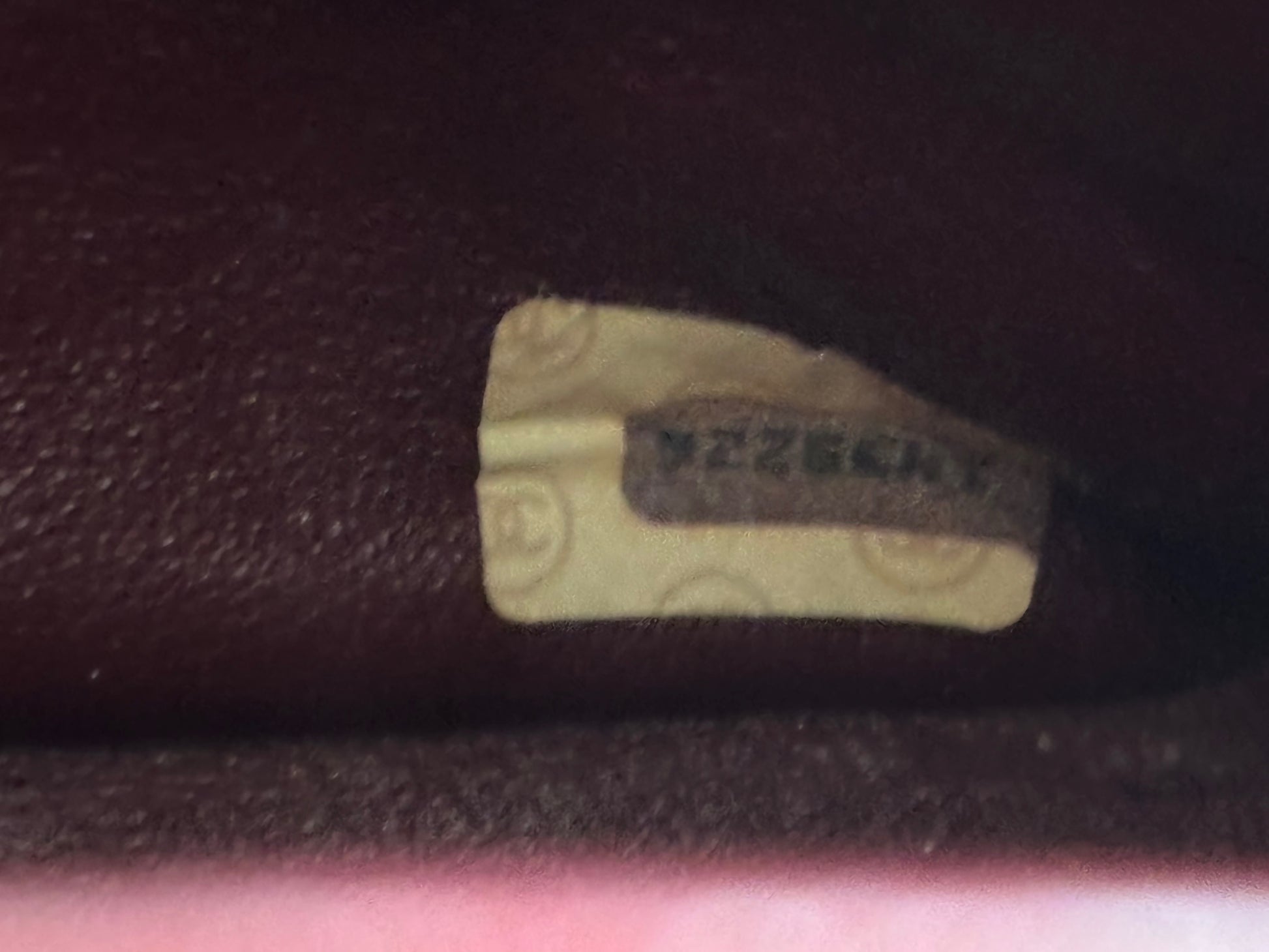 * Doublure intérieure en cuir rouge, 1 double poche plaquée ; vendu avec sa pochette intérieure en cuir noir matelassé (parfait état) à fixer sur la pression de la poche intérieure