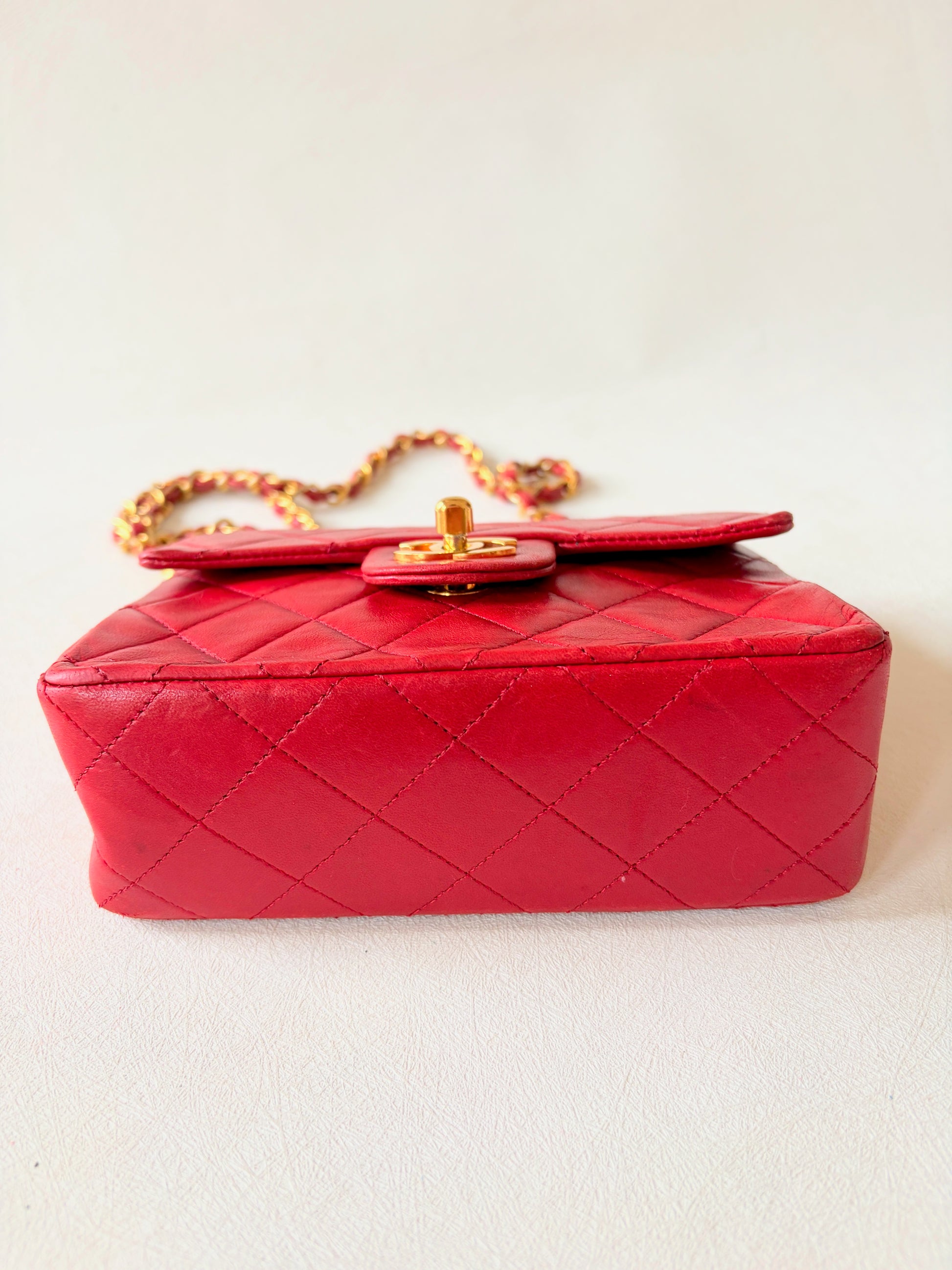 * Chaîne en métal doré entrelacé de cuir rouge, pour un porté épaule