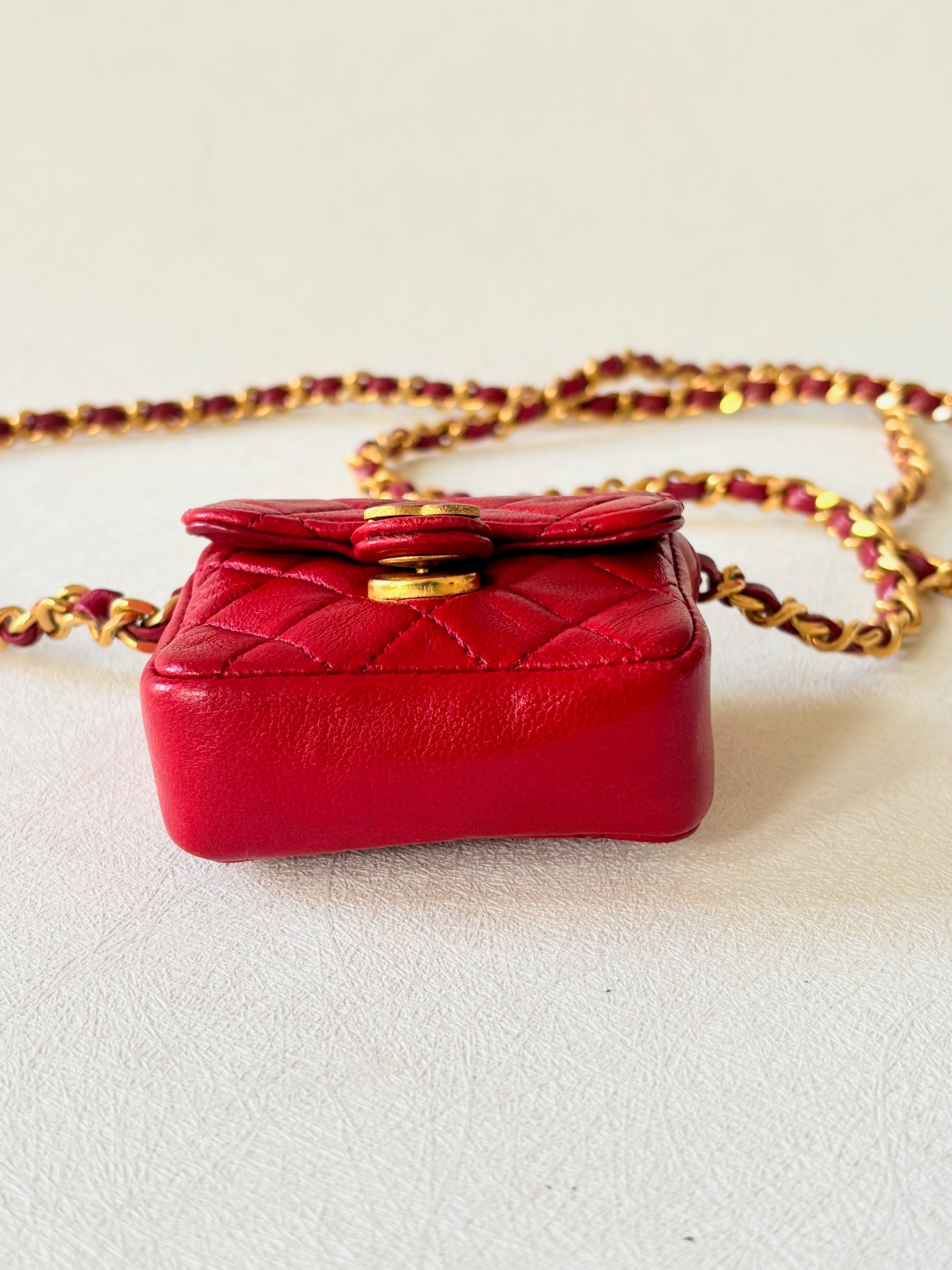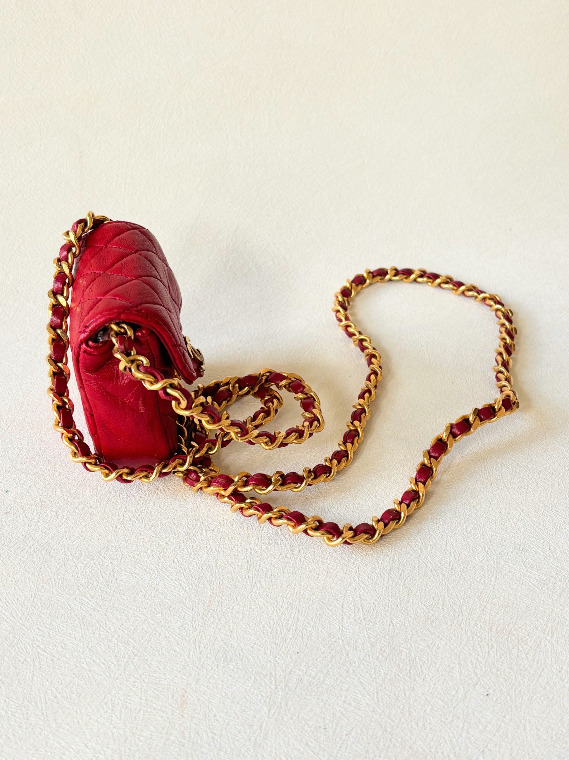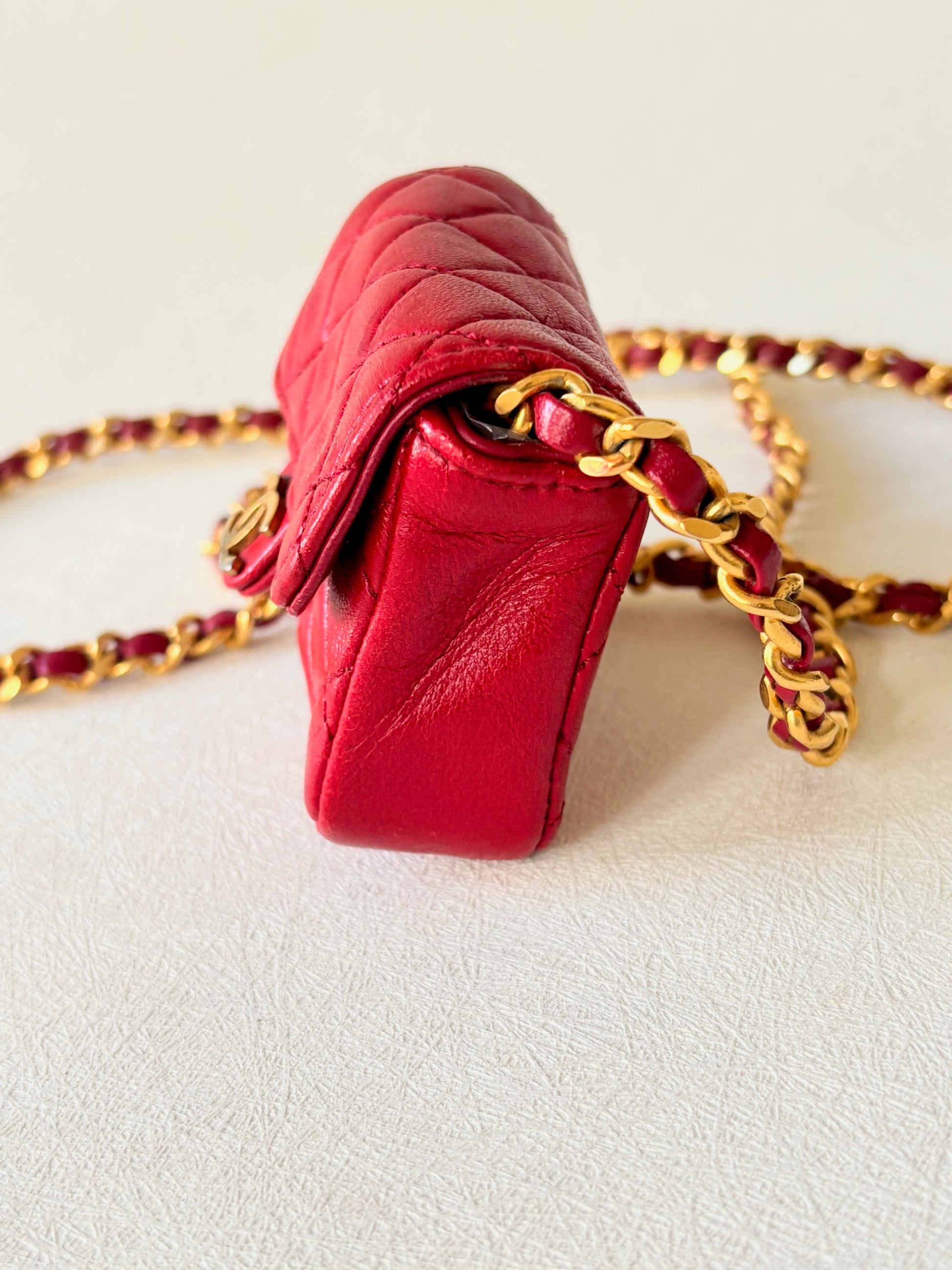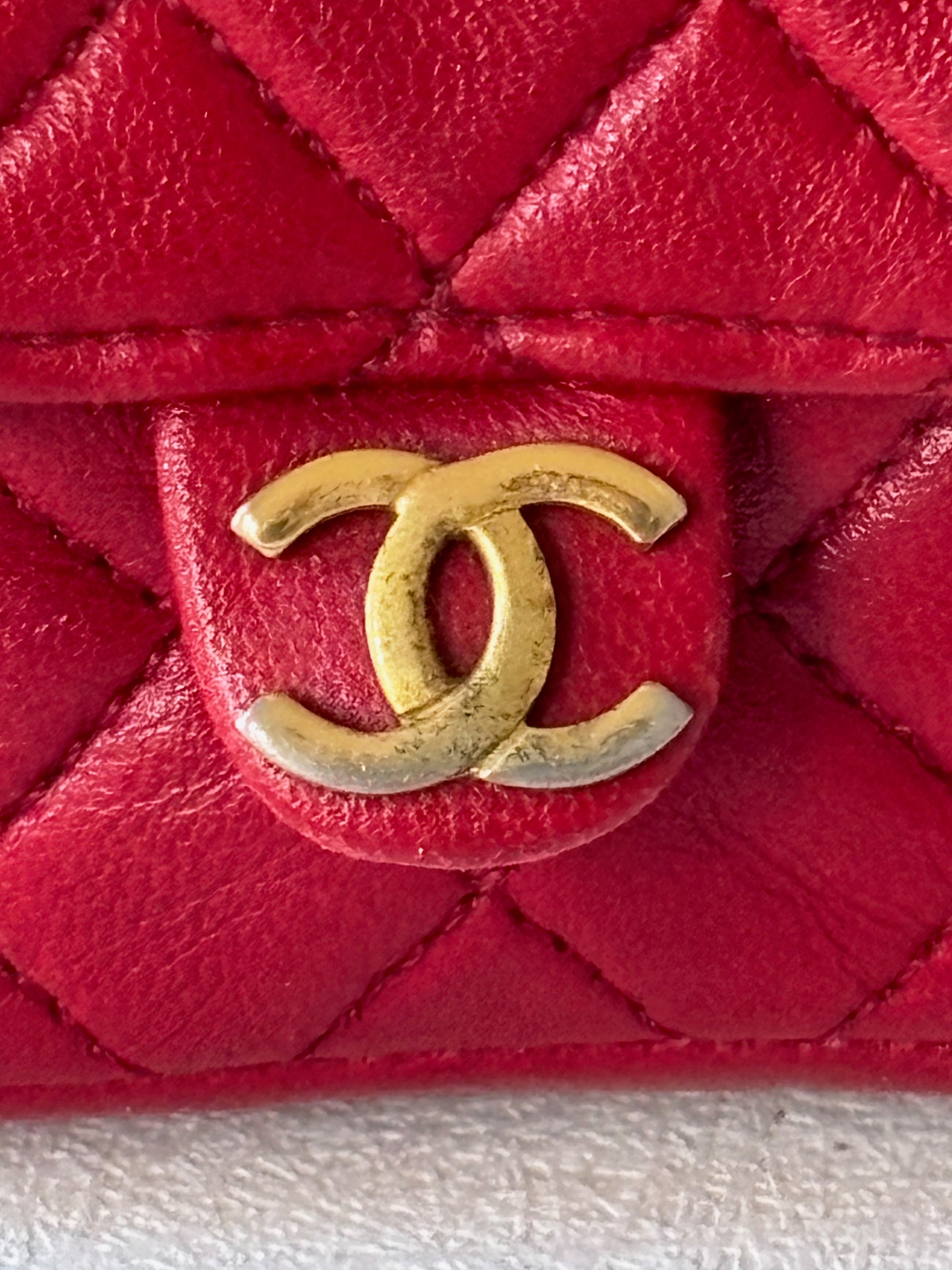 * Simple rabat en cuir d'agneau rouge, fermoir CC doré