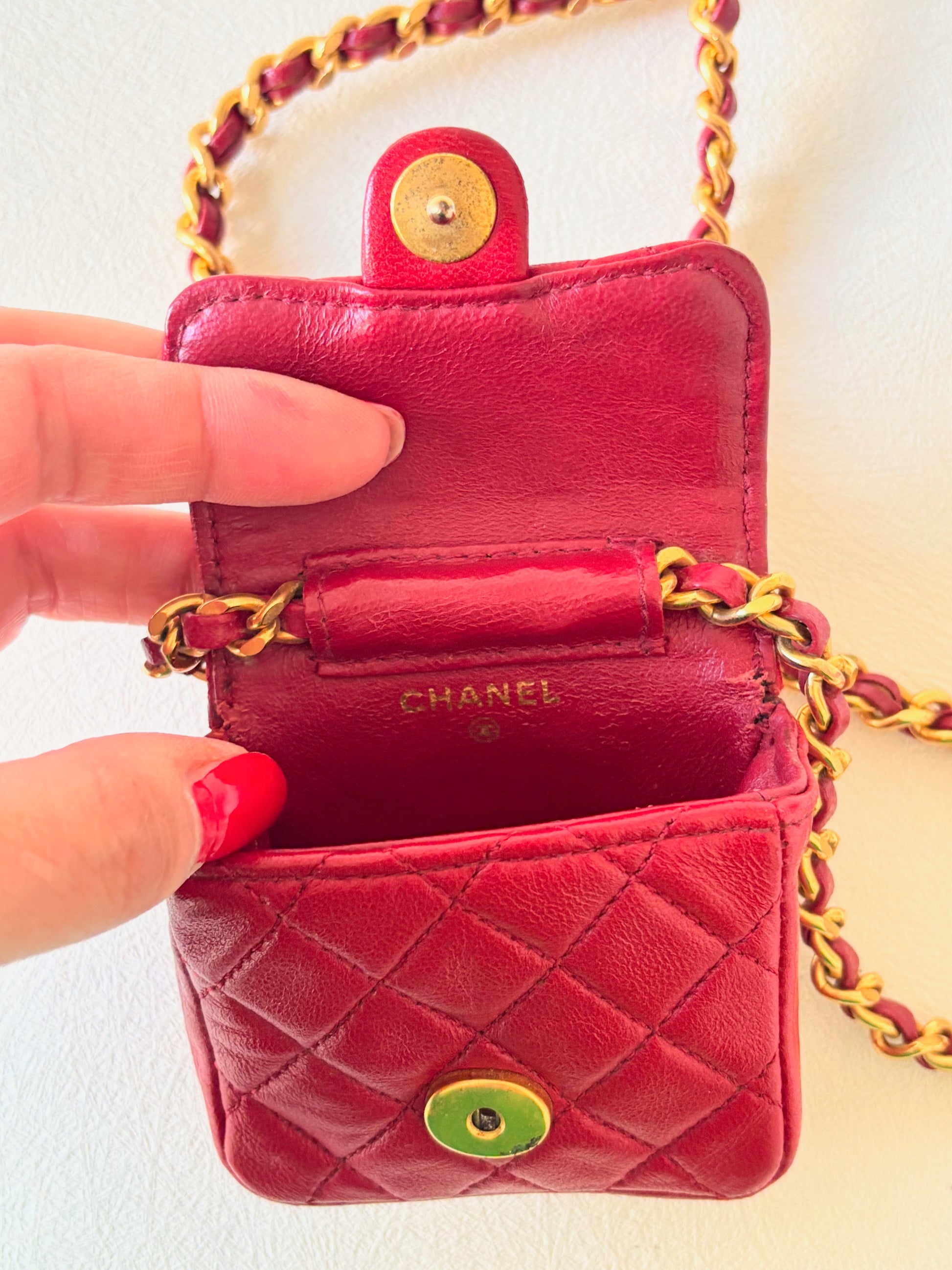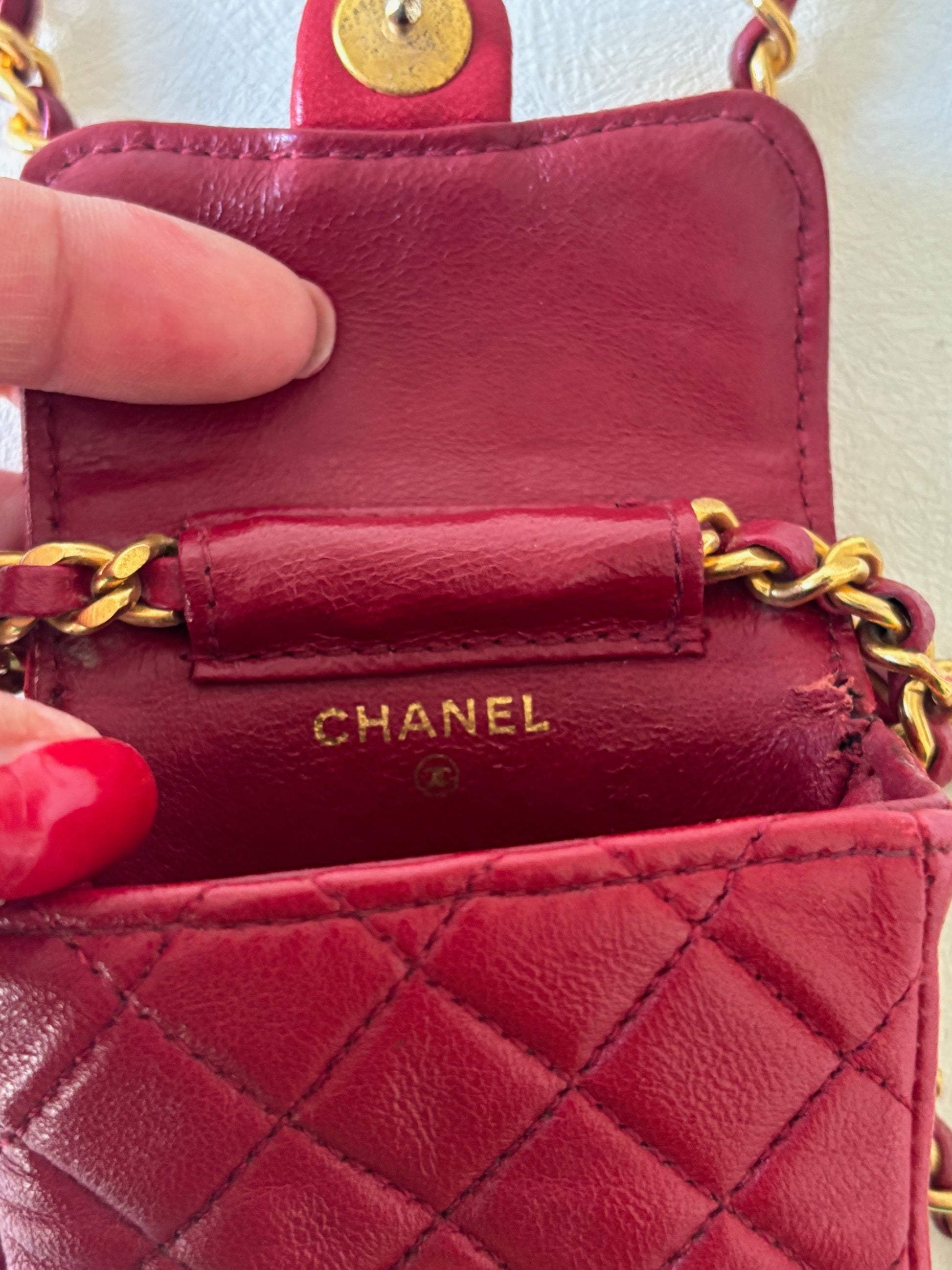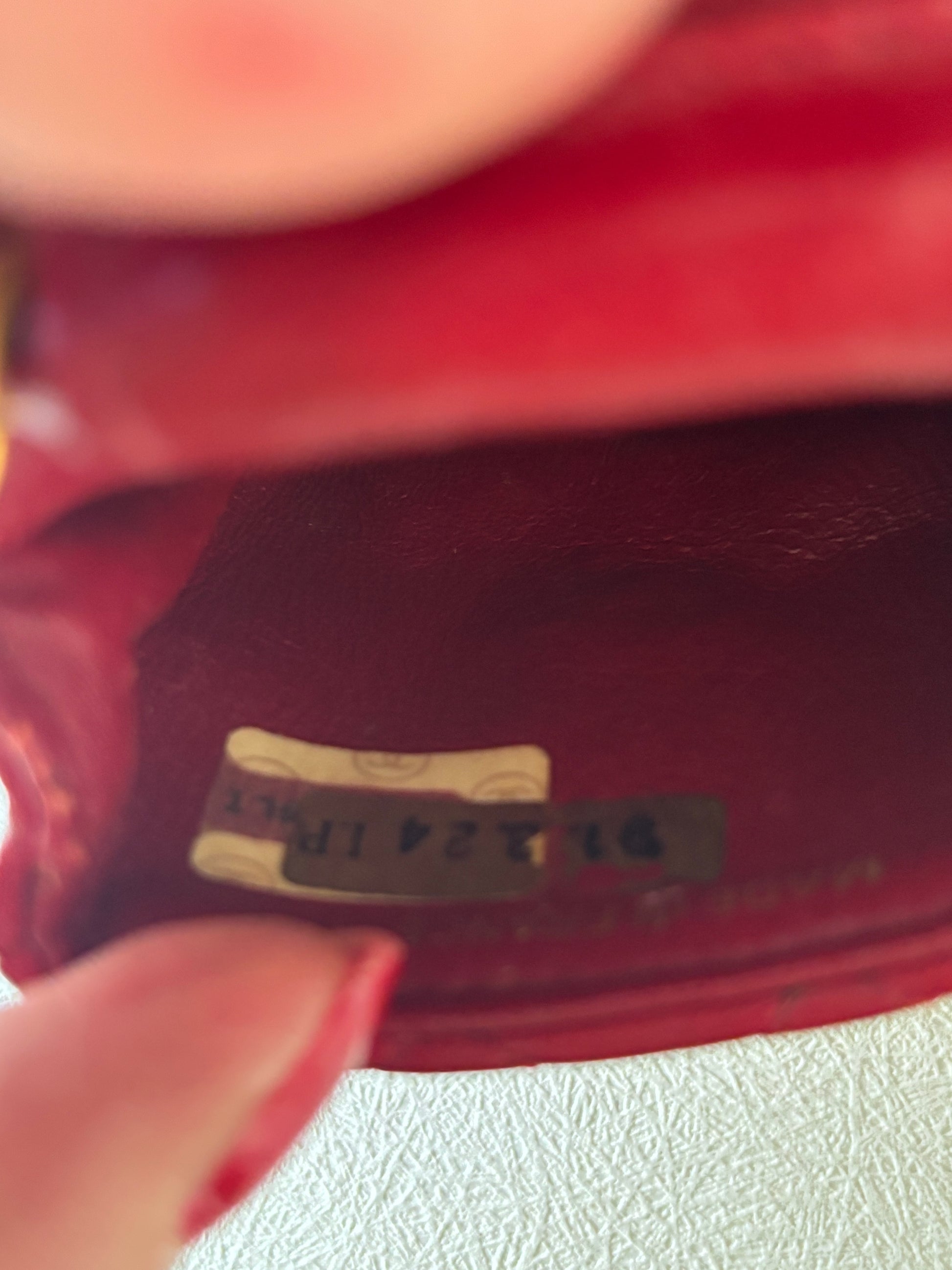* Intérieur en cuir rouge, poche zippée avec fermoir à médaillon CC doré