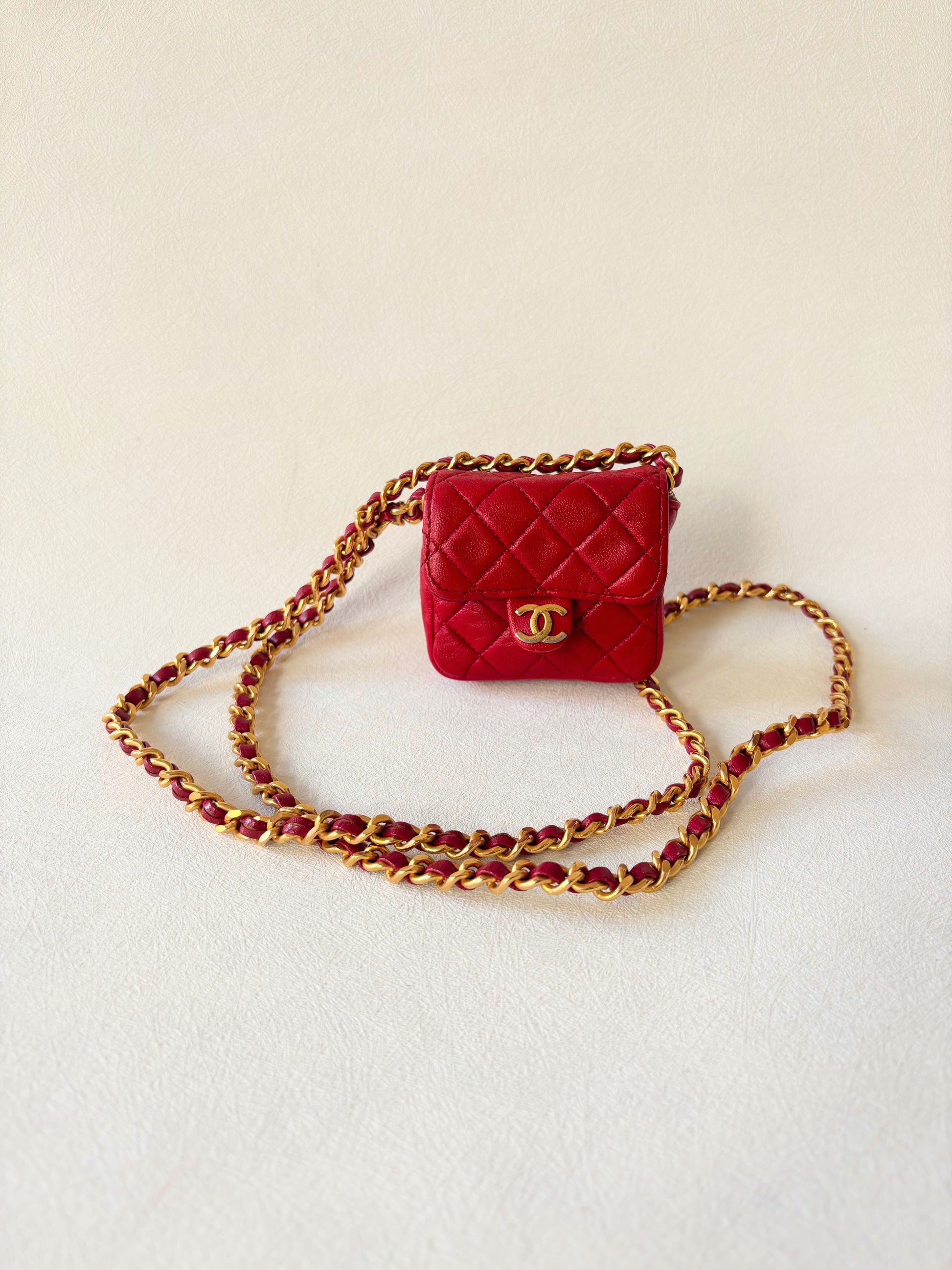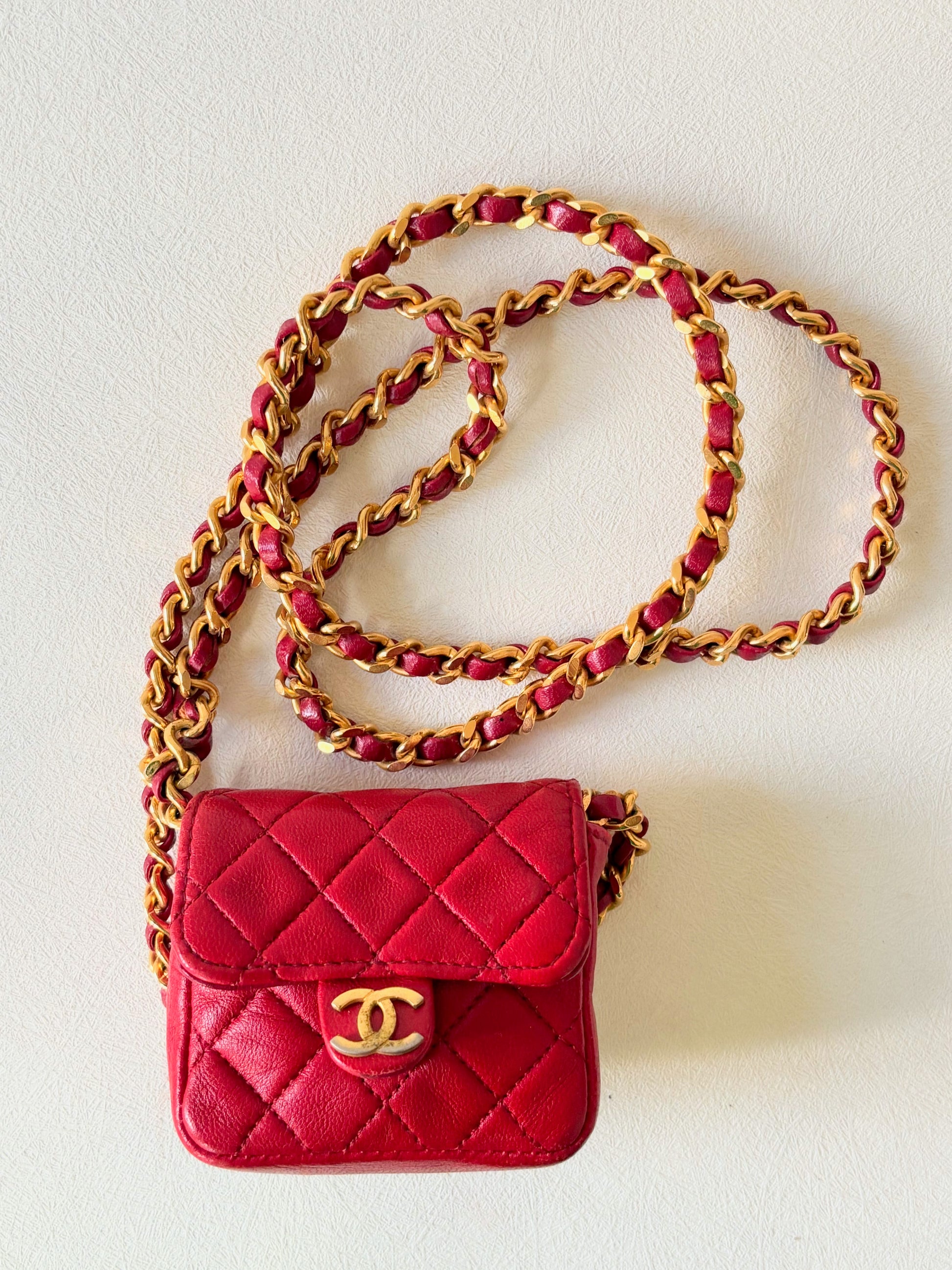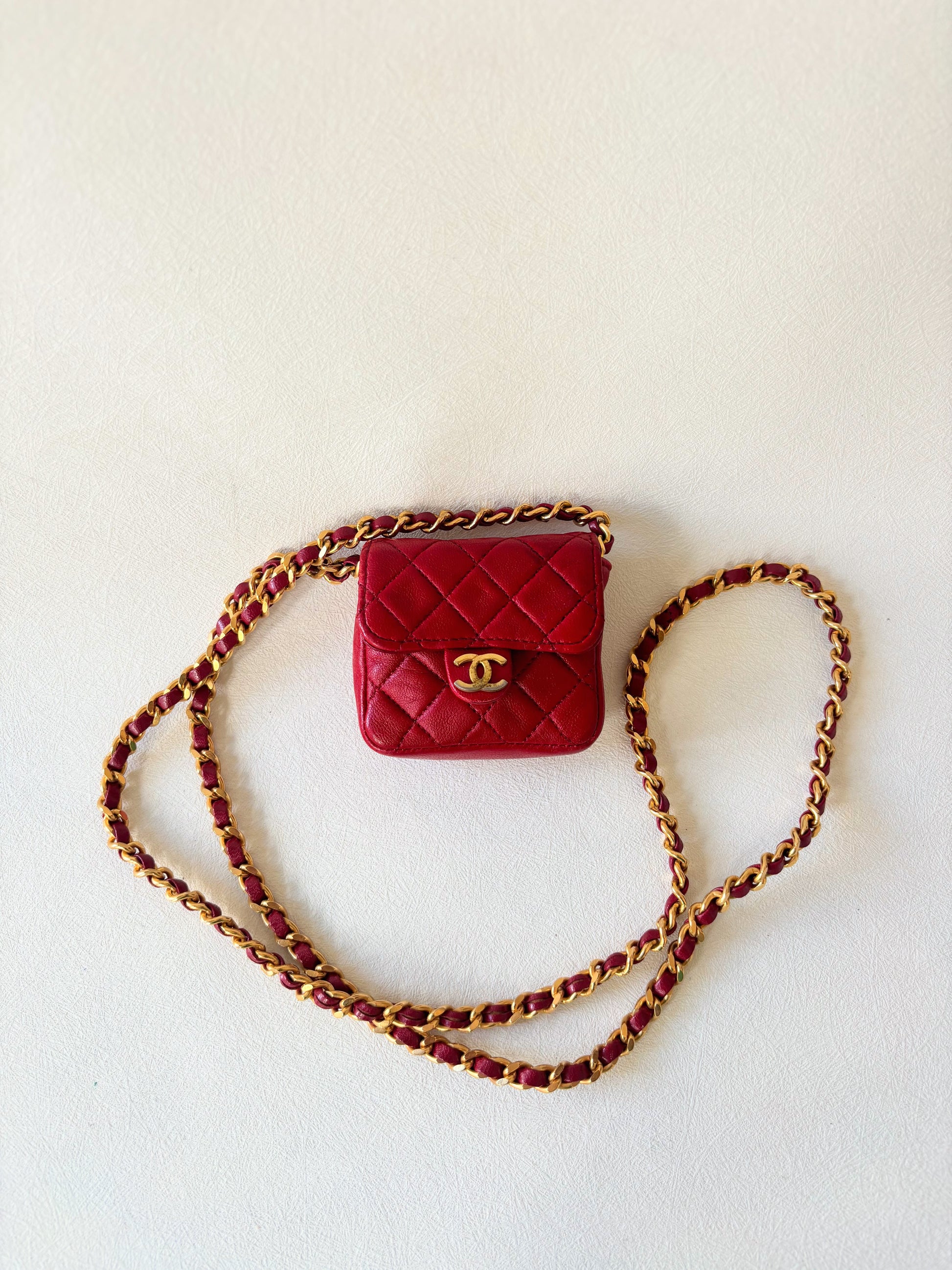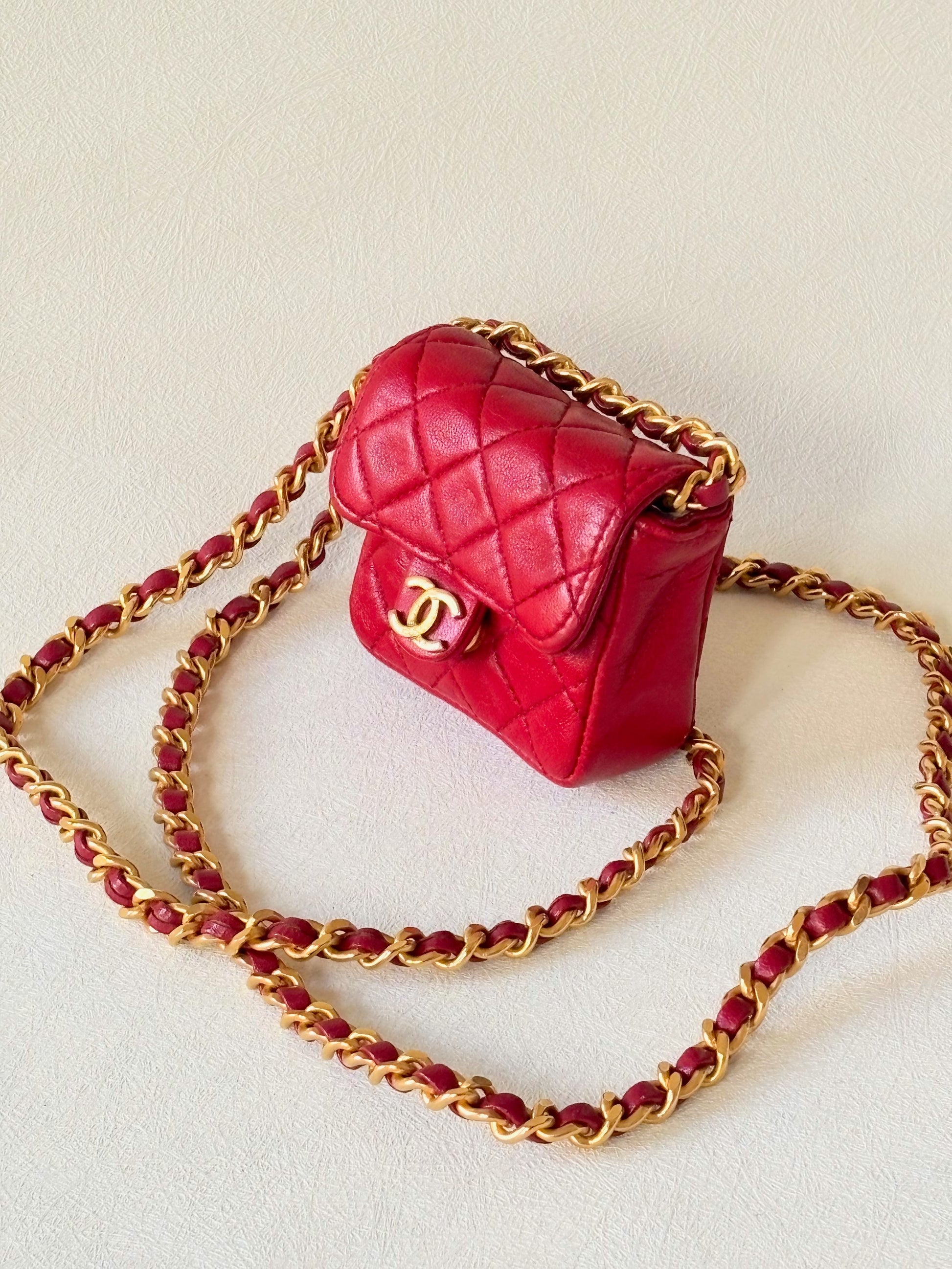 * Intérieur en cuir rouge, poche zippée avec fermoir à médaillon CC doré