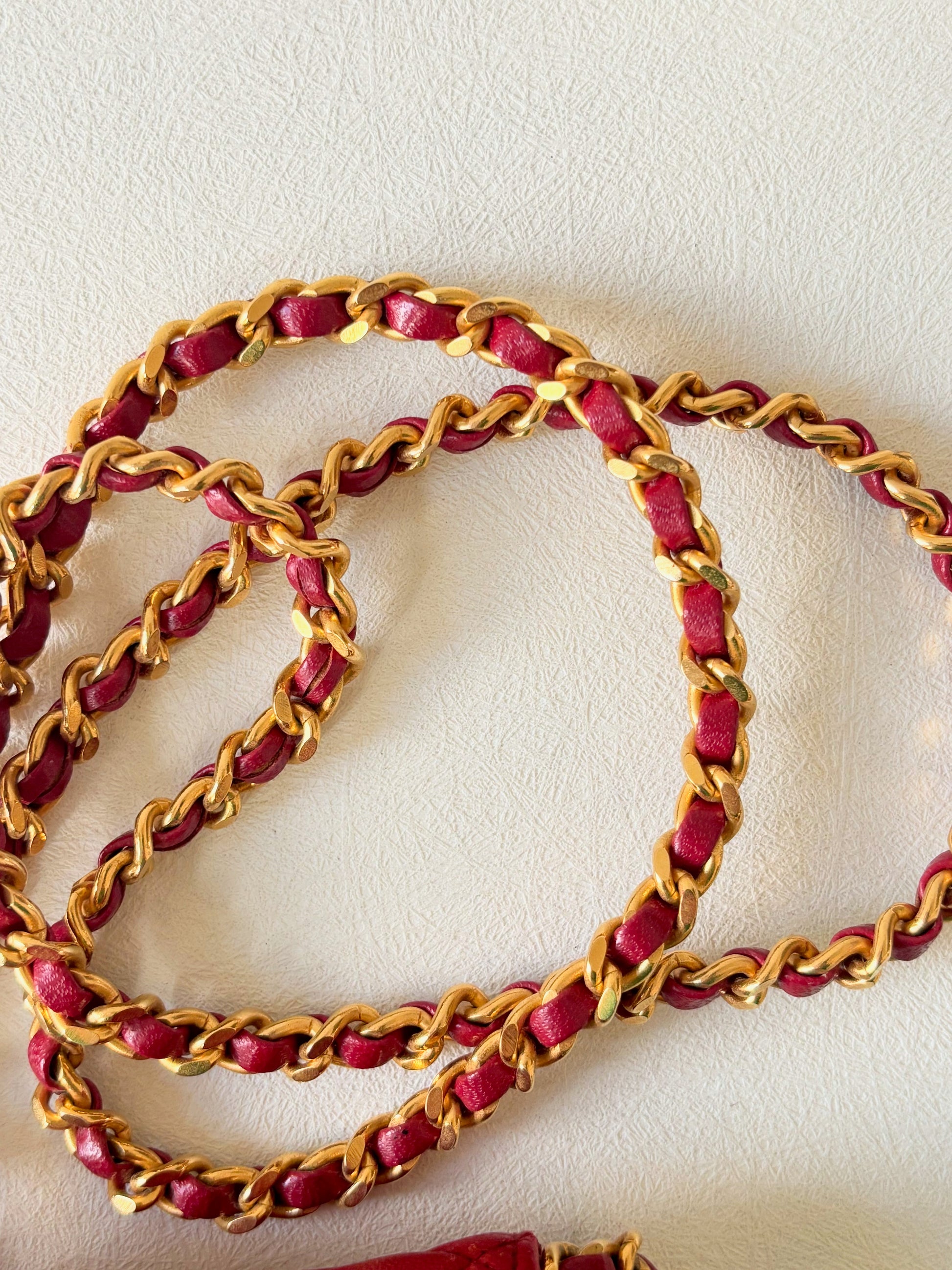 * Chaîne dorée entrelacée de cuir d'agneau rouge