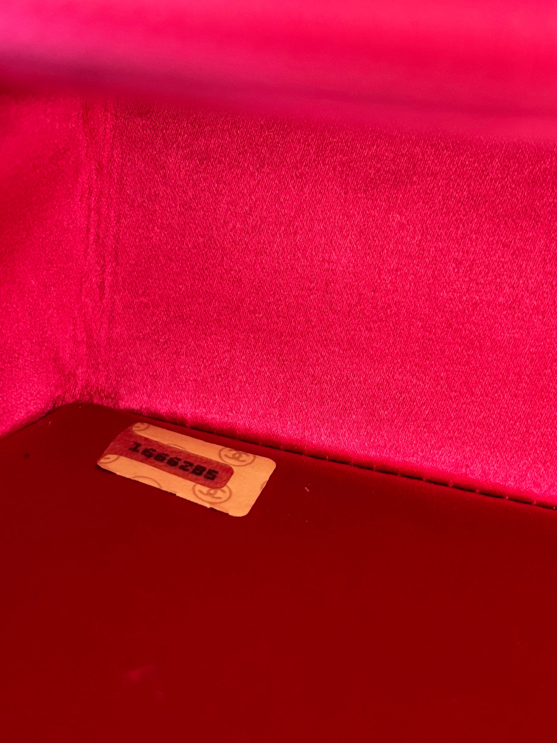 * Bel état, forme toujours bien rigide, intérieur très propre ; à noter : la soie est un peu abîmée aux endroits de frottement ( dos et un des coins du sac ; cf photo) mais l'usure reste peu visible