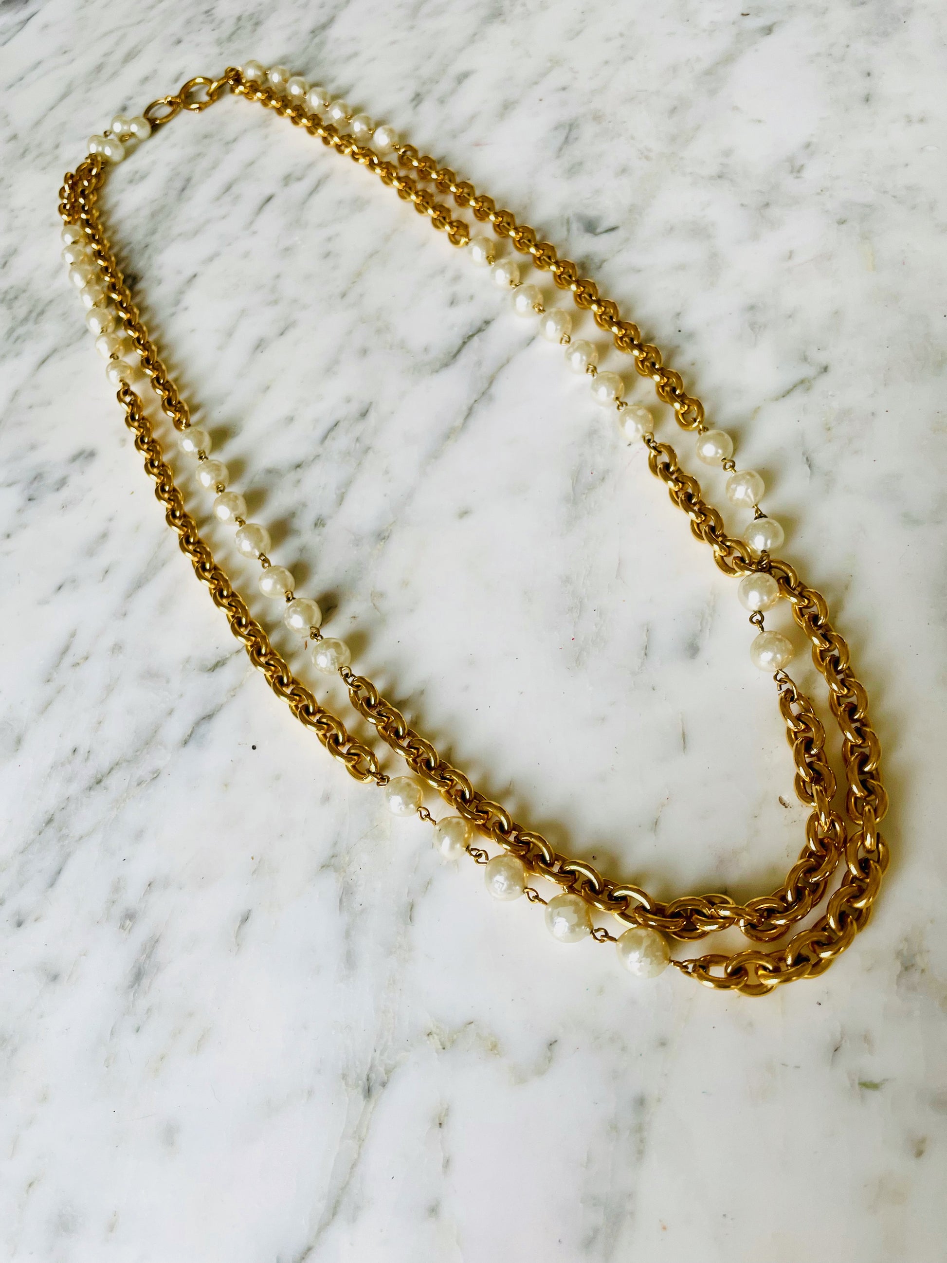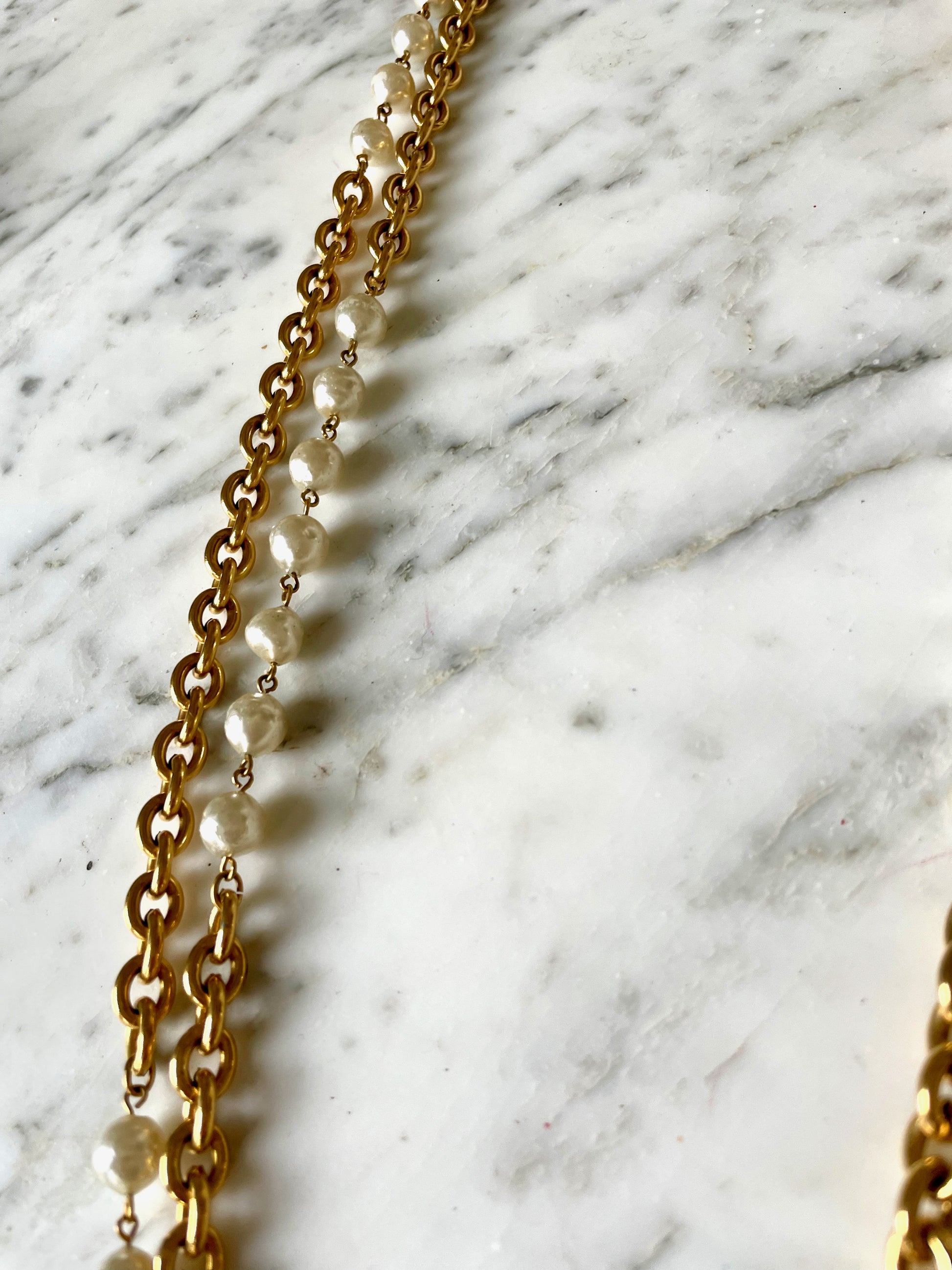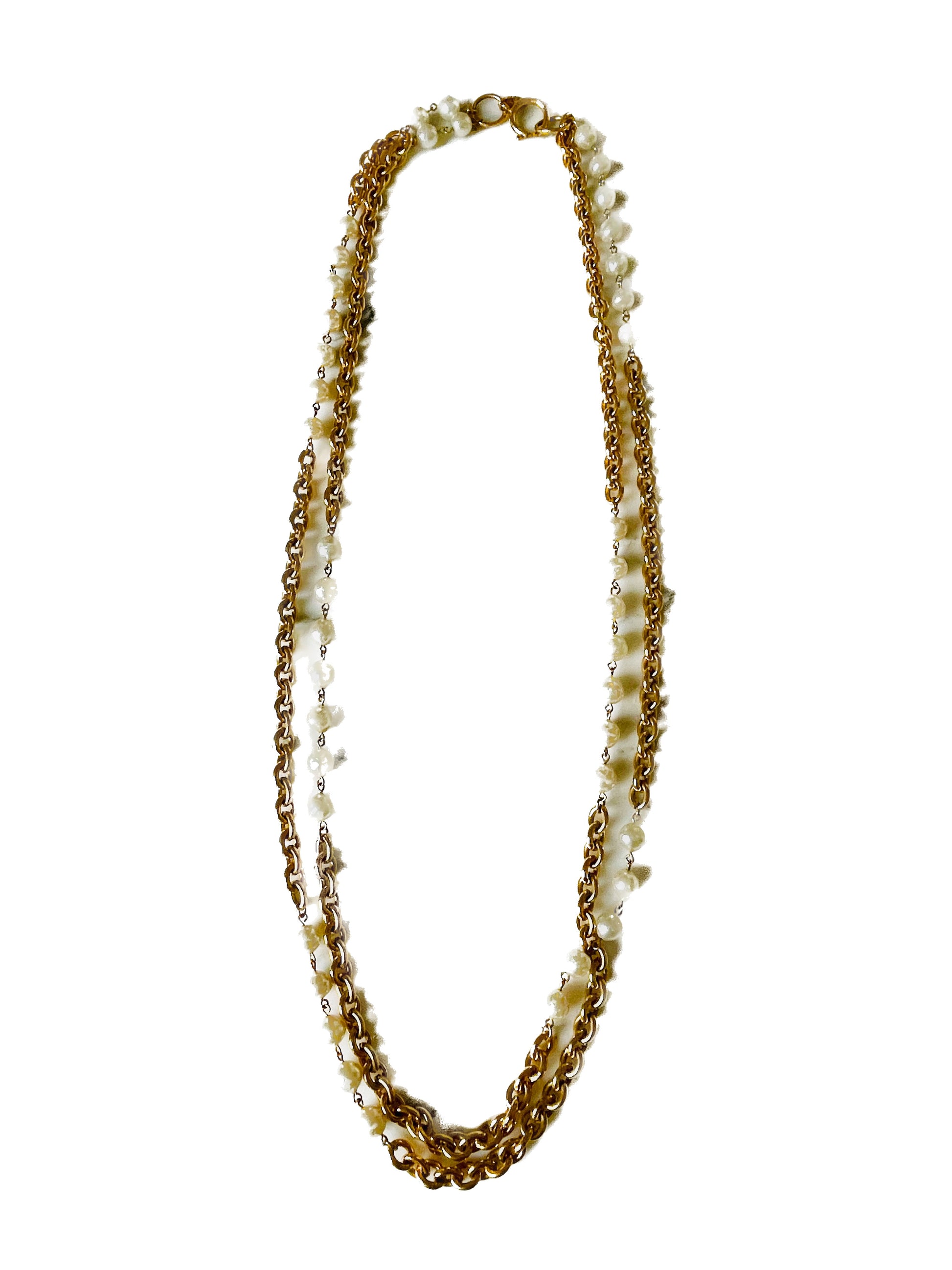 * Double rang de perles nacrées fantaisie et métal doré à porter en sautoir ou en collier 4 rangs plus près du cou