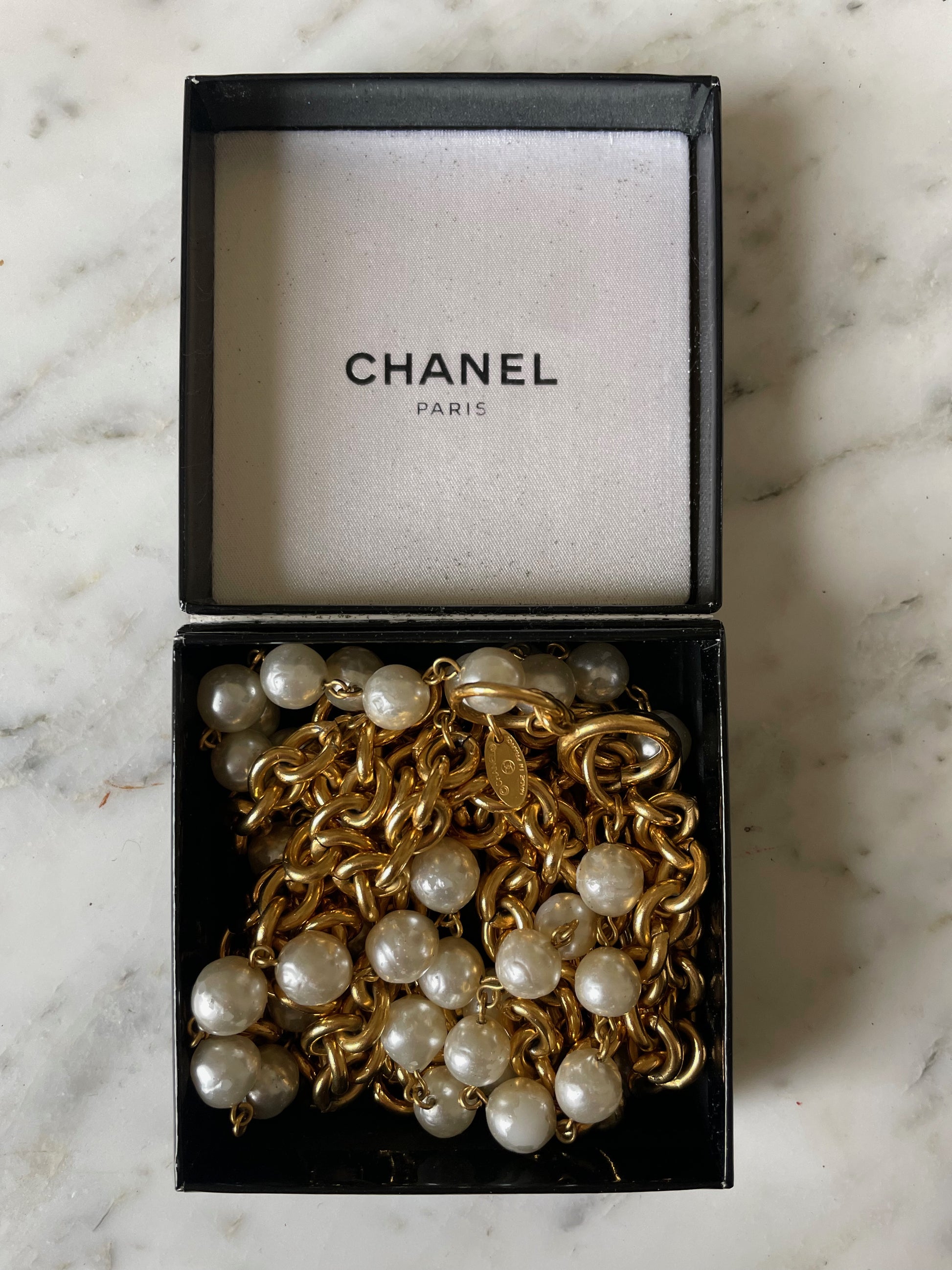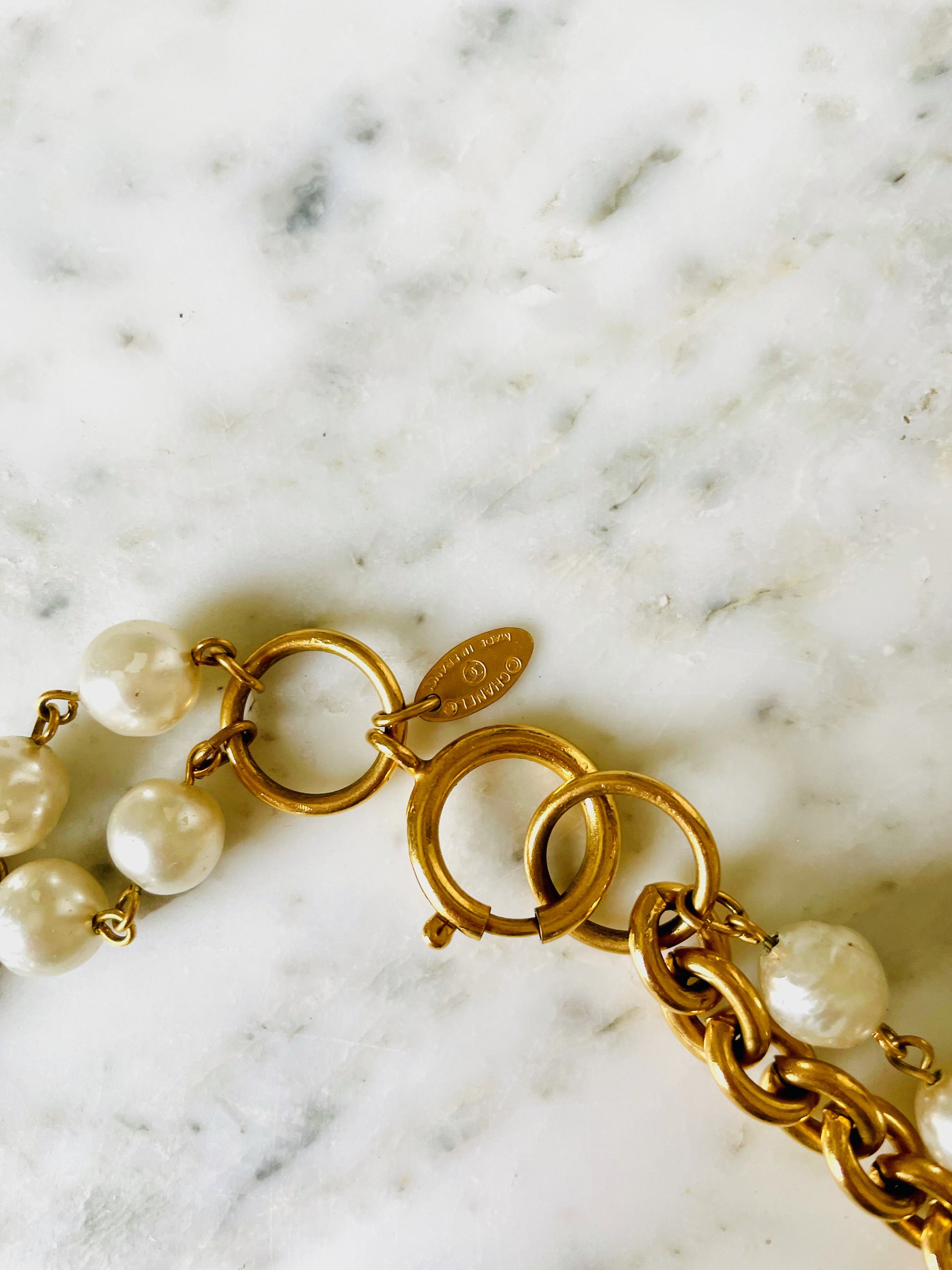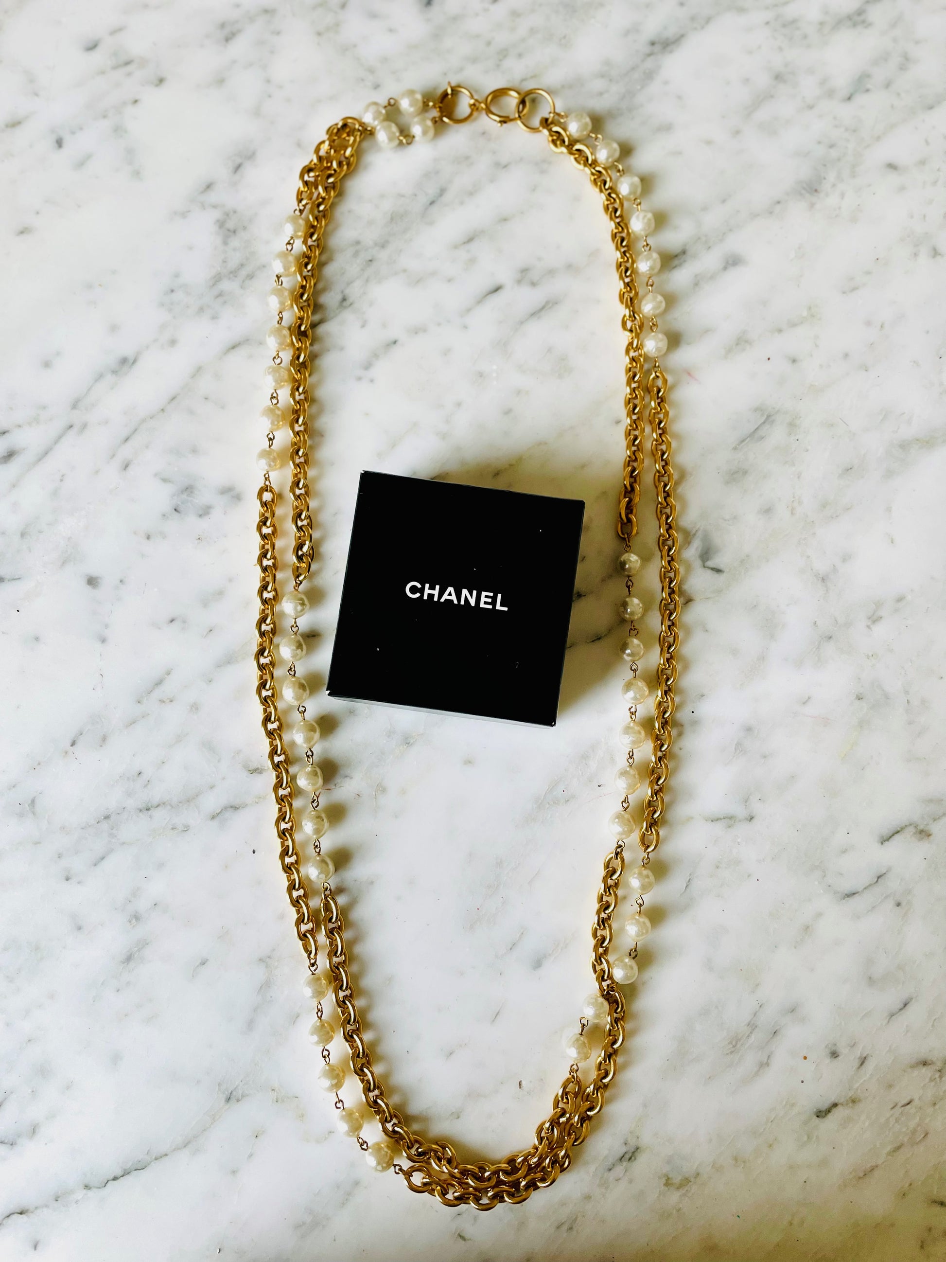 * Double rang de perles nacrées fantaisie et métal doré à porter en sautoir ou en collier 4 rangs plus près du cou