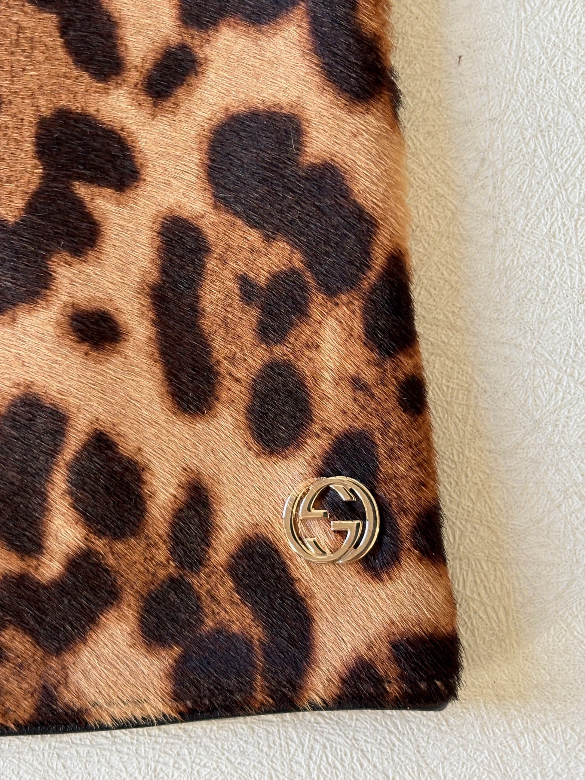 GUCCI Gants cuir et poulain léopard