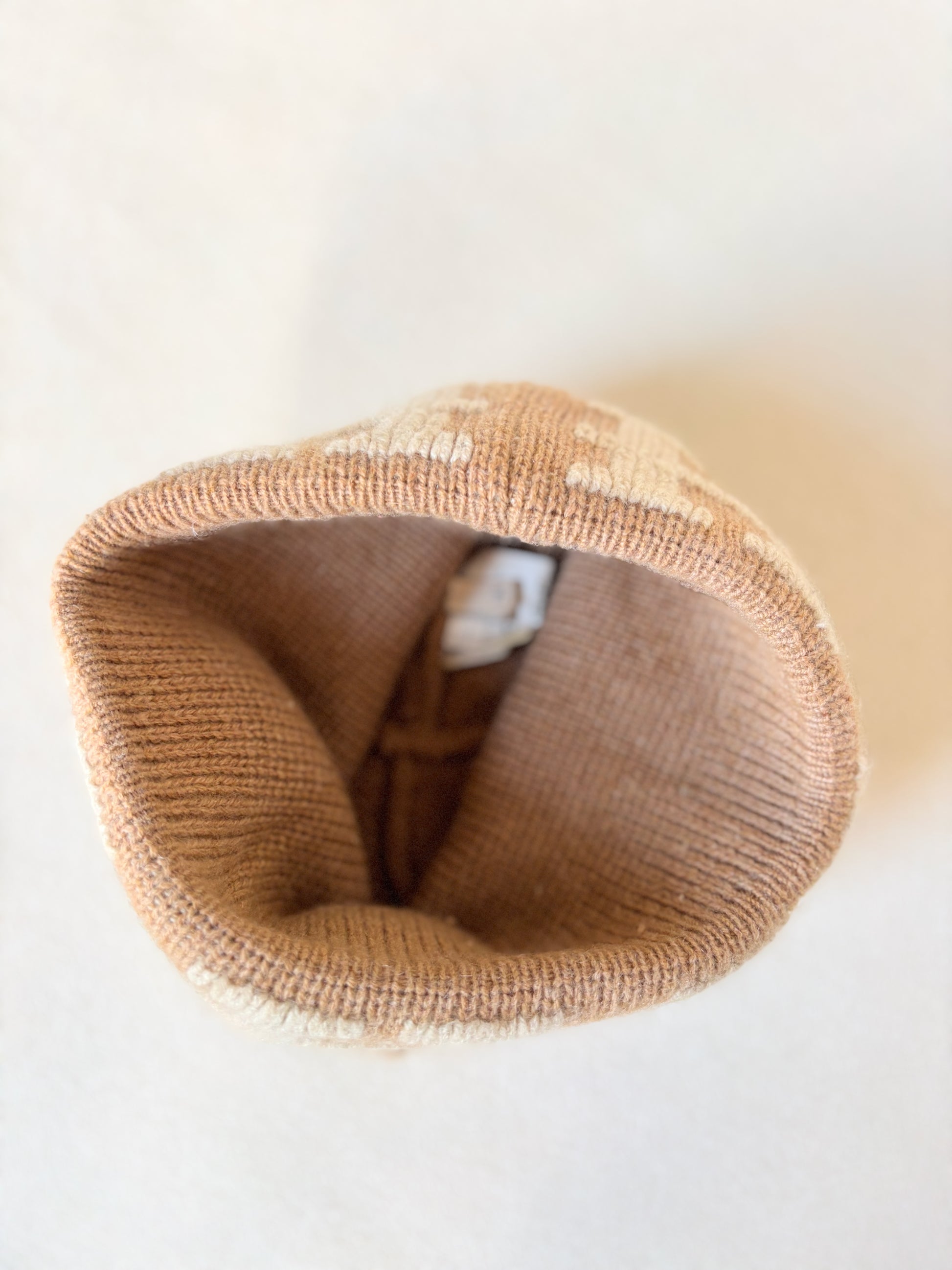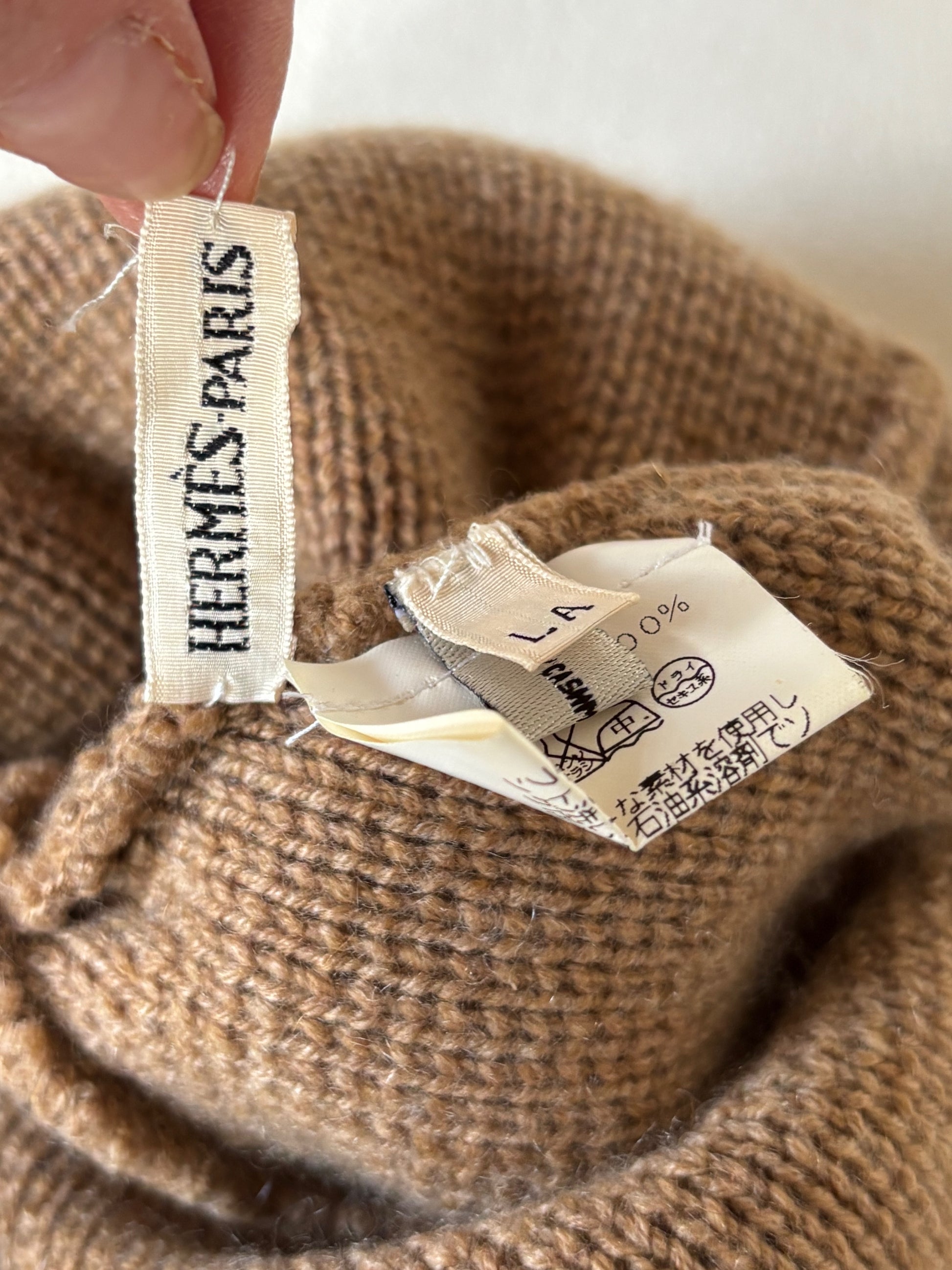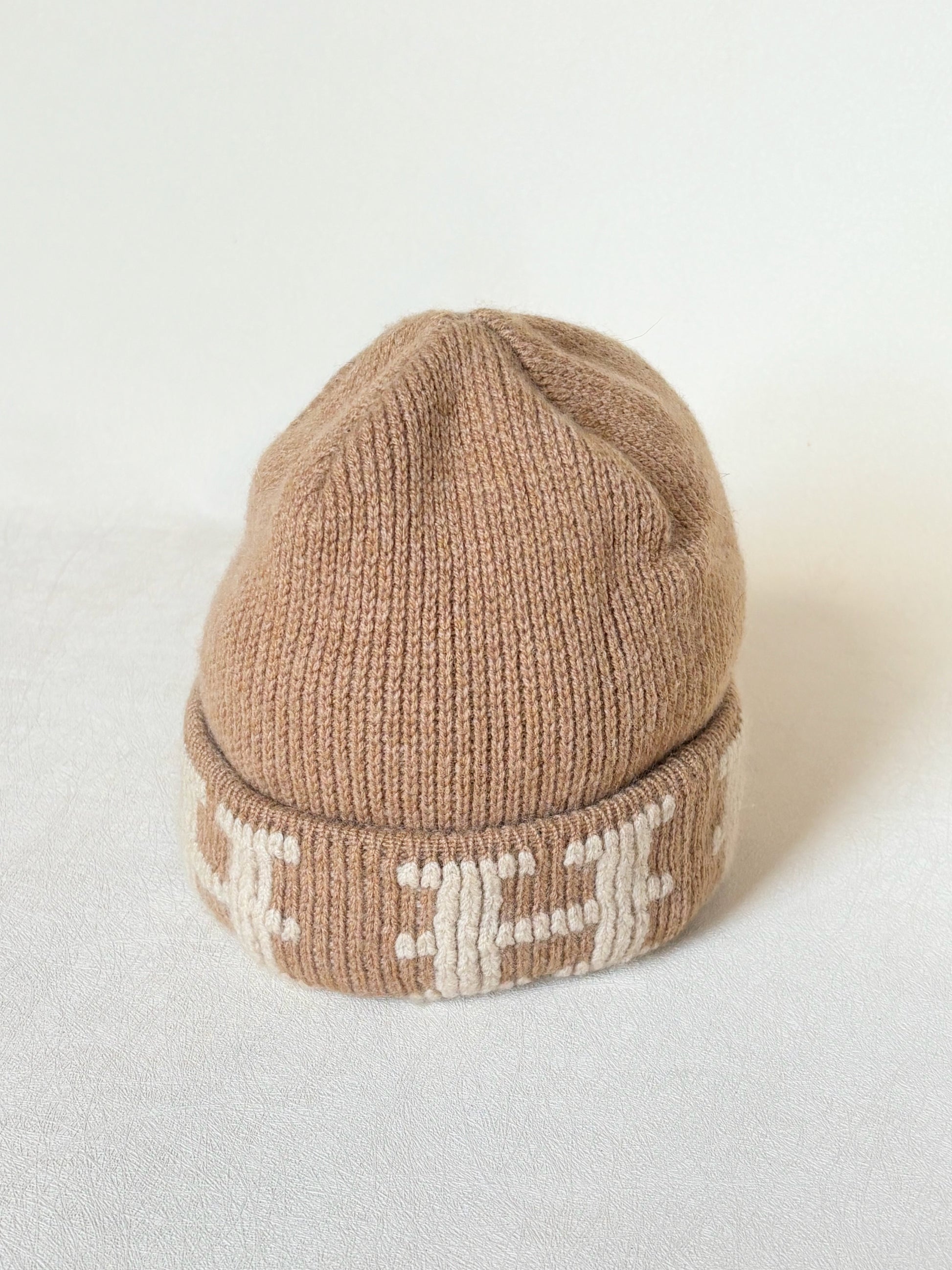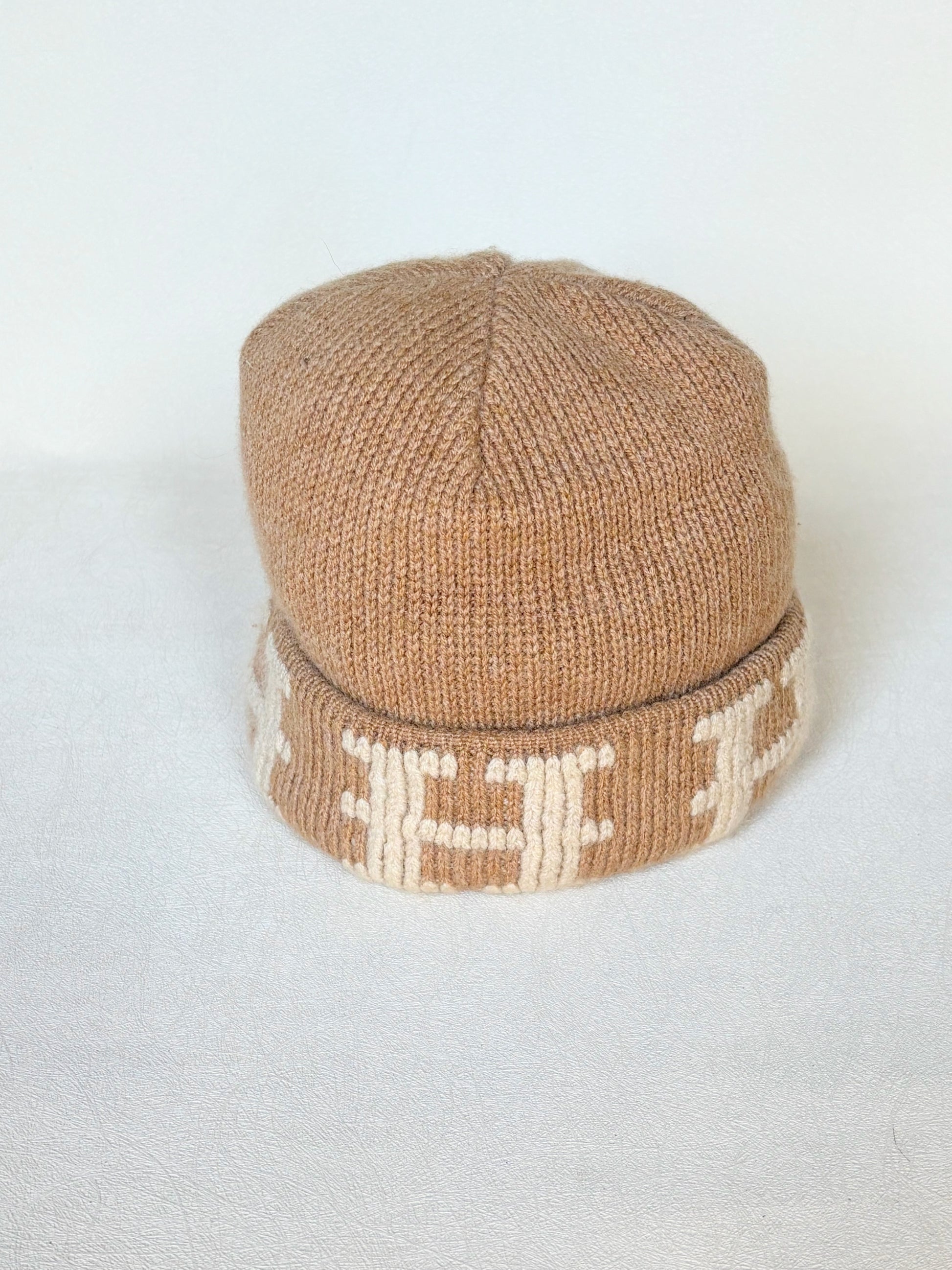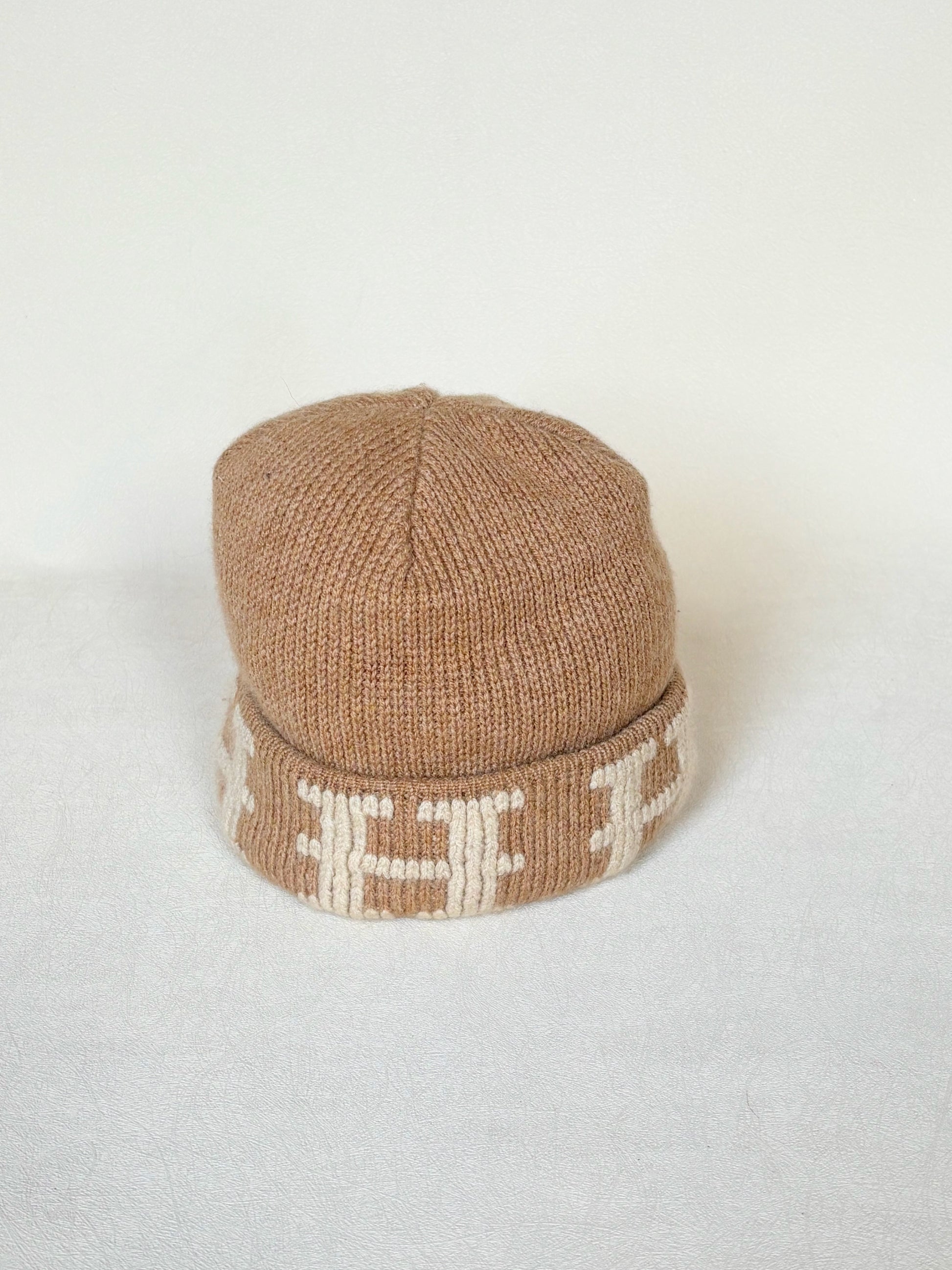 * Bonnet HERMÈS en cachemire marron et écru