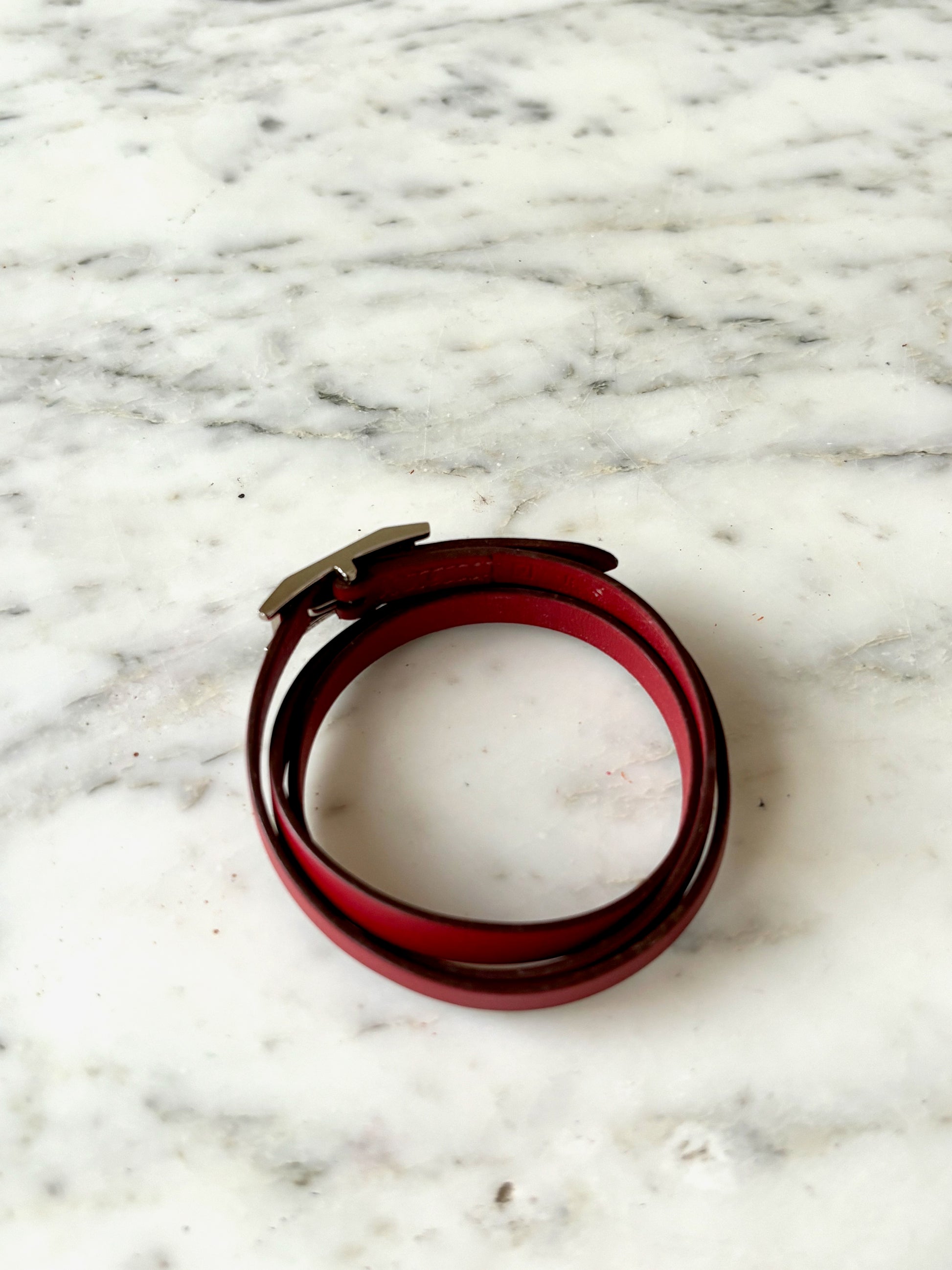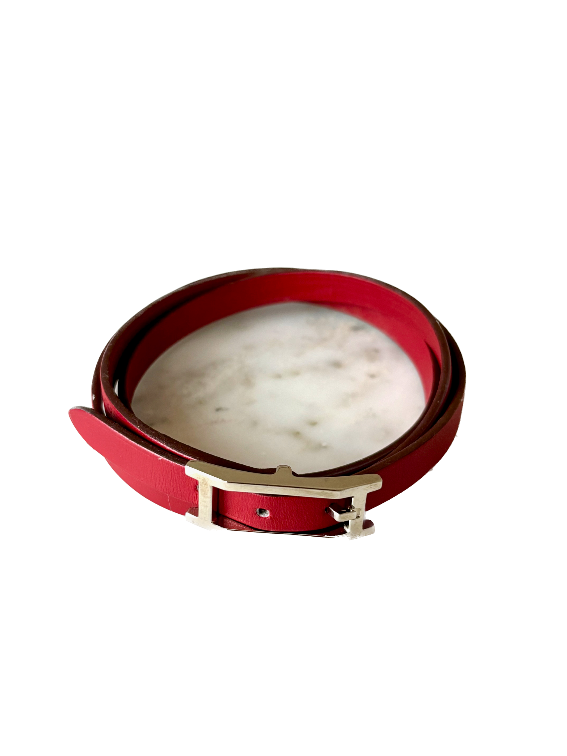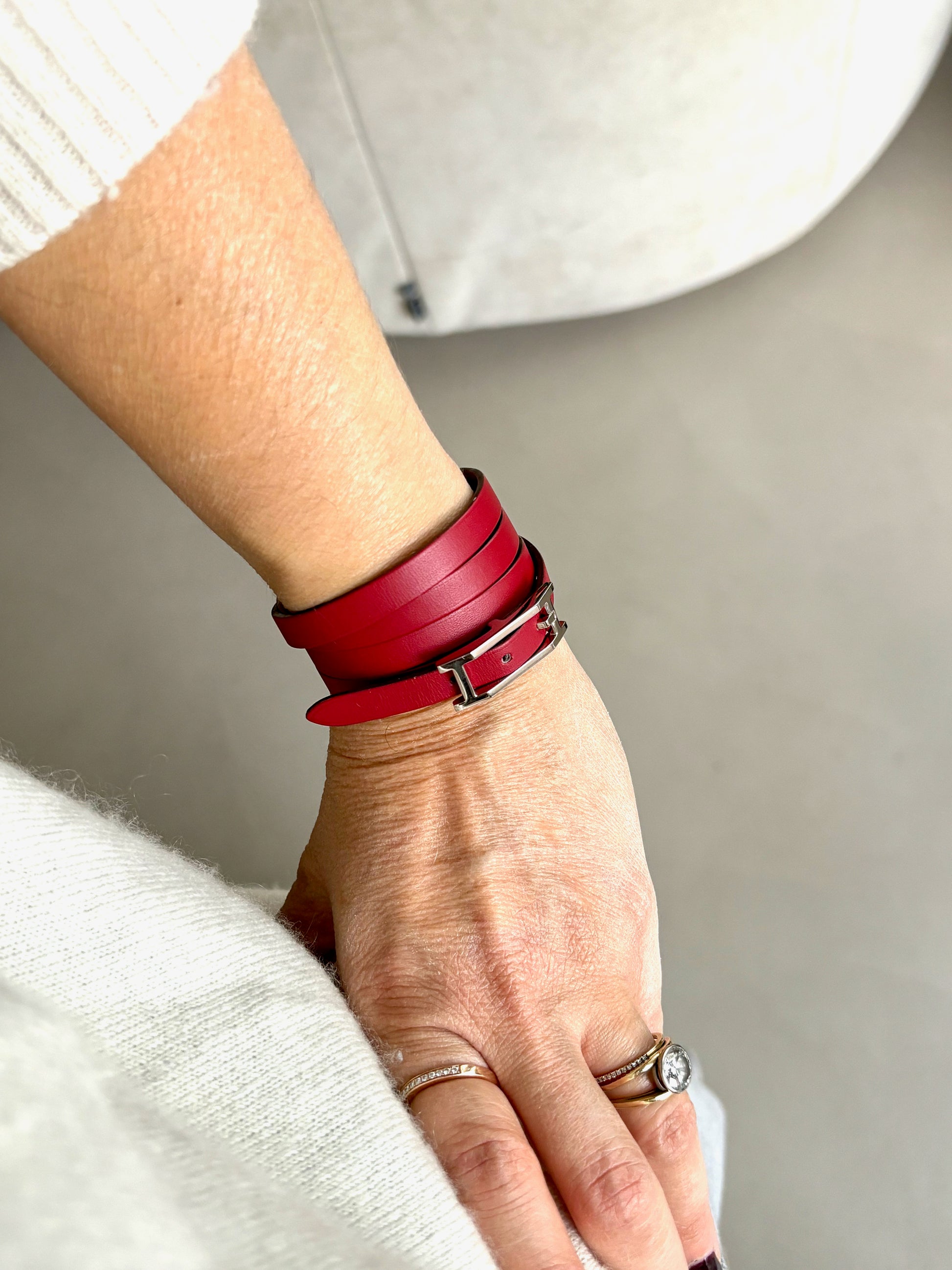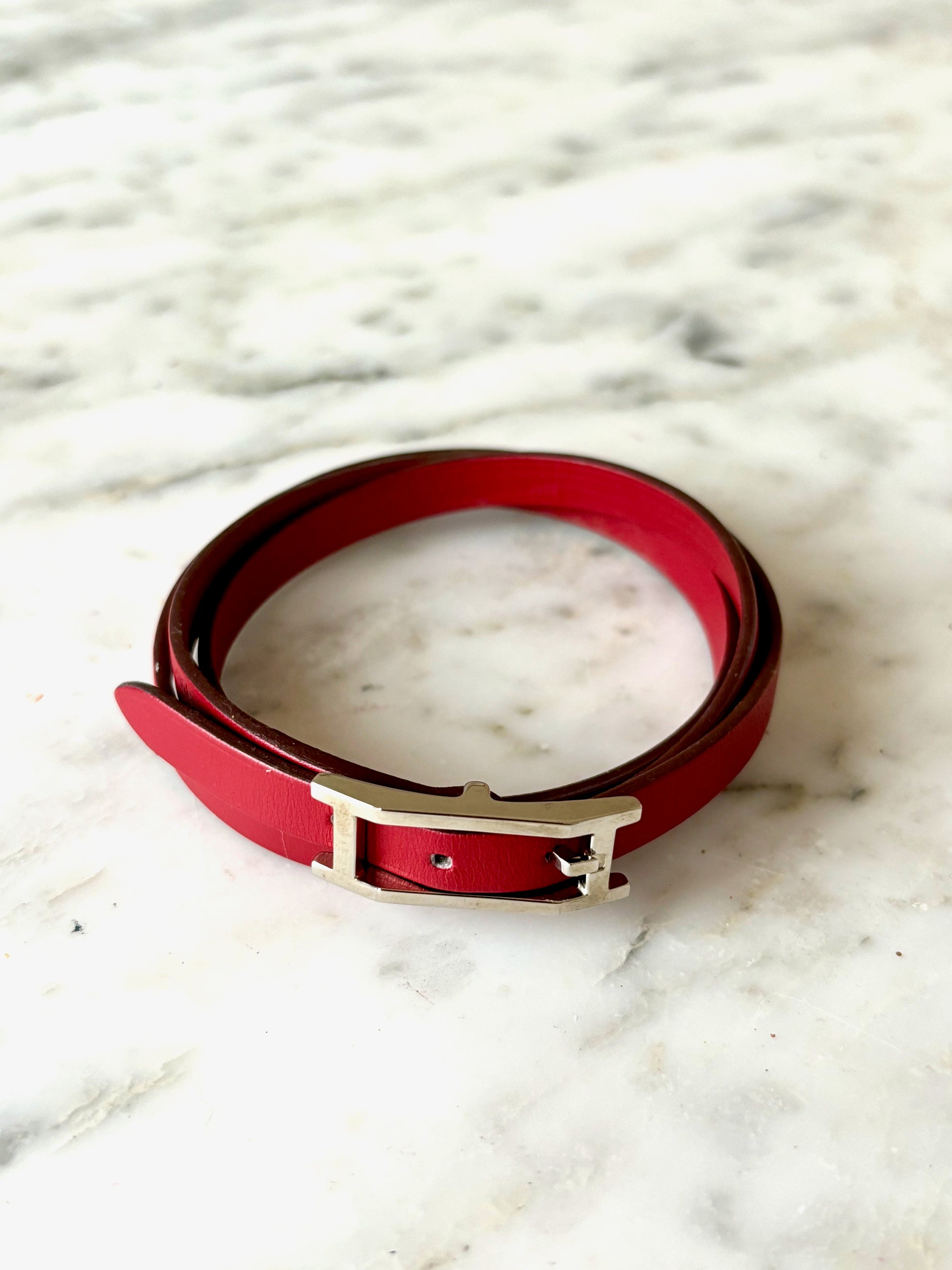 * Bracelet HERMÈS Hapi triple tour en cuir rouge