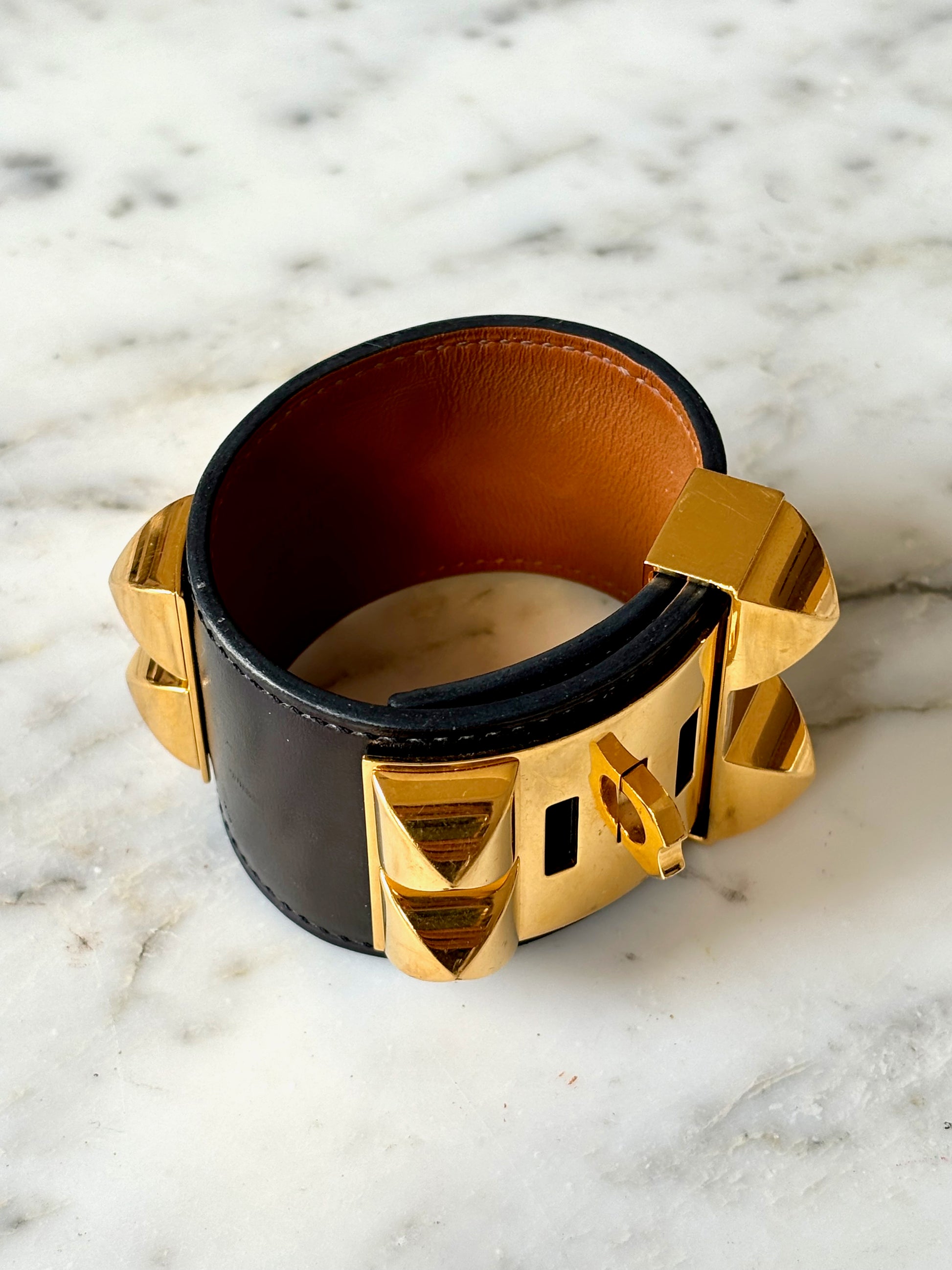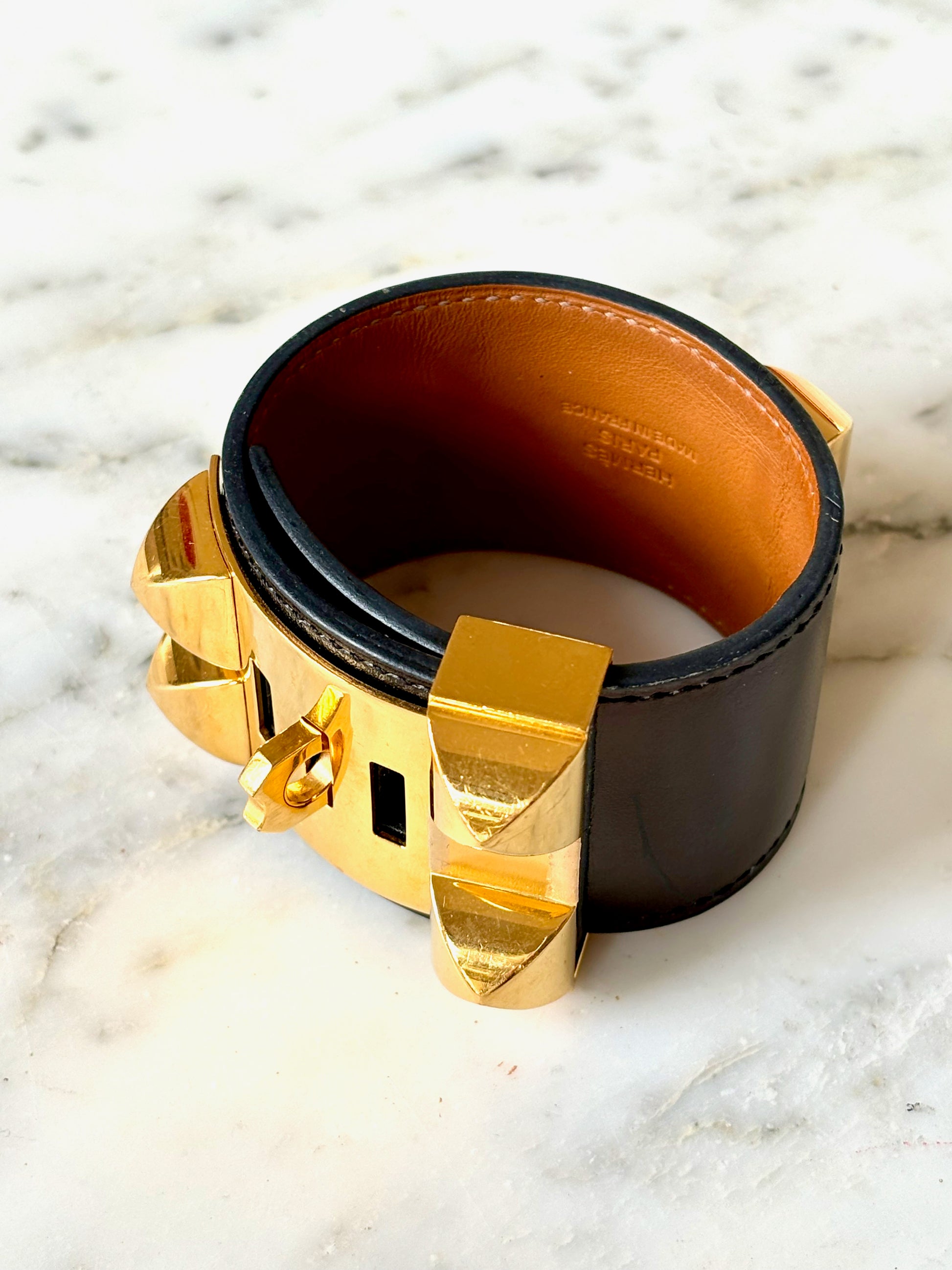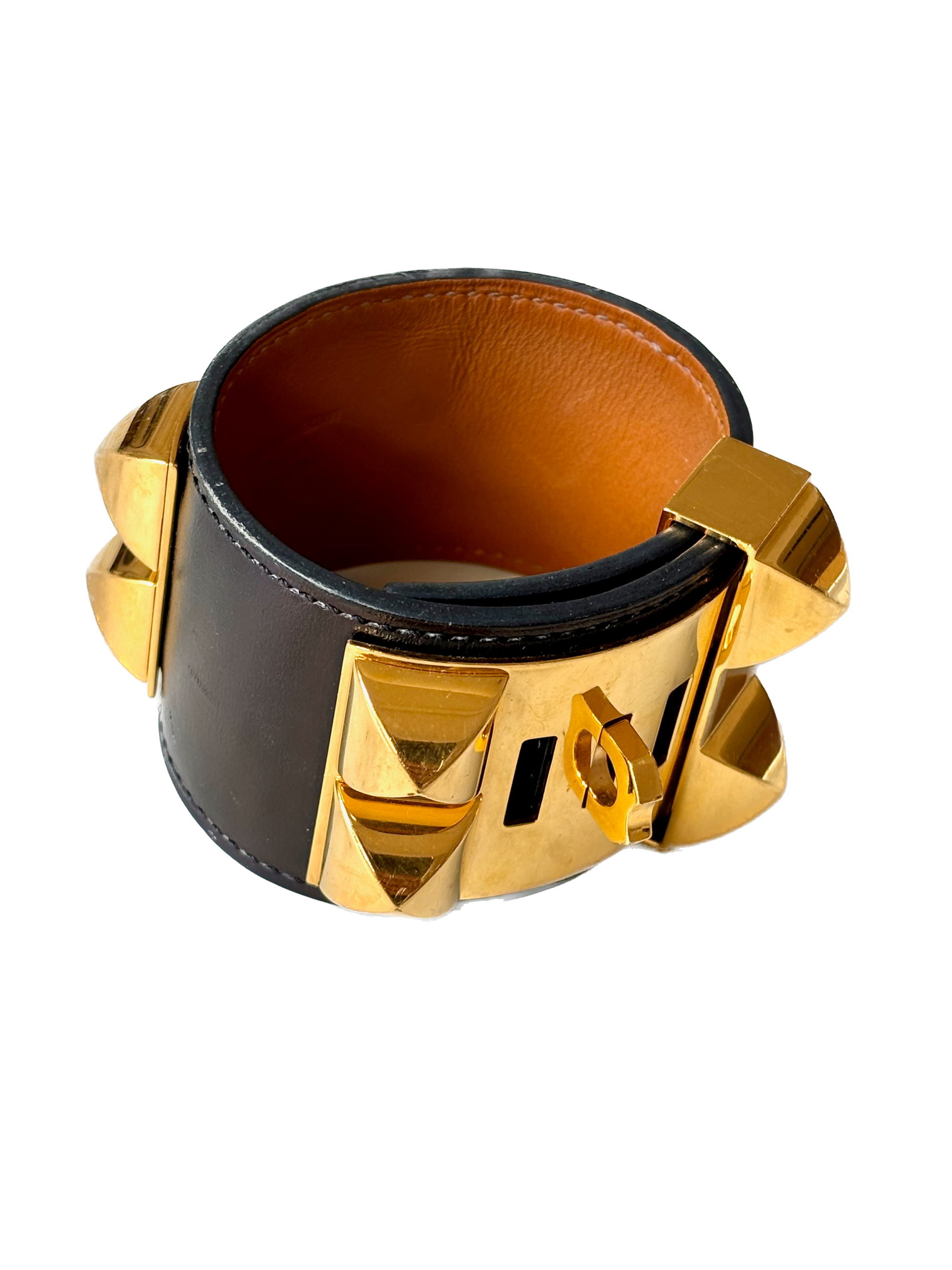 * Bracelet HERMÈS Collier de Chien en veau swift brun légèrement mordoré