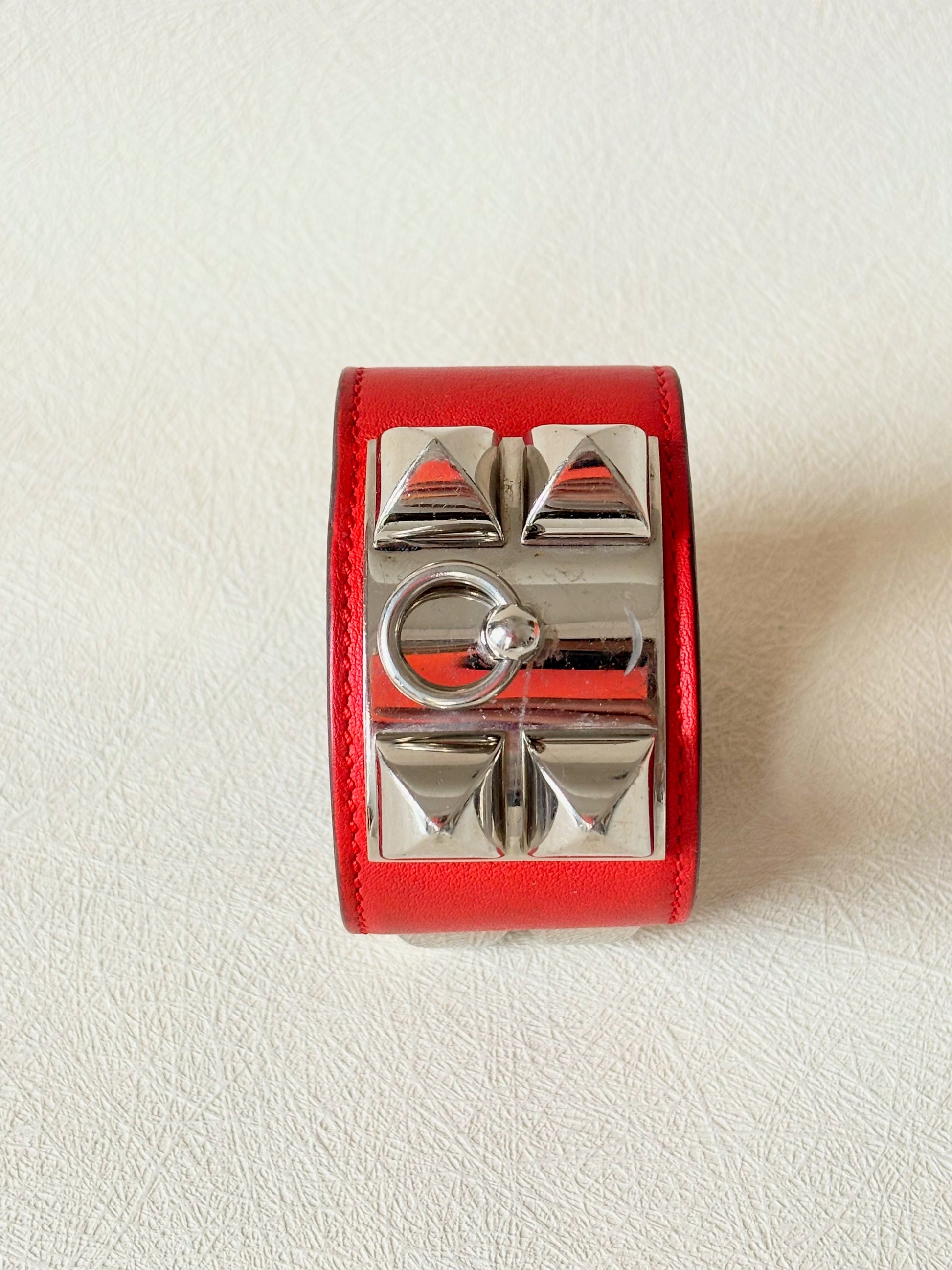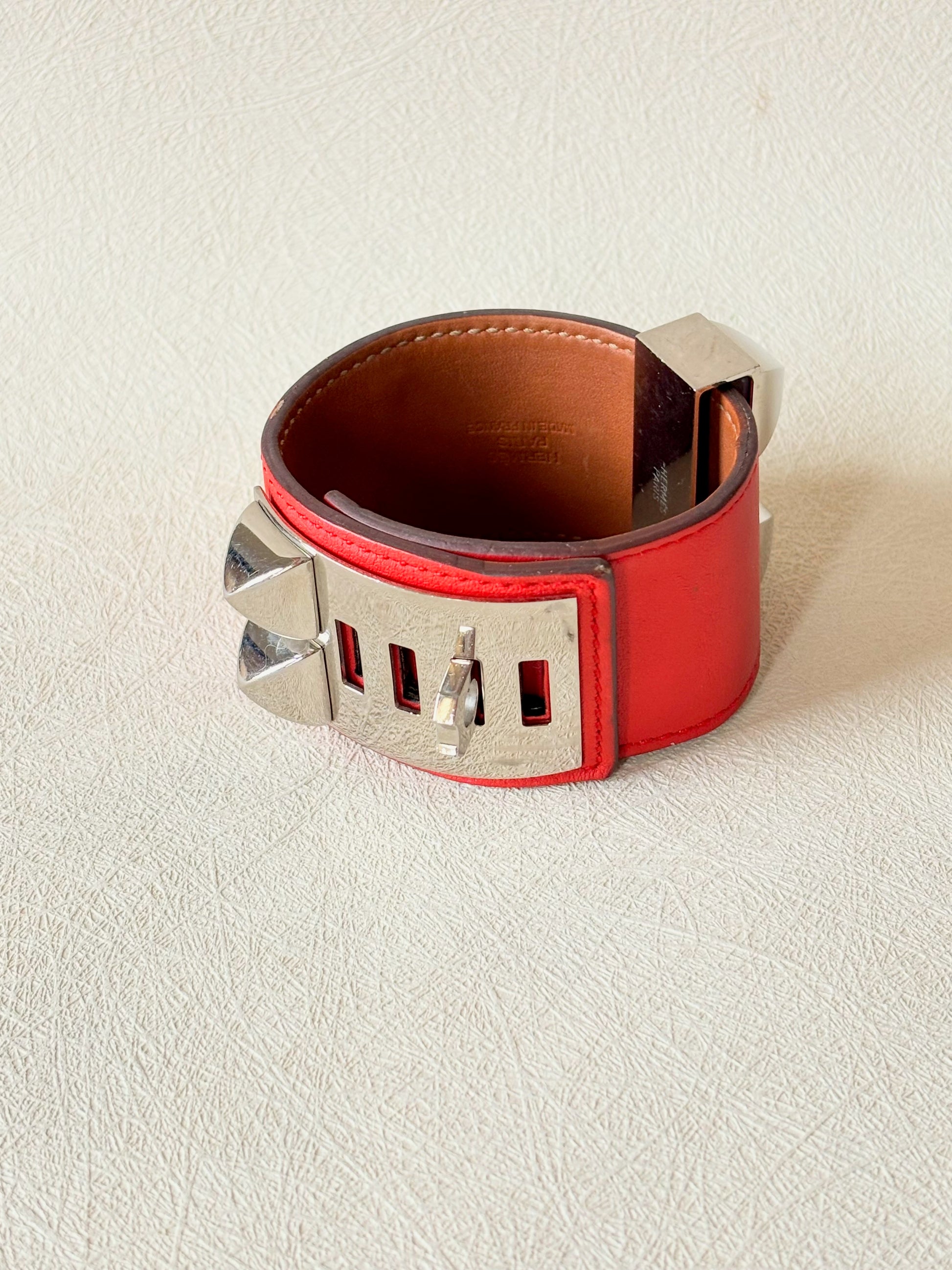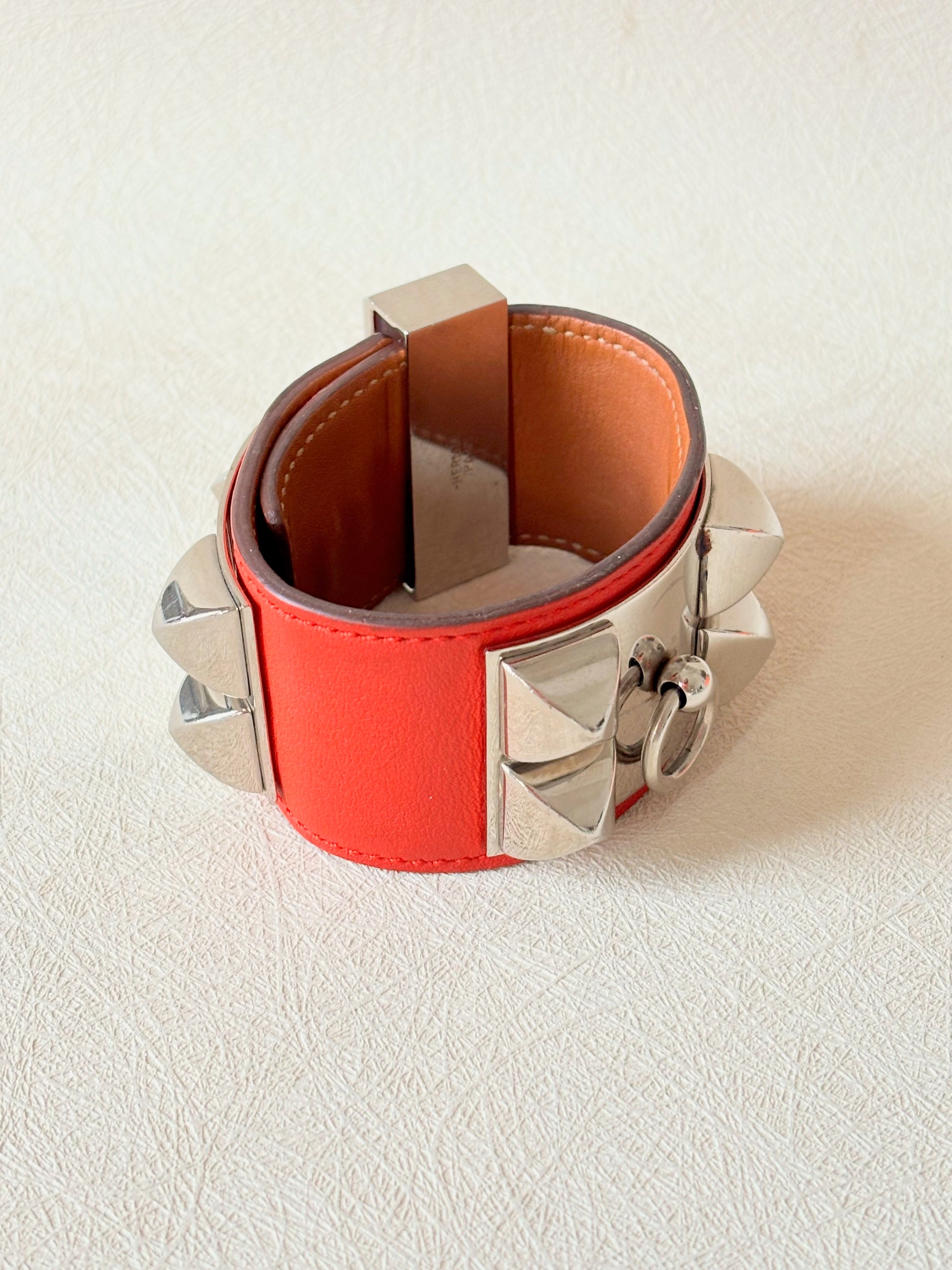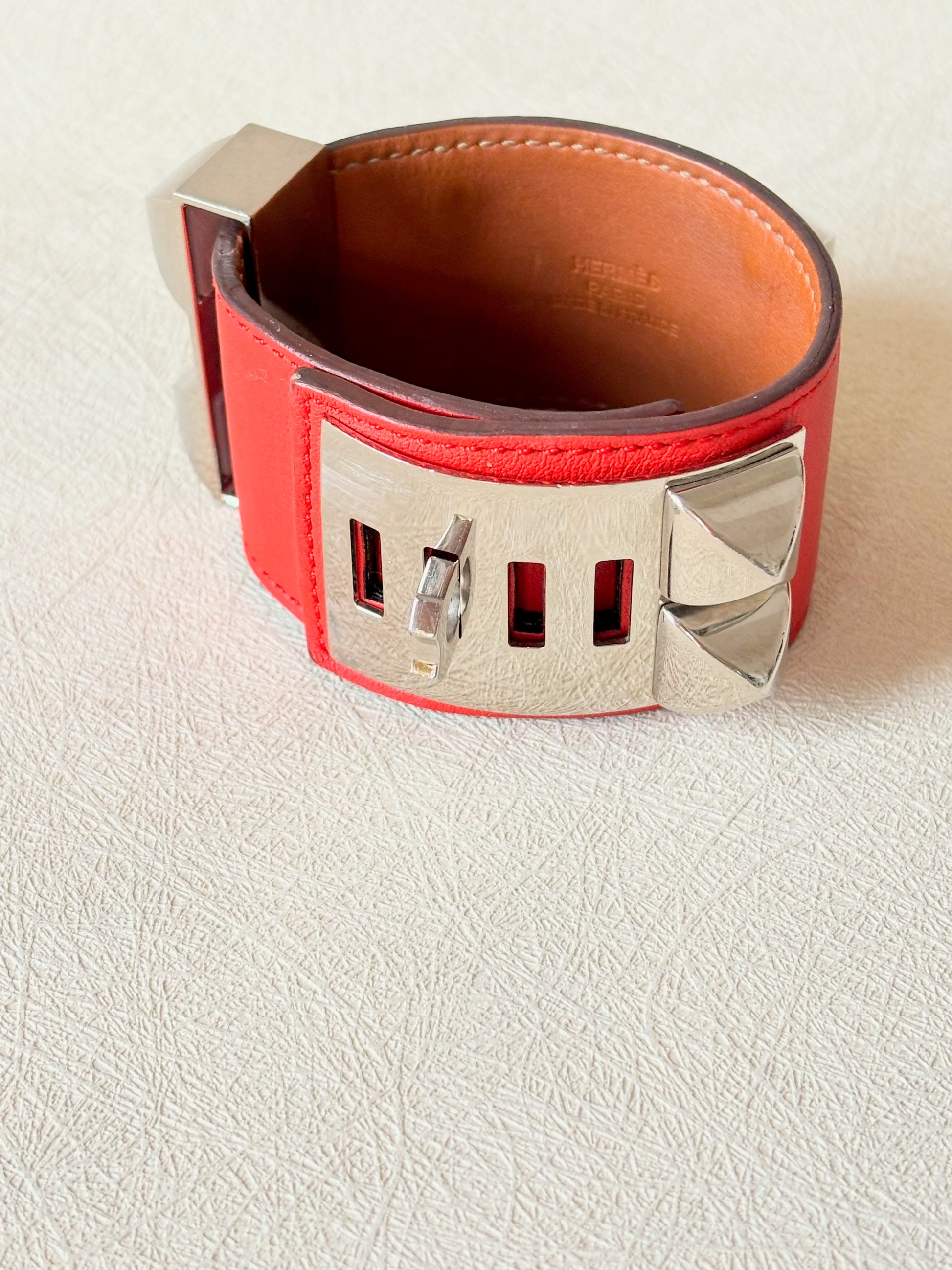 * Bracelet HERMÈS Collier de Chien en veau swift rouge orange