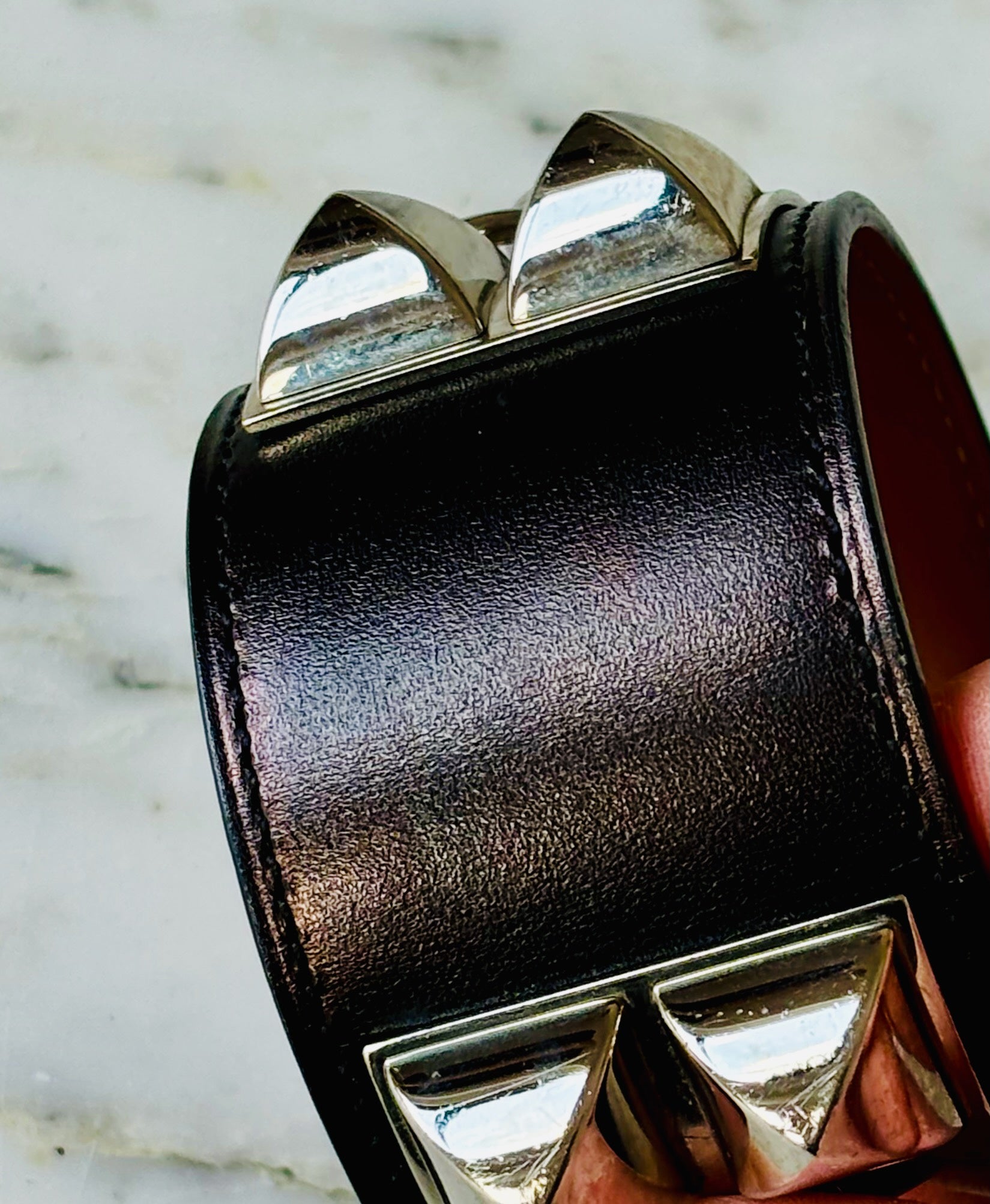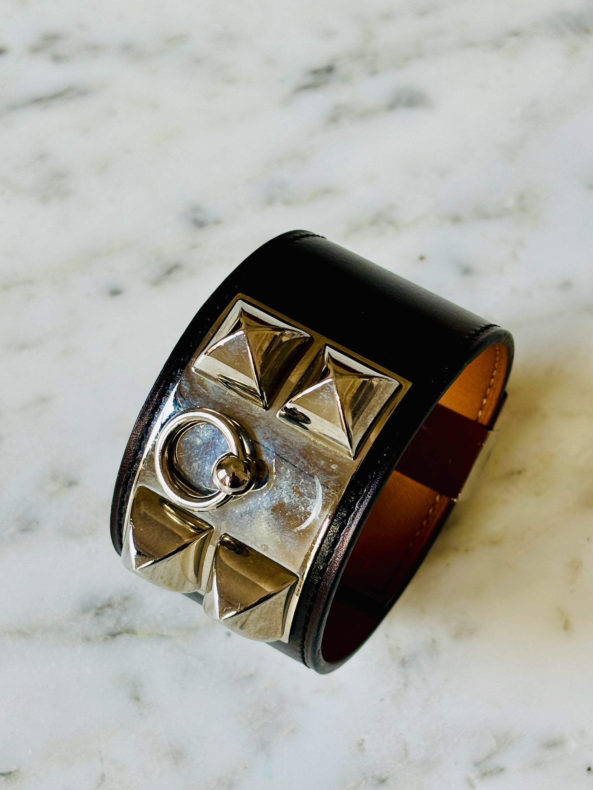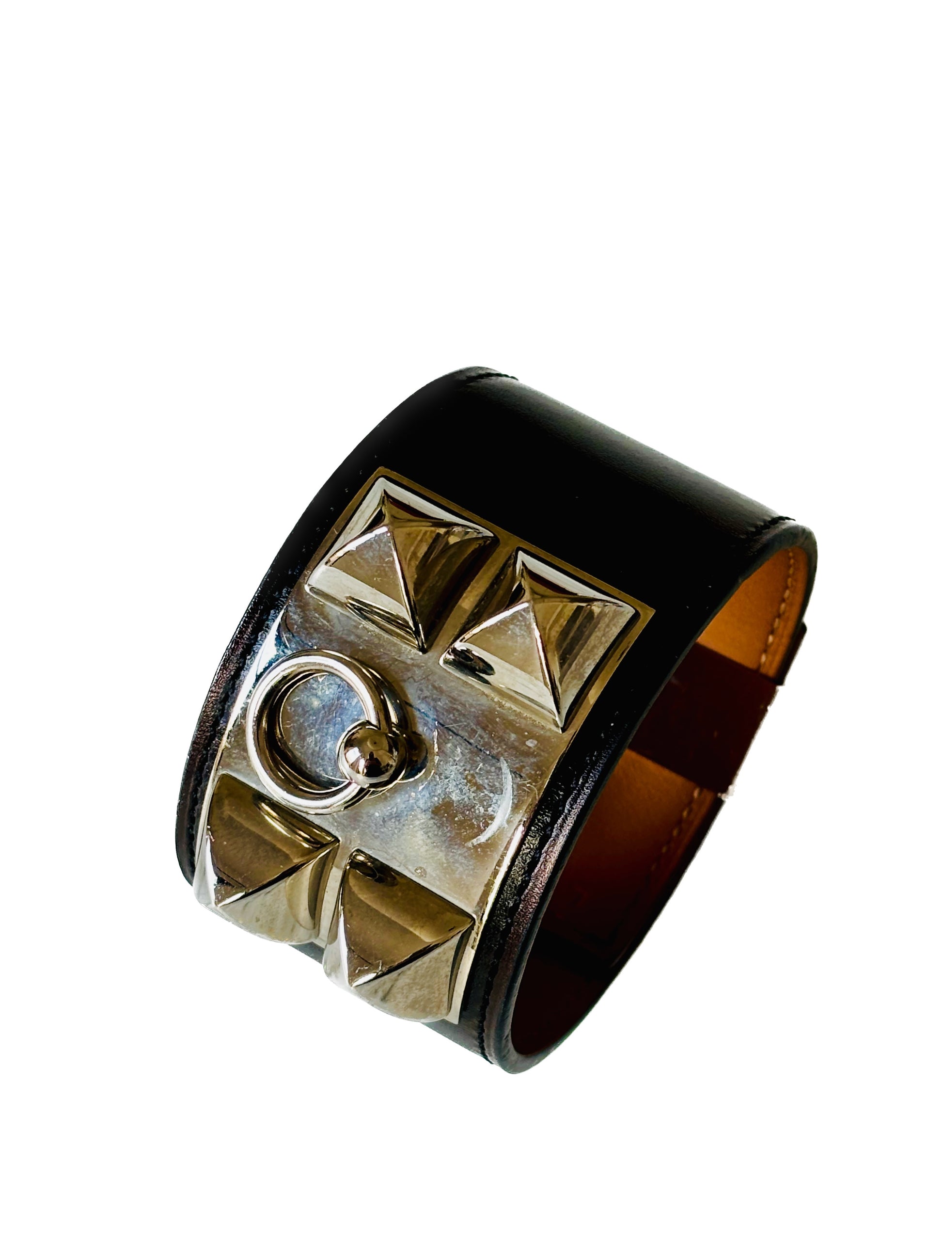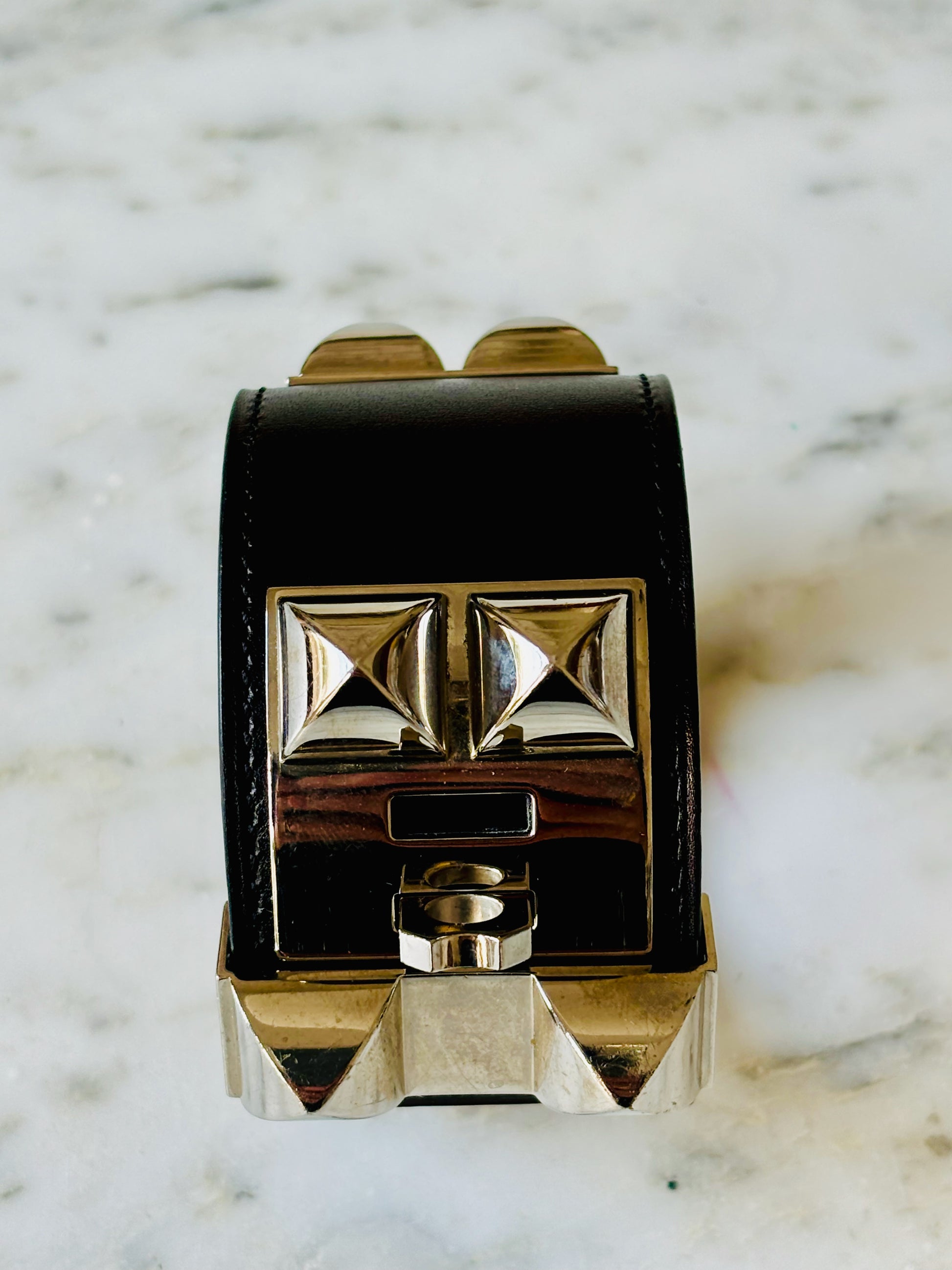 * Bracelet HERMÈS Collier de Chien en veau swift marron légèrement doré
