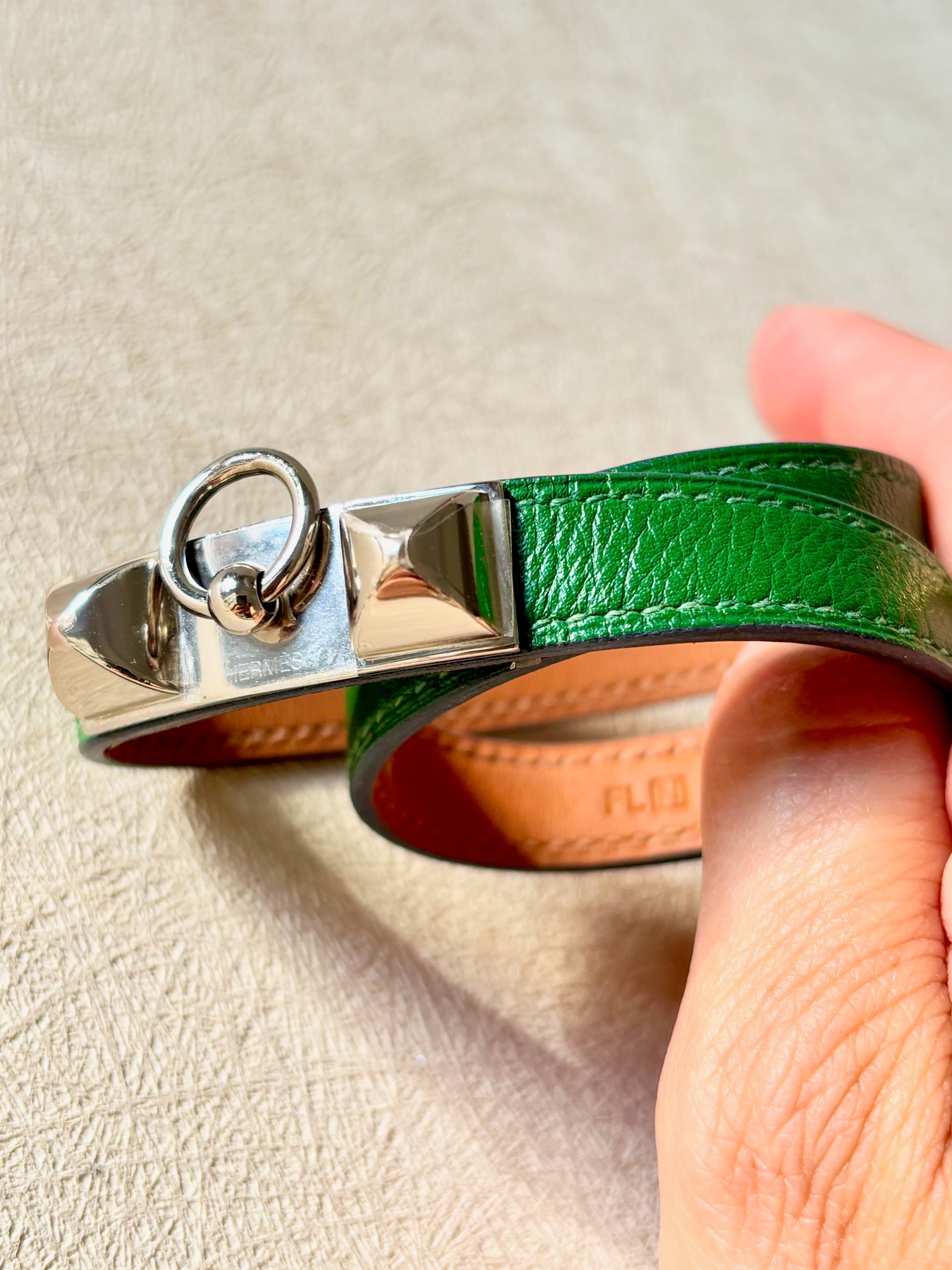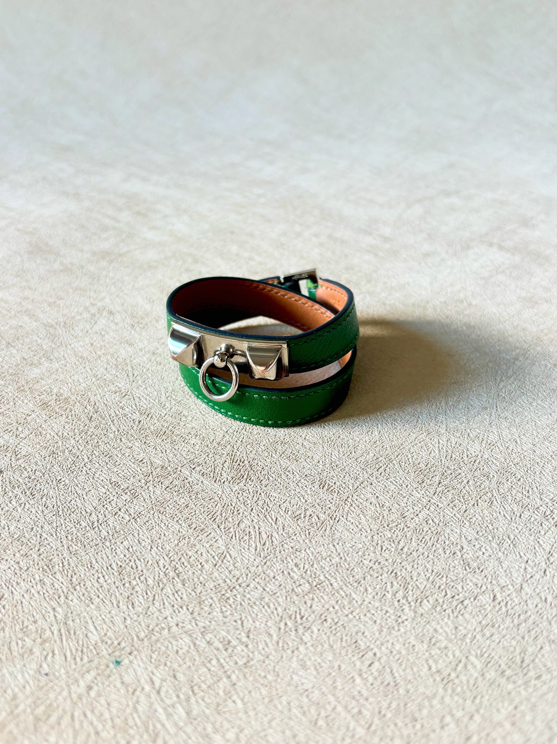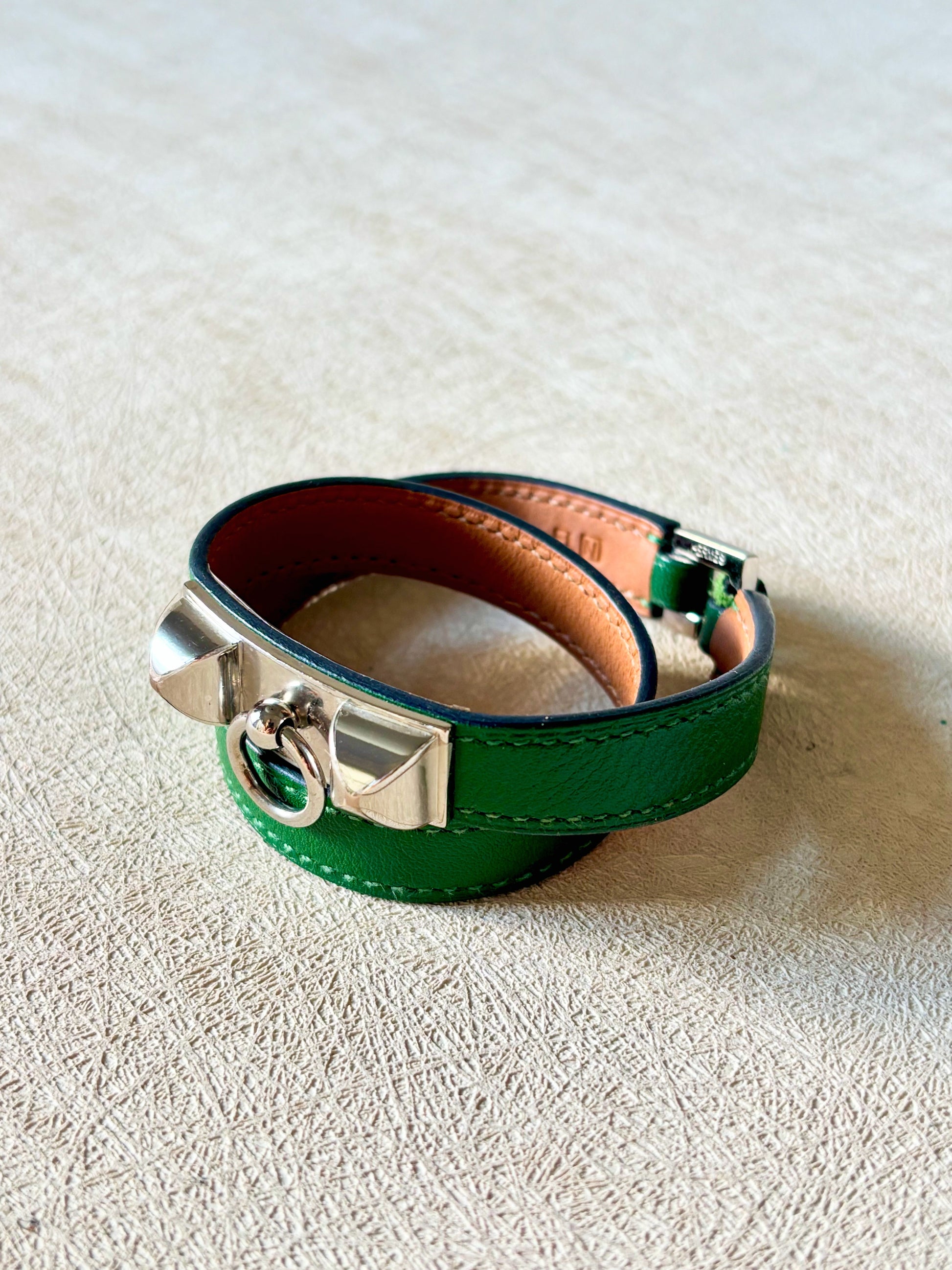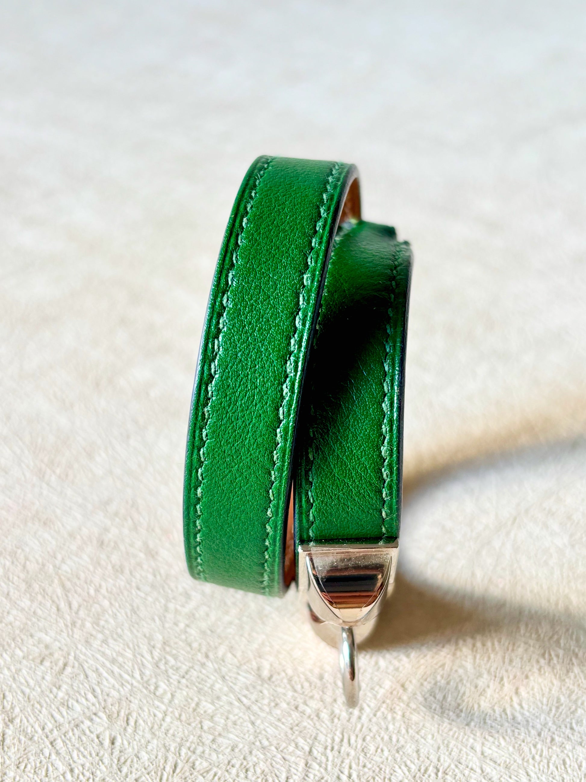 * Bracelet HERMÈS Rivale double Tour en veau swift vert