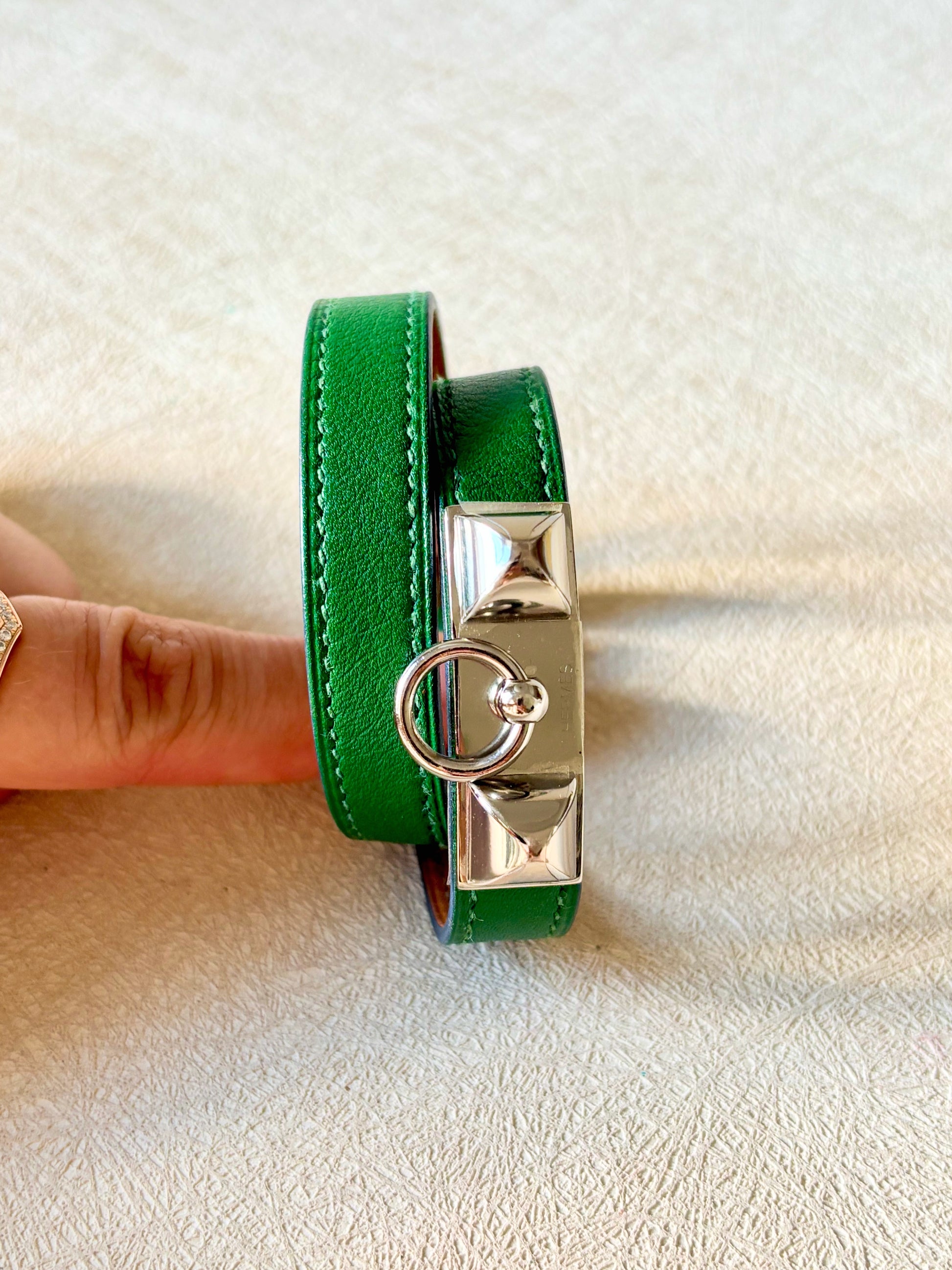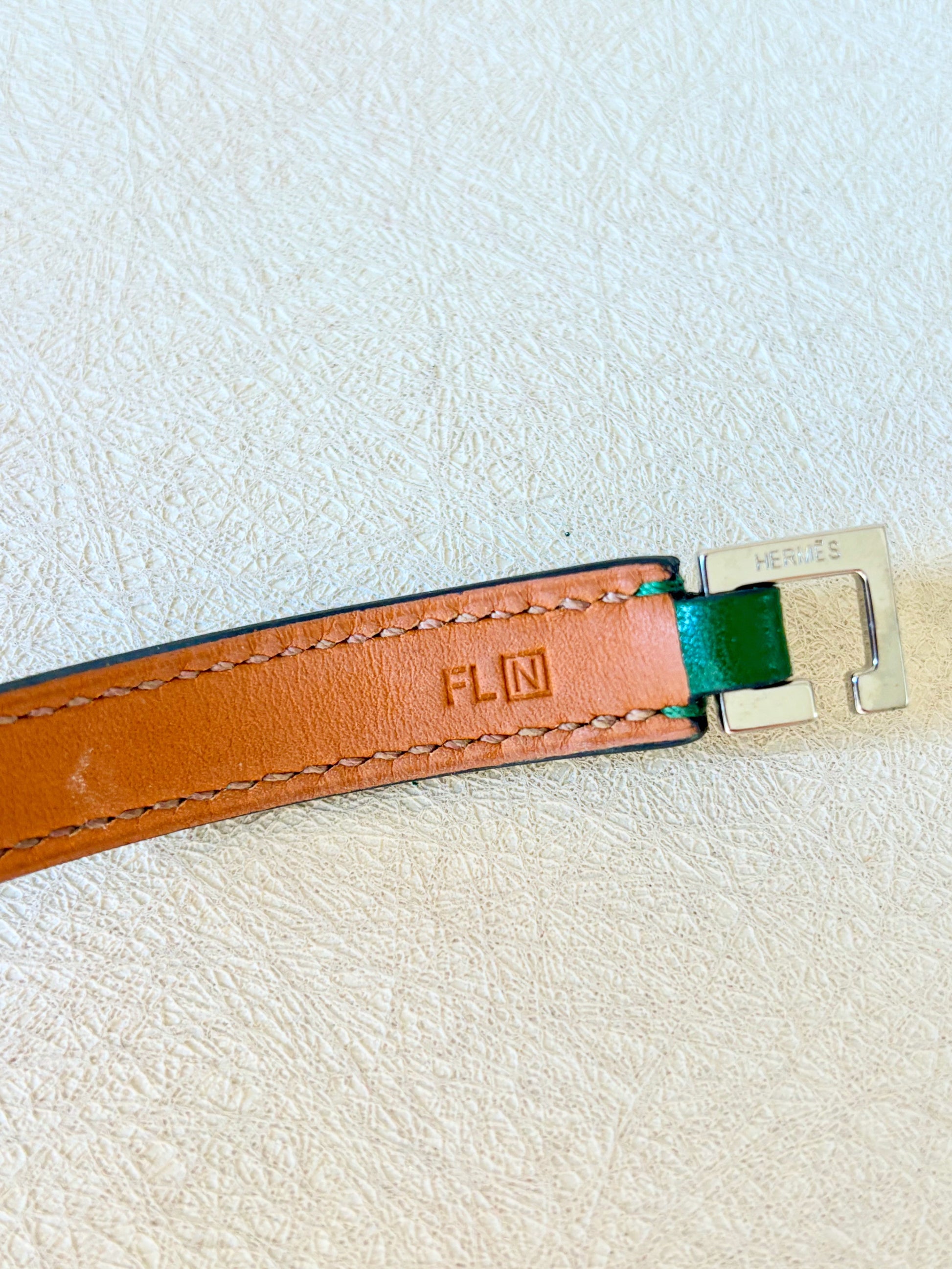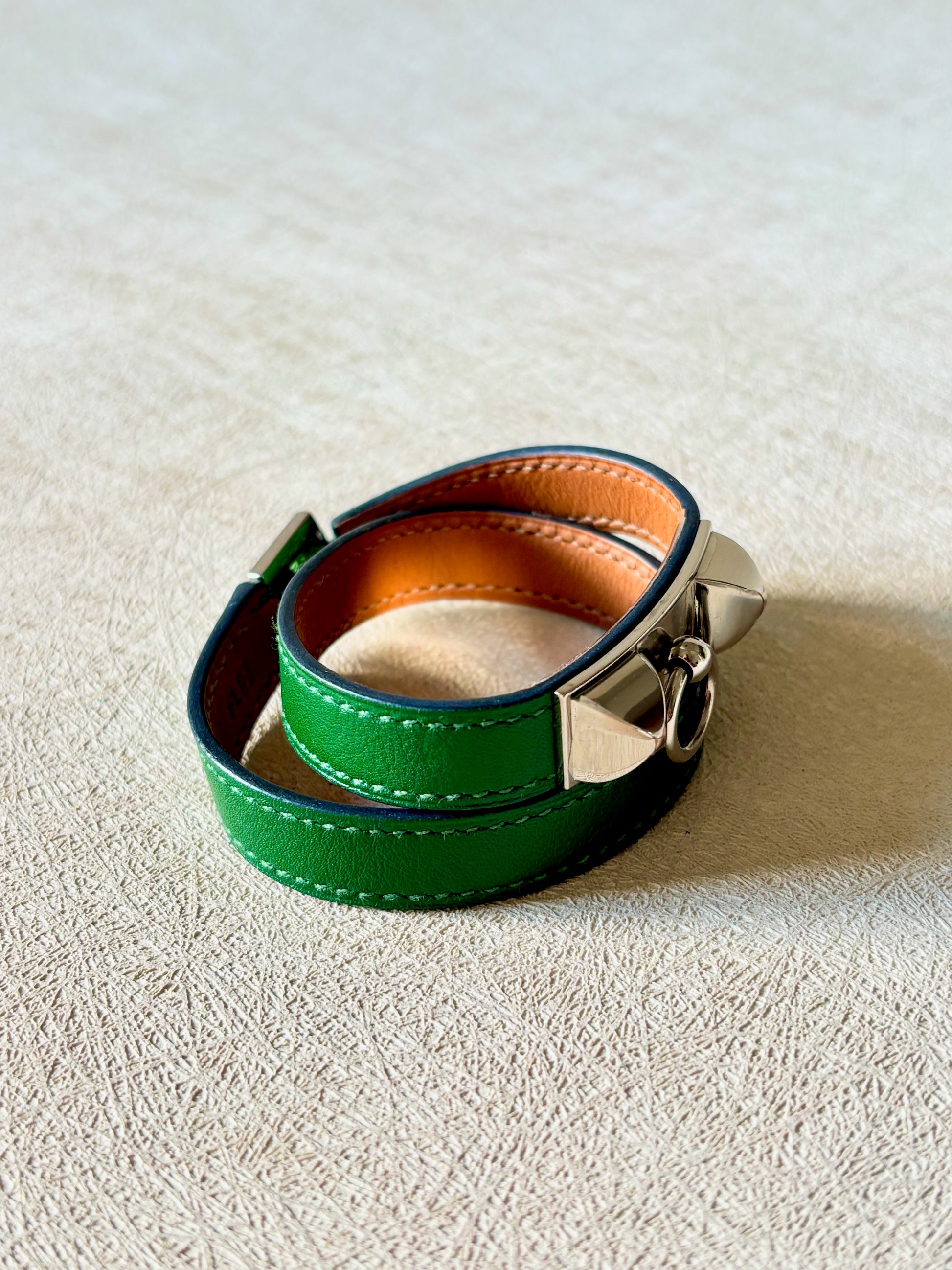 * Bracelet HERMÈS Rivale double Tour en veau swift vert