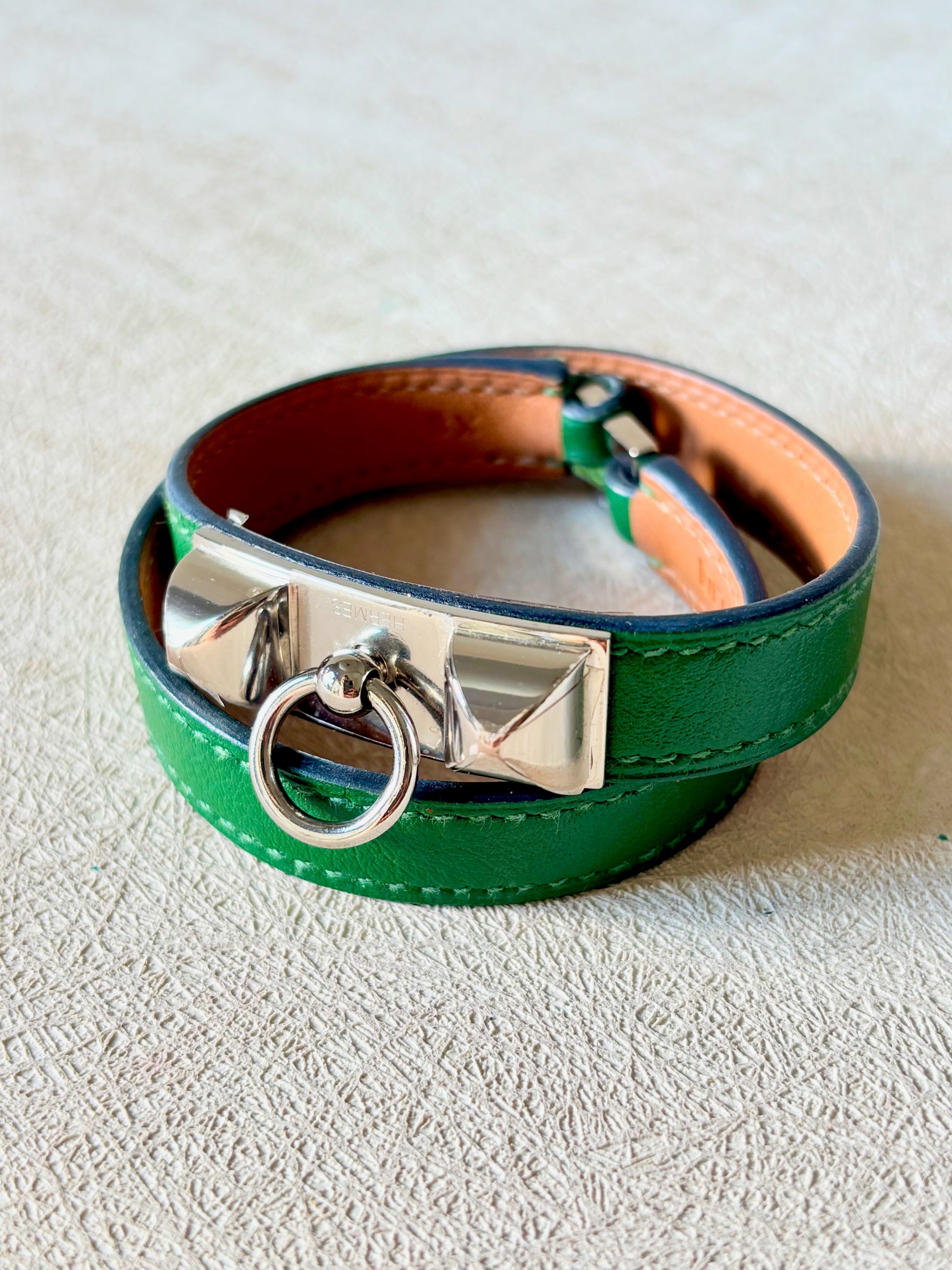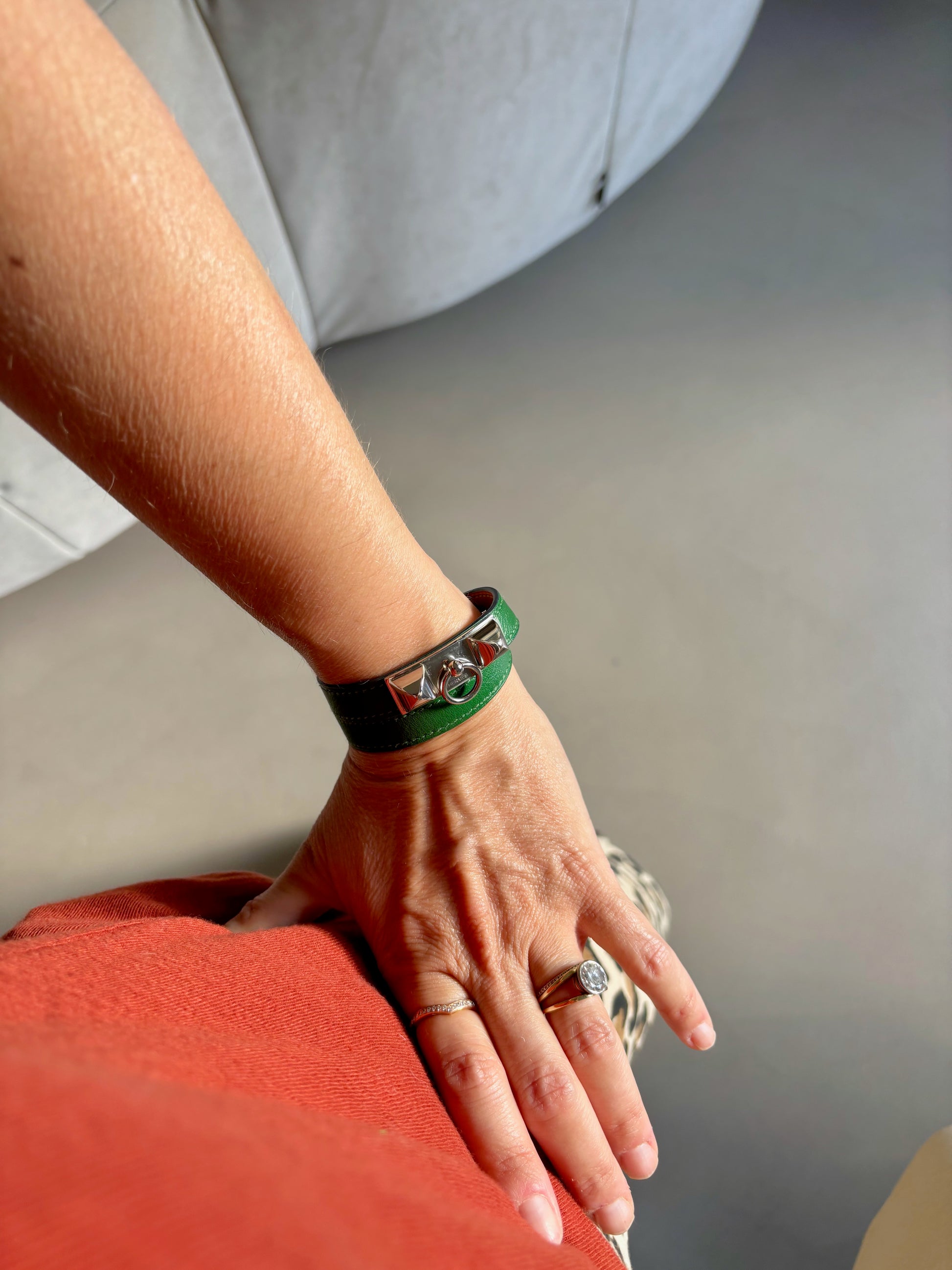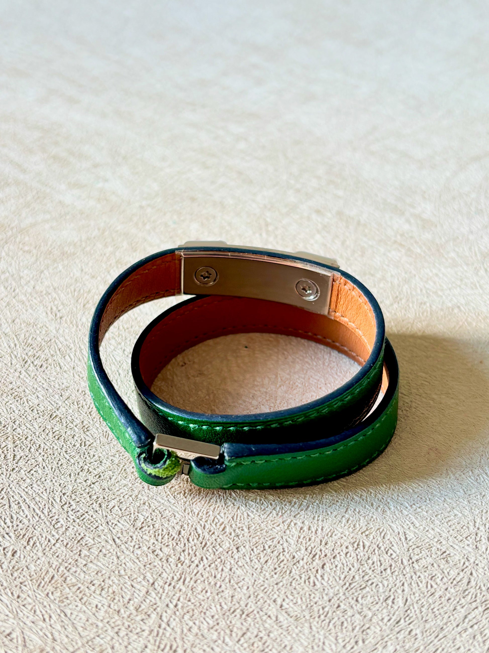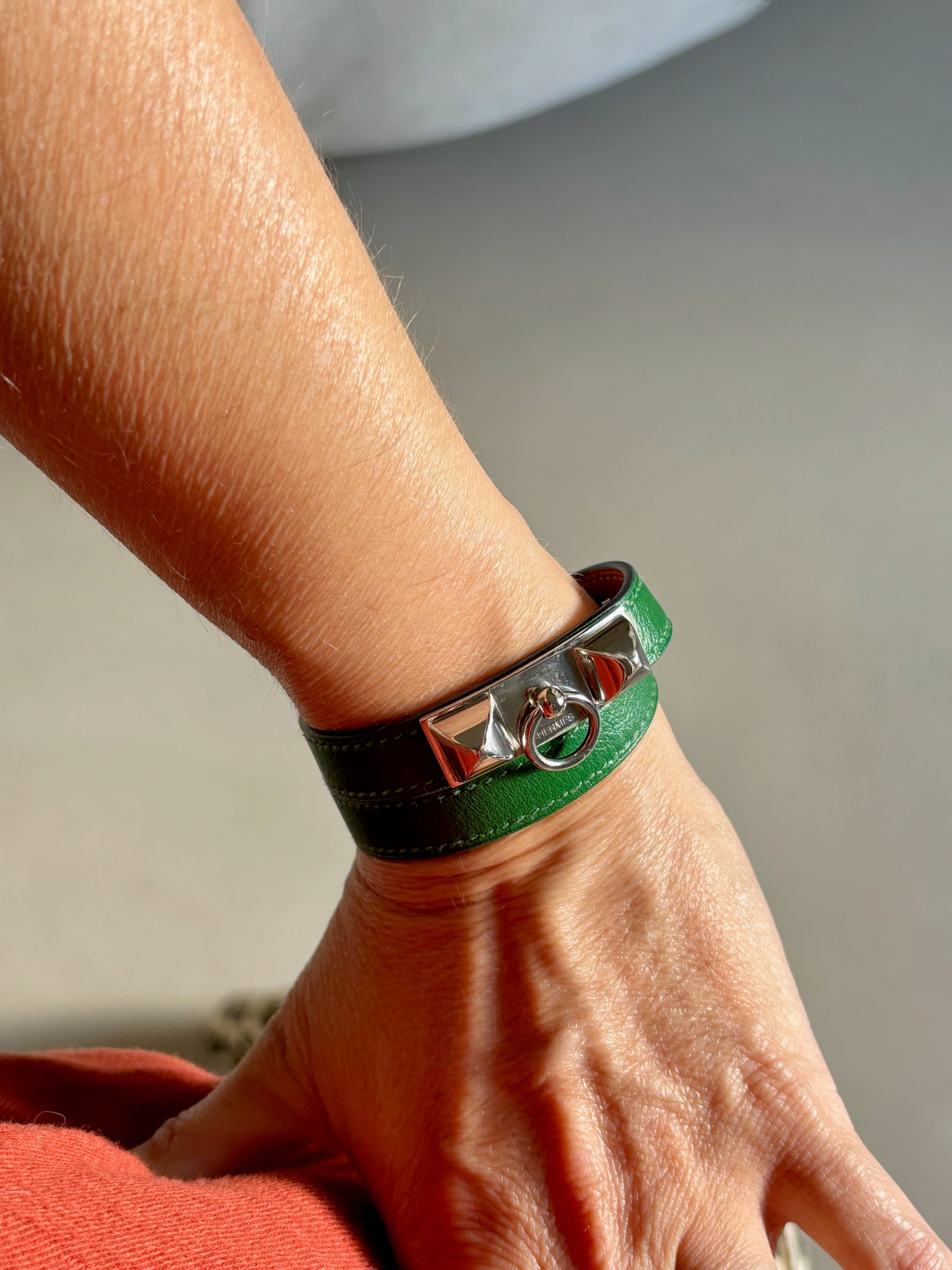 * Bracelet HERMÈS Rivale double Tour en veau swift vert