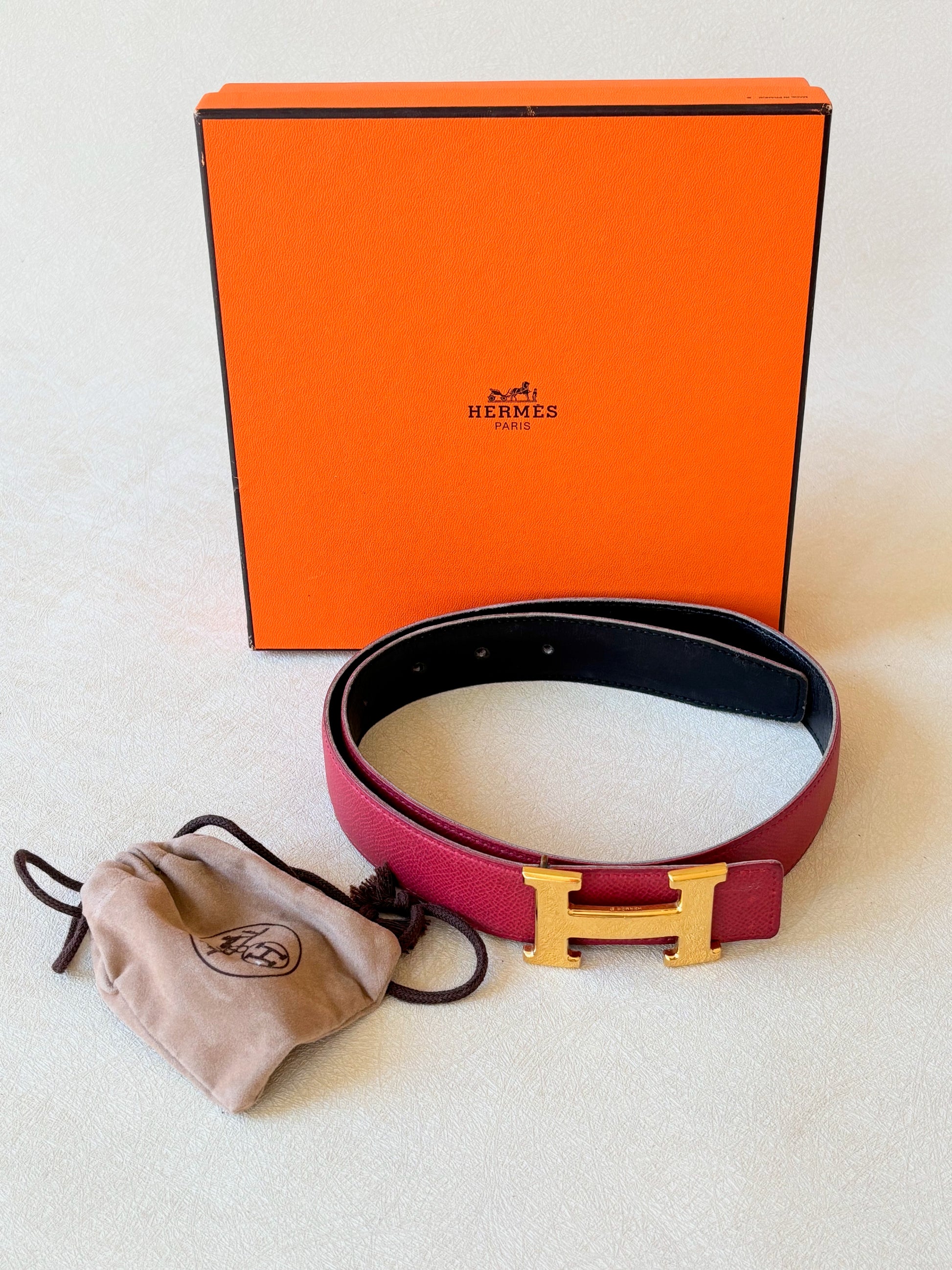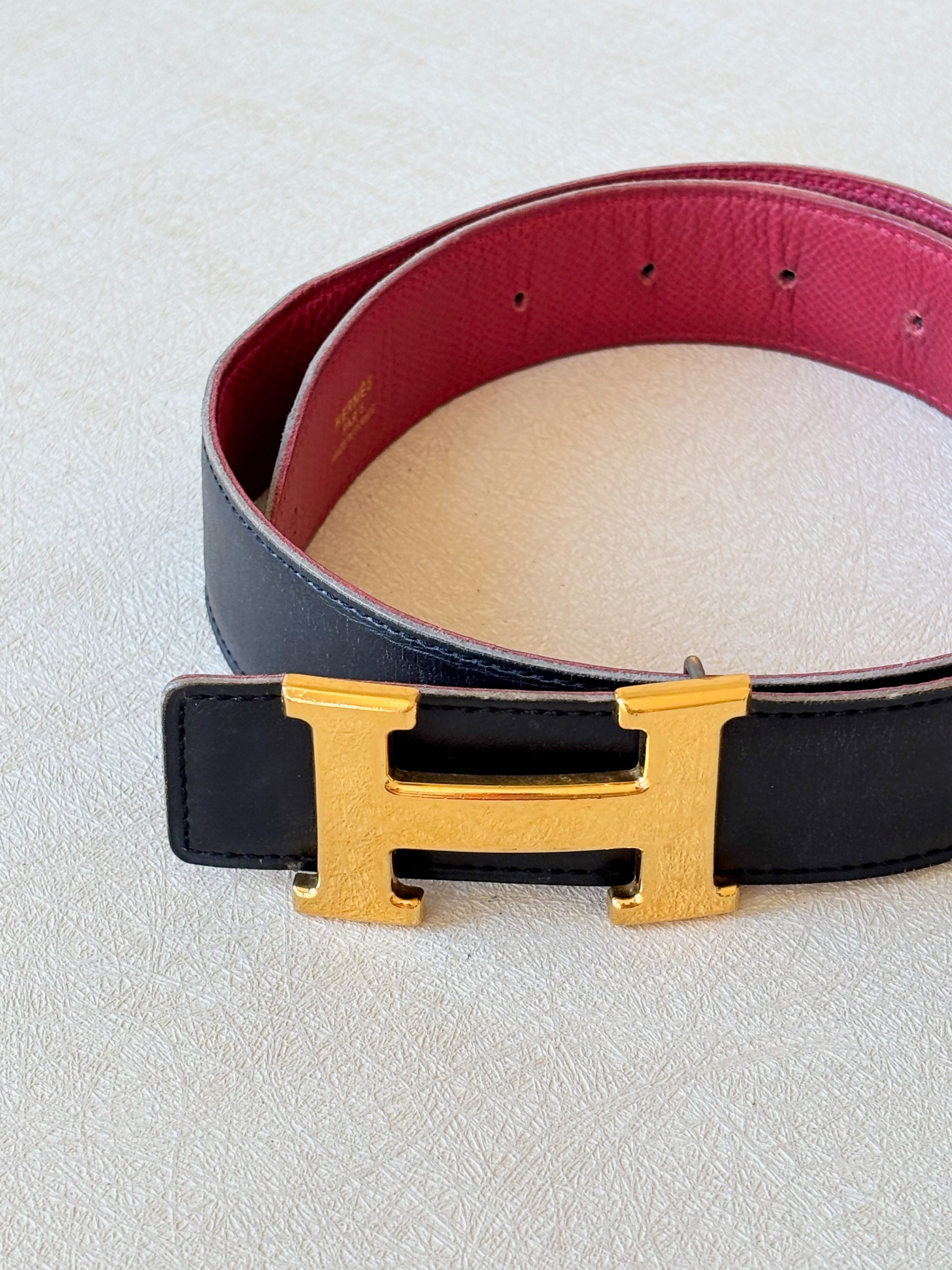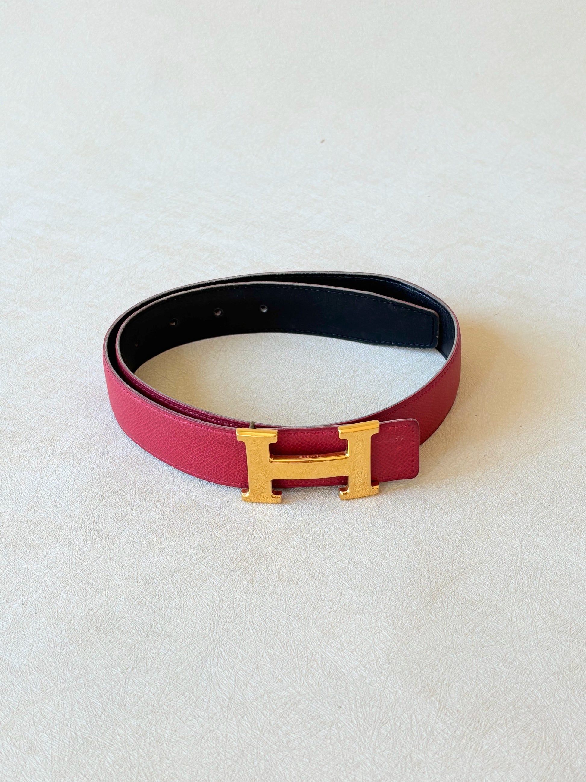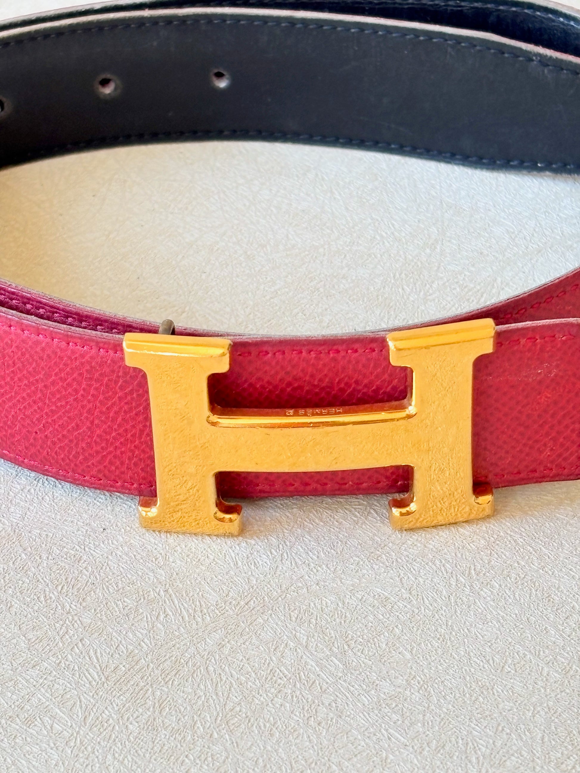 * Ceinture boucle HERMÈS H en cuir réversible noir et rouge