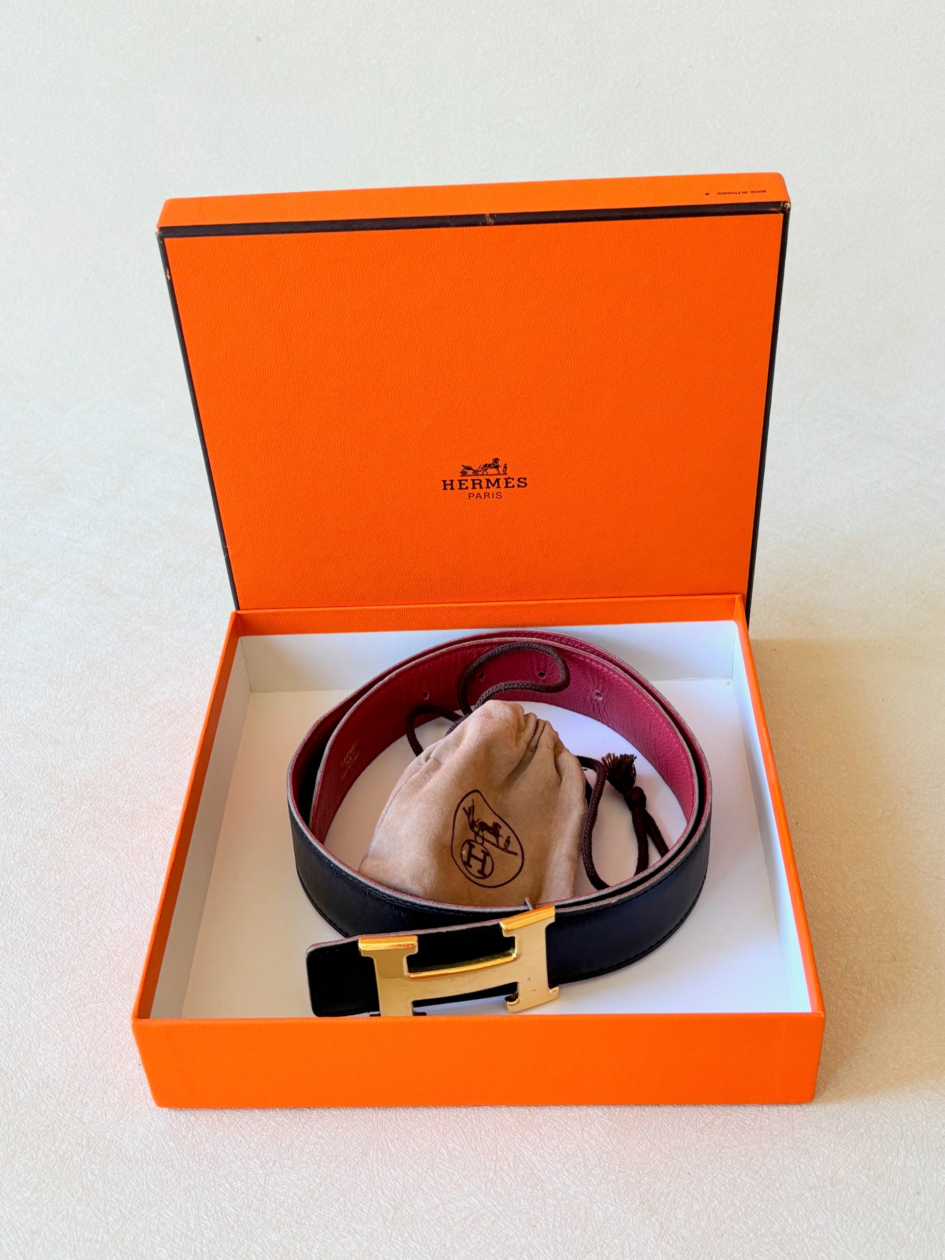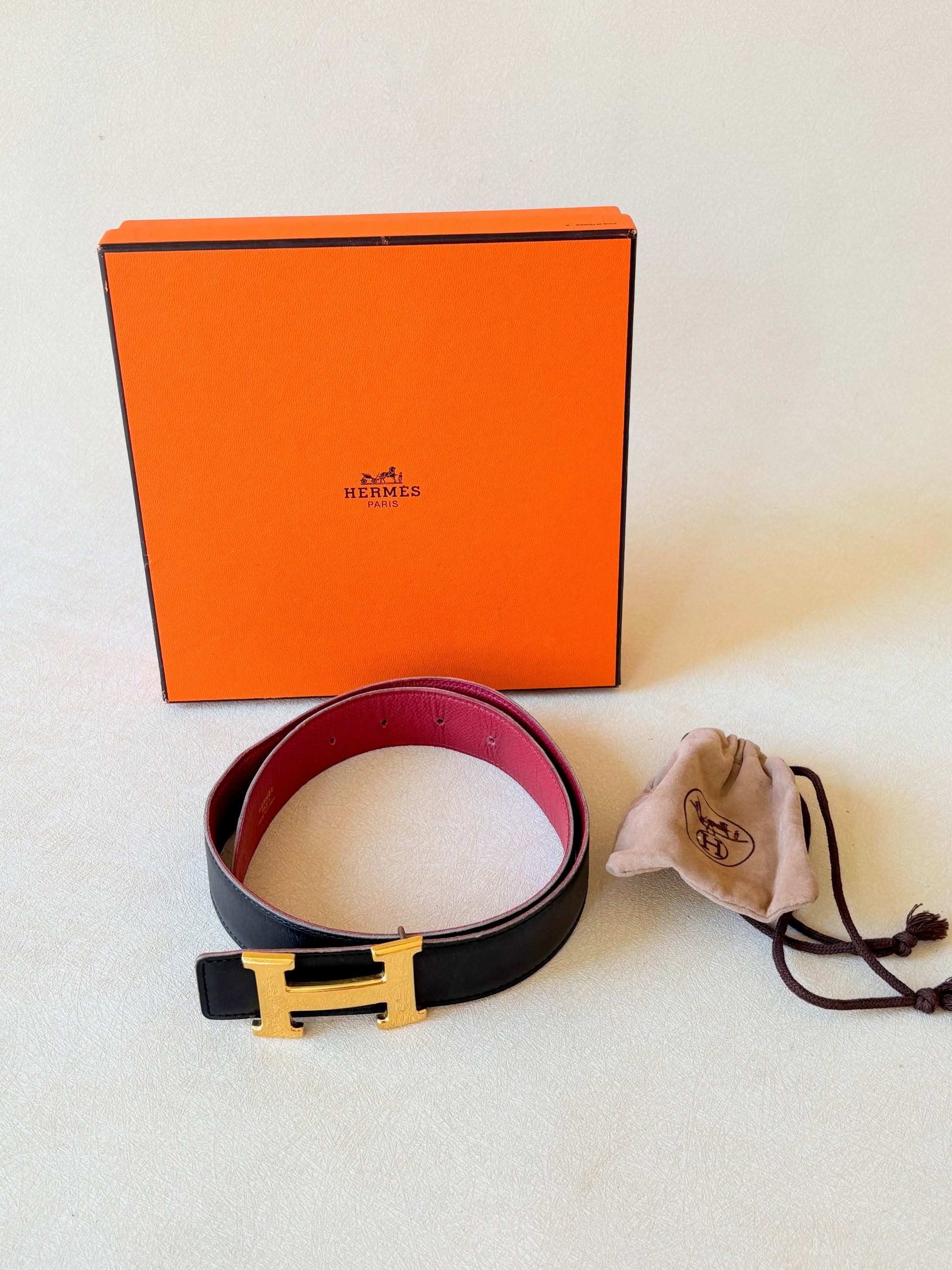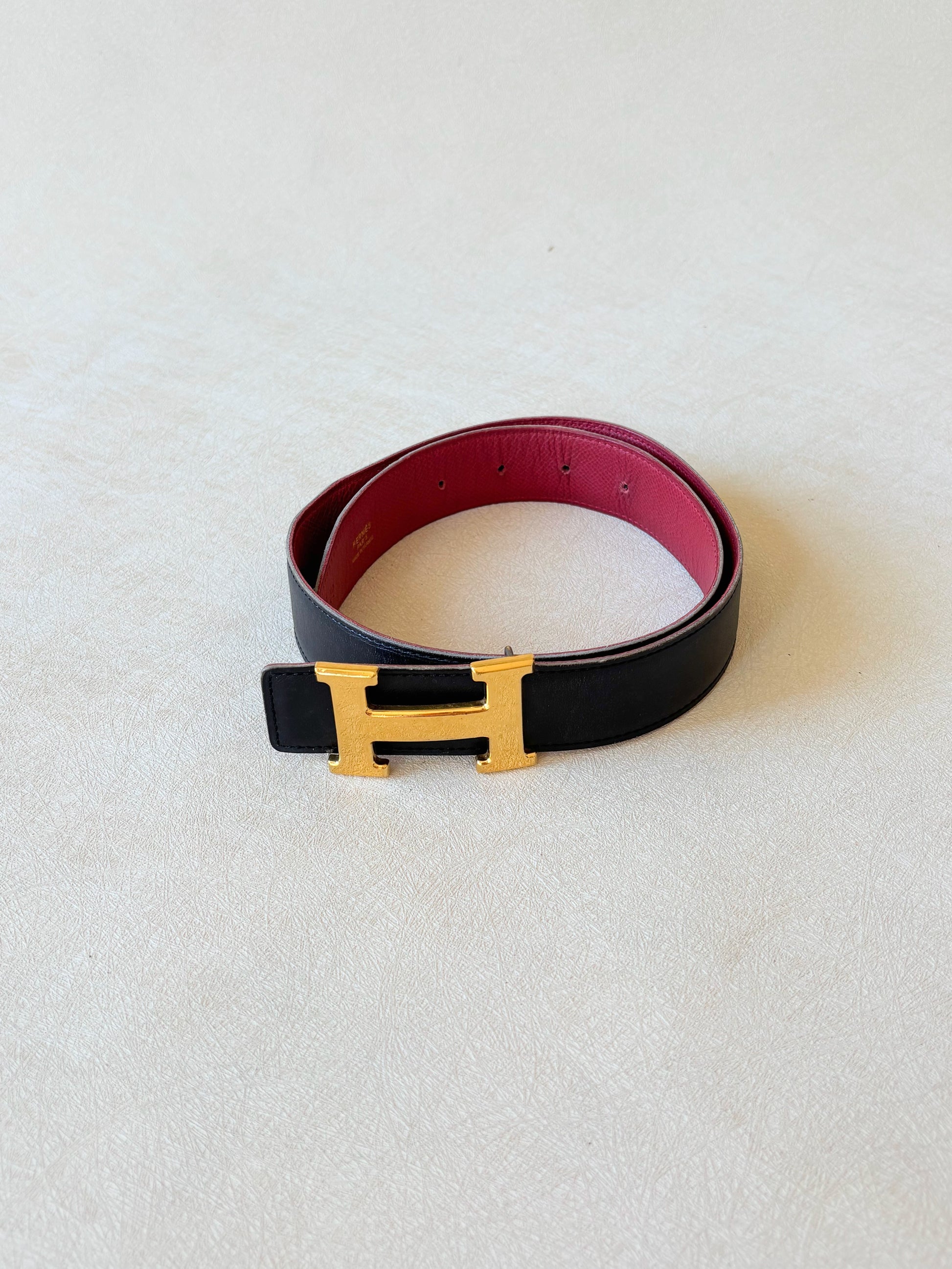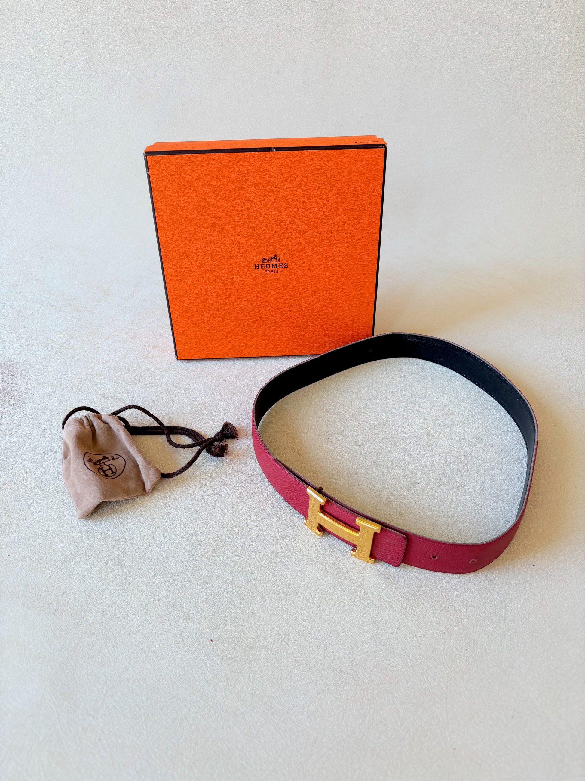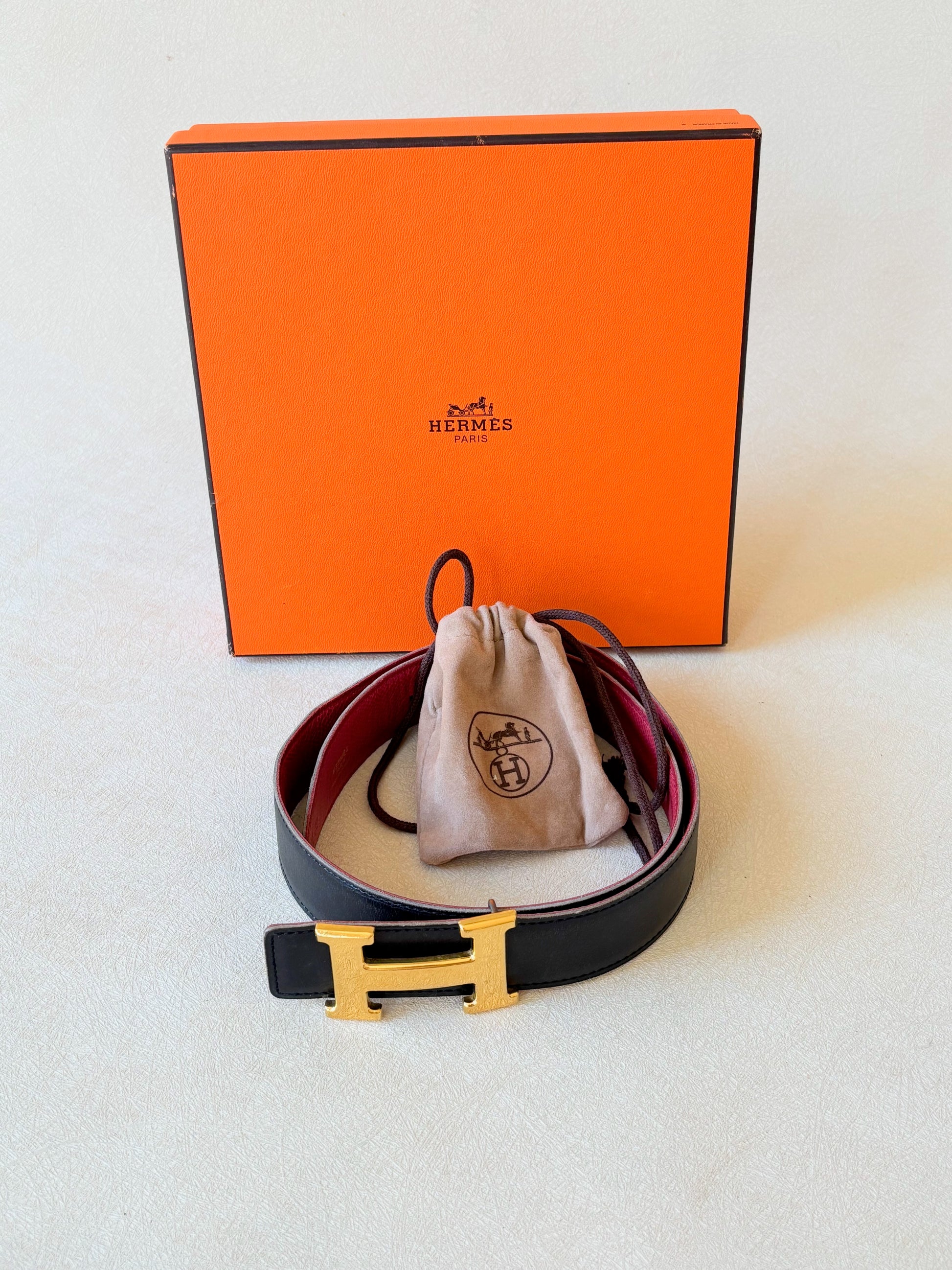 * Ceinture boucle HERMÈS H en cuir réversible noir et rouge