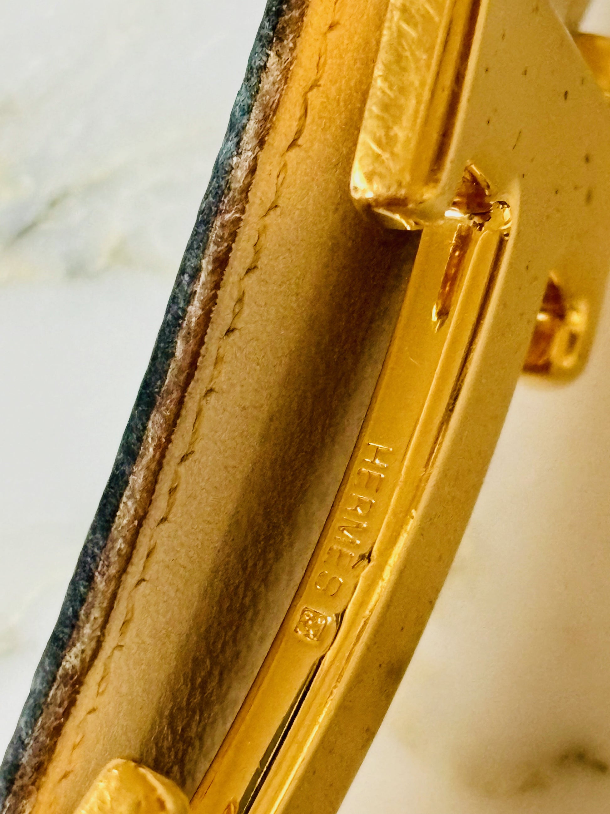 * Ceinture HERMÈS boucle H en cuir blanc cassé et bleu foncé réversible