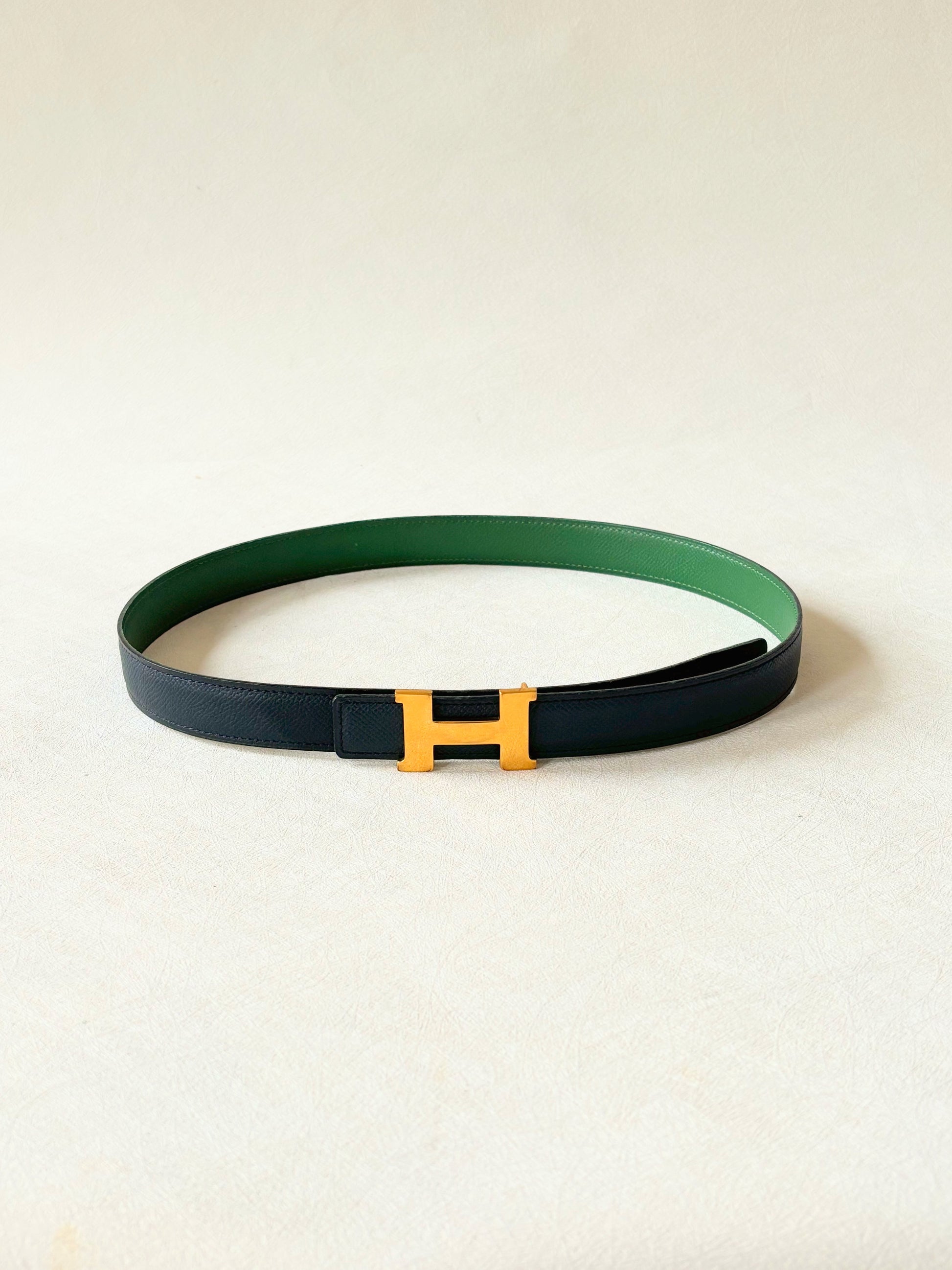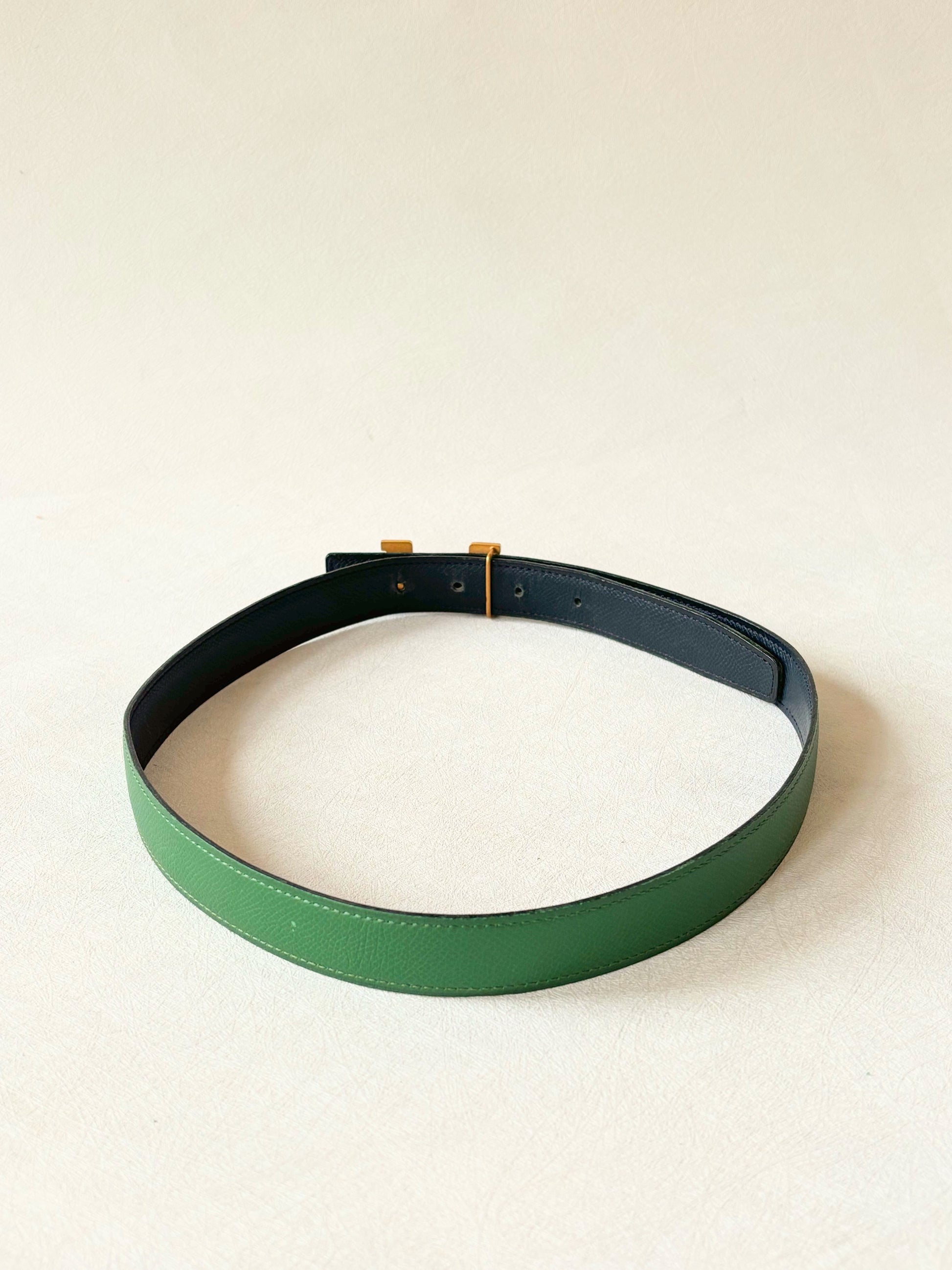 * En cuir de veau réversible bleu marine ( quasi noir) et vert