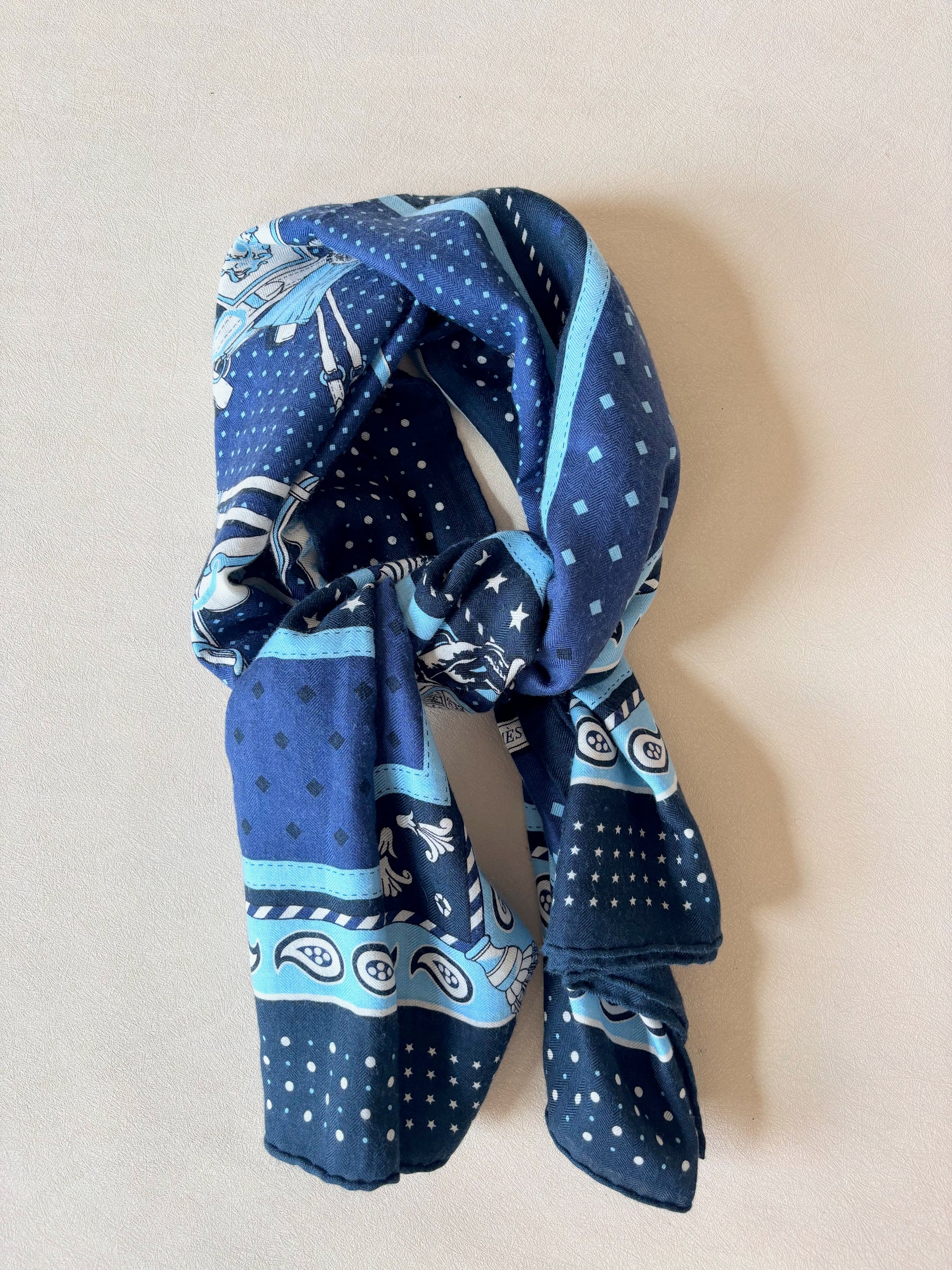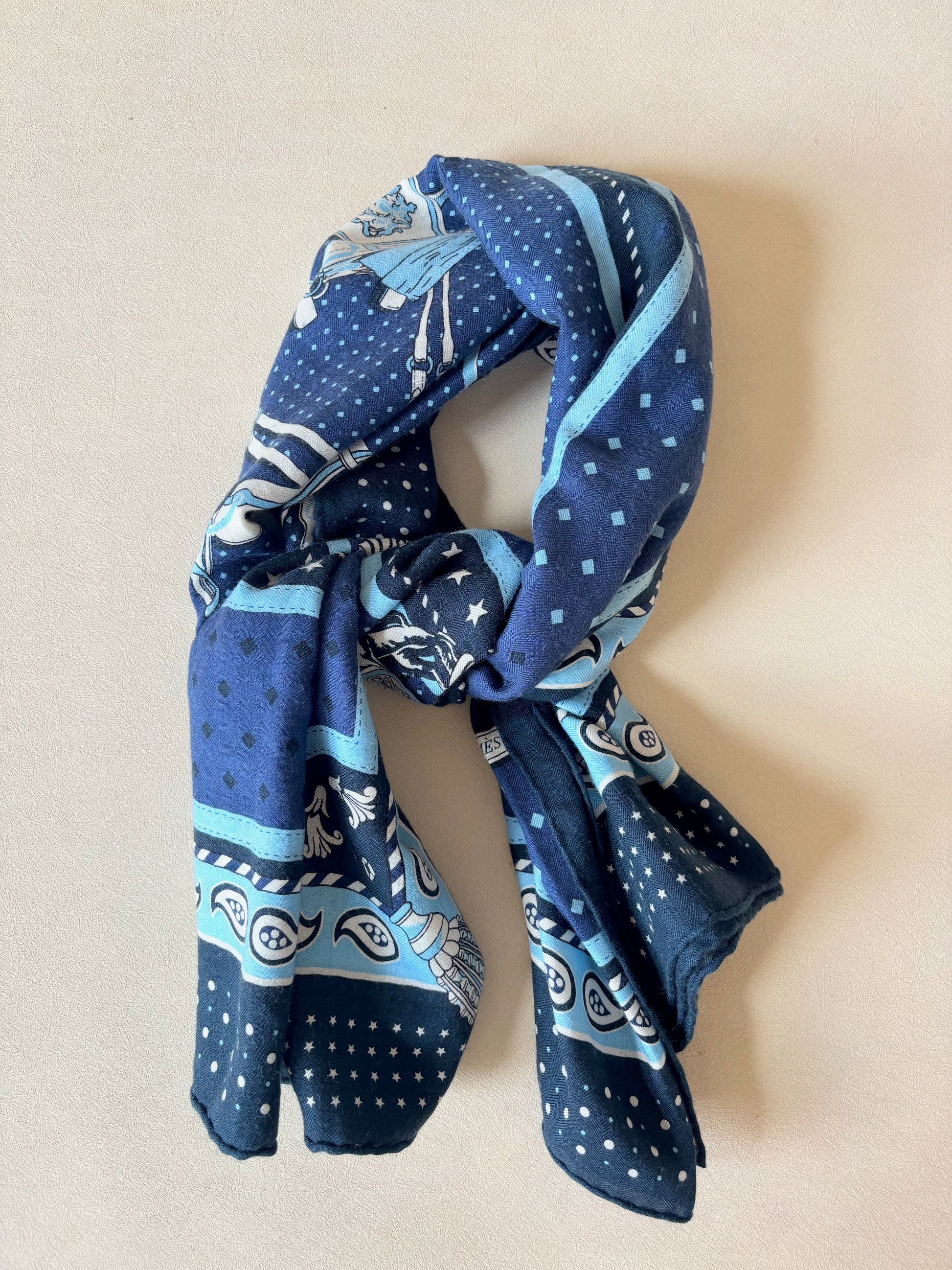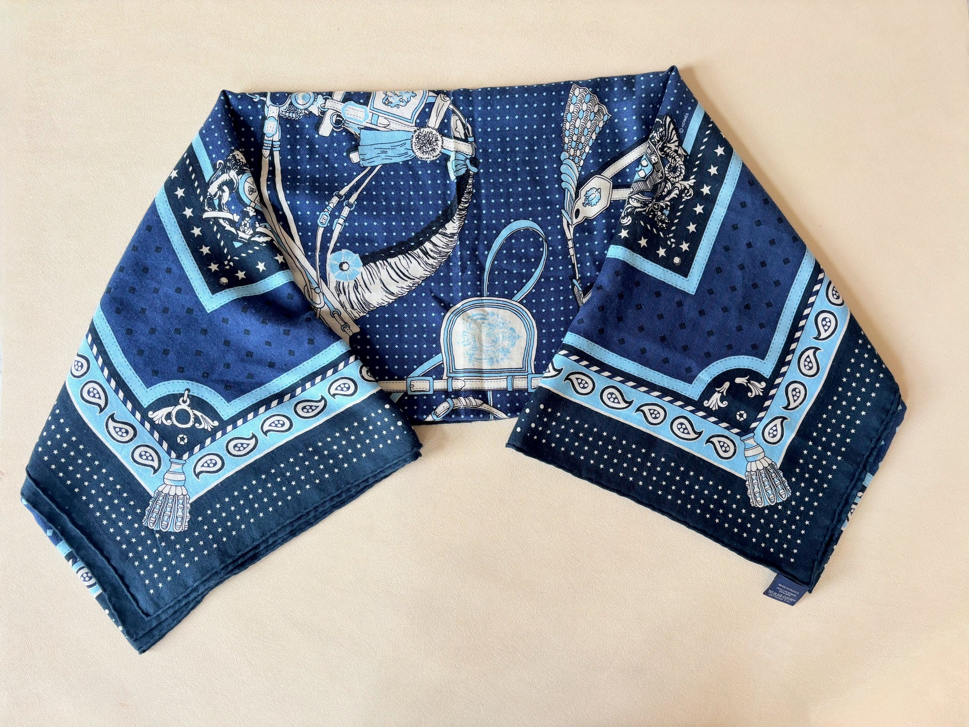 * Motif Bandana de la collection mythique "Harnais de cour" dessinée par Philippe Ledoux, dans les tons bleus