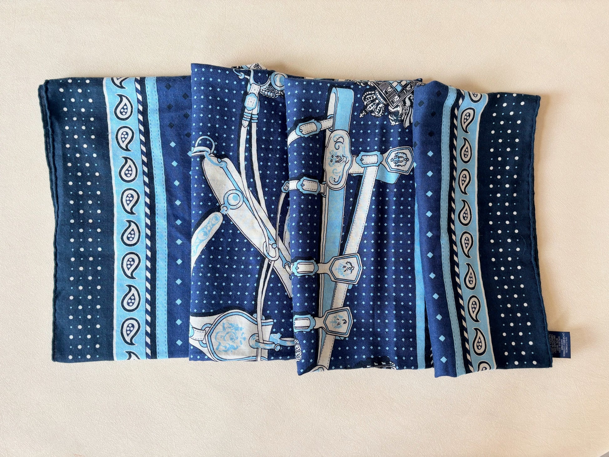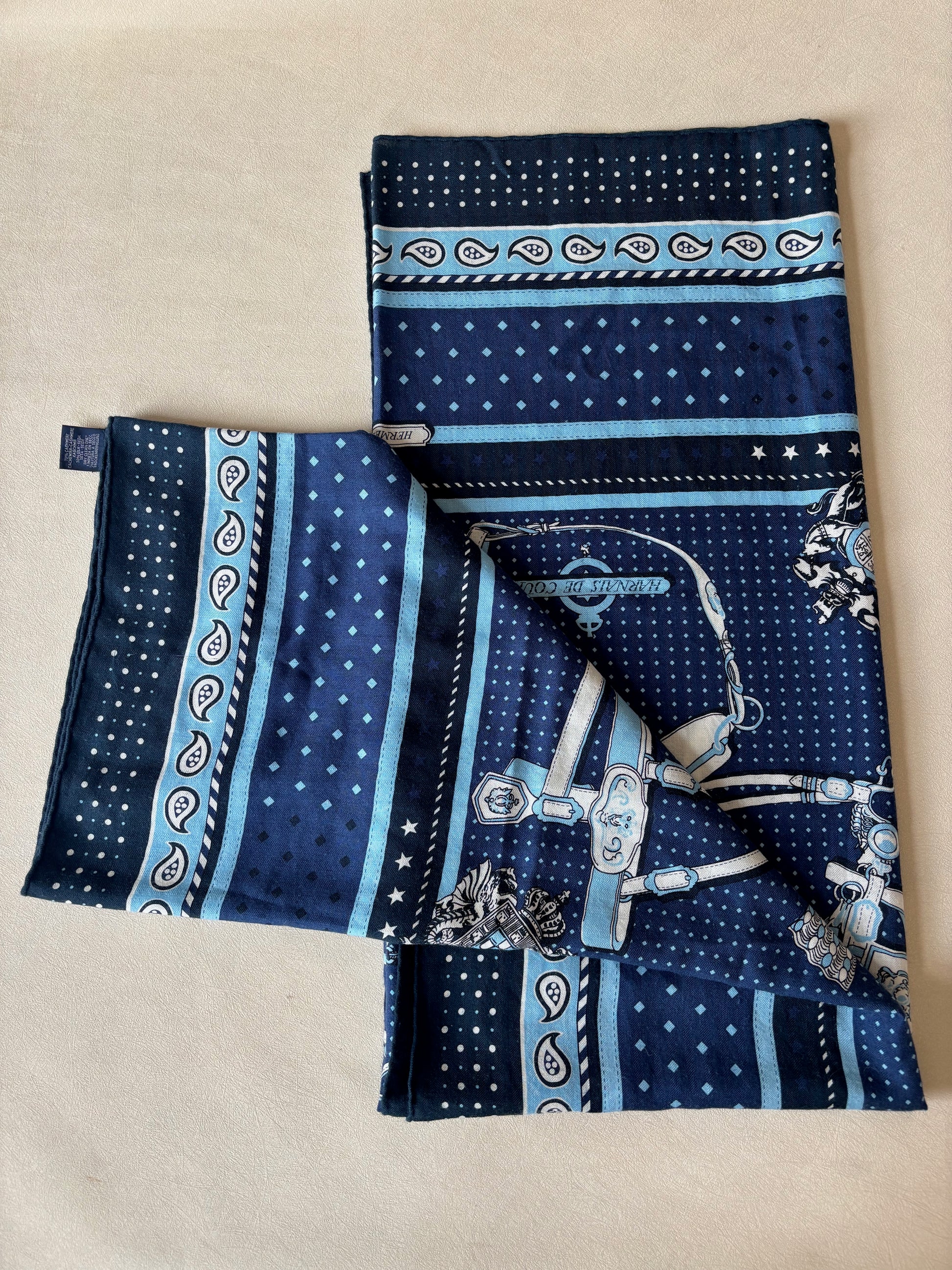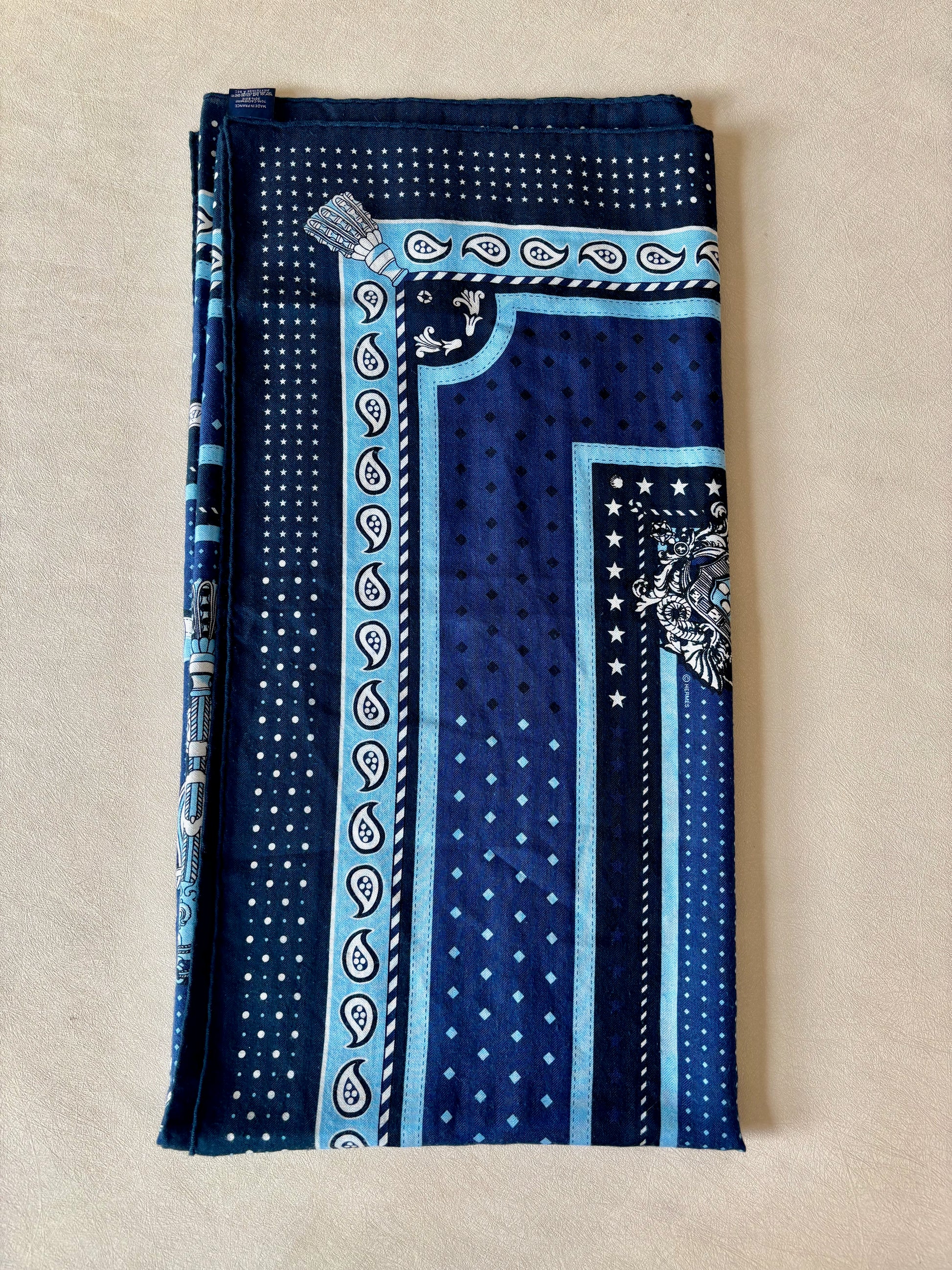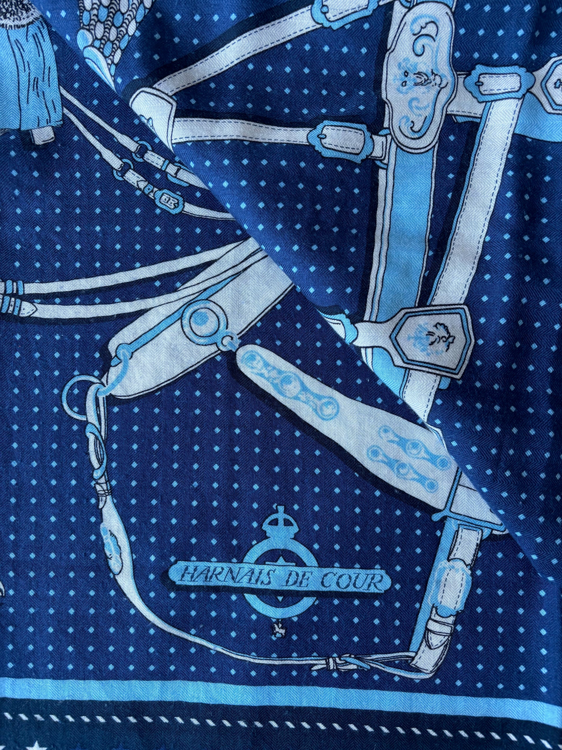 * Motif Bandana de la collection mythique "Harnais de cour" dessinée par Philippe Ledoux, dans les tons bleus