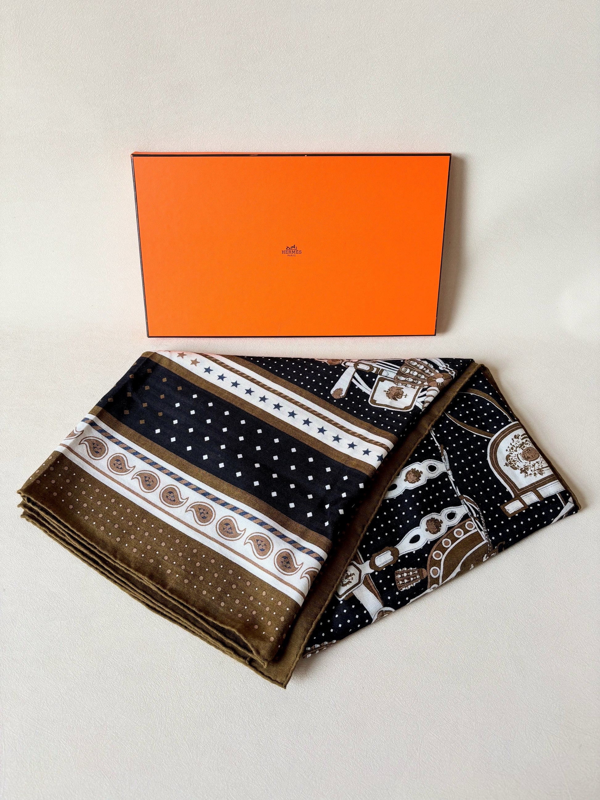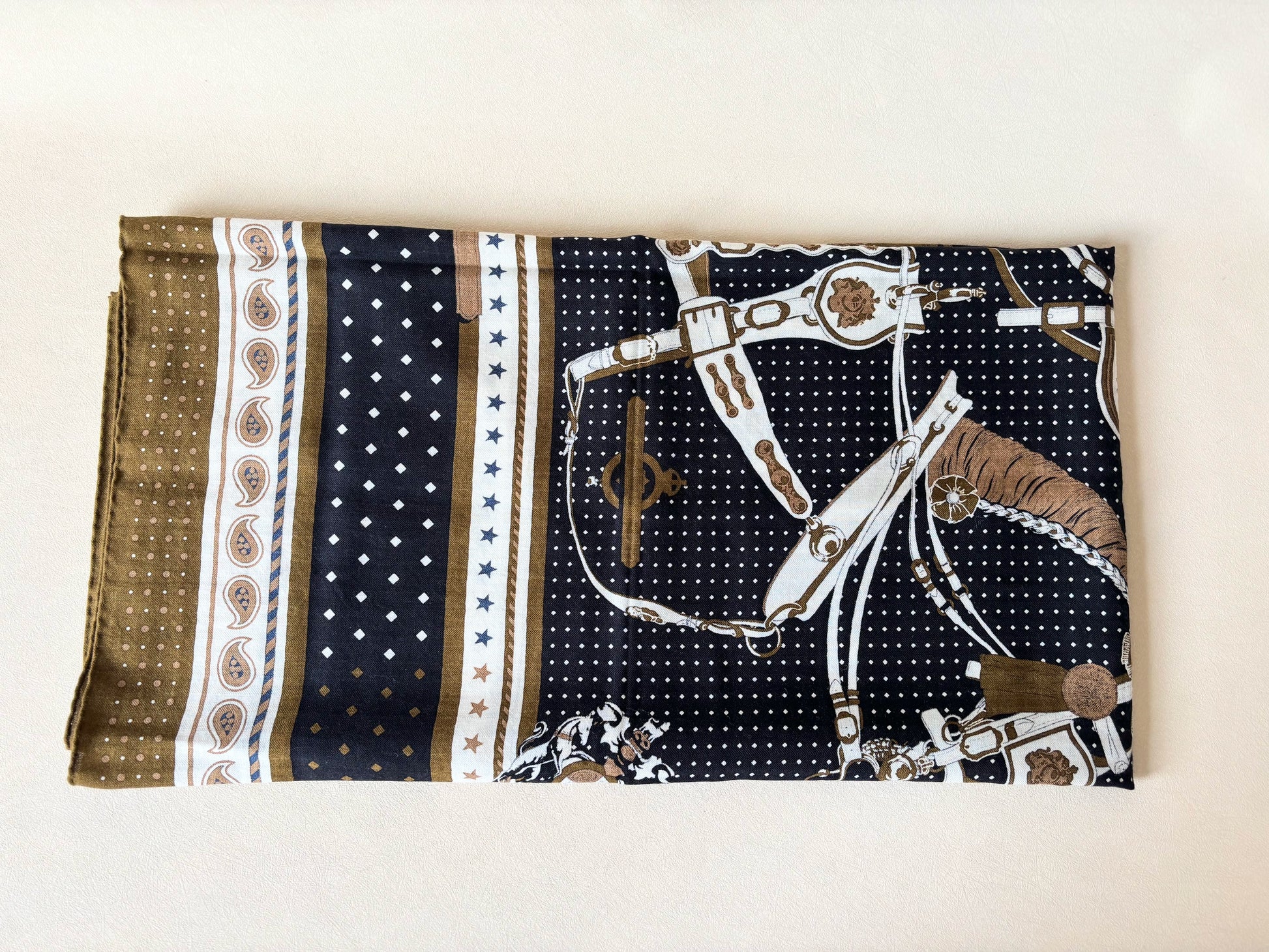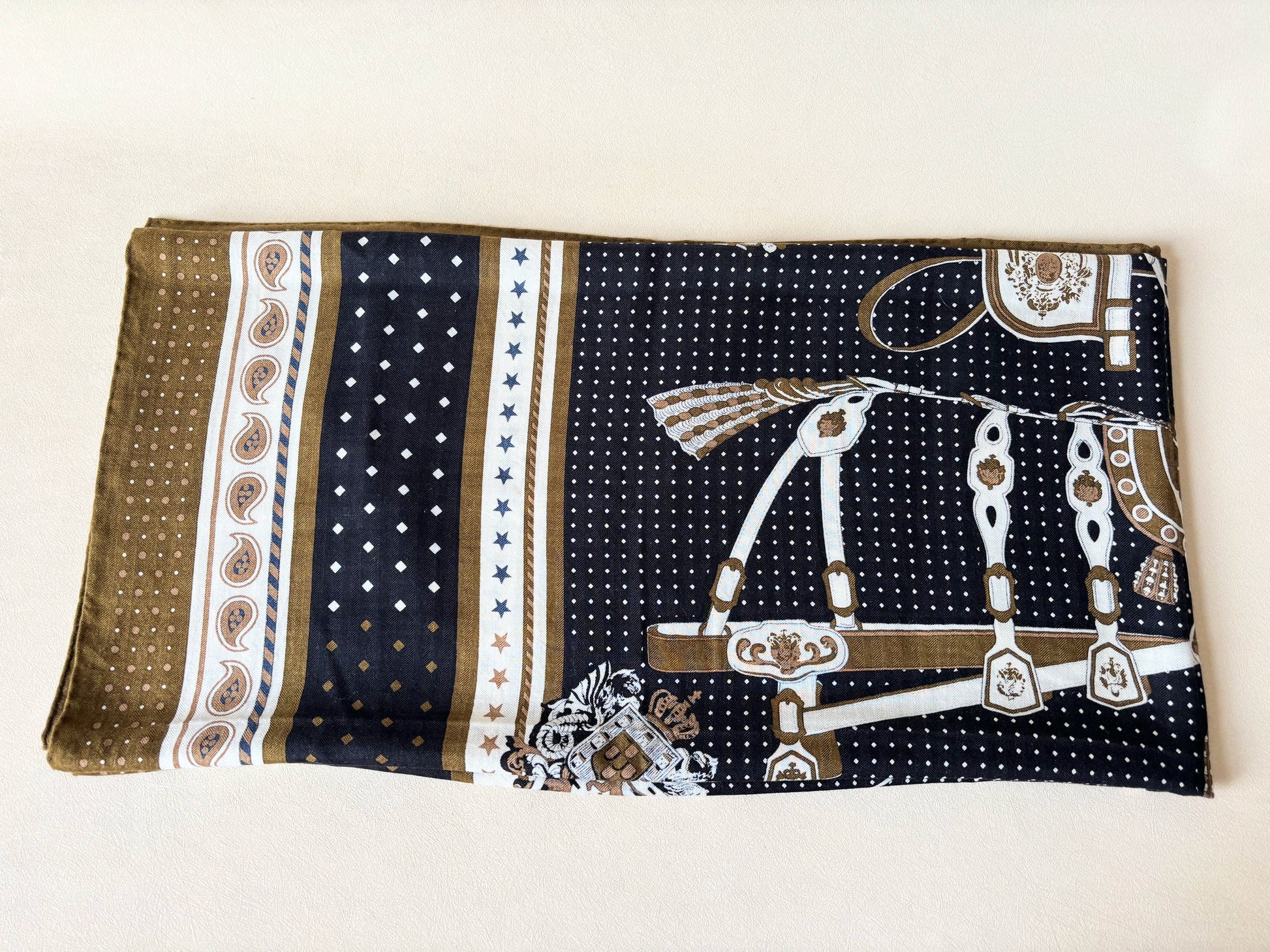 * Motif Bandana de la collection mythique "Harnais de cour" dessinée par Philippe Ledoux, dans les tons noir, khaki et écru