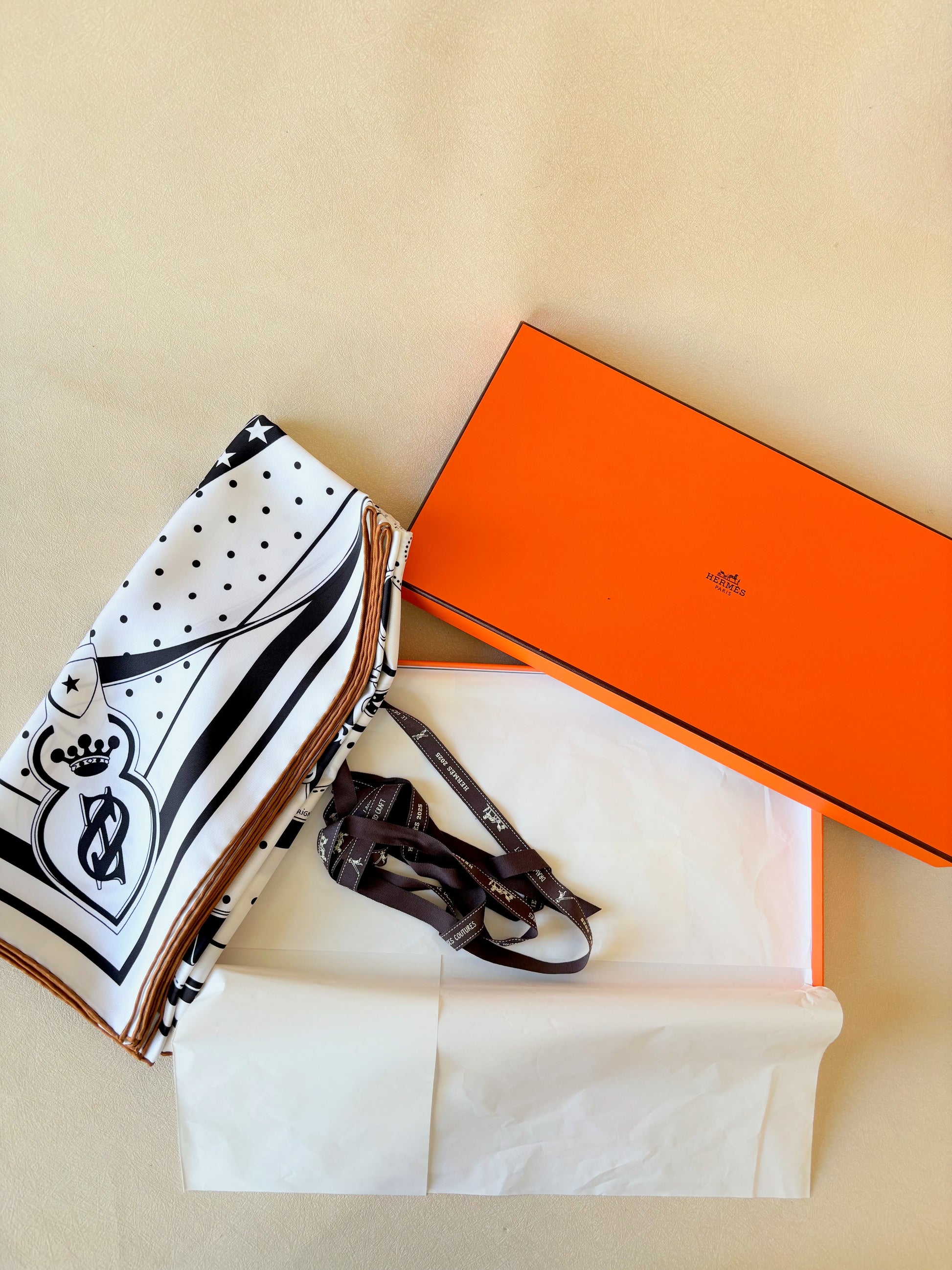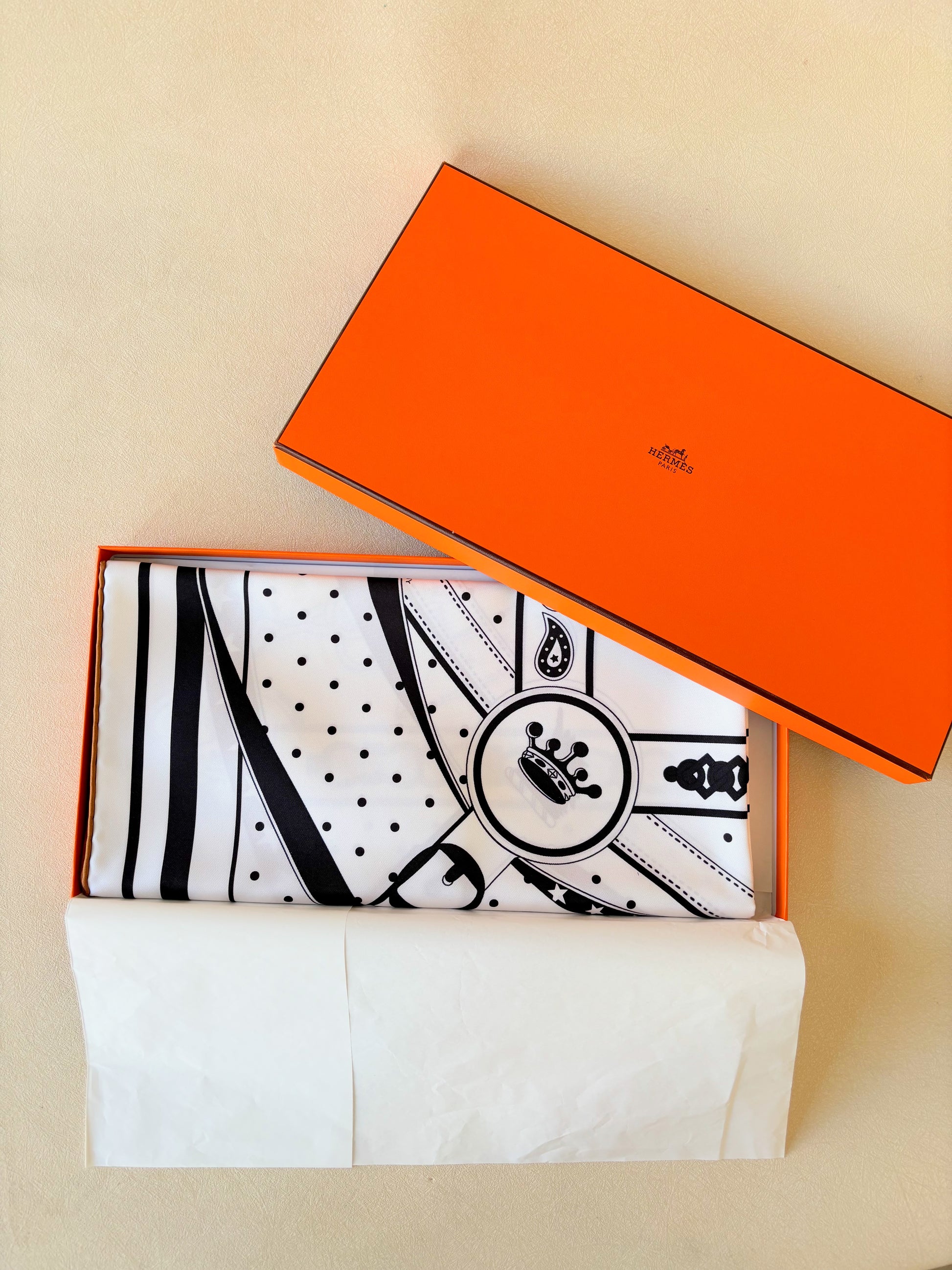 * Carré géant double face en twill 100 % soie roulotté à la main