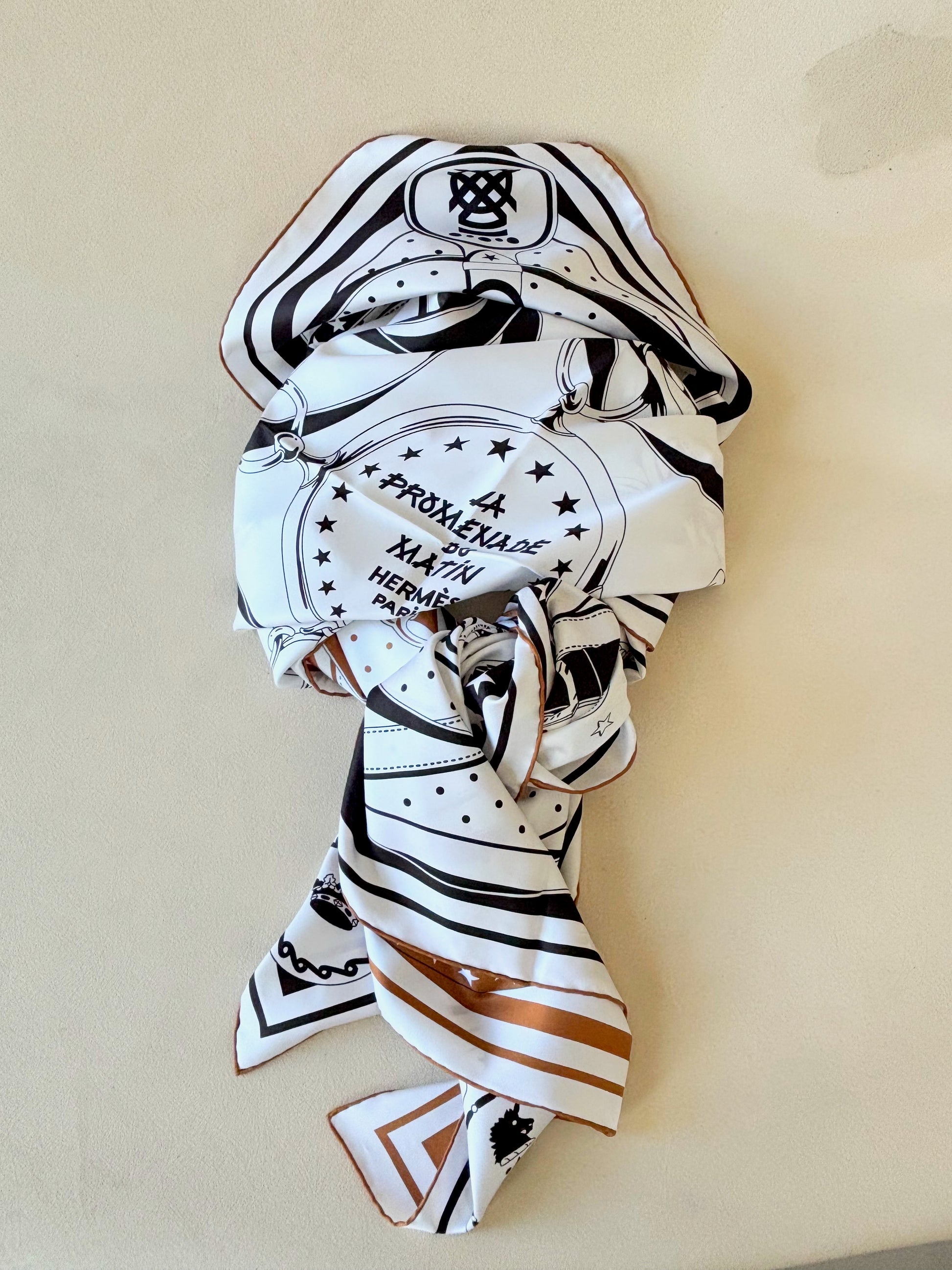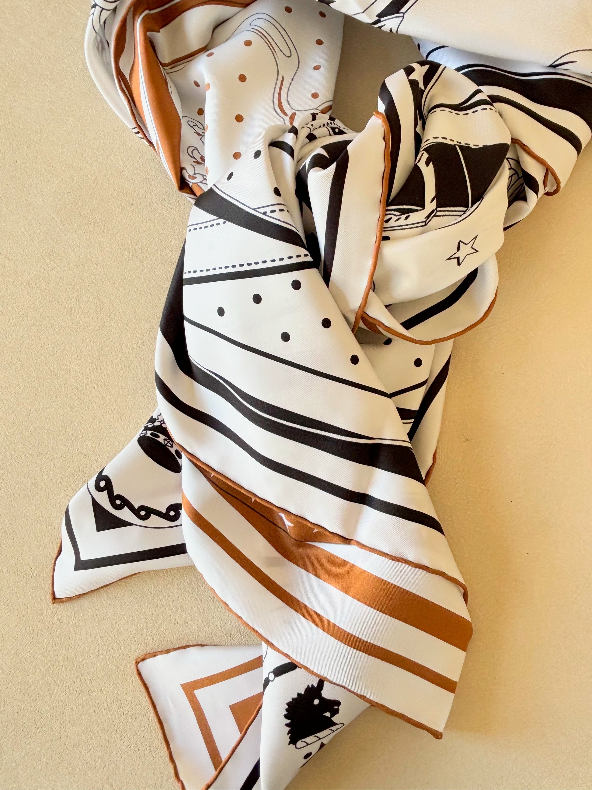 * Motif "La Promenade du Matin Bandana ", dessinée par Henri d'Origny, imprimé des deux côtés
