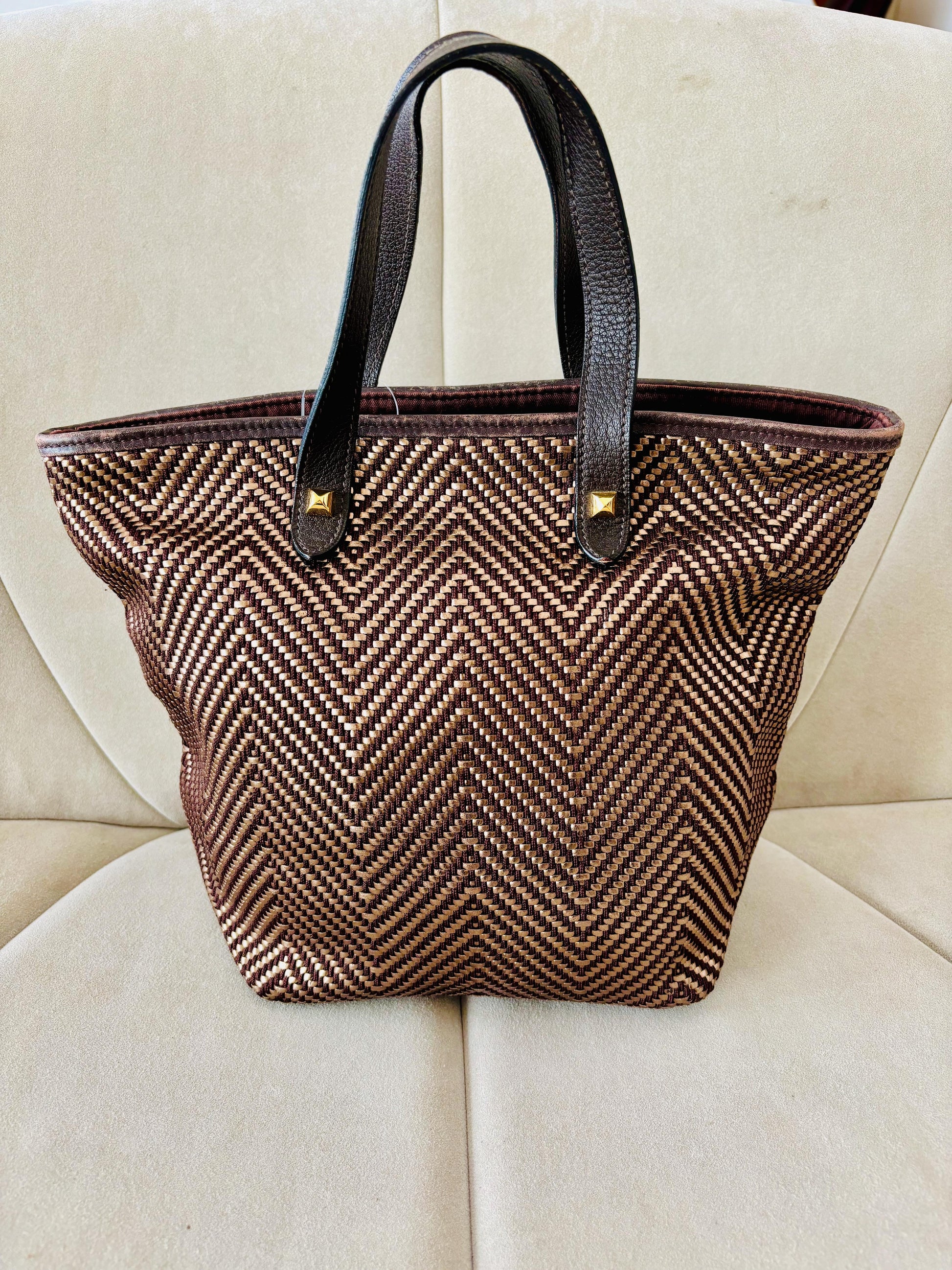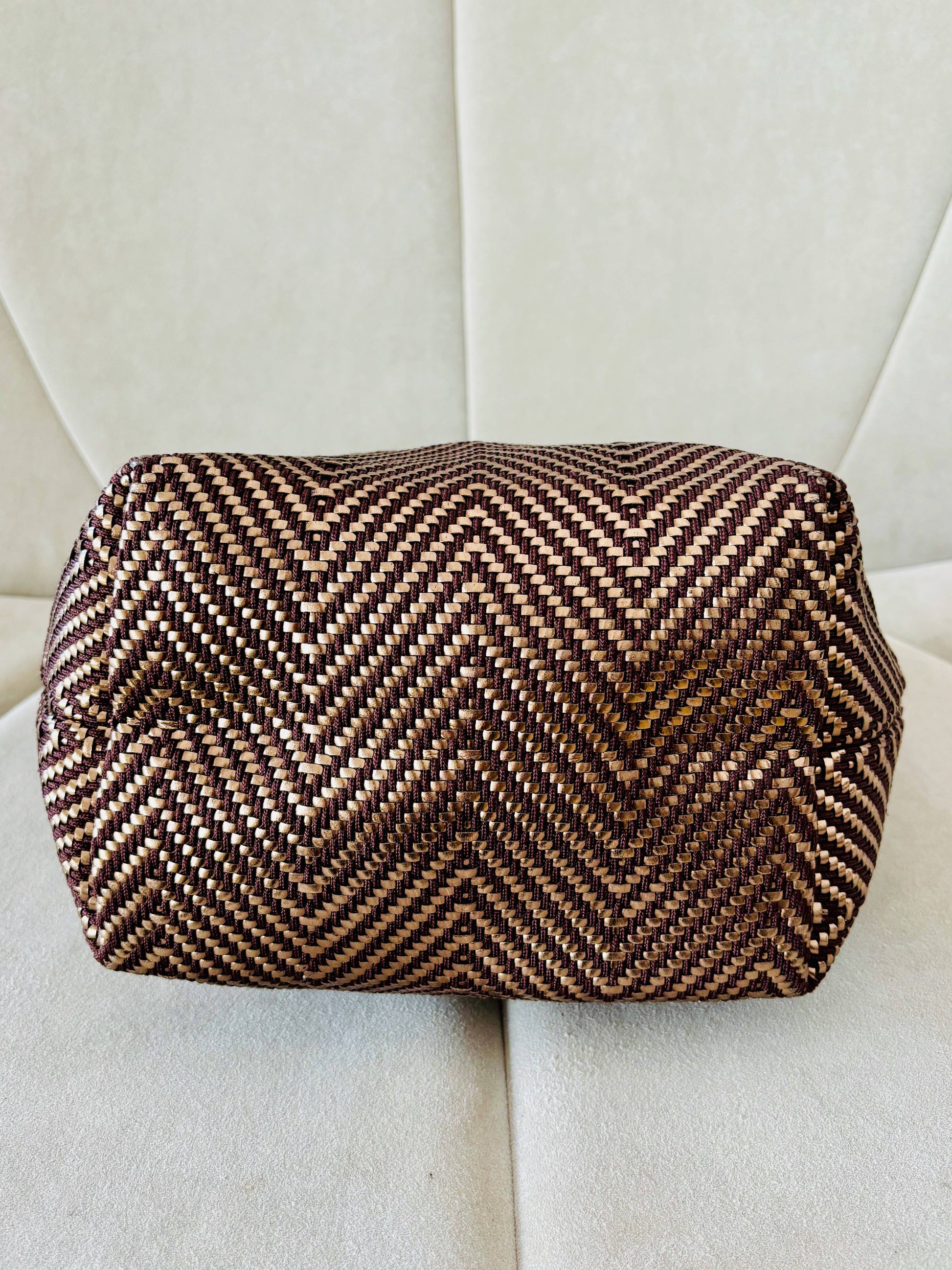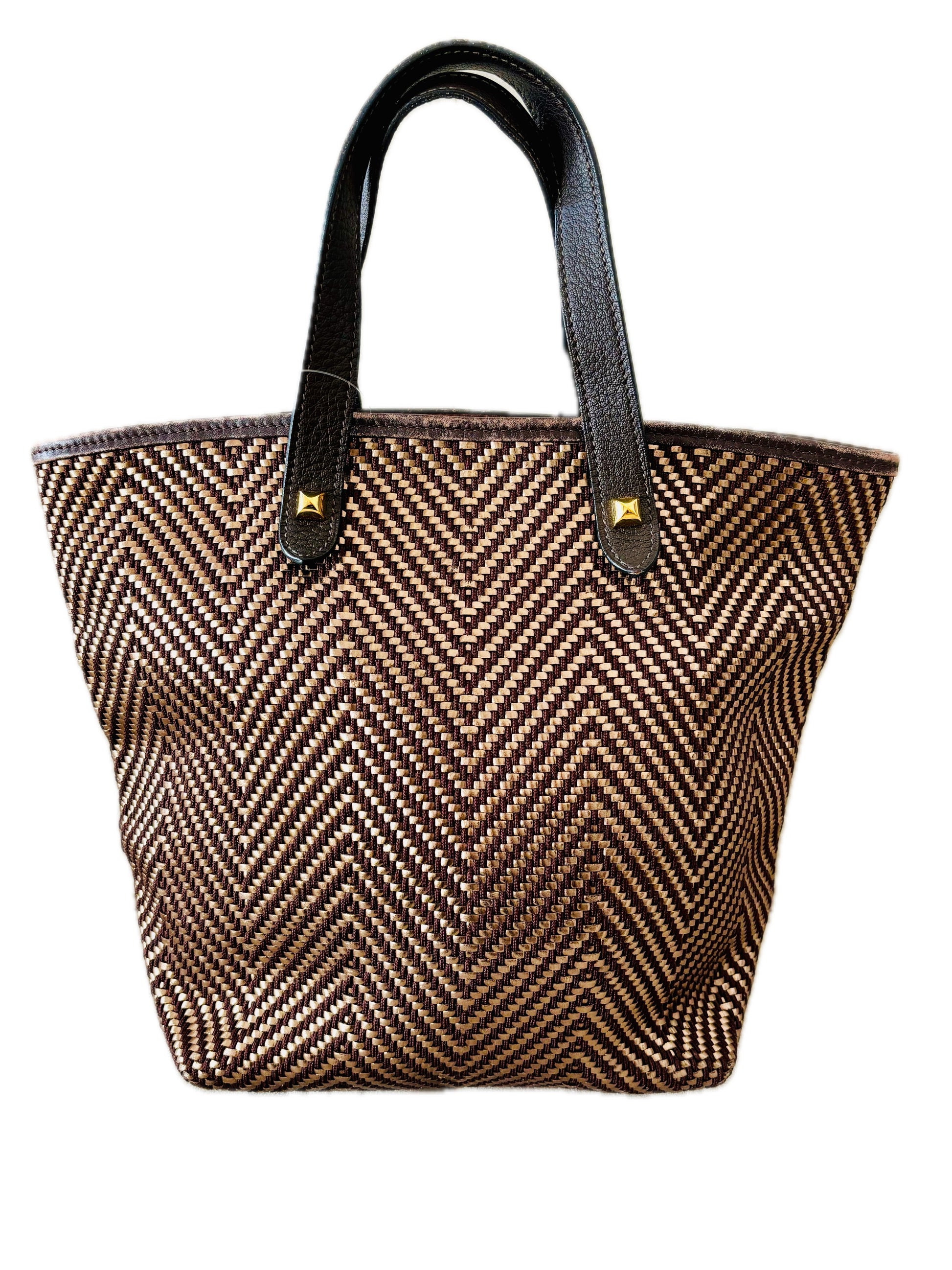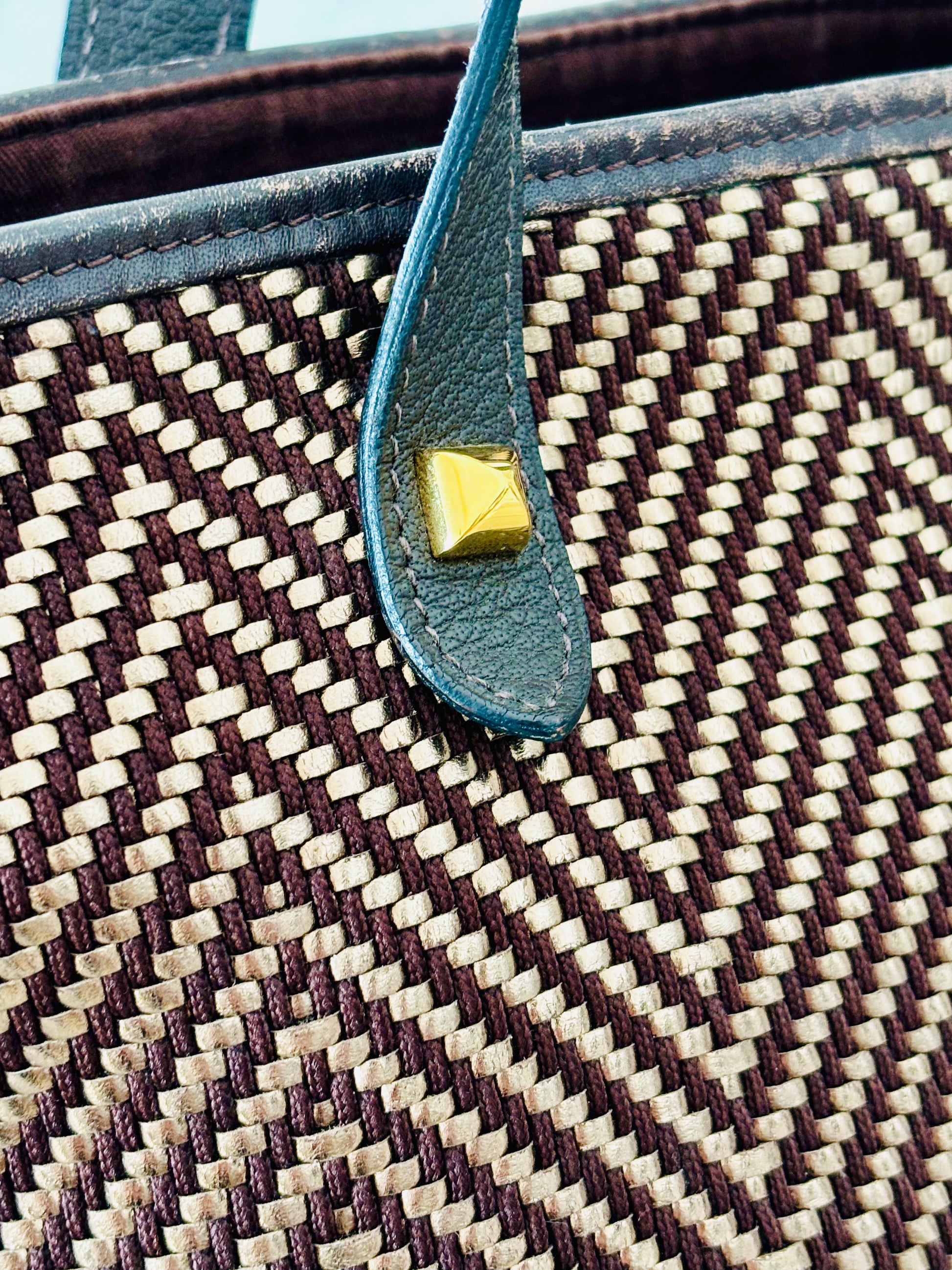* Entièrement tressé de cuir irisé et tissu marron