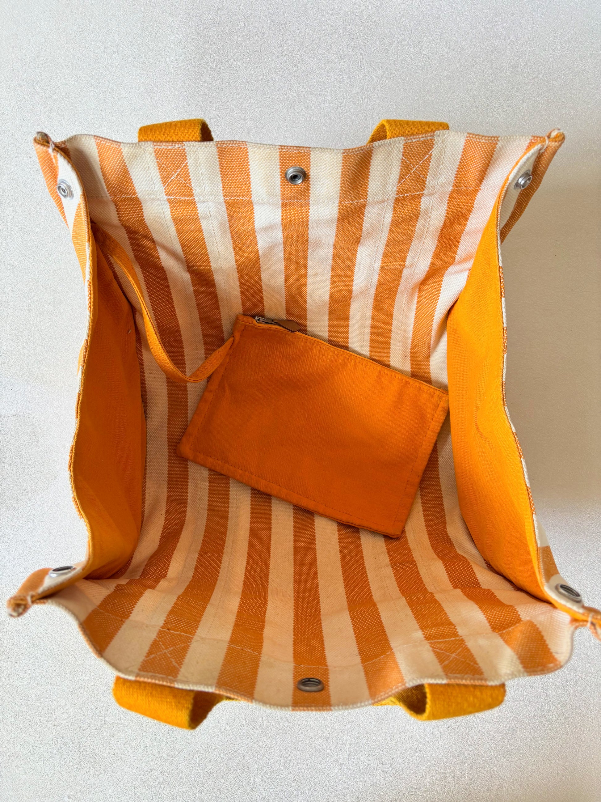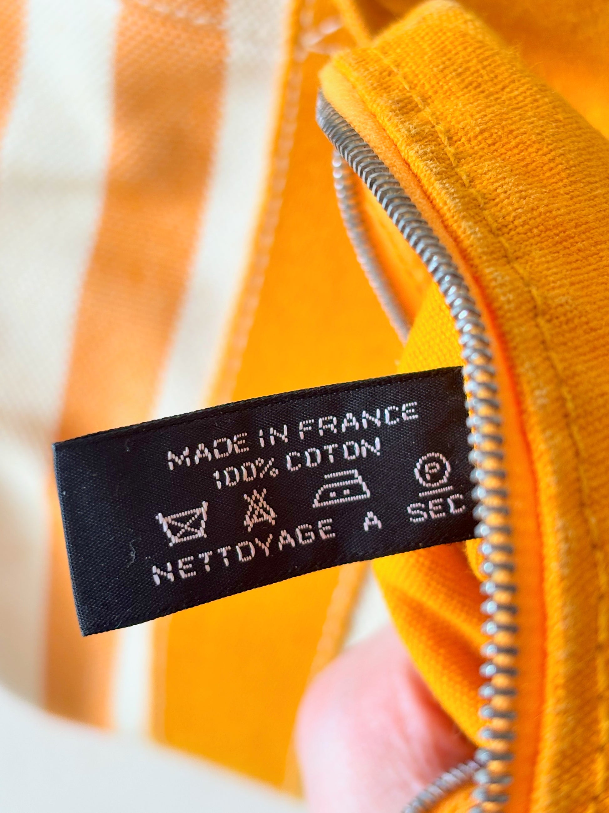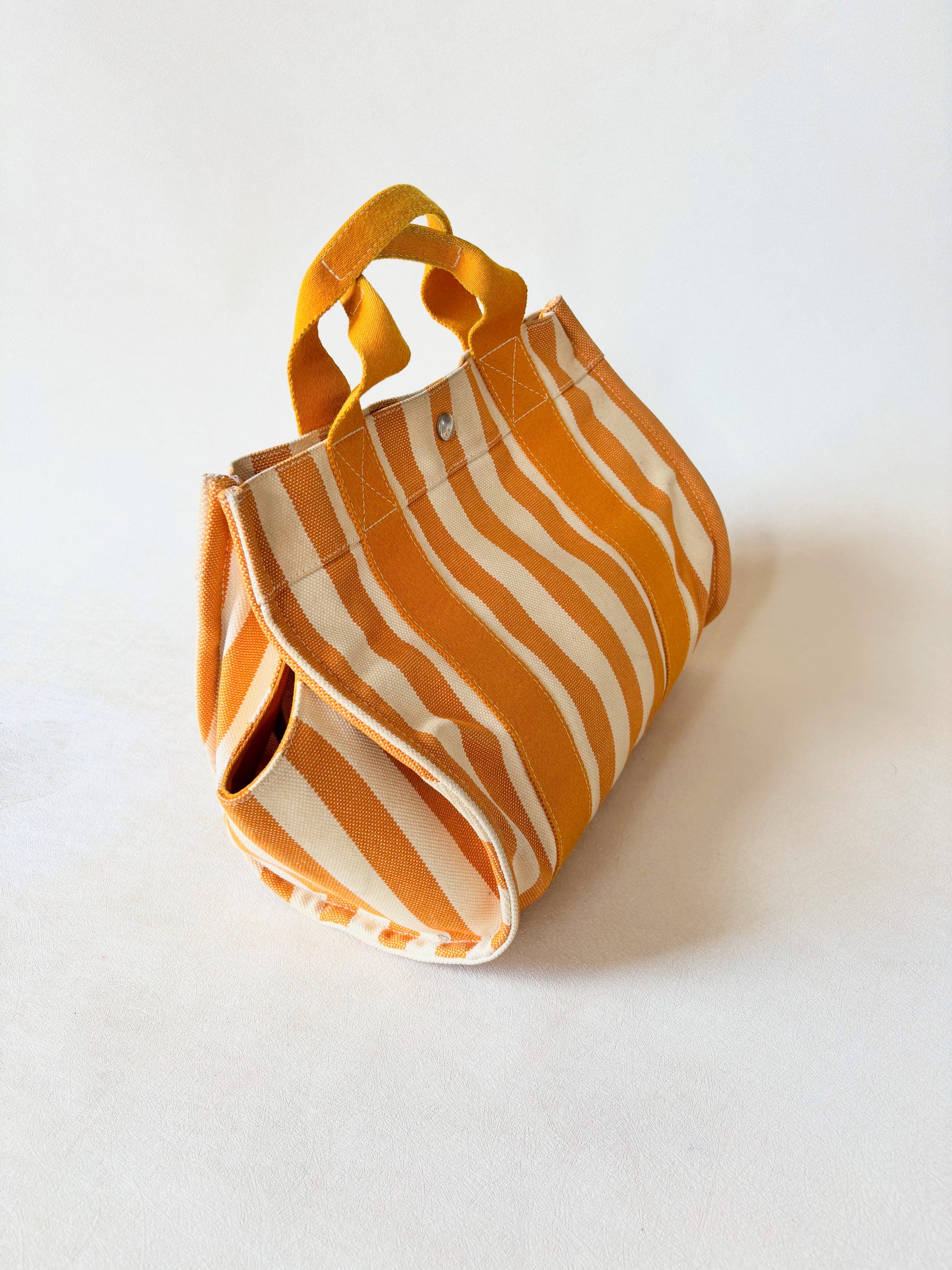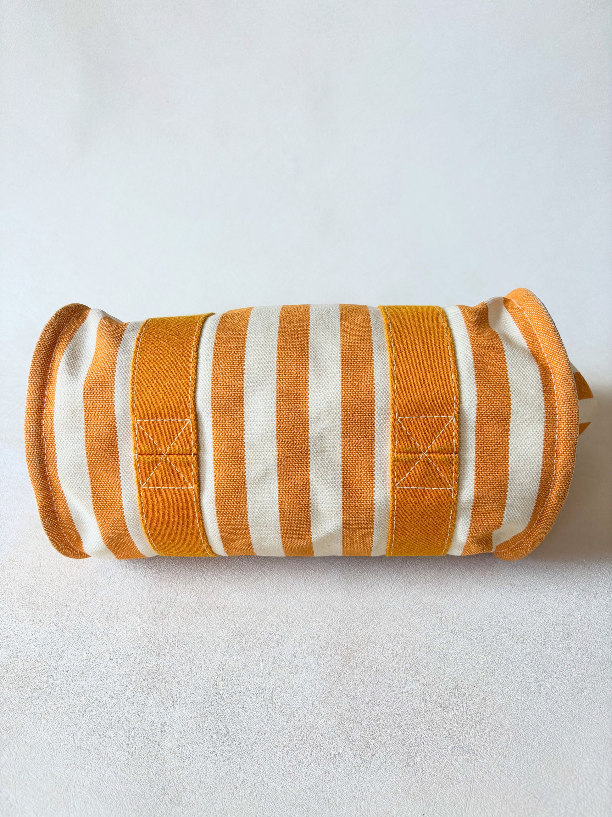 * En toile de coton rayée jaune orangé / écru surpiqué
