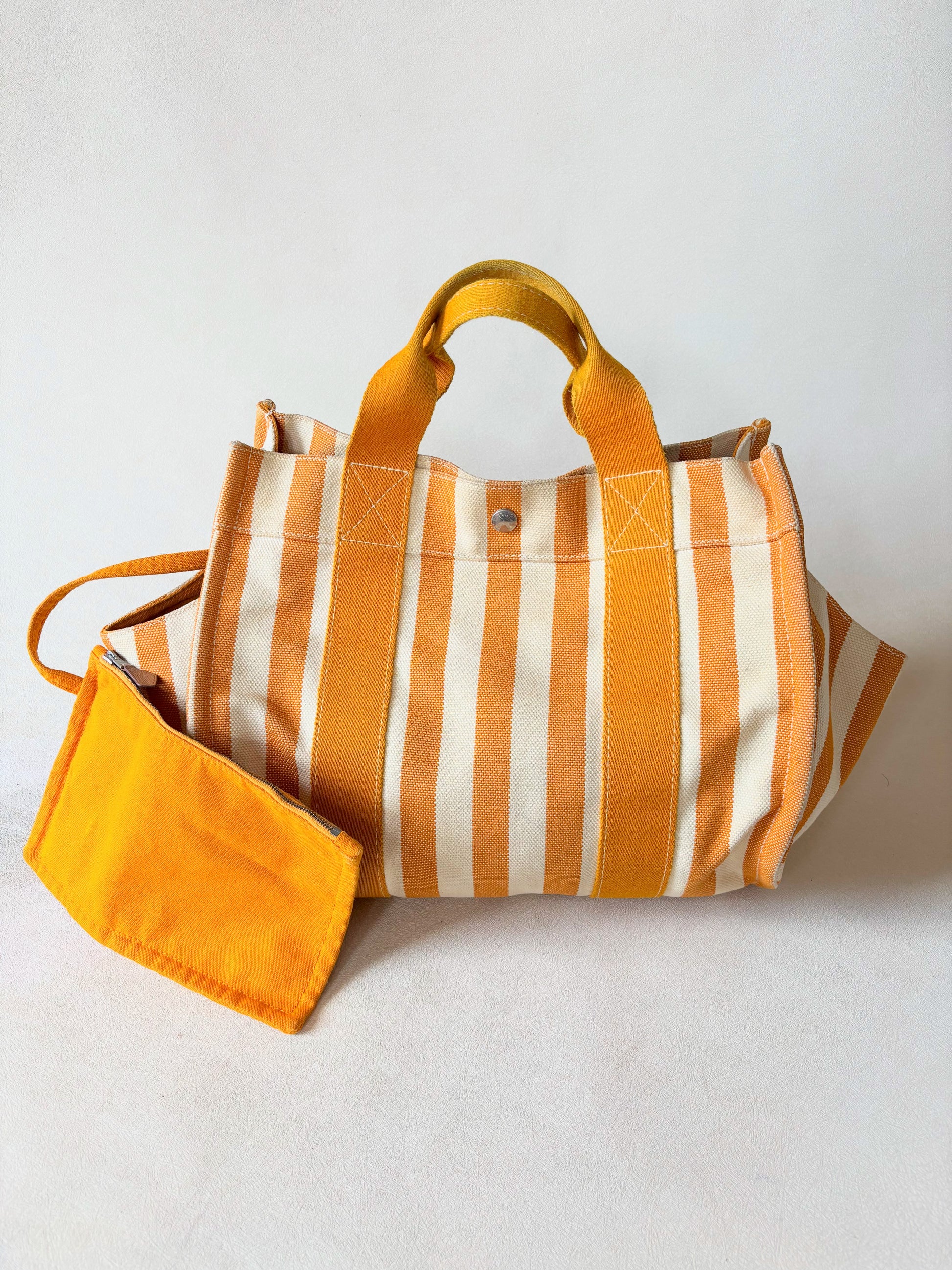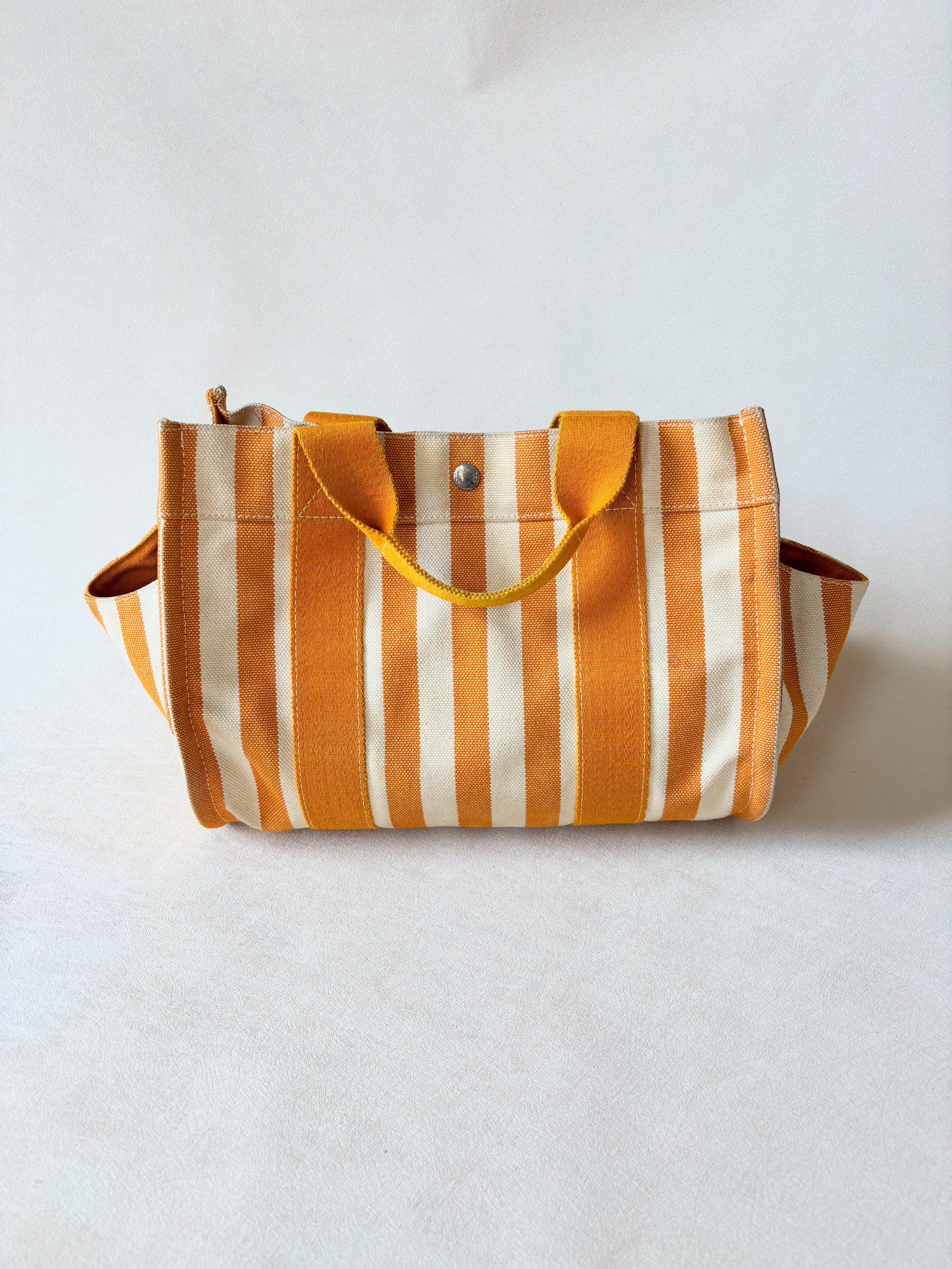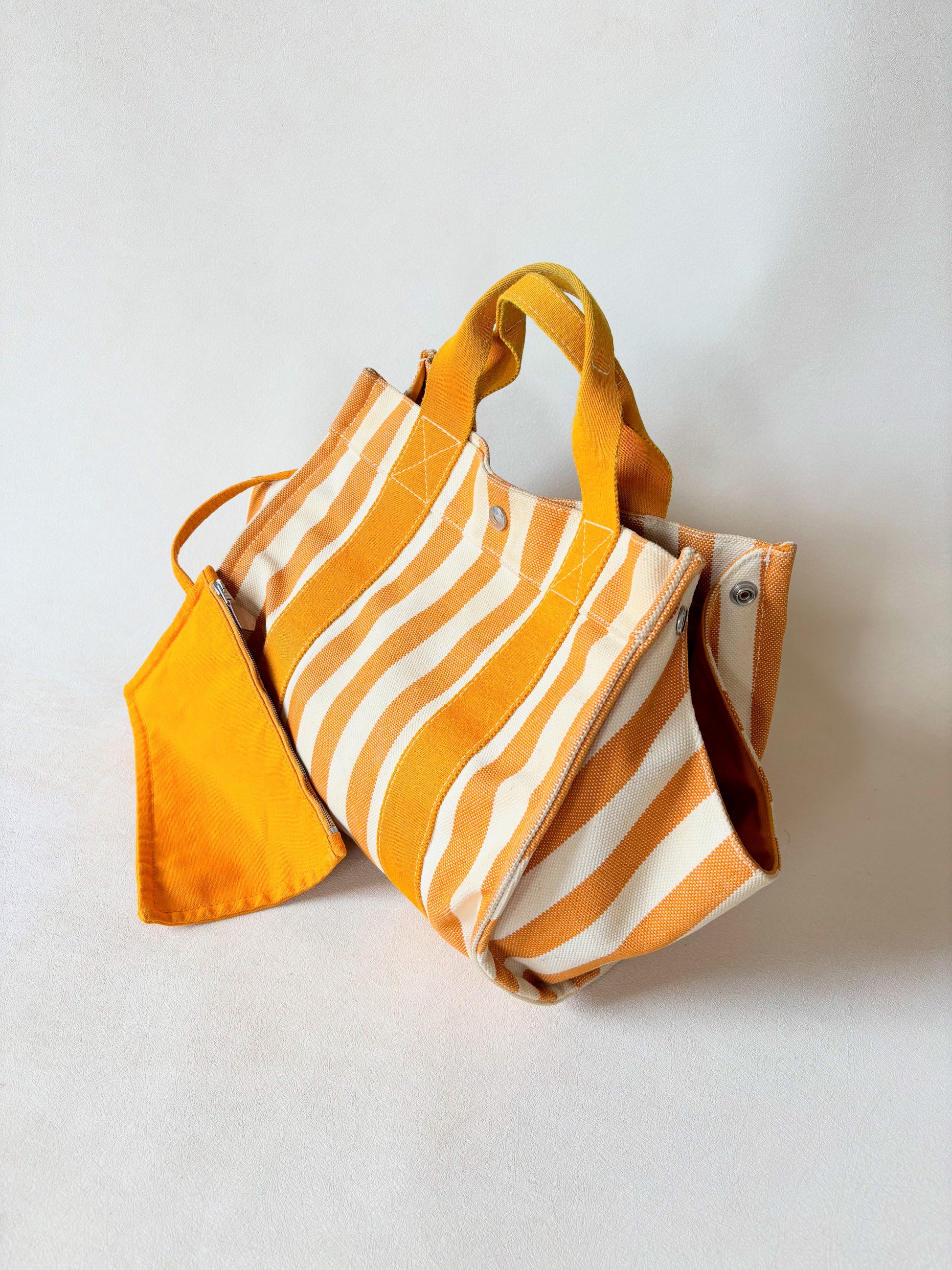 * En toile de coton rayée jaune orangé / écru surpiqué