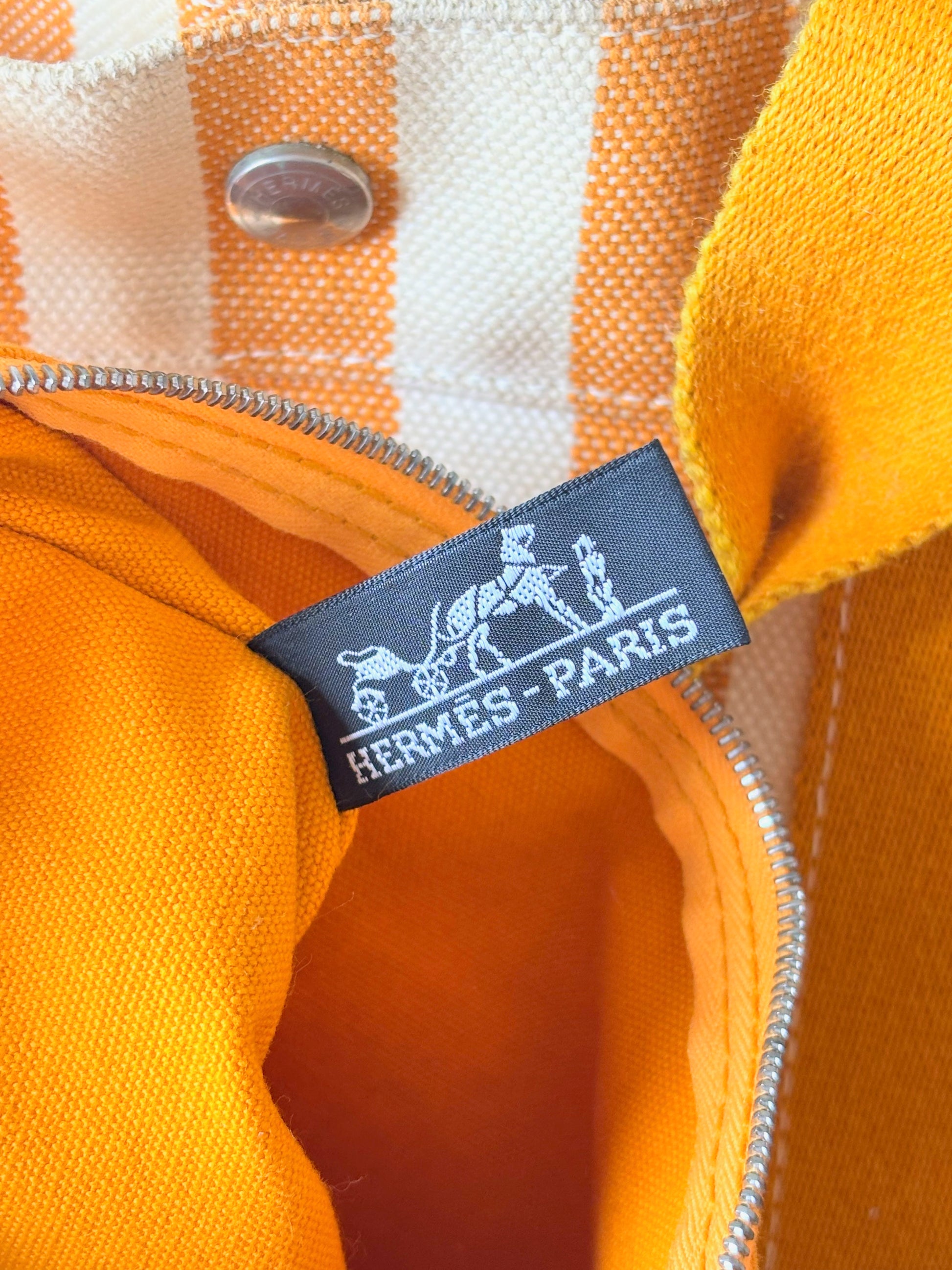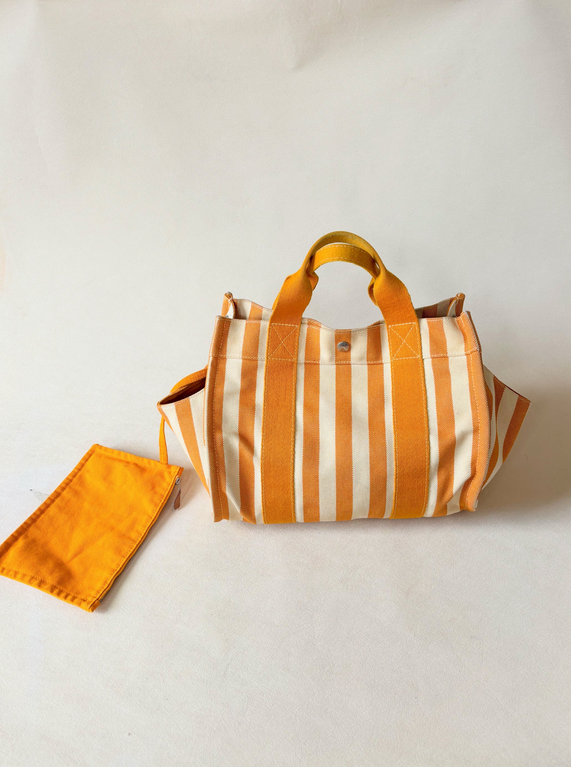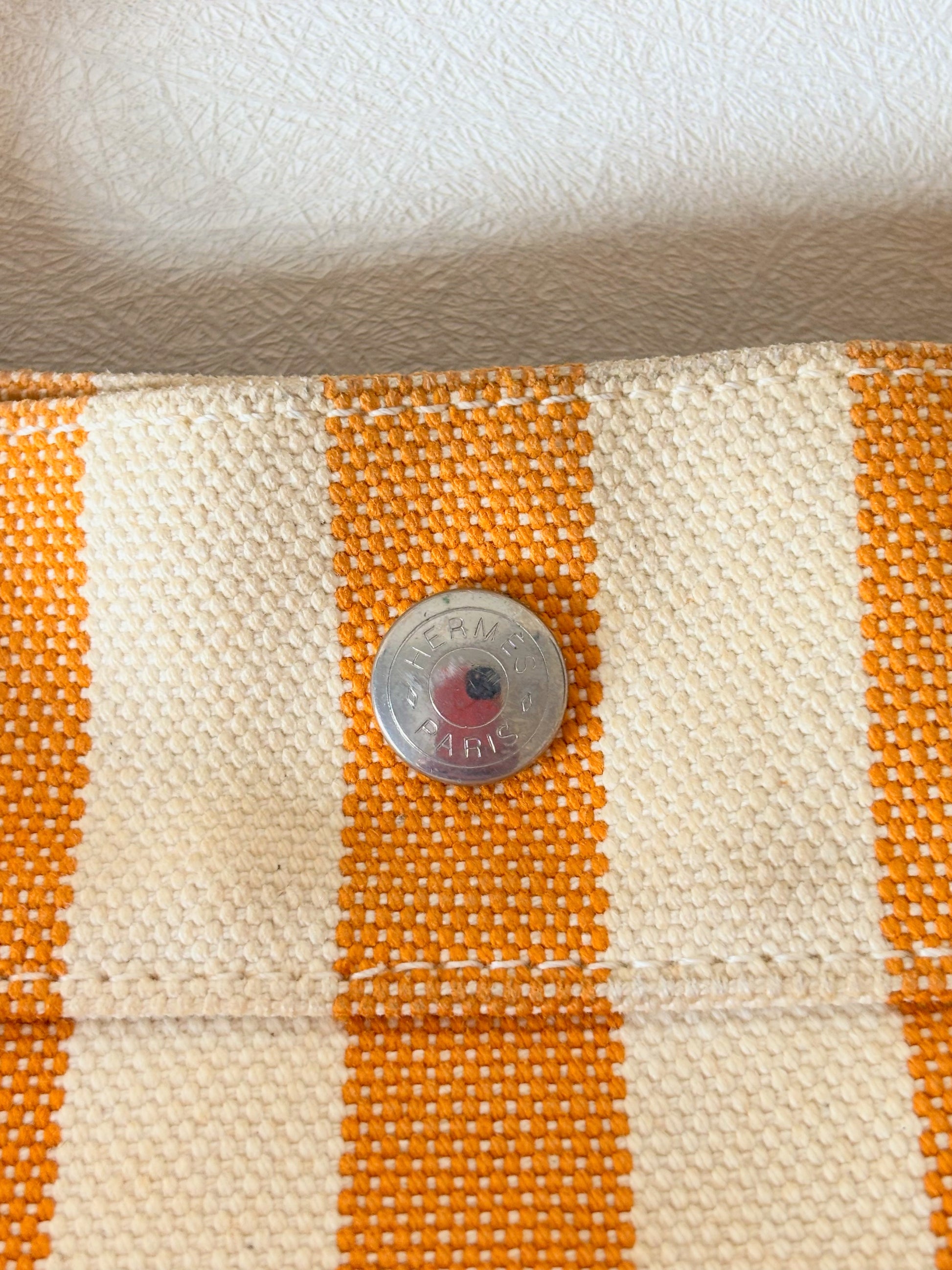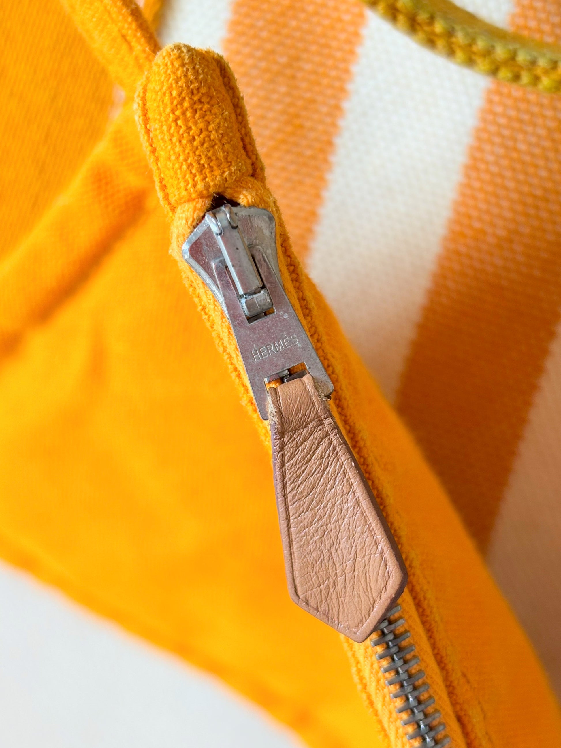 * En toile de coton rayée jaune orangé / écru surpiqué